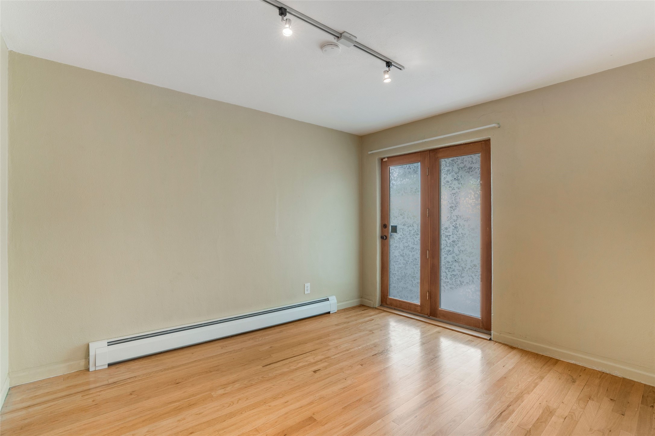 South Capital Gem with Modern Upgrades and Timeless Charm. This beautifully maintained single-level home blends classic Santa Fe character with thoughtful modern updates. The brand-new modern kitchen features sleek finishes and opens seamlessly to a spacious dining area with a classic wood-burning fireplace, creating a warm and inviting atmosphere for gatherings. Natural light fills the home through the charming wood sunroom, leading into a generous living area perfect for relaxing or entertaining. The primary suite offers a private retreat with an additional flex room ideal for an office or reading nook, along with a stylish bath featuring a stone countertop. A comfortable guest bedroom and library or media room share a beautifully updated three-quarter bath. Outside, enjoy the shady front lawn, covered porch, and private backyard surrounded by mature fruit trees and lush vegetation, offering both privacy and a tranquil garden setting. Solar panels provide energy efficiency and long-term savings. Located in one of Santa Fe's most desirable neighborhoods, this home offers peace and quiet while being just minutes from the Plaza, restaurants, and galleries. Classic style meets modern living in this South Capital treasure.