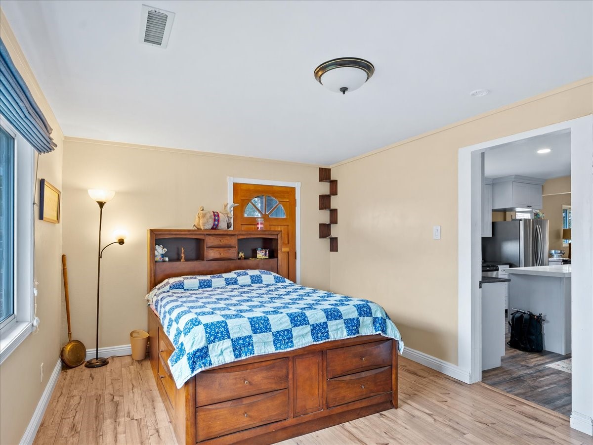 Welcome to this beautifully remodeled single-level home offering 3 bedrooms and 3 bathrooms in a prime downtown location. Over $200,000 of renovations have been made to this home in the last few years. The kitchen was fully updated in 2021 new cabinets, counters, an induction stove and updated appliances. The living room was opened up and a primary suite was added with a luxurious en suite bath - a copper soaking tub, custom tiled shower, and a large walk-in closet. Throughout the home is new vinyl flooring, fresh doors, upgraded electrical, and enclosed laundry room. Comfort and efficiency are built in with a 2021 solar panel, new heating and air conditioning, new gutters and insulated PEX water supply lines. The fully fenced backyard is highlighted by the covered patio, spacious lawn and two large storage sheds - one with added electricity. Designed for modern living, this move-in ready home is perfect for buyers who want style, function, and energy efficiency all on one convenient level. Schedule your showing today!