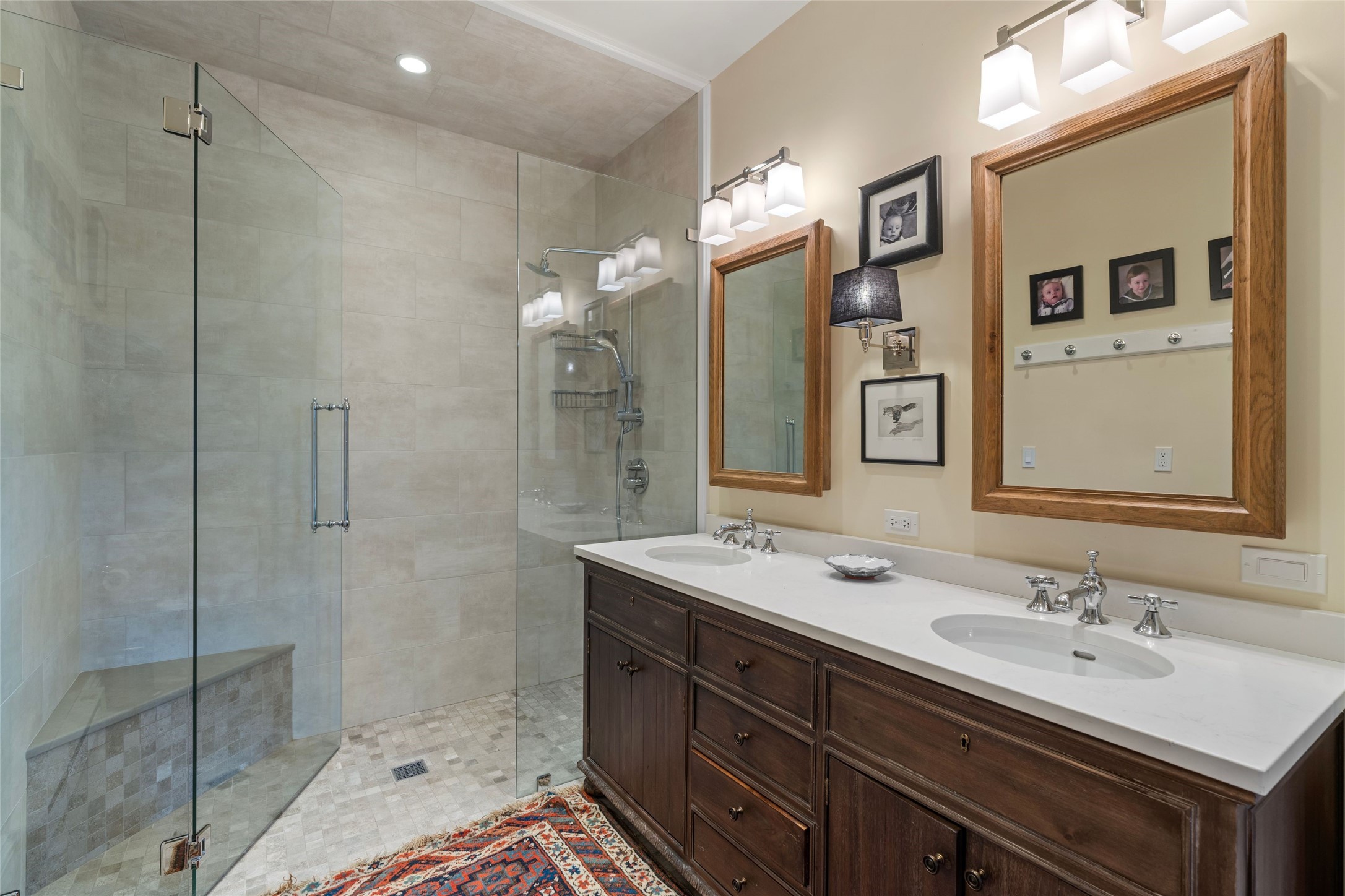 Nestled 3.5 miles past the Four Seasons Resort, and set on 25 acres along the Rio en Medio, this double adobe Territorial estate includes a main house and two guesthouses with five bedrooms in total, surrounded by orchards, meadows, and protected land stretching far beyond the property's boundaries. With 20+ acre feet of water rights, the estate sustains lush grounds, a swimming pond with stone decking, and an organic orchard. The main house features a chef's kitchen with two Sub-Zero refrigerators and a La Cornue range, plus seven fireplaces and floor-to-ceiling windows blending Southern detailing with Territorial design. The first guesthouse offers three bedrooms with its own kitchen and living room, while the second is an open-plan suite with a redwood portal and sunken hot tub overlooking the wildflower meadow. Amenities include commercial-grade irrigation and solar systems, a 6+ car garage, gated fencing, and a second private entrance. With a dedicated access road, with ample water rights, and 4 separately deeded parcels, the property presents appealing possibilities for future expansion or additional structures, subject to buyer verification.