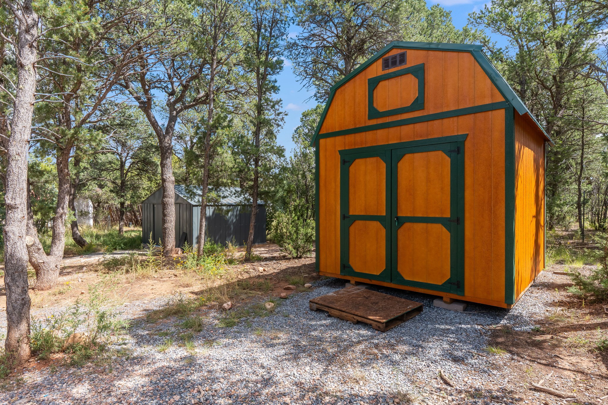 Escape to your own private mountain haven with this charming property tucked away on 4 wooded acres in Rowe, NM. Located just 30 minutes from Santa Fe, 40 minutes from Las Vegas, and less than 15 minutes to Pecos, this property is ideally situated for both convenience and adventure. Surrounded by pinon and other native trees and local wildlife, this retreat offers peace, seclusion, and plenty of room to grow. Roughly 1/3 of the property is fenced in, making an ideal dog run.The main home is a cozy 2-bedroom manufactured house with an expanded living area, creating a warm and inviting space to relax after a day outdoors. A separate guest casita provides extra room for visitors, hobbies, or even rental potential. The casita also features granite countertops,stainless steel appliances, and engineered hardwood floors.In addition, three versatile sheds offer ample storage for tools, equipment, or outdoor gear.The surrounding area is a paradise for outdoor enthusiasts--whether you enjoy hunting, fishing, camping, hiking, or simply taking in the fresh mountain air, you'll find it all right at your doorstep.If you've been looking for a serene getaway with space to expand, this Rowe retreat is ready to welcome you home.