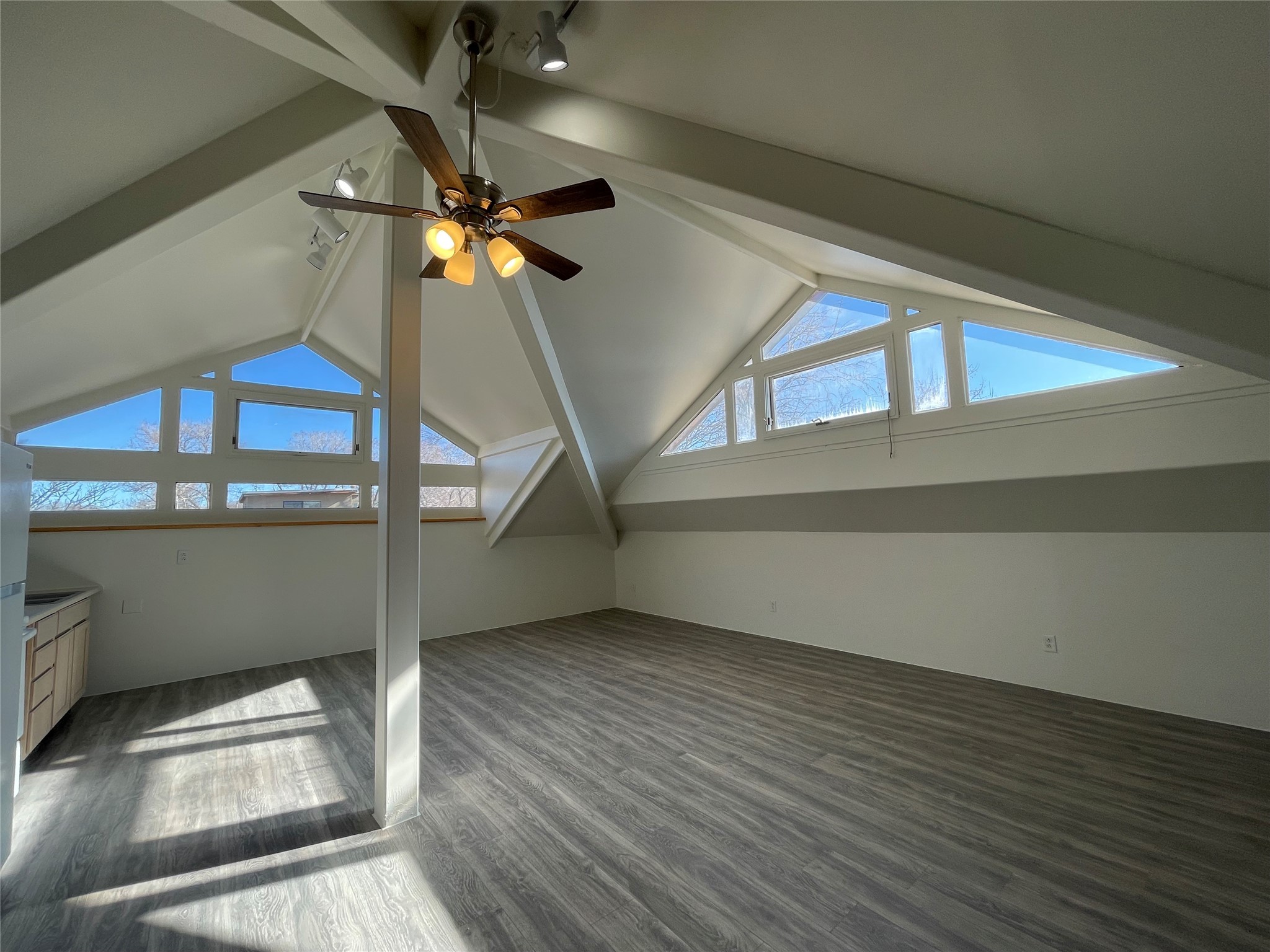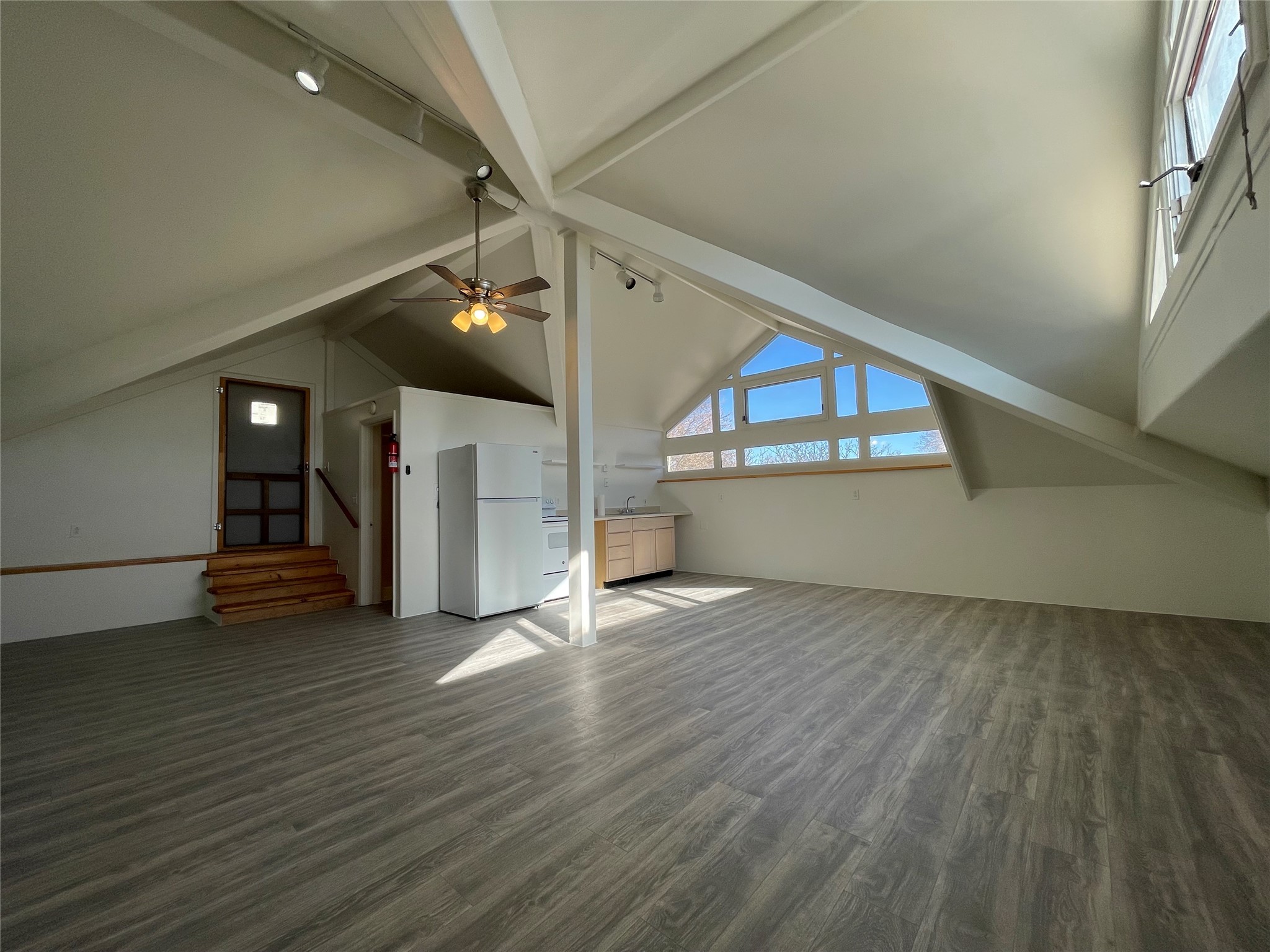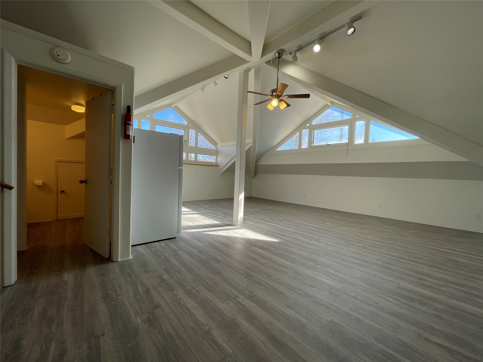 Discover this unique and bright 600 sq ft mixed-use studio, perfect for a live/work space. The studio's standout features are the soaring vaulted ceilings and a stunning array of large, angular windows that flood the space with natural light, creating a warm and inviting atmosphere.The open layout includes a functional kitchenette with a full-size refrigerator, electric stove, and generous counter space for your needs. The sleek, durable wood-like flooring provides a clean, modern feel throughout the main area. A stylish ceiling fan with integrated lighting helps to keep the space comfortable year-round.This studio also includes a private bathroom featuring a pedestal sink and a separate walk-in shower. Situated in a convenient location, this property offers a great blend of comfort and functionality.Key Features:Bright and Open: Expansive windows and vaulted ceilings create a spacious, sunlit environment.Efficient Kitchenette: Equipped with a full-size fridge and electric stove.Modern Touches: Wood-like flooring and a ceiling fan with track lighting.Private Bathroom: Includes a pedestal sink, toilet, and walk-in shower.Flexible Space: Ideal for a creative studio, home office, or a comfortable living area.This space is a must-see for anyone seeking a versatile and light-filled studio. Contact us to schedule a viewing!
