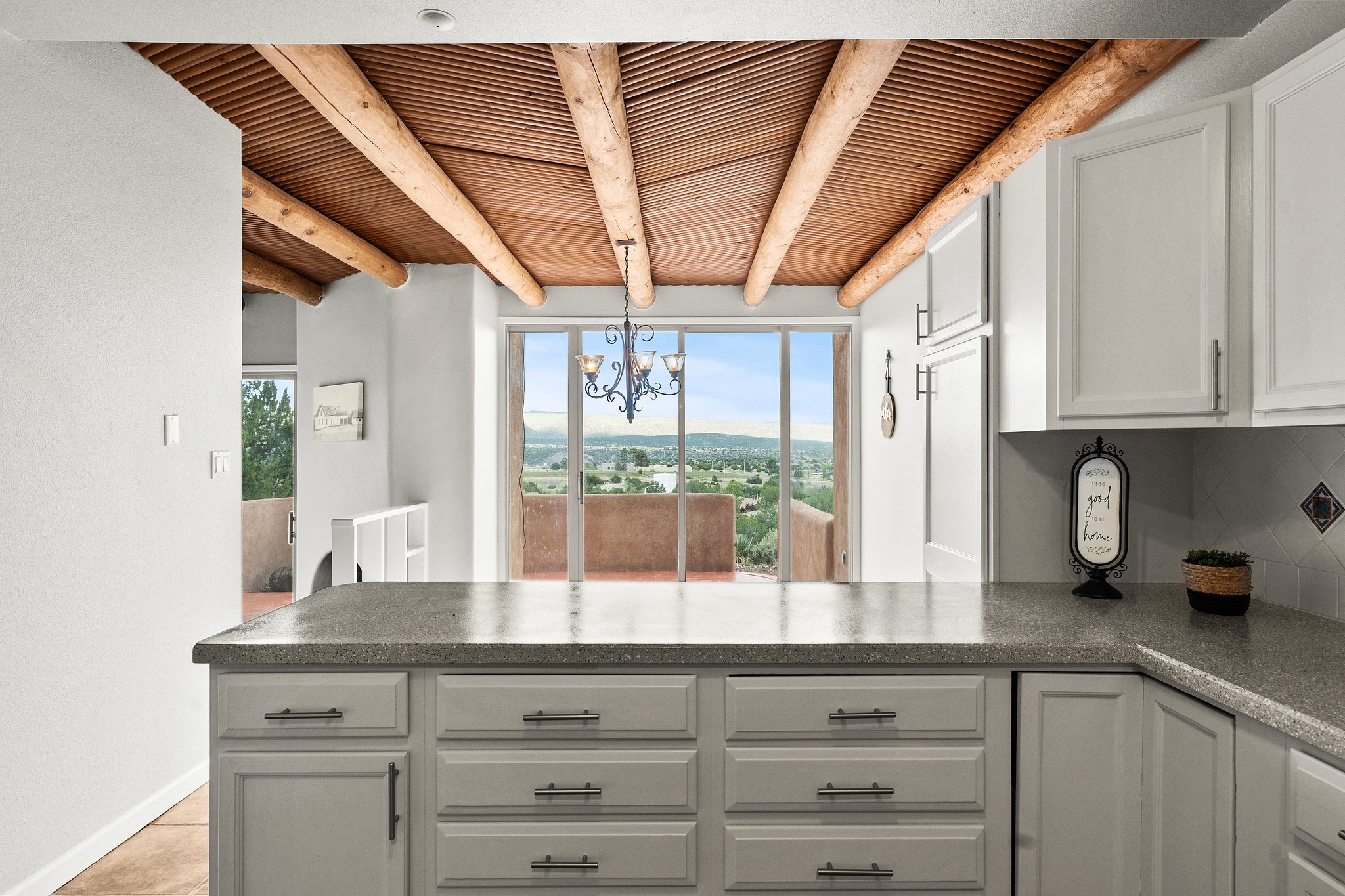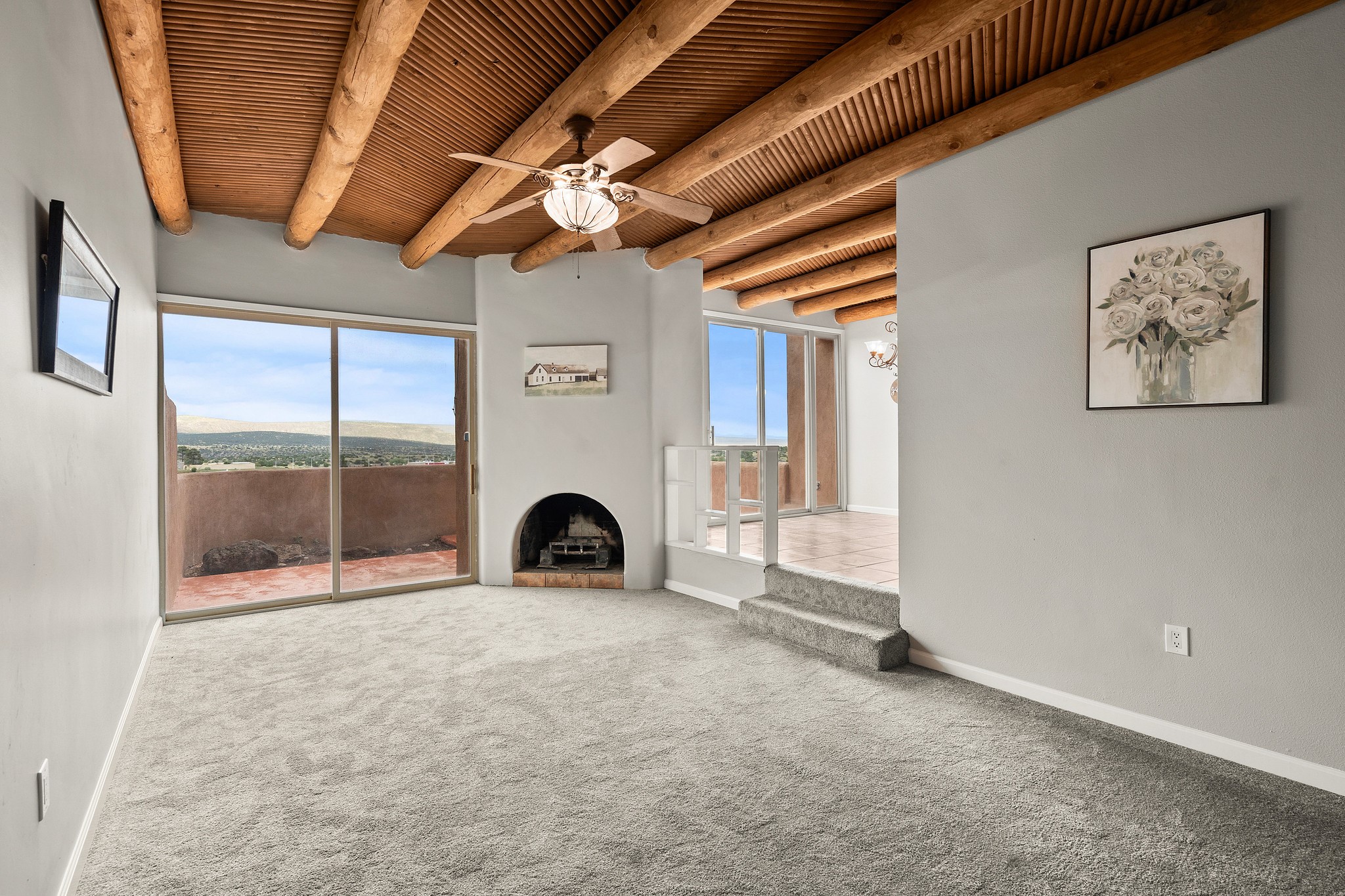 Extensively updated multi level townhome that is move in ready and on an end lot! 100K worth of upgrades. Exterior features a new roof, new stucco, and new swamp cooler, and a new furnace. Inside: fresh paint, new carpet, new tile in kitchen & primary bath, updated kitchen, and new appliances. The garage features a new insulated door, epoxy floor, and fresh paint. Bathrooms have new toilets, shower fixtures, and upgraded shower door. Bright, open spaces with great natural lighting, show casing vigas, and a cozy Kiva fireplace. The spacious primary bedroom offers a walkout balcony with stunning views. Minutes from Cochiti golf course and Cochiti lake, with breathtaking skies and scenic views all around! Don't miss out on this spectacular home! Washer/dryer and pool table included.