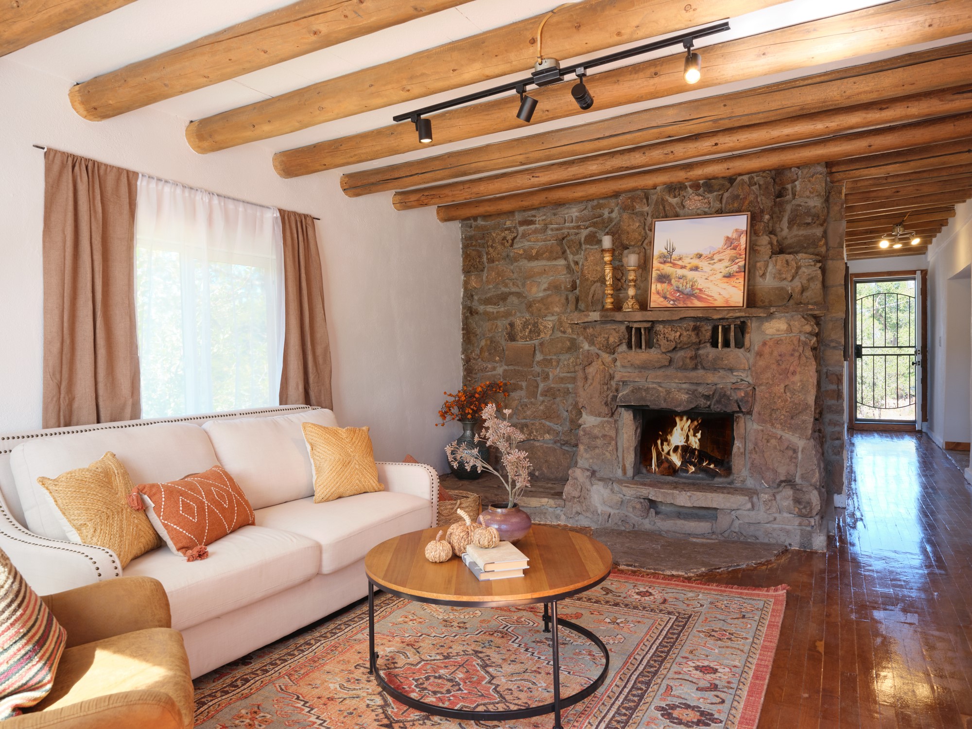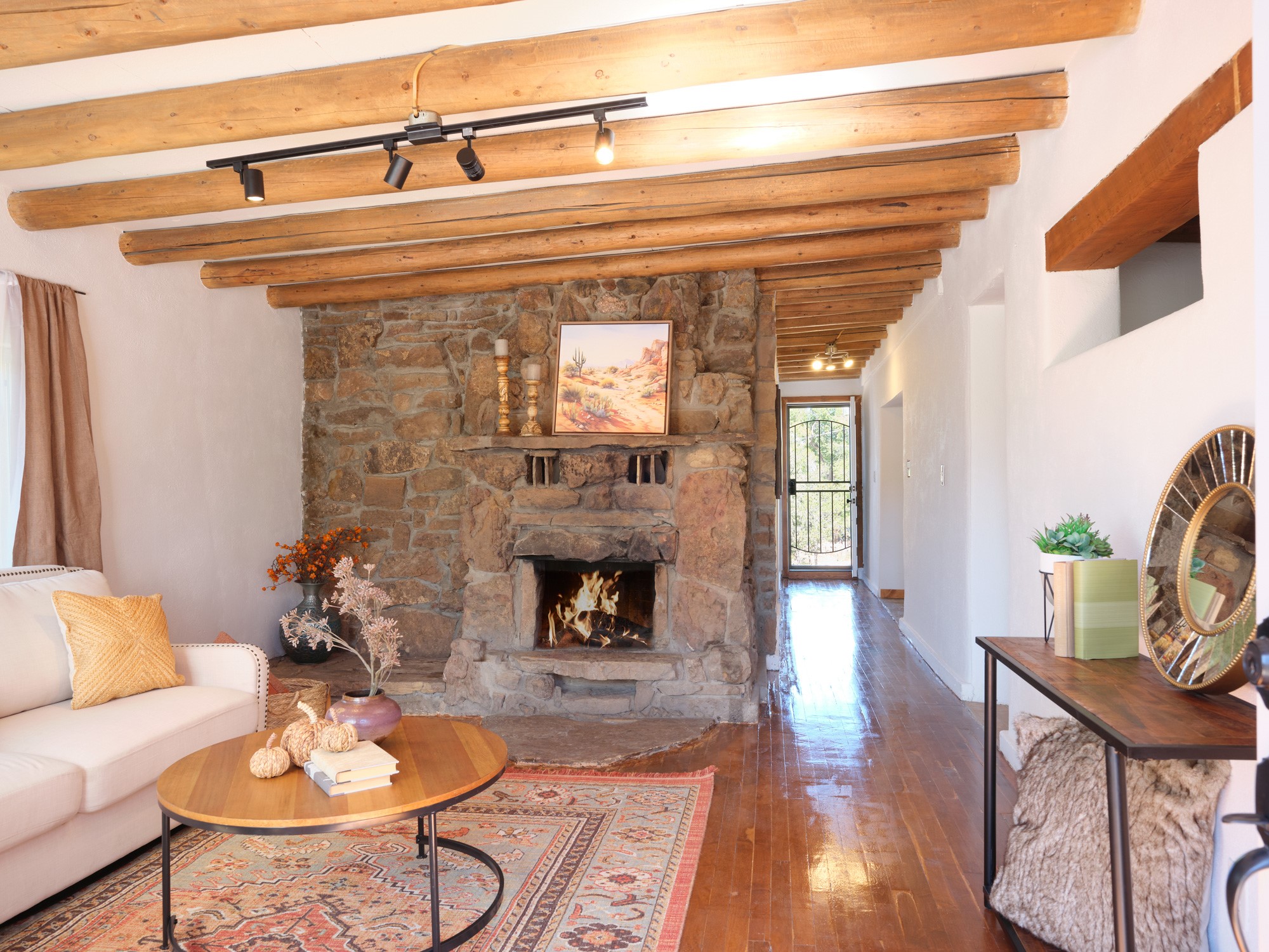 Nestled in one of Santa Fe's most desirable neighborhoods, this 2 bedroom, 1 bathroom home sits on one of the largest lots currently available in the area at .42 acres. This rare opportunity provides endless options add a casita, build another home, create a garage, or design outdoor living spaces that take full advantage of the hillside setting.The existing home is filled with Southwestern character, featuring viga ceilings and a cozy fireplace. Natural light flows through the inviting floor plan, offering a comfortable balance of charm and functionality.Step outside to terraced grounds with room to expand and enjoy stunning views of the Sangre de Cristo Mountains. located near St. John's College, The Santa Fe Watershed, Santa Fe Ski Basin, Preparatory school, Cristo Rey Church and several elementary schools. Canyon Road, galleries, shops, and 5 minutes from downtown Santa Fe Plaza.