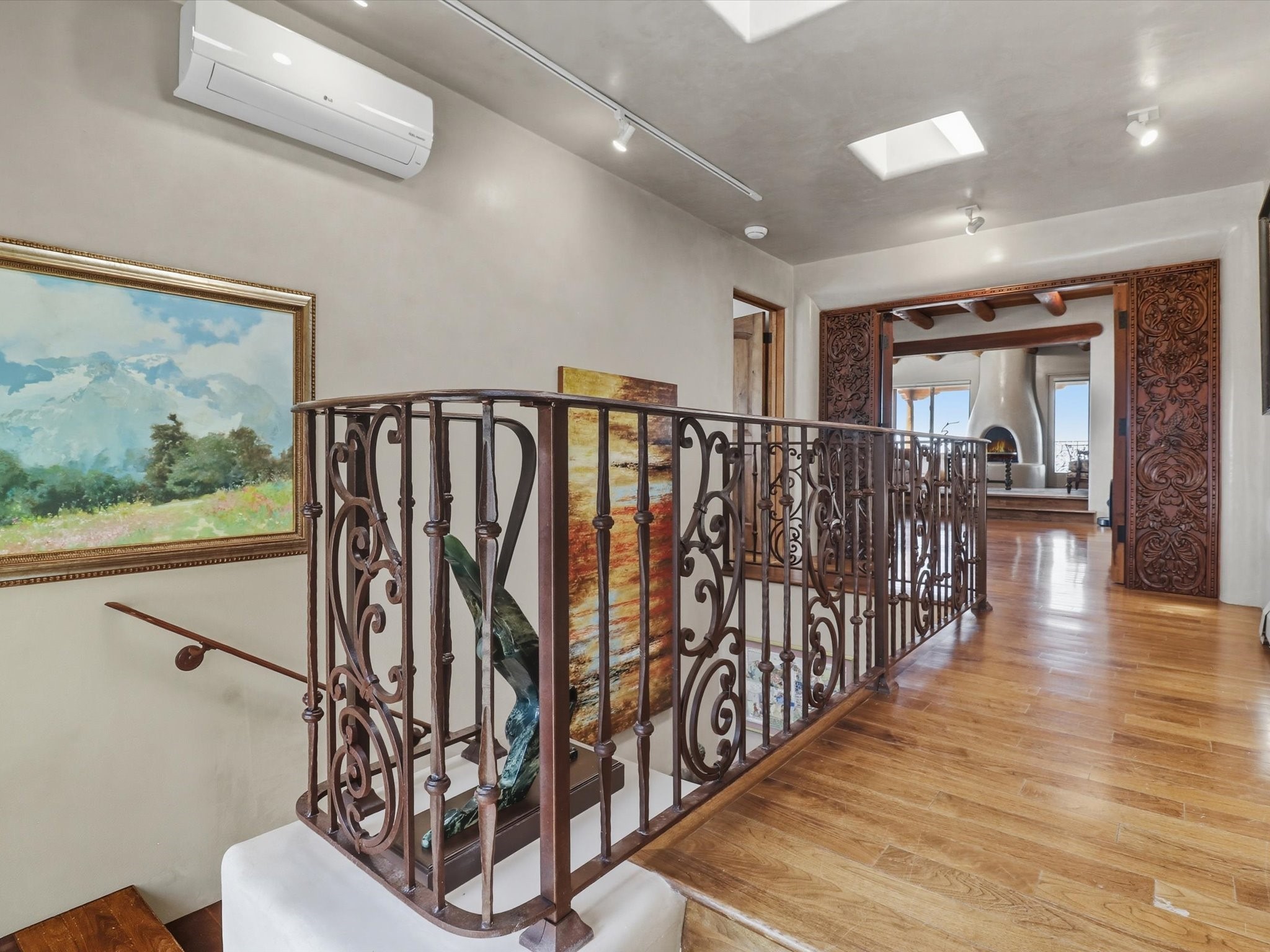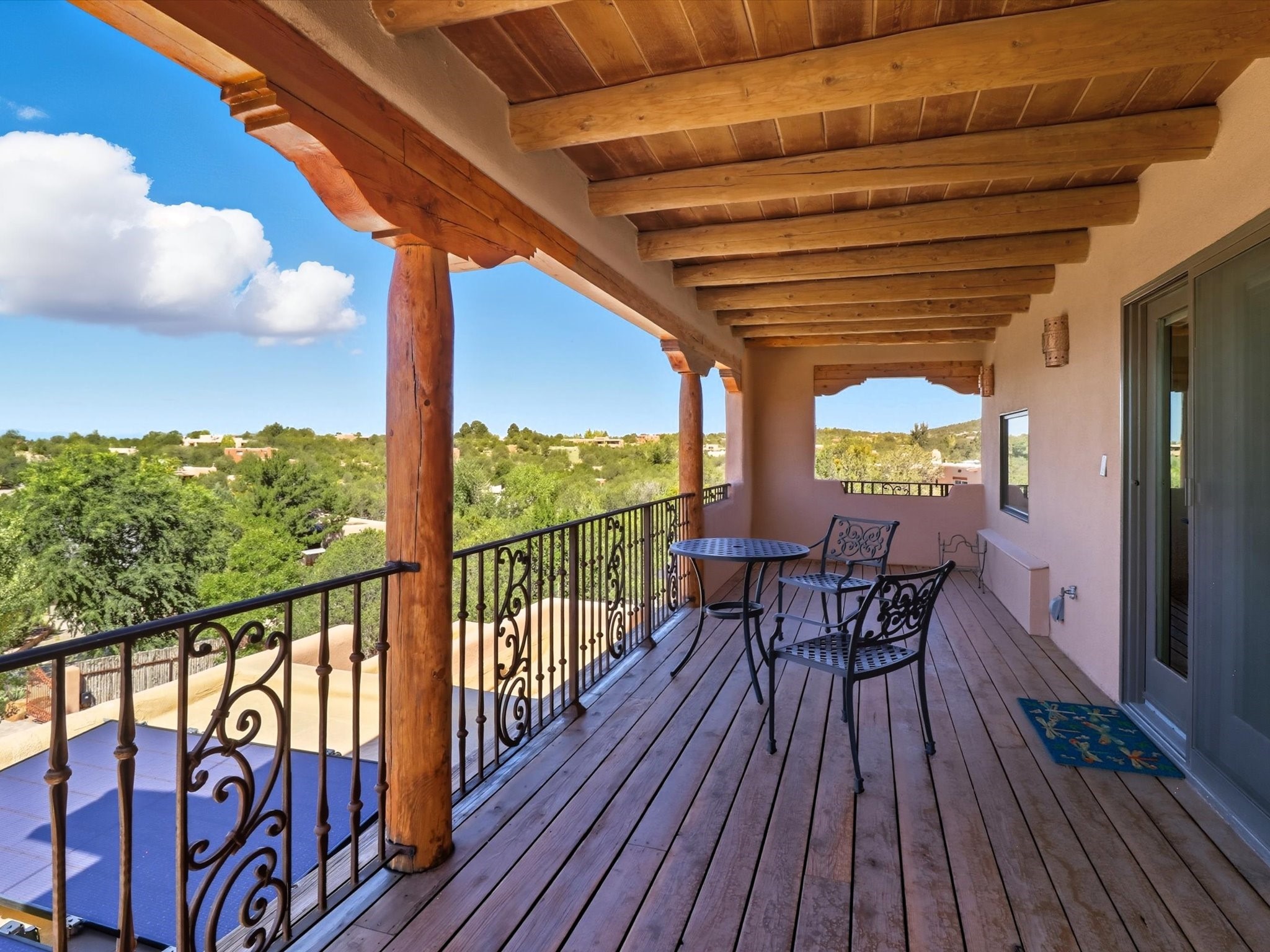 WANTED: A New Owner With a Taste for the Extraordinary! Be prepared to be inspired--inspired to live effortlessly in a mountain escape where Old World charm meets modern-day refinement. This elevated estate isn't just a home, it's a sanctuary, a hideaway, a place where sunsets stretch for miles and every corner whispers character. Step through newly designed gardens with stone walkways and an elegant driveway that sets the stage for what's within. Inside, custom wood accents, artisan ironwork, walnut floors, and hand-troweled plaster walls warm the soul. Two living areas -- plus a sunlit, heated, and cooled solarium with a sauna off to the side -- offer spaces to gather and relax. The primary suite is its own retreat, with custom entry doors, a sitting area anchored by a kiva fireplace, and direct access to a private deck where sunsets put on their nightly show. The owners have thoughtfully elevated this property with recent upgrades: a transformed garden landscape, extensive stonework, Anderson windows and doors, and major enhancements to the arroyo. Outdoors, the amenities read like a resort--solar panels, a pool with two hot tubs and a waterslide, plus all-new heating systems to keep each pool zone comfortable year-round. And there's more: an amazing shed ready for conversion to living space, plus the possibility of adding a casita at the top of the lot--perfect for guests or creative ventures. This isn't just a property. It's a rare opportunity to claim your own mountain retreat, one where history, craftsmanship, and modern comfort converge.REWARD: Unmatched views, inspired living, and the chance to call this mountain haven your own.