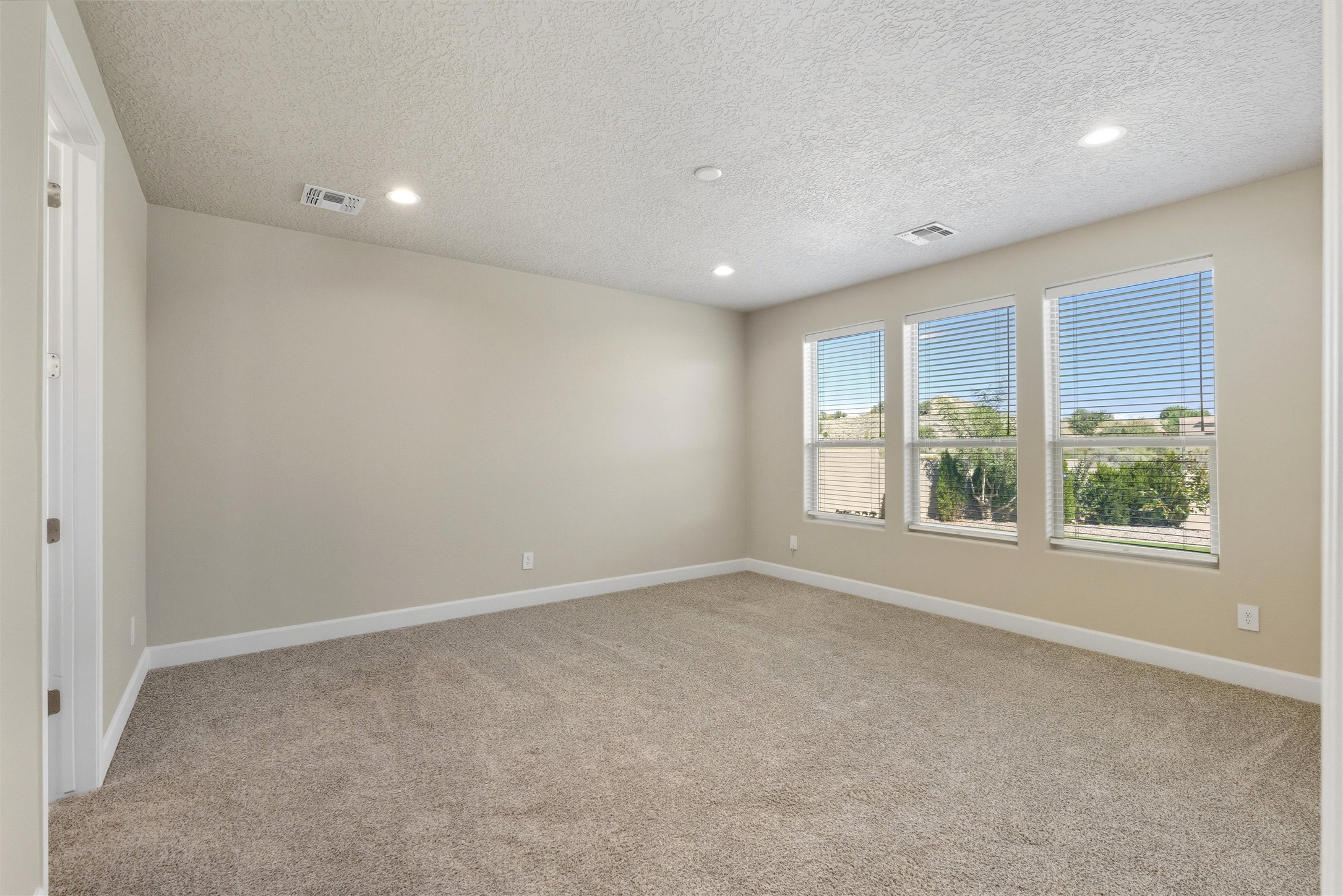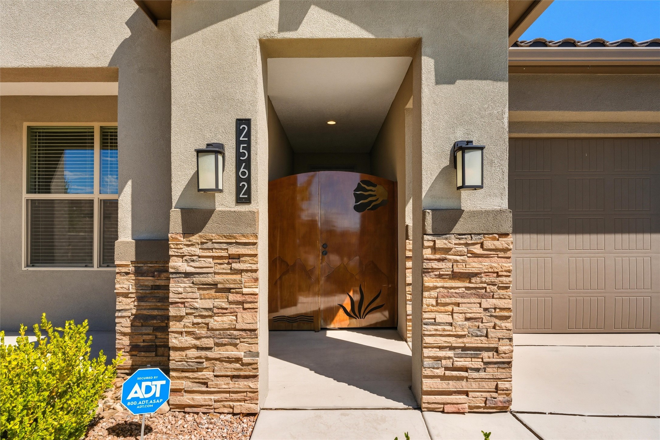 Discover luxury and comfort in this stunning single-story Hakes Brothers home tucked away at the end of a cul-de-sac. Just 3 minutes to Unser and under 20 minutes to I-25, this 4-bedroom, 2-bathroom home offers both convenience and elegance. The community features a park, pool, and outdoor water feature, with the fire department only 2 minutes away. The exterior showcases stacked stone accents and a custom metal entry gate. Inside, soaring 7-foot doors and an open floor plan set the tone. The gourmet kitchen includes a walk-in pantry, gas cook top, large island, and flows seamlessly into the living area, while the split primary suite ensures privacy. Step outside to your backyard retreat on a nearly -acre lot with no rear neighbors. Enjoy a large covered patio designed for entertaining with a built-in griddle, 5' gas fireplace, oversized 80'' fan, and a fully automated commercial-grade screen system that blocks sun and wind for year-round comfort and privacy. Additional features include a 220-volt EV outlet in the garage, a fully paid-off solar system, and over $160,000 in custom upgrades that make this home stand out. At only 3 years old, this home truly has it all! Schedule your walk through today!!!