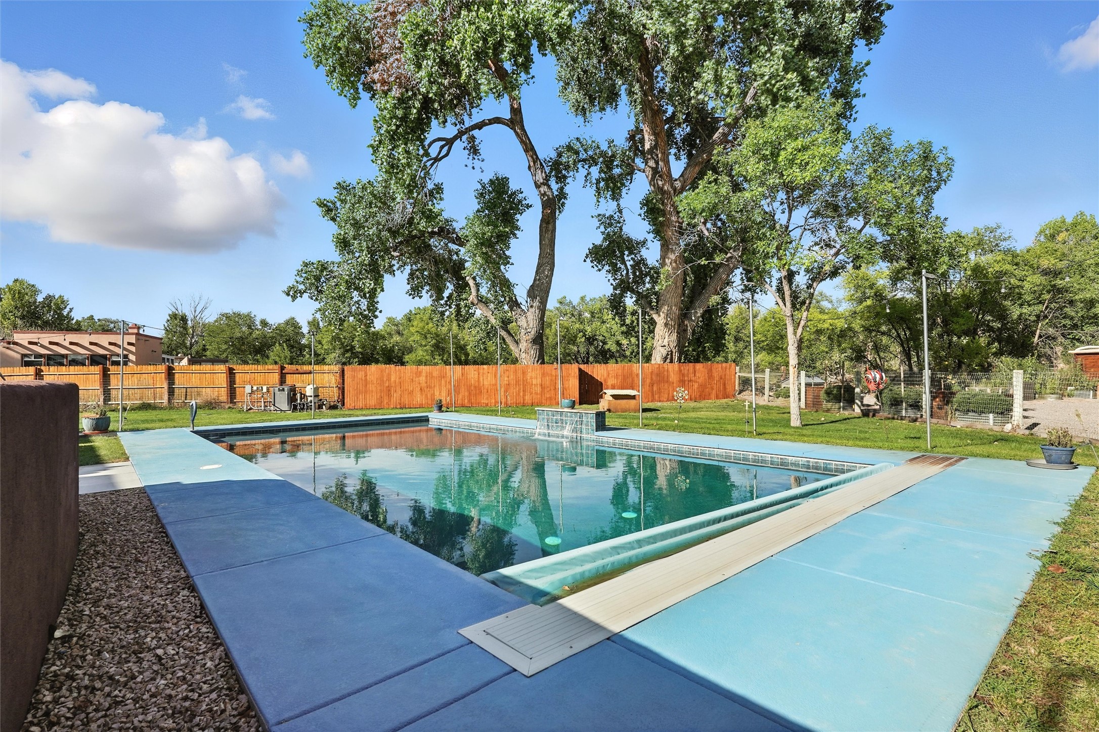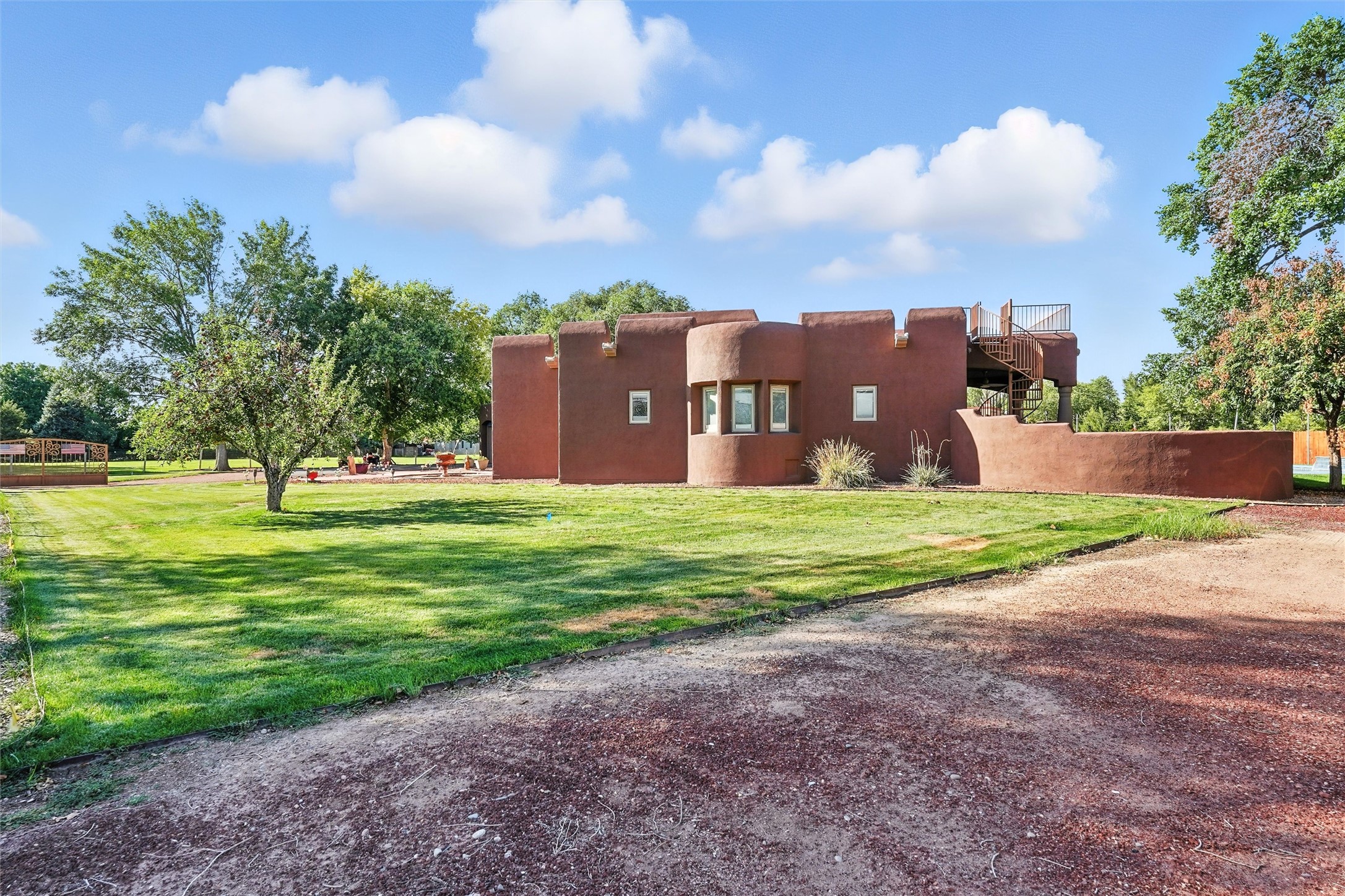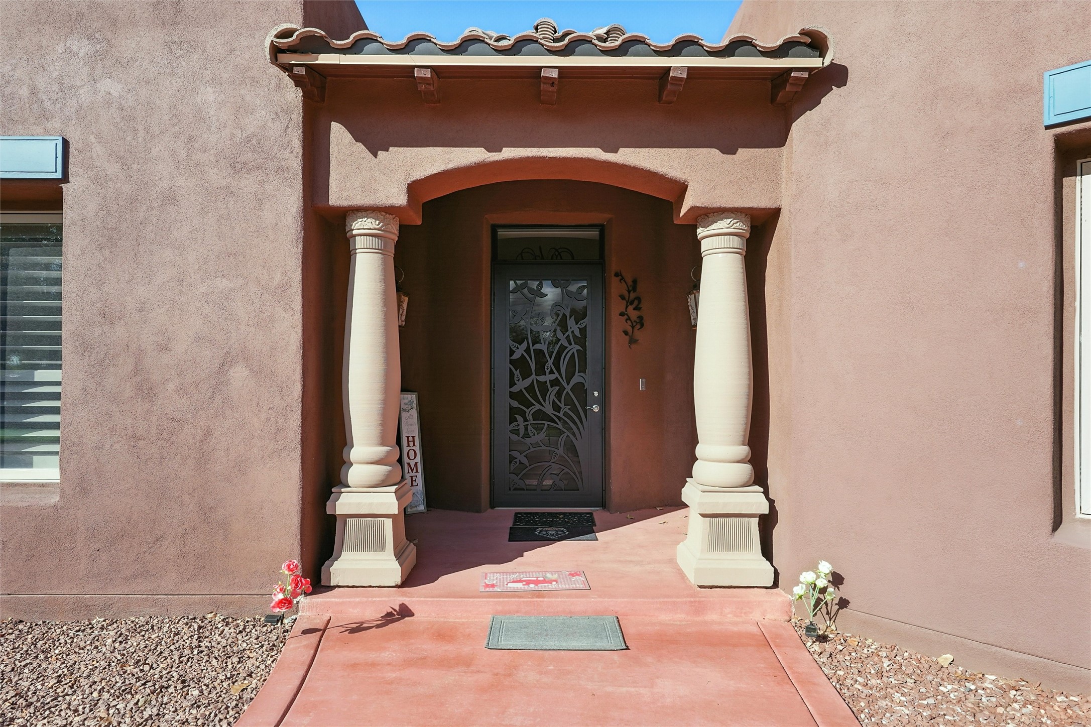 IMAGINE WAKING TO THE BOSQUE'S COTTONWOODS AT YOUR DREAM HOME! Nestled on a quiet cul-de-sac in NM's coolest village with PAID OFF SOLAR, this custom adobe exudes luxury. Sunlight streams thru clerestory windows and beam ceilings, lighting travertine floors in a vast great room with a fireplace. The gourmet kitchen boasts granite counters, prep sink, WOLF six-burner cooktop, oven, micro, and warming drawer--its huge island ideal for gatherings. A separate outdoor kitchen awaits. The master suite features a loft for an office, plus a spa-like bath with steam shower, jetted tub, and double sinks. Four beds + office and 4.5 baths ensure room for all. Pella windows frame deck views; a heated 4-car garage awaits. Dive into the inground pool or relax on an open patio. Seize the day and call!