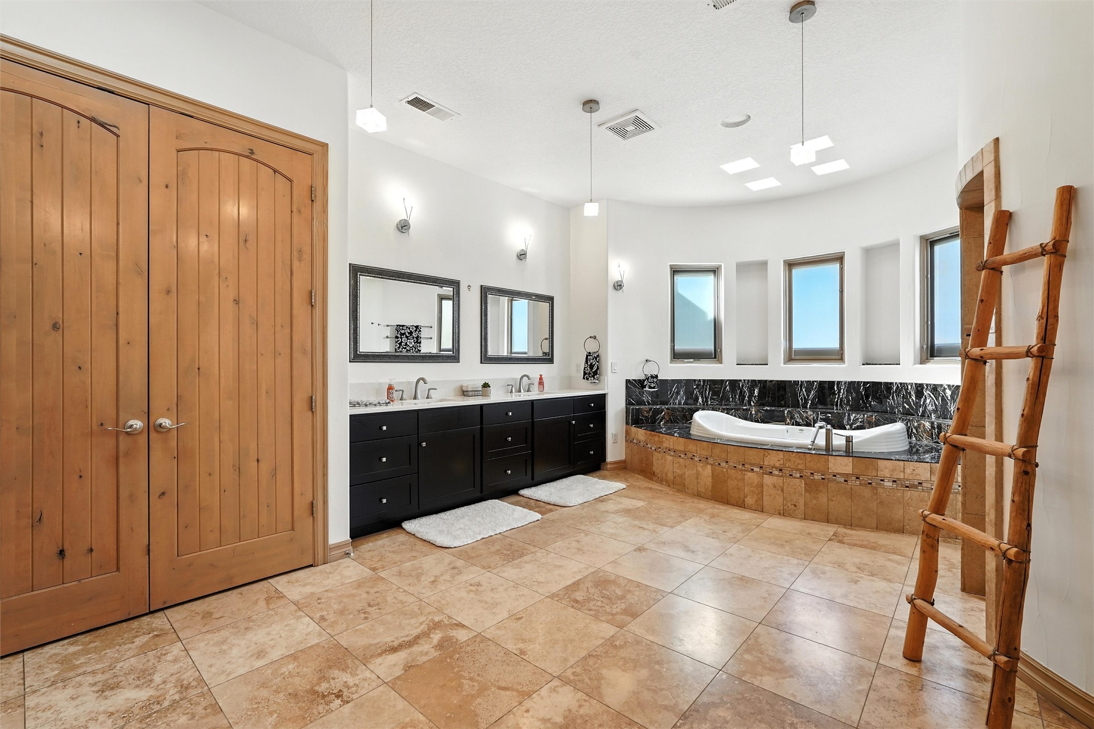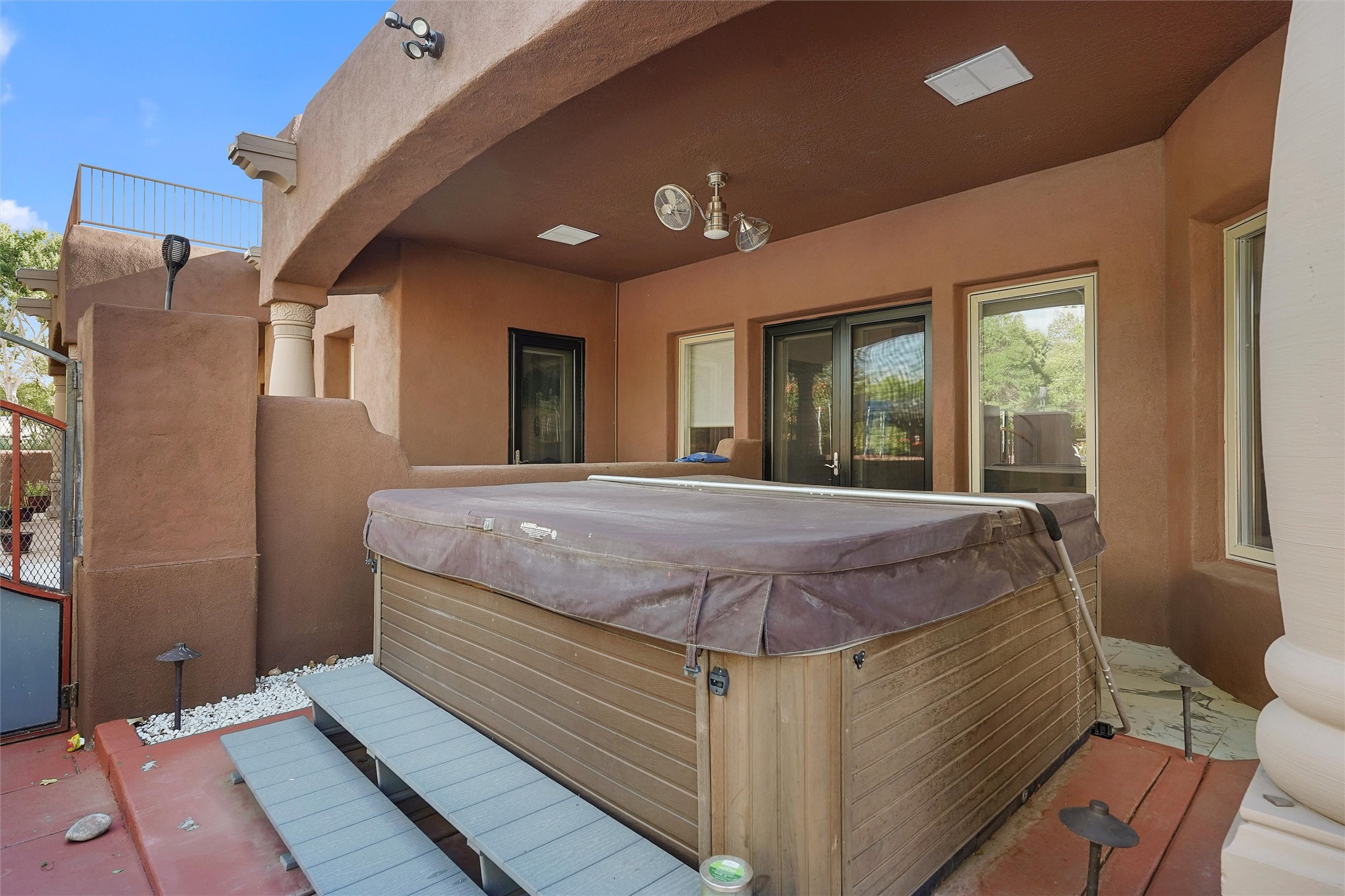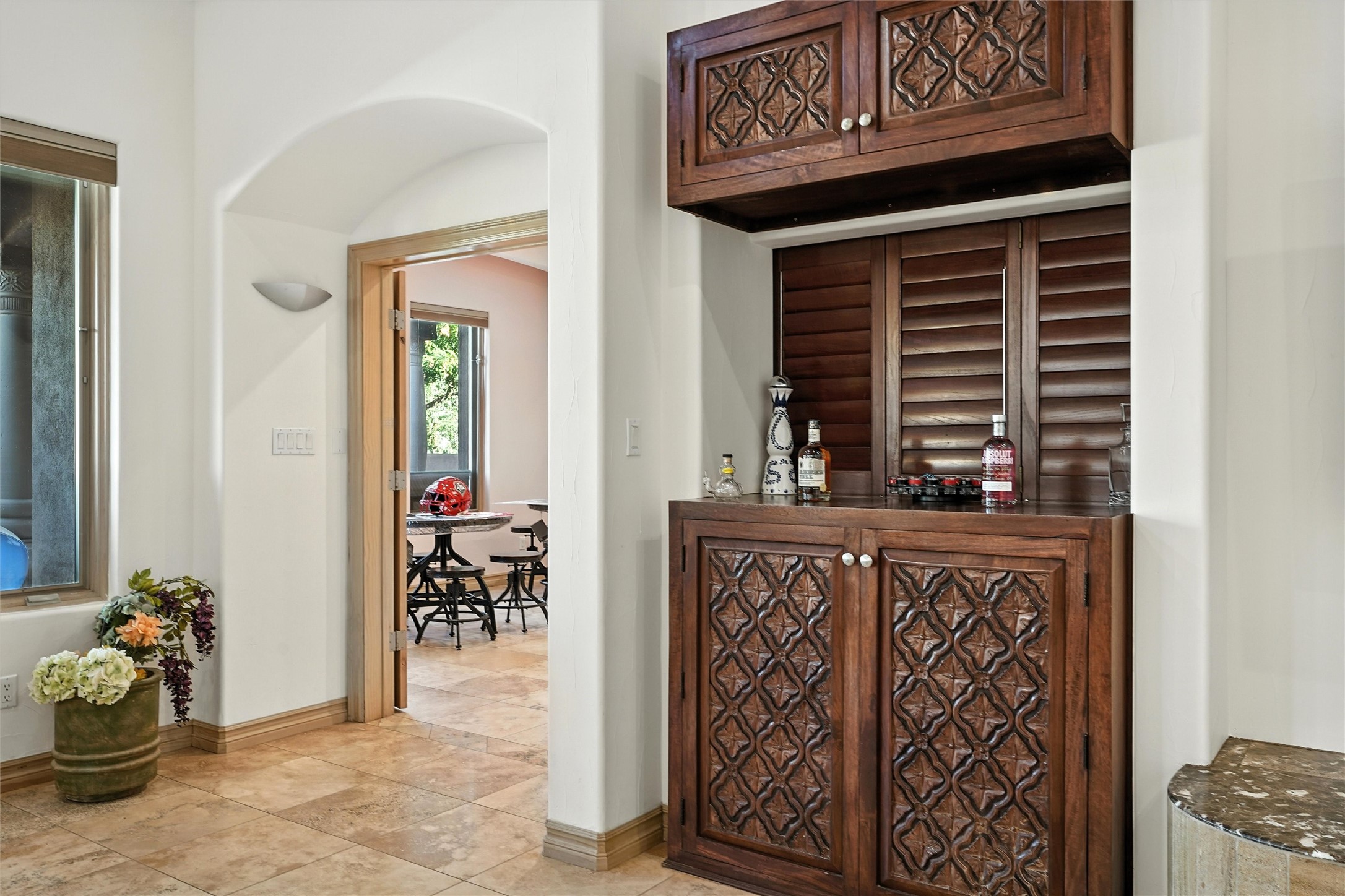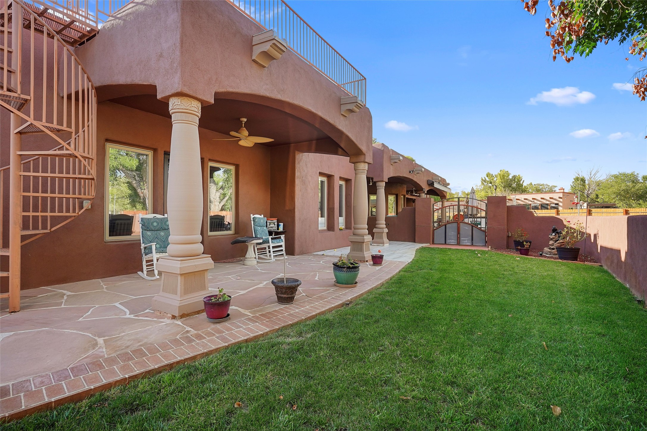 IMAGINE WAKING TO THE BOSQUE'S COTTONWOODS AT YOUR DREAM HOME! Nestled on a quiet cul-de-sac in NM's coolest village with PAID OFF SOLAR, this custom adobe exudes luxury. Sunlight streams thru clerestory windows and beam ceilings, lighting travertine floors in a vast great room with a fireplace. The gourmet kitchen boasts granite counters, prep sink, WOLF six-burner cooktop, oven, micro, and warming drawer--its huge island ideal for gatherings. A separate outdoor kitchen awaits. The master suite features a loft for an office, plus a spa-like bath with steam shower, jetted tub, and double sinks. Four beds + office and 4.5 baths ensure room for all. Pella windows frame deck views; a heated 4-car garage awaits. Dive into the inground pool or relax on an open patio. Seize the day and call!