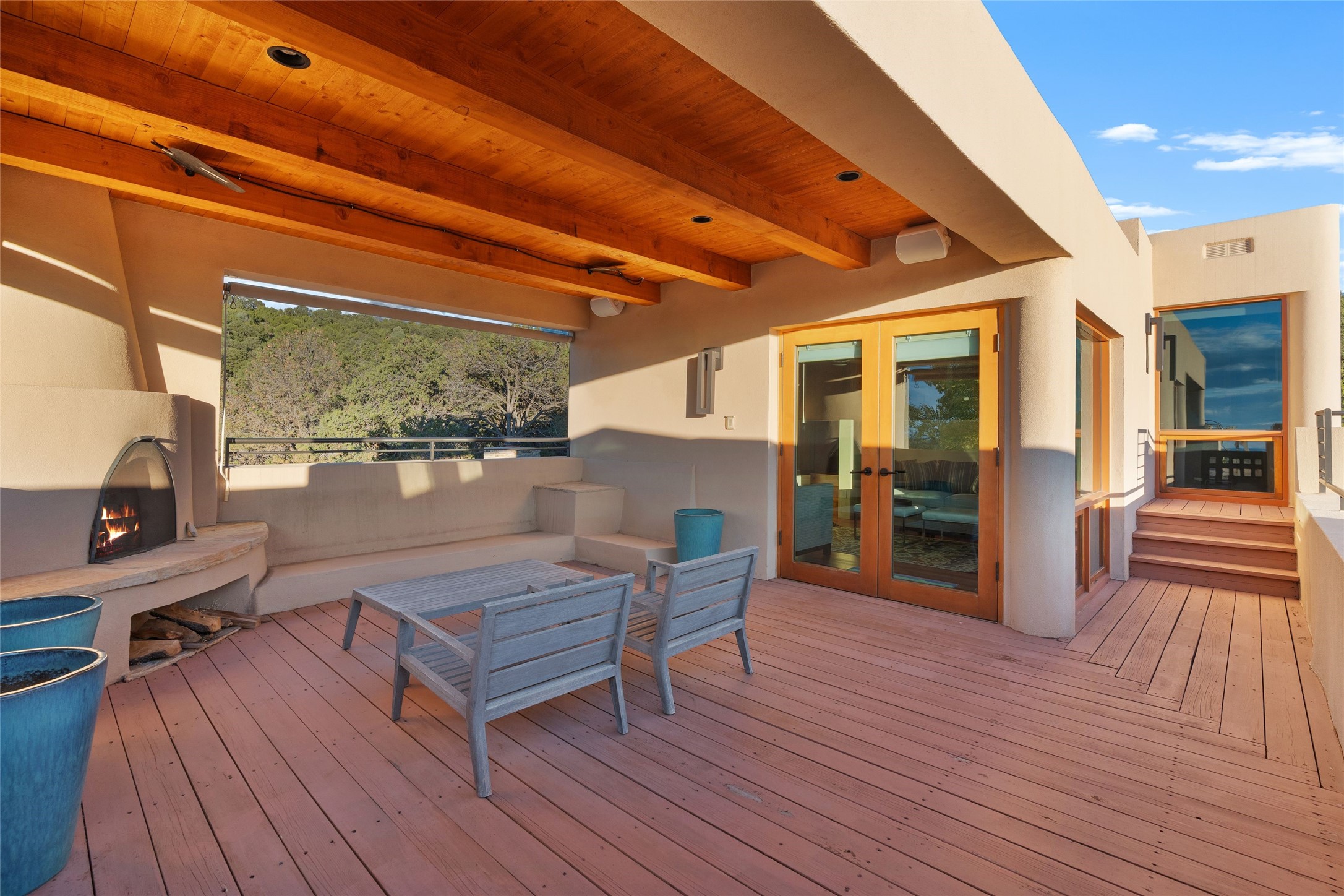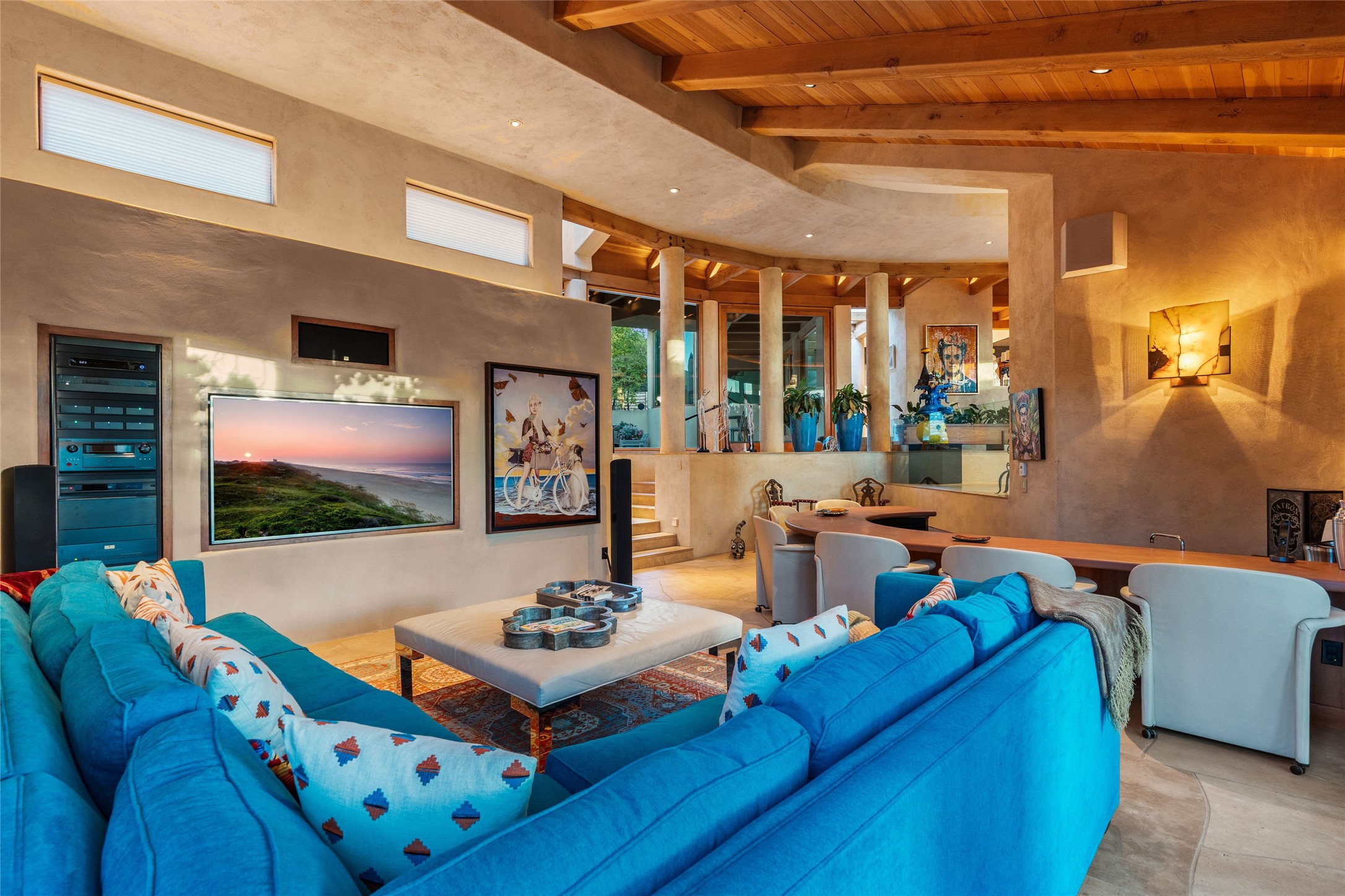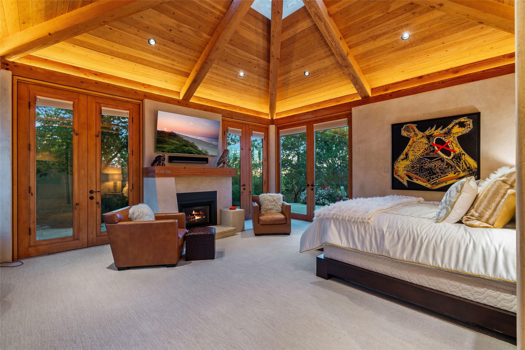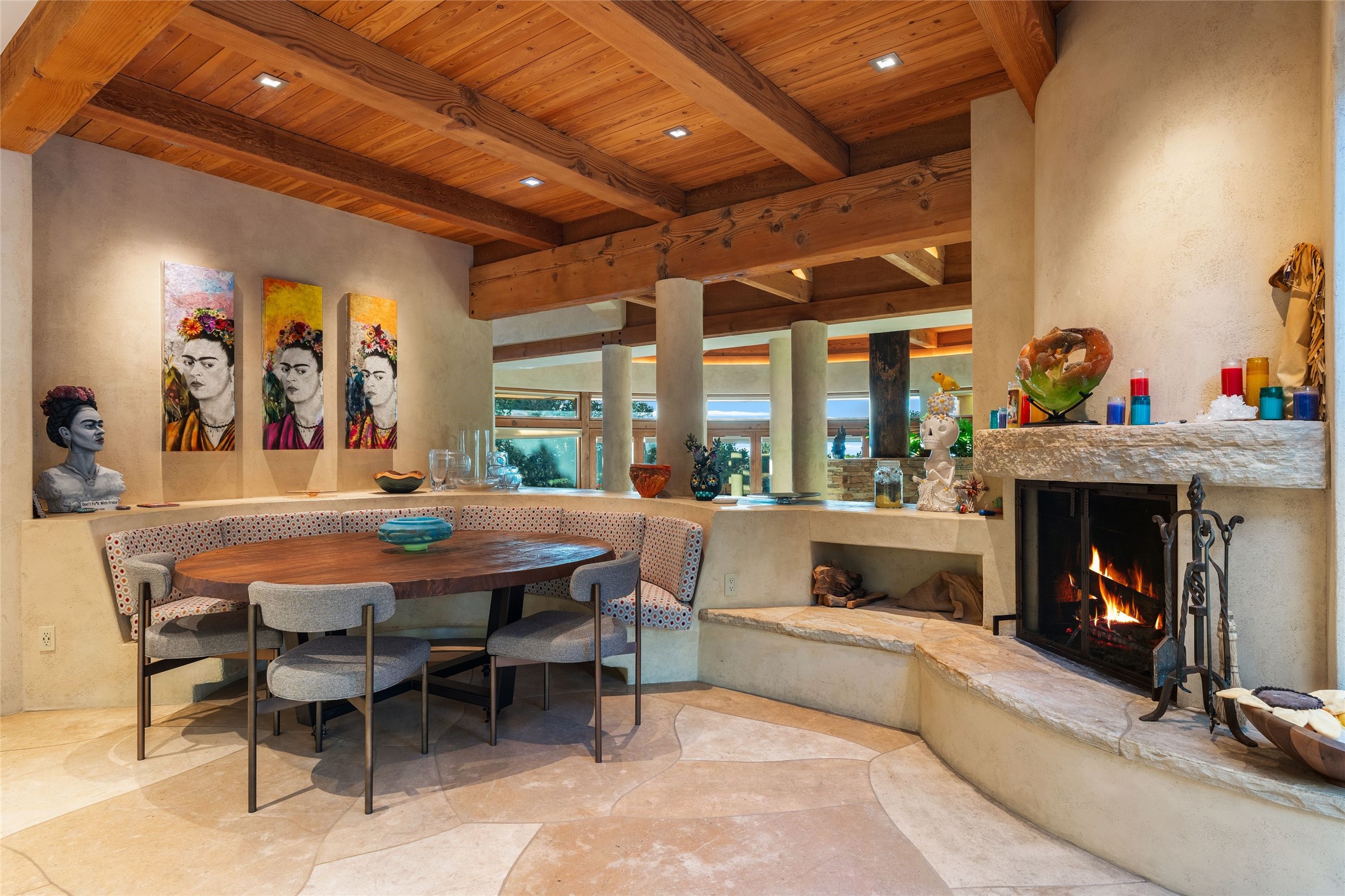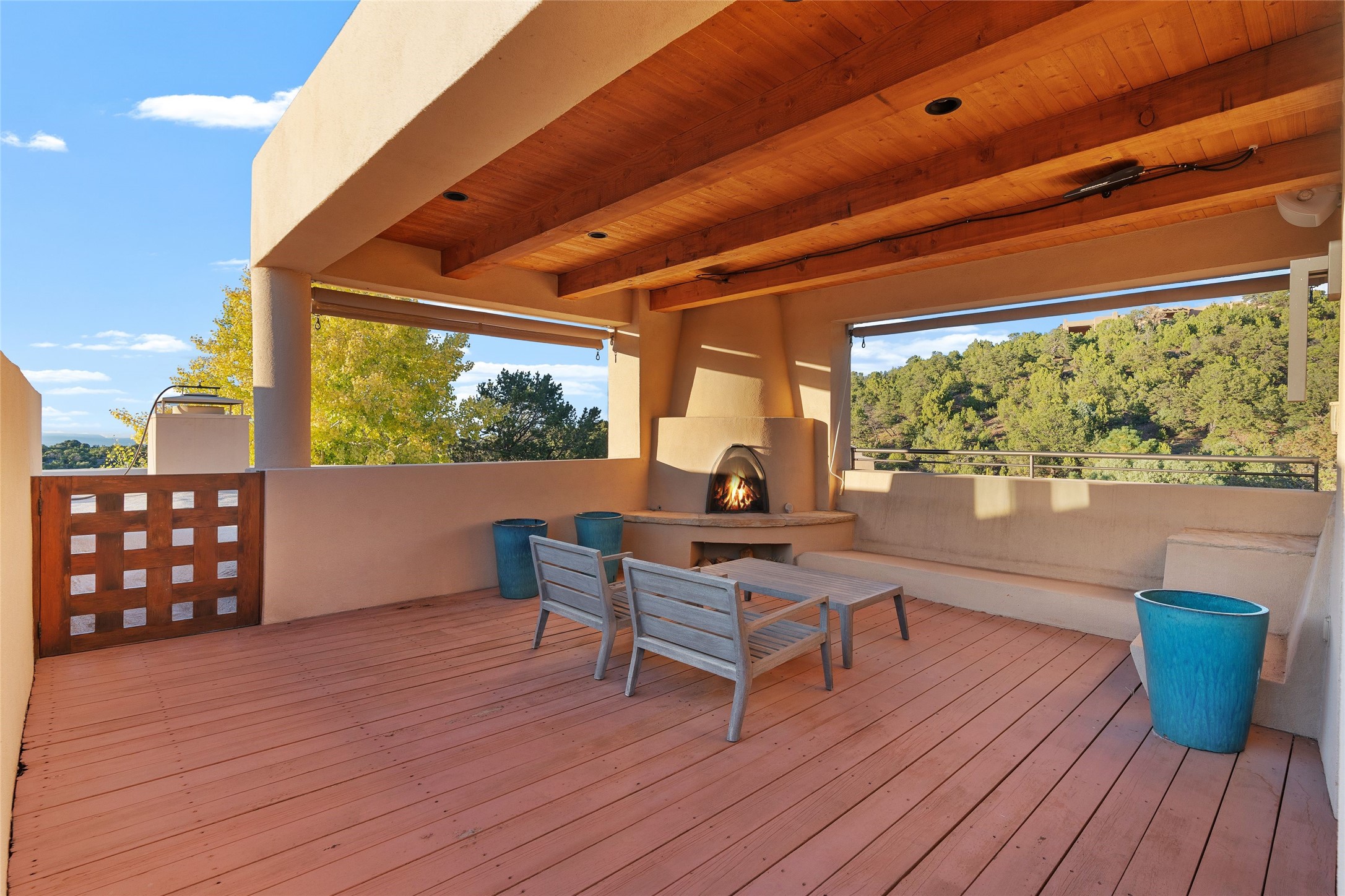 A Rare Masterpiece in Sierra del Norte! Welcome to 1056 Sierra del Norte--an architectural triumph and one of Santa Fe's most extraordinary residences! This estate offers breathtaking panoramic views and unmatched privacy from the moment you pass through the gated entrance. The heated driveway, stacked stone retaining walls, full-capacity generator, and an oversized four-car garage set the tone for the exceptional quality of this one-of-a-kind residence. Inside, grand entertaining spaces flow effortlessly around a world-class chef's kitchen, where top-tier appliances and exquisite finishes inspire culinary creativity. The design and craftsmanship throughout the home are truly unparalleled, with amazing custom details and impressive execution of unique design elements throughout. The expansive living room and formal dining area are anchored by a stunning natural stacked-stone gas fireplace, creating warmth and elegance. Enjoy evenings in the spacious media room, unwind at the custom bar, or challenge friends to Pool or Darts in the dedicated game room. Upstairs, a versatile studio space--perfect as a fifth bedroom--features a sitting room, bath, and access to a private viewing deck. Step outside to discover a sanctuary of lush, mature landscaping, multiple covered portals and patios, and a high-end outdoor kitchen ideal for alfresco dining. The infinity-edge pool and hot tub, complemented by a newly-built pool bath house, offer resort quality relaxation at your own property. The primary suite is a retreat unto itself, with a cozy library, a grand sleeping room, two fireplaces, a spa-inspired bath, and a magnificent walk-in closet. Each guest bedroom is a private suite, thoughtfully separated for lavish comfort and complete tranquility. This is more than a home--it's a lifestyle! With room to grow and views that inspire, 1056 Sierra del Norte is a rare opportunity to own a piece of Santa Fe paradise! Included with the home is a vacant, unimproved adjacent lot, offering rare potential for future expansion or permanent open space.