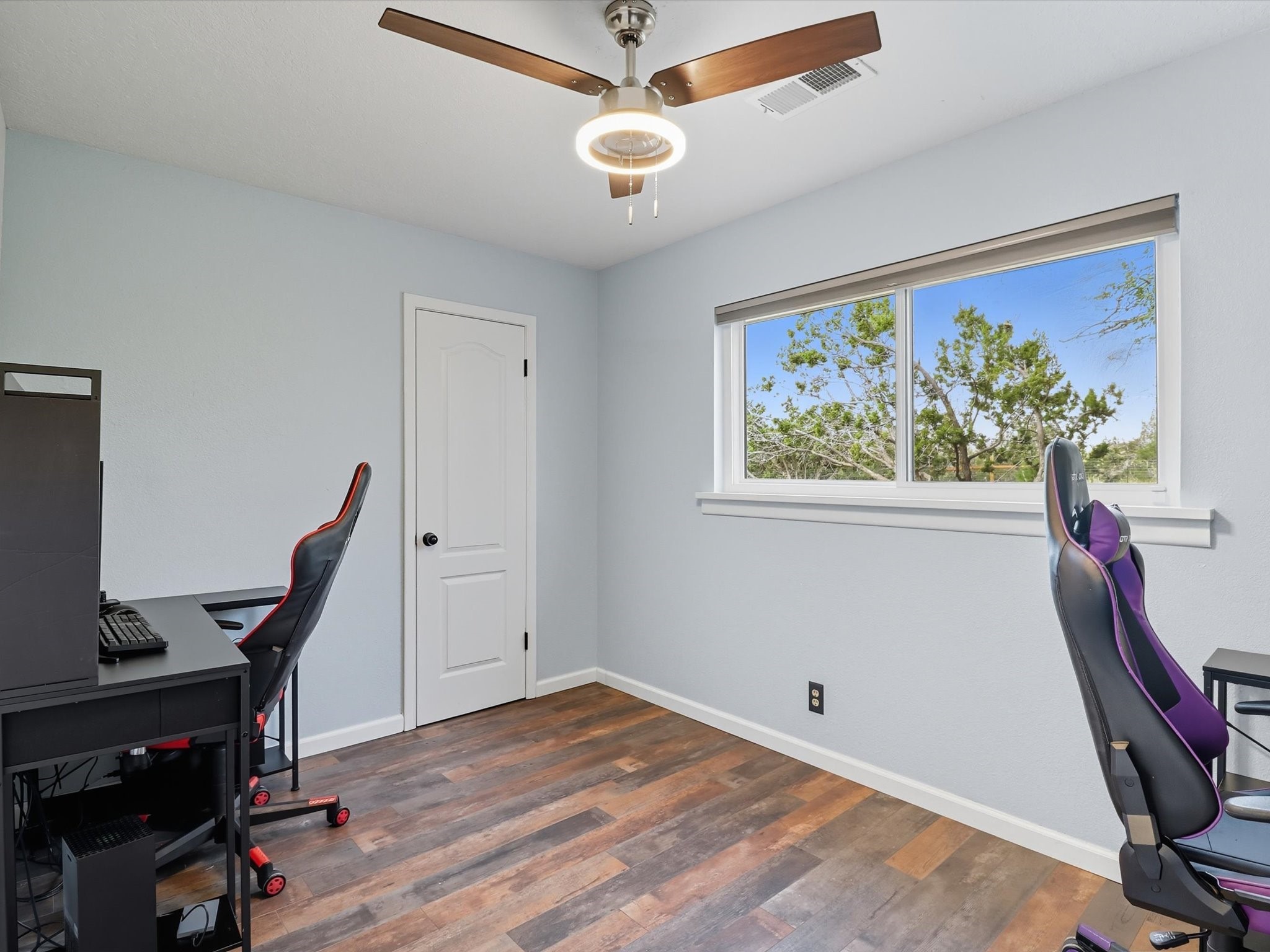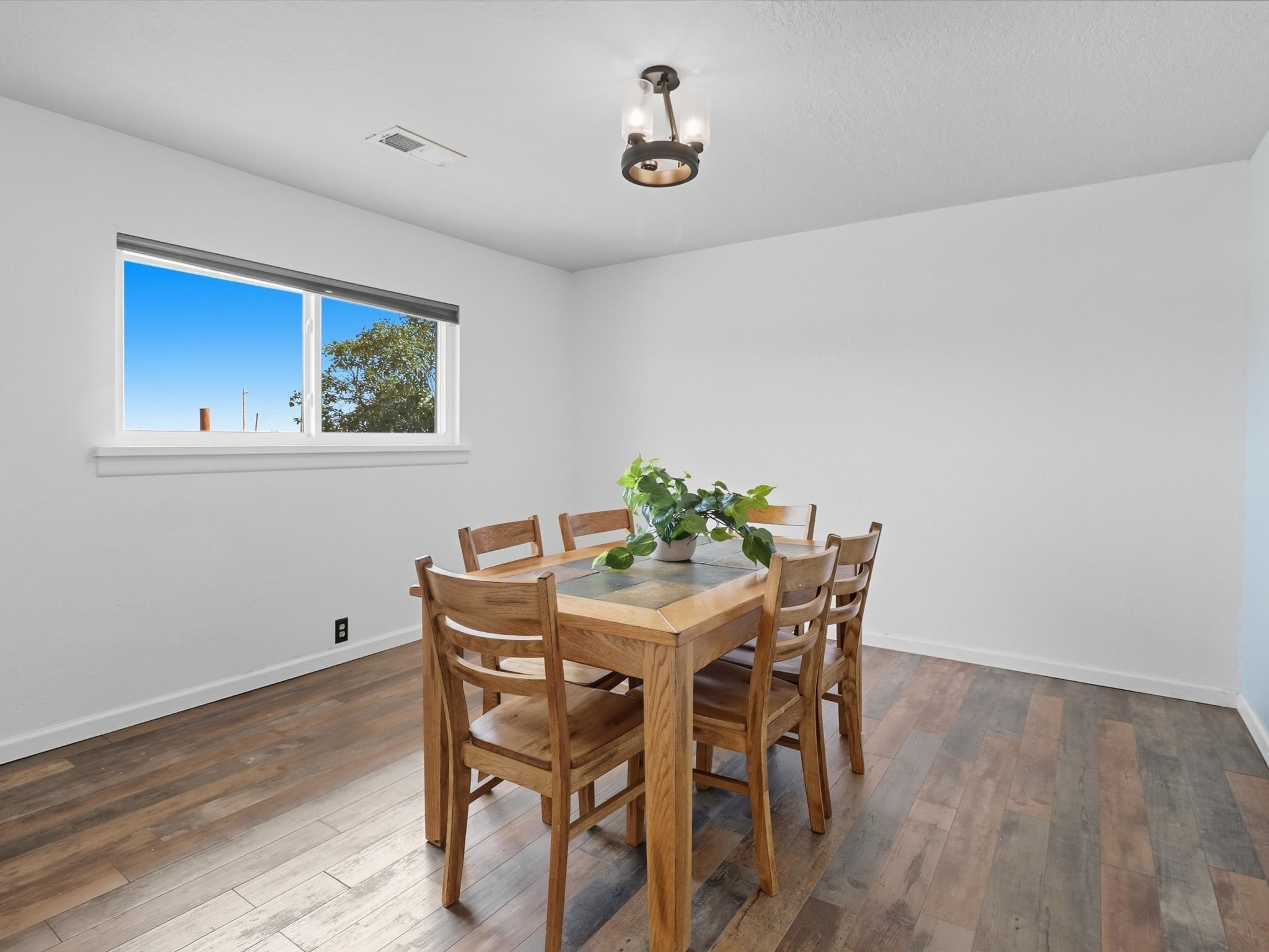 Discover peaceful, single-level living on a sprawling 3-acre lot in Edgewood, where modern luxury meets tranquil country charm. The heart of this home is the fully remodeled kitchen, featuring custom-crafted cabinetry, sleek granite countertops, and new luxury vinyl flooring that flows throughout the home. In 2021 new windows were put in the home, including a large living room window that frames a spectacular view of the mountains and surrounding landscape. The property includes a fully fenced acre ideal for pets or outdoor recreation, leaving 2 acres for horses or recreational vehicles. The spacious, detached garage offers ample room for vehicles, storage, or a workshop, catering to any hobbyist. No HOA offers unmatched freedom and flexibility. This property is full of upgrades and ready for you to move in.
