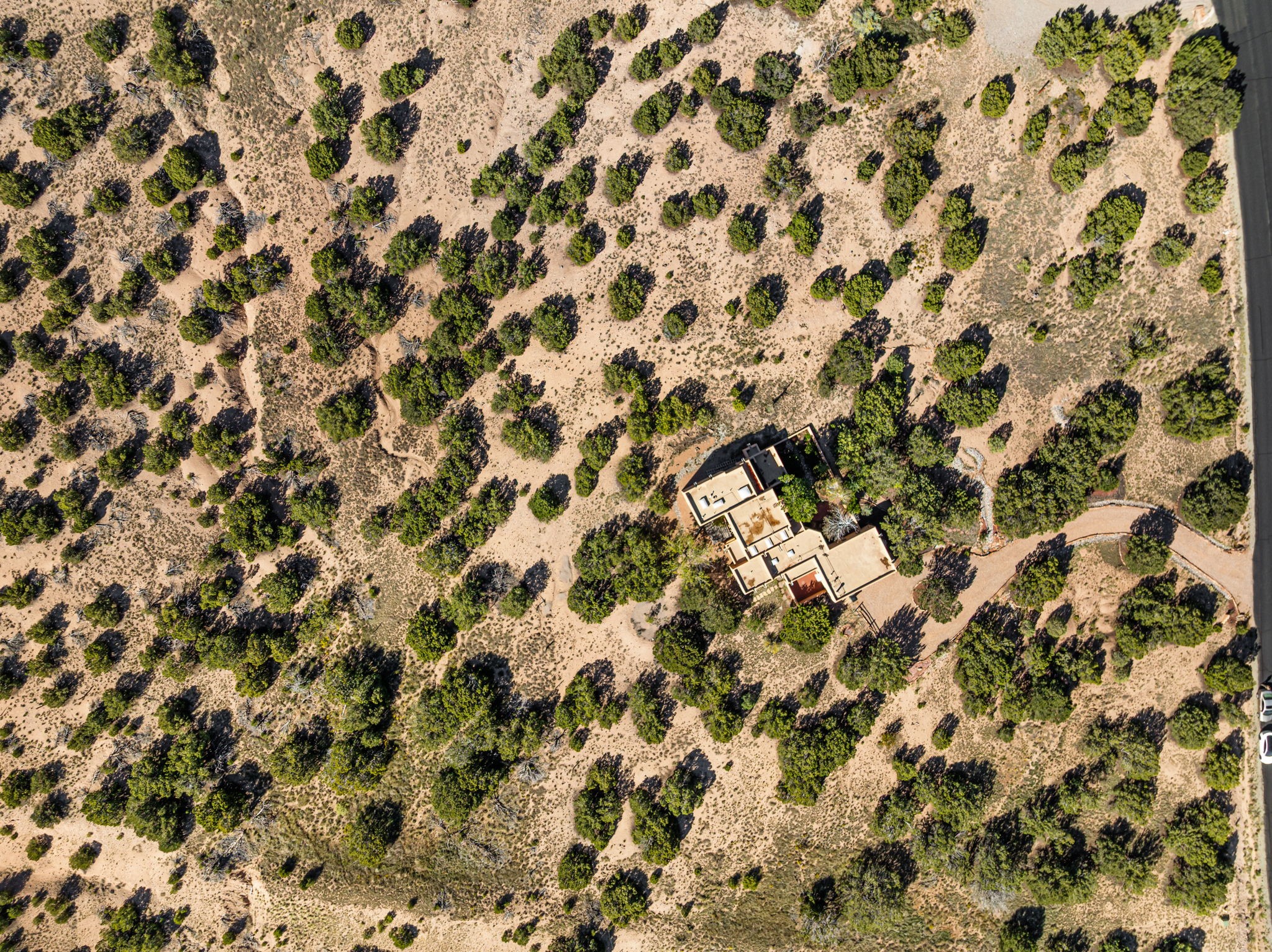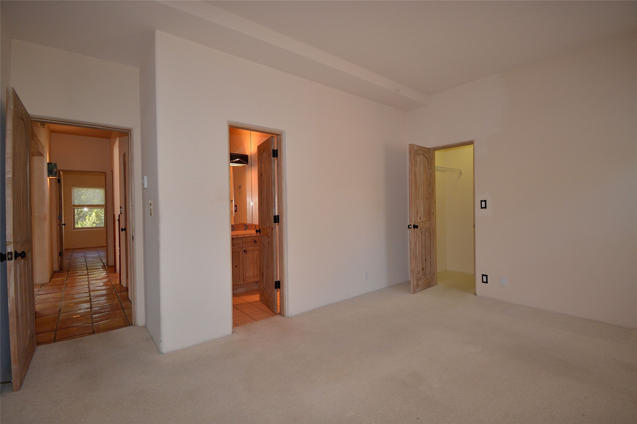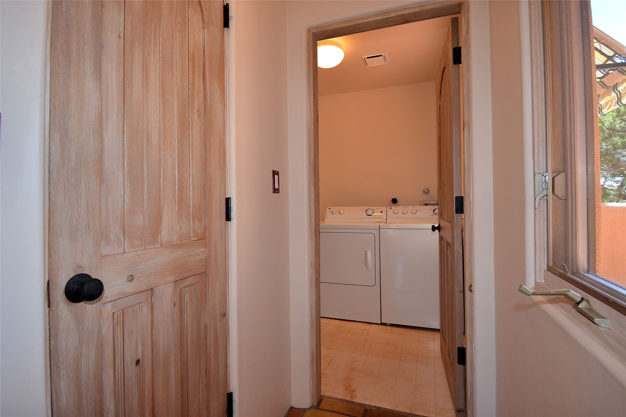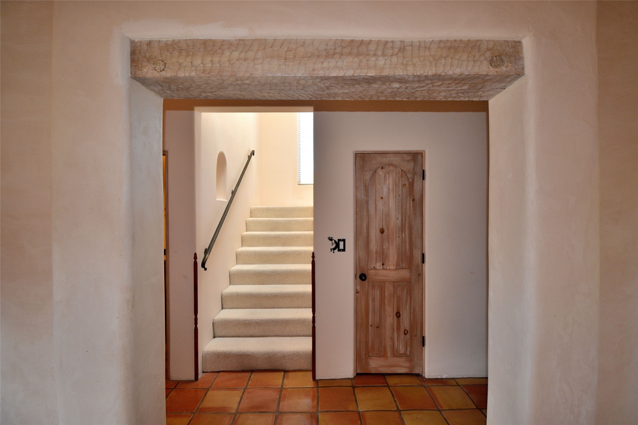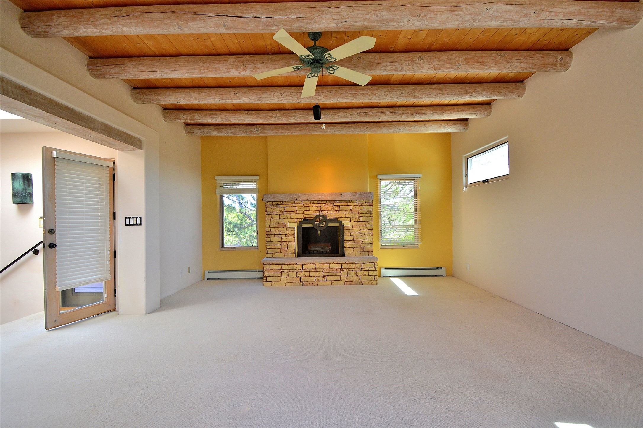 Nestled on two acres dotted with pion and juniper, this inviting Santa Fe-style home blends traditional charm with modern comforts. A gravel driveway leads to a graceful walkway, which in turn leads to a beautifully landscaped, enclosed front yard, The house features plastered walls, and the ground-level floors are adorned with traditional Saltillo tiles, except for the guest bedroom, which has carpet and an en-suite bathroom. The living and dining rooms feature soaring ceilings with vigas. A gas fireplace in the living room adds ambiance during cold winter nights.The kitchen, featuring skylights, granite countertops, and a gas cooktop, microwave, oven, and fridge/freezer, opens to a breakfast nook on one side, complete with its own private patio. Continuing from the breakfast nook, you enter the laundry and then the garage. On the other side of the kitchen is the dining room. The main level also features a second guest room or den with a nearby half-bath. The downstairs has in-floor radiant heat.Upstairs, the spacious main bedroom offers vigas, a second gas fireplace, radiant baseboard heat, and mountain views on one side and a deck on the other. The adjoining bath offers dual sinks, a Jacuzzi-style tub, a shower with seating, and a walk-in cedar closet.With an alarm system and thoughtful storage throughout, this home offers a blend of traditional Santa Fe style and practicality in a serene setting, just a couple of minutes drive to 599 and access to Santa Fe (approx.10 minutes) or to Los Alamos, the Santa Fe airport, and Albuquerque.Adjacent to the subdivision is the La Tierra open space of almost 1500 acres, offering 25 miles of walking trails.