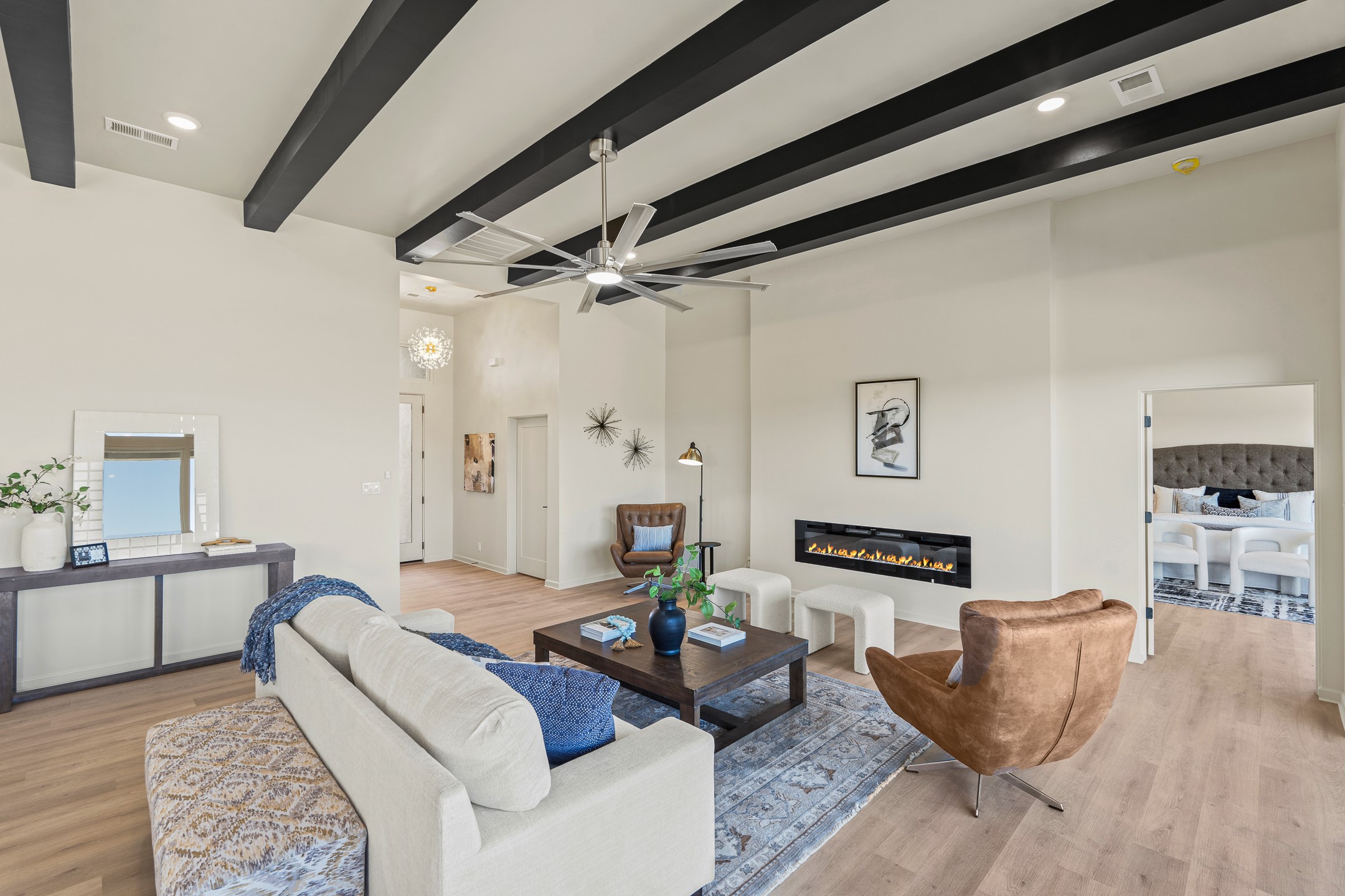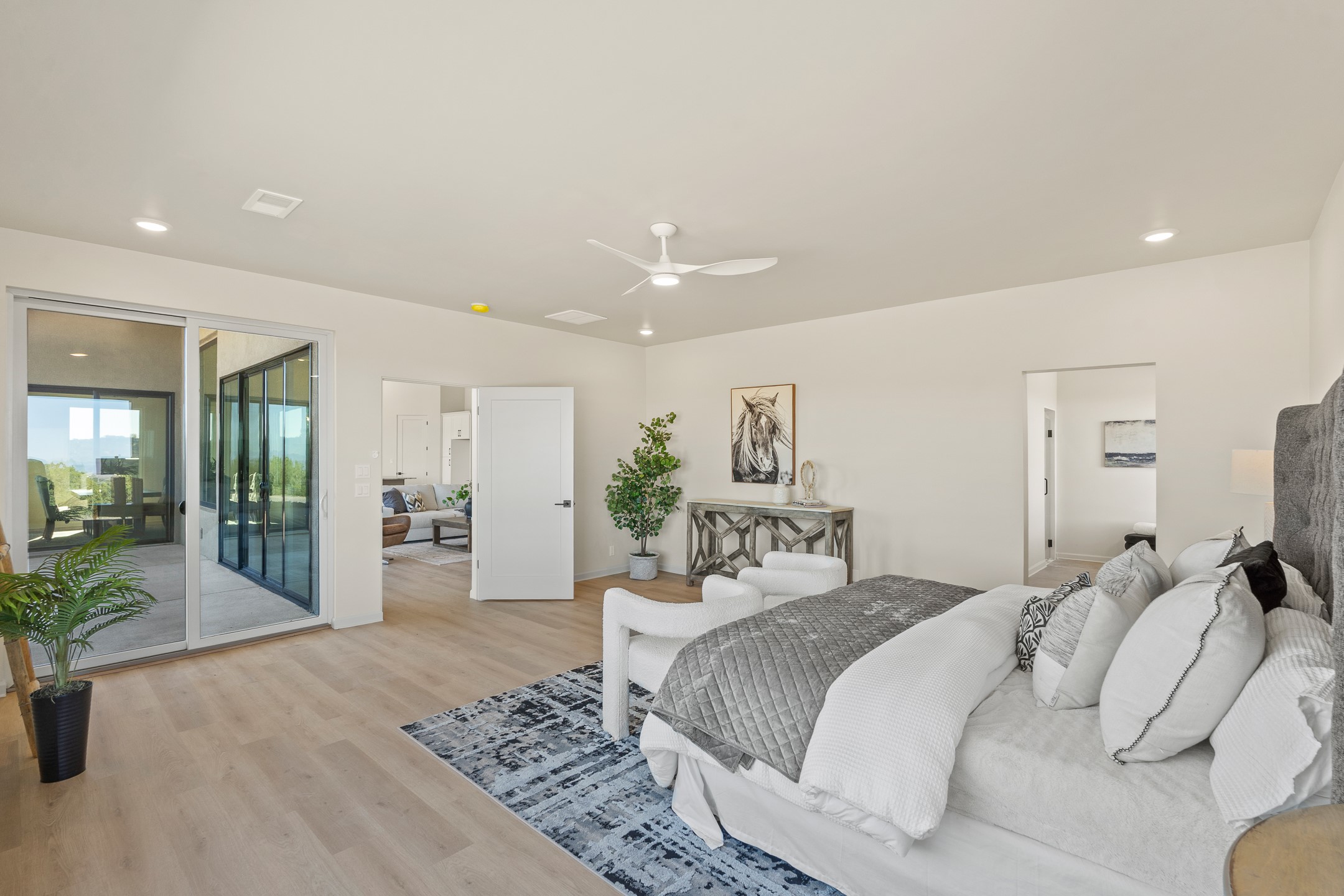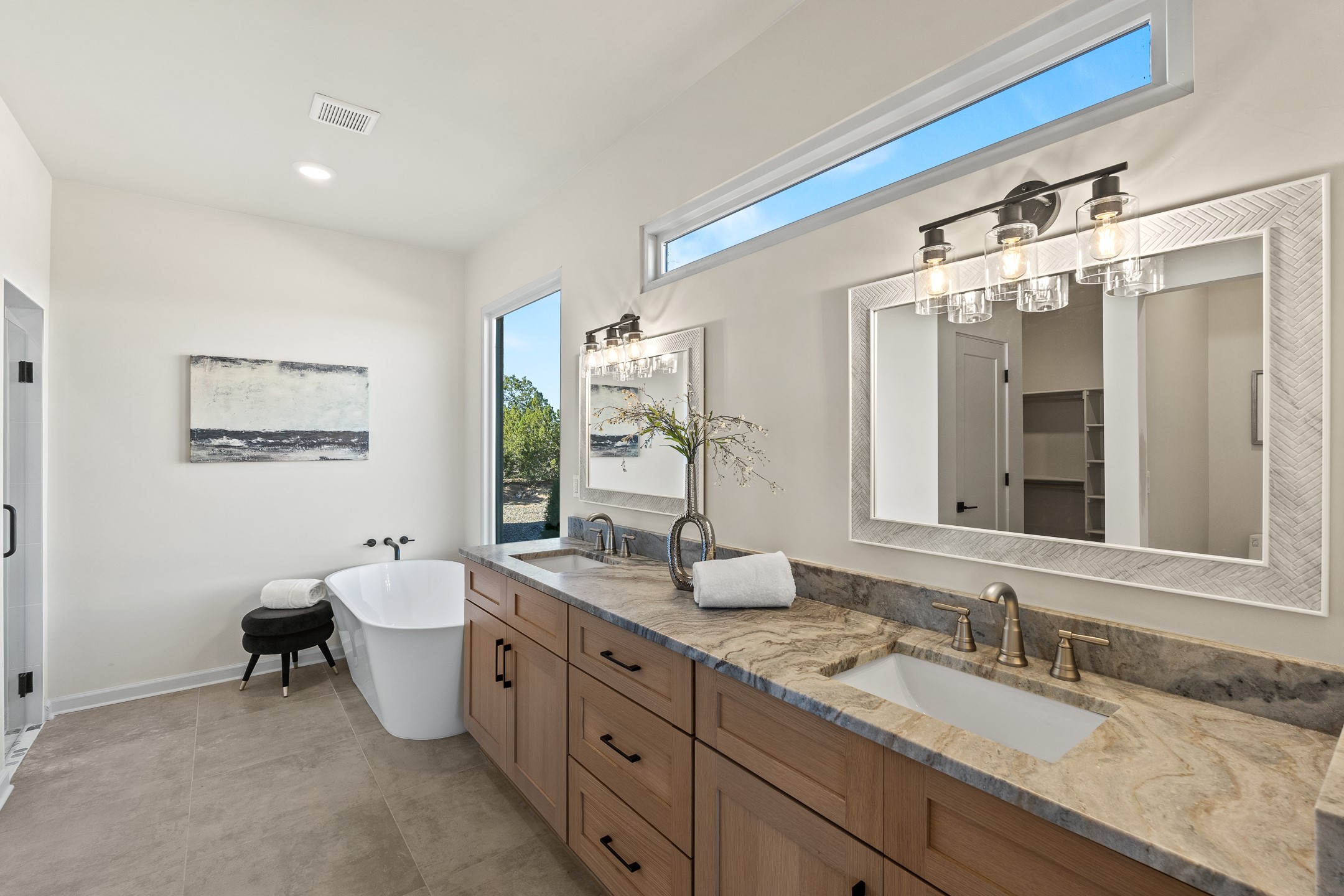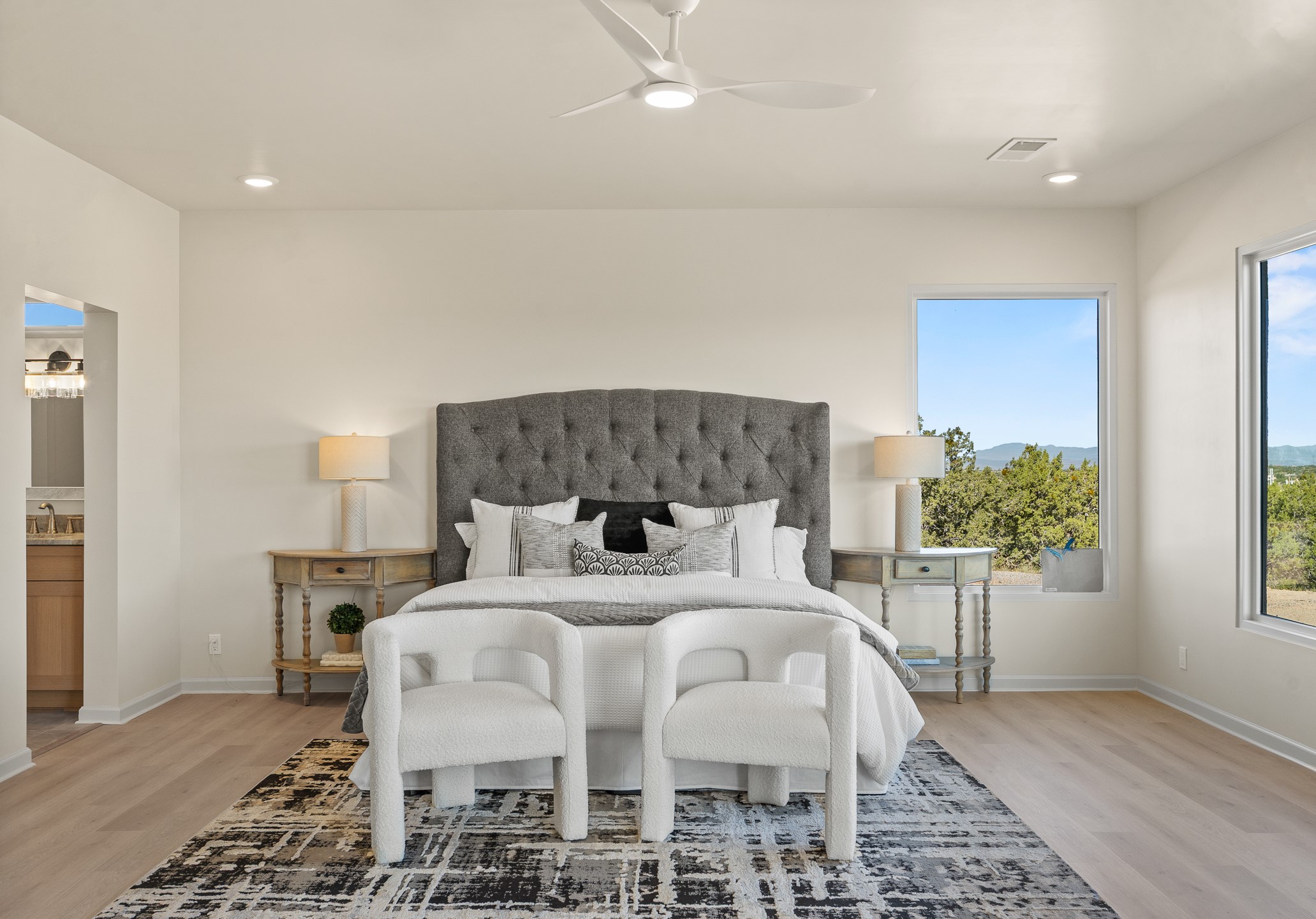 Just completed and ready for occupancy! Mountain views from every window in this new custom built contemporary pueblo style home with open floor plan situated on a huge 10.0 +/- ac. private lot in Lamy. Convenient access to US-285, the Agora shopping center, bank and restaurants. Perfect for indoor and outdoor entertaining. Open kitchen/family/dining room has floor to ceiling windows and double sliding glass doors to take in the fabulous views and access to the portal. The contemporary kitchen has a huge island bar and large walk in pantry. Every room has large picture windows with fabulous mountain views. Owner's bath has double sinks, soaking tub and large walk in shower room with double shower heads and rain showers and a large walk in closet. Home features contemporary style vigas in living areas. Three bedrooms with good separation and 2 baths. A guest house and equestrian structures are allowed, as well as 10 horses or cattle. (1 large animal per acre.) No HOA, recreational vehicles are allowed if parked inconspicuously. Connected to the Eldorado community water system. Located only 20 minutes from Downtown Santa Fe this home offers gorgeous views, rural living and easy access to everything Santa Fe has to offer. This home has it all; new home, fabulous views, great outdoor spaces, contemporary open floor plan, large private lot. Buyer to verify all information and Covenants. Seller gives $4000 credit to the buyer at closing for Range, dishwasher and microwave. Open House Sunday, Nov 23. 1:00 - 4:00 PM.