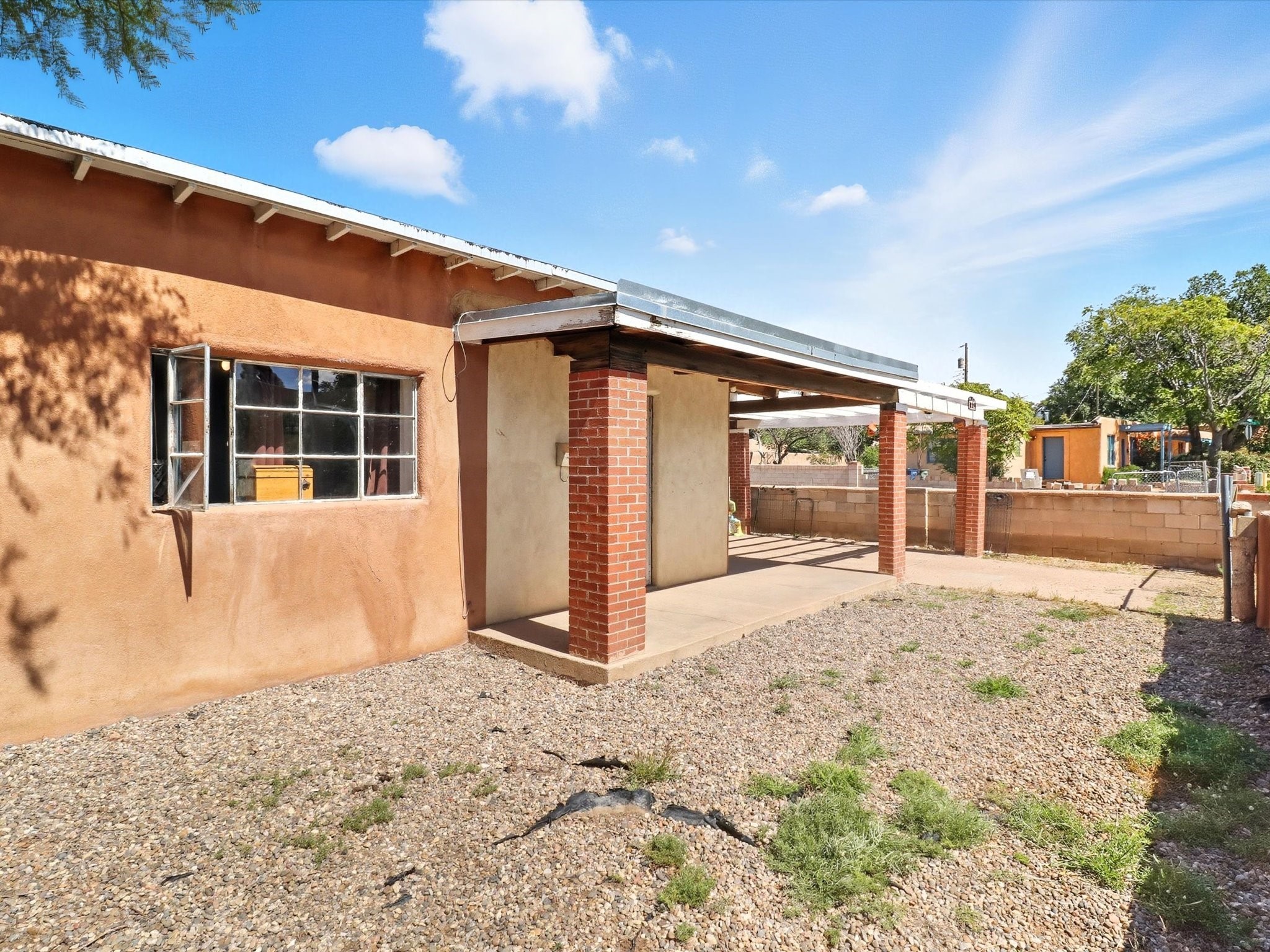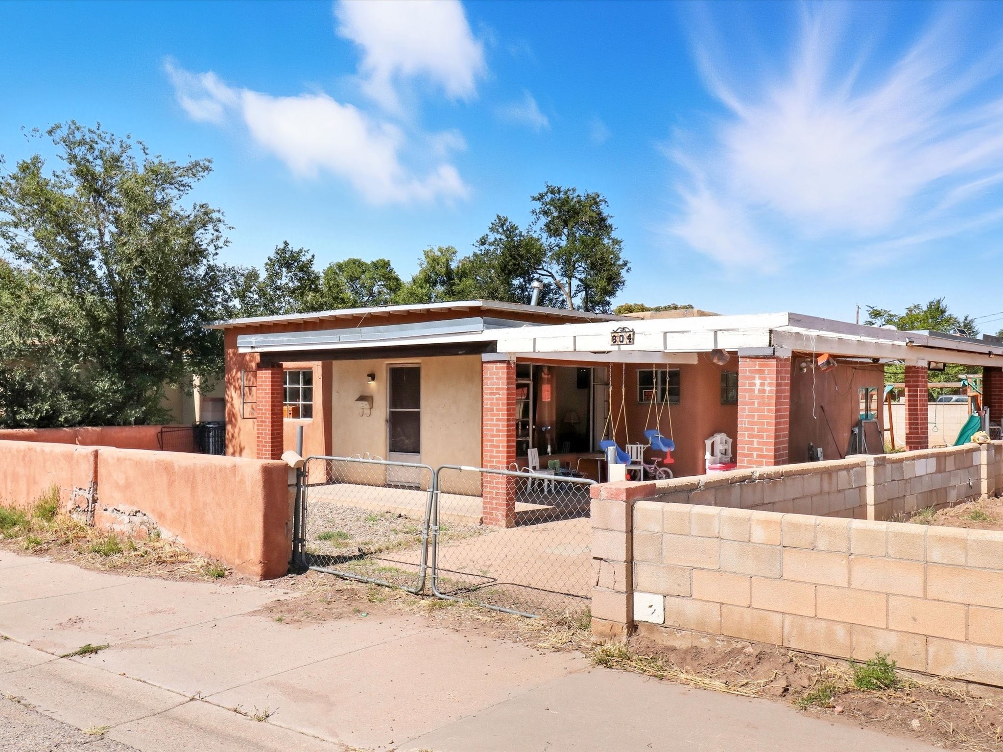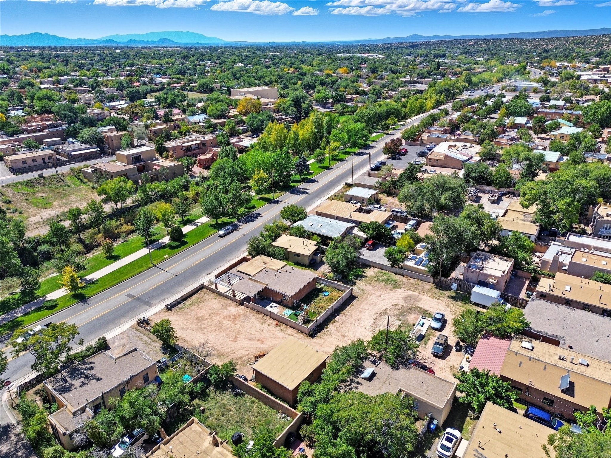 In one of Santa Fe's coveted historic corridors, across from the Santa Fe River, minutes from the Plaza, this home offers an exceptional opportunity to acquire a rare double-lot adobe estate. Price includes adjacent .25 acre lot. Spanning about .34 acres across two parcels, warmth and traditional design blend with the potential for a truly bespoke compound in the heart of the city. Imagine stepping out and seeing the gentle flow of the Santa Fe River just across the street, offering a peaceful green ribbon, soothing natural views, and a connection to Santa Fe history.This 1,391-sq ft home designed with a modest footprint was constructed in 1940, this home carries the patina of time--original details, generous ceiling heights, and the warm adobe-era bones that Santa Fe lovers covet, surrounded by ample space. The home itself is steeped in character, showcasing timeless wood and tile floors, a gas cooking range, and a gracious floor plan that reflects the spirit of historic Santa Fe. A welcoming covered porch sets the tone for intimate gatherings or quiet moments of reflection, while the expansive fenced yard provides a private sanctuary, ideal for curated gardens, outdoor dining under the stars, or future architectural visions.Recent upgrades, including new sewer lines, ensure the residence is well prepared for its next chapter. The presence of a 2 car garage adds a touch of convenience rarely found in this location. Yet it is the land itself--a true rarity in this highly prized area--that sets the stage for limitless possibilities, all within a short stroll of world-class galleries, fine dining, schools, shopping, and the cultural vibrancy of downtown Santa Fe. Whether you seek a charming adobe residence or a strategic investment, this represents more than a home; it is a heritage investment. The marriage of adobe authenticity, expansive grounds, and unmatched location offers the opportunity to craft a legacy property of distinction in treasured Santa Fe.