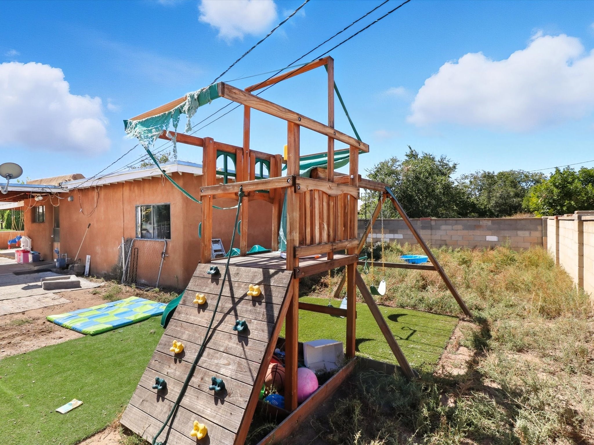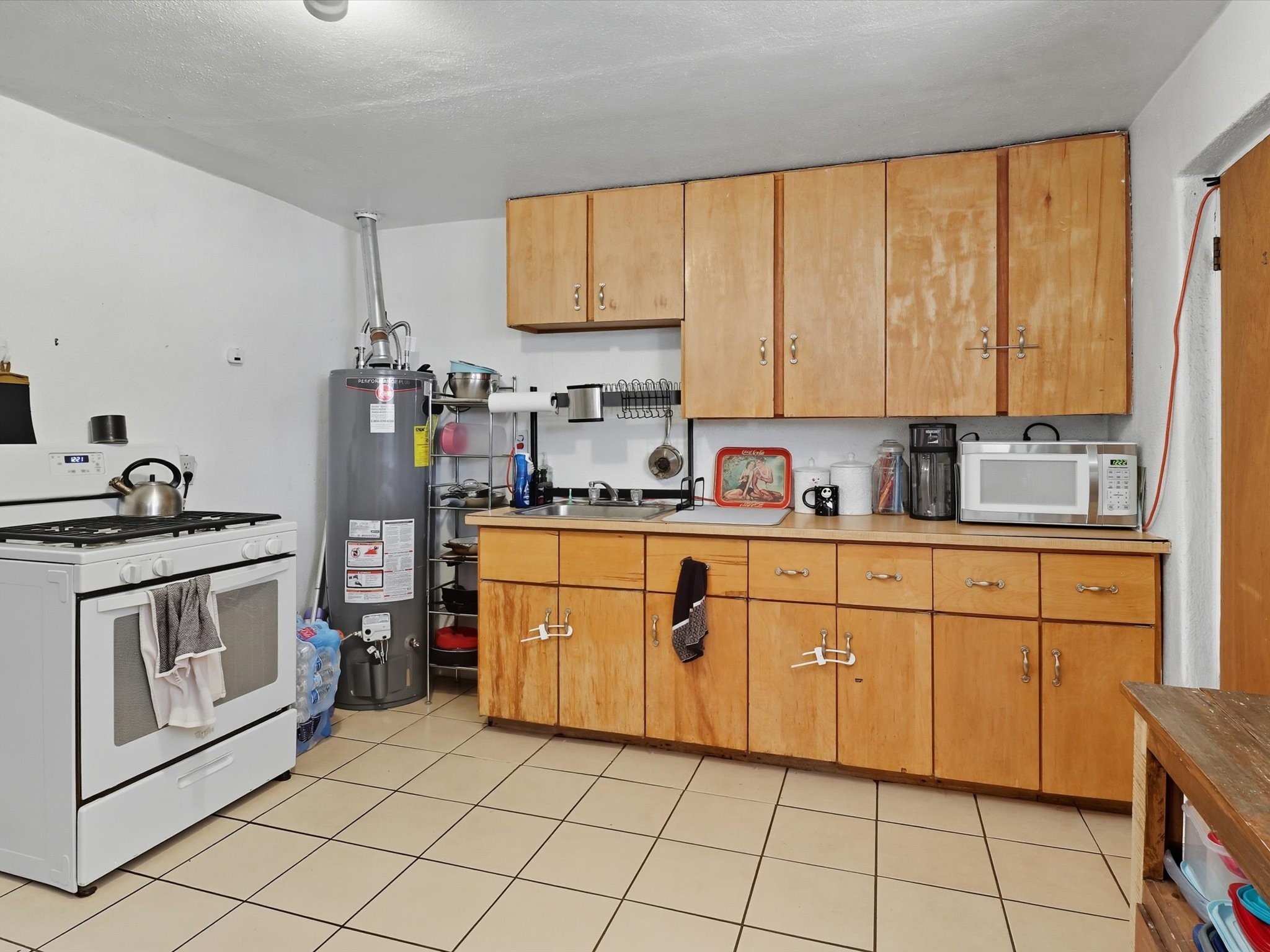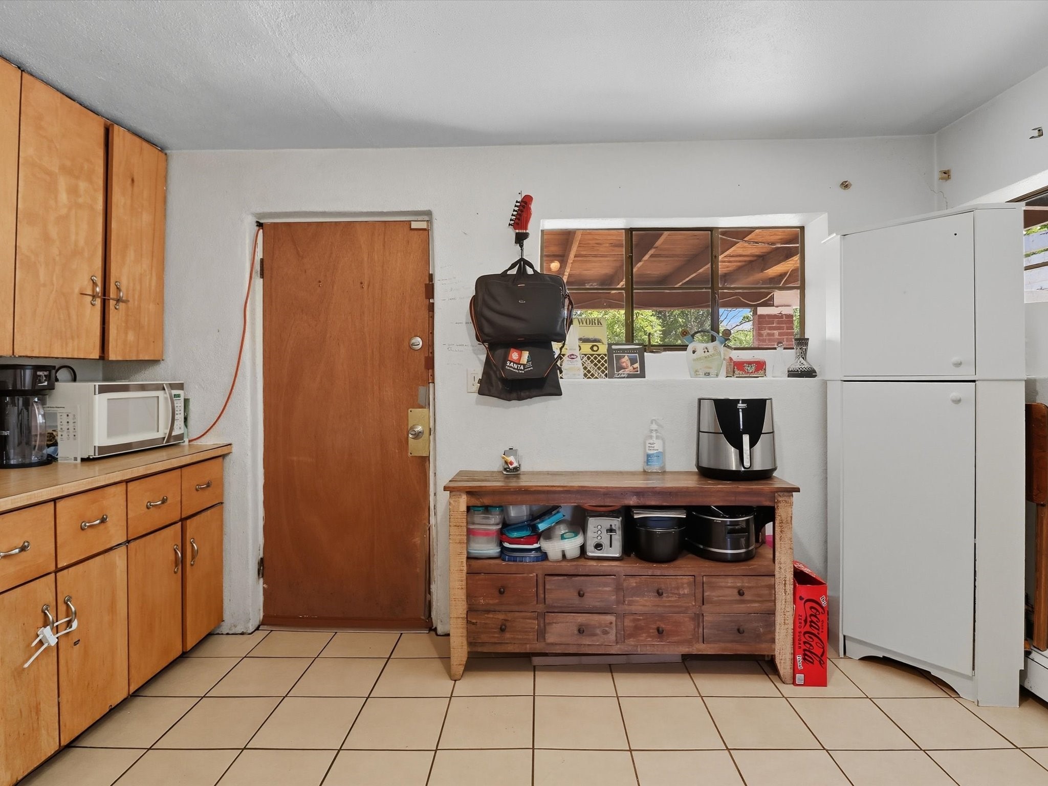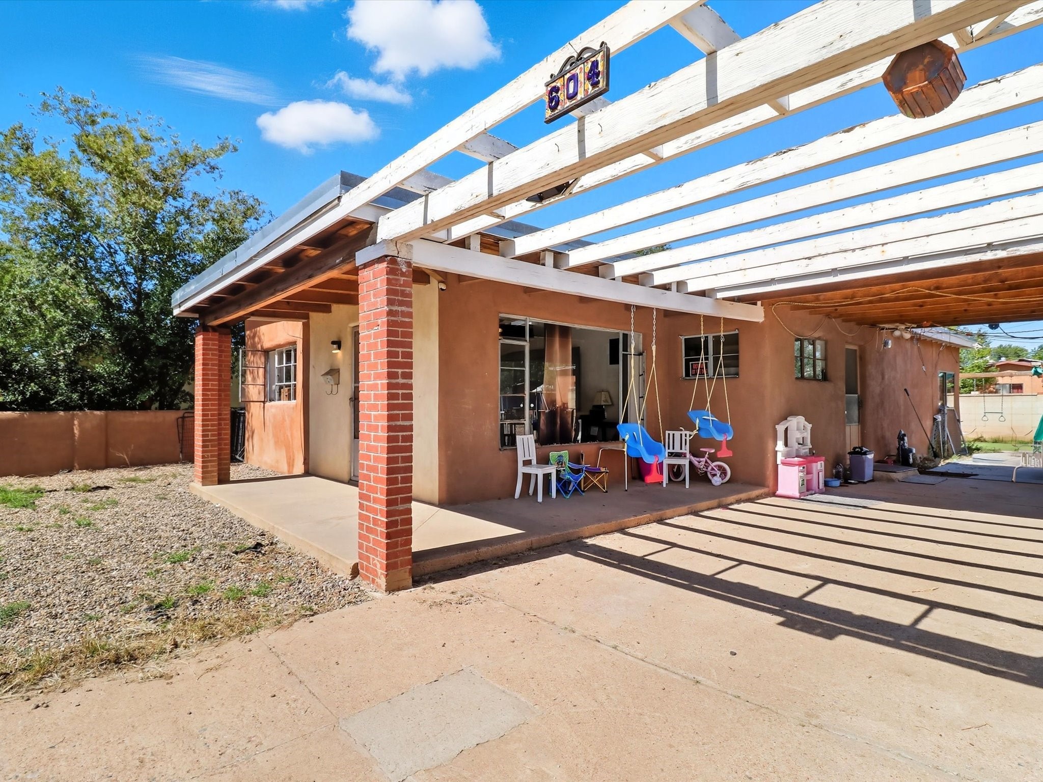 In one of Santa Fe's coveted historic corridors, across from the Santa Fe River, minutes from the Plaza, this home offers an exceptional opportunity to acquire a rare double-lot adobe estate. Price includes adjacent .25 acre lot. Spanning about .34 acres across two parcels, warmth and traditional design blend with the potential for a truly bespoke compound in the heart of the city. Imagine stepping out and seeing the gentle flow of the Santa Fe River just across the street, offering a peaceful green ribbon, soothing natural views, and a connection to Santa Fe history.This 1,391-sq ft home designed with a modest footprint was constructed in 1940, this home carries the patina of time--original details, generous ceiling heights, and the warm adobe-era bones that Santa Fe lovers covet, surrounded by ample space. The home itself is steeped in character, showcasing timeless wood and tile floors, a gas cooking range, and a gracious floor plan that reflects the spirit of historic Santa Fe. A welcoming covered porch sets the tone for intimate gatherings or quiet moments of reflection, while the expansive fenced yard provides a private sanctuary, ideal for curated gardens, outdoor dining under the stars, or future architectural visions.Recent upgrades, including new sewer lines, ensure the residence is well prepared for its next chapter. The presence of a 2 car garage adds a touch of convenience rarely found in this location. Yet it is the land itself--a true rarity in this highly prized area--that sets the stage for limitless possibilities, all within a short stroll of world-class galleries, fine dining, schools, shopping, and the cultural vibrancy of downtown Santa Fe. Whether you seek a charming adobe residence or a strategic investment, this represents more than a home; it is a heritage investment. The marriage of adobe authenticity, expansive grounds, and unmatched location offers the opportunity to craft a legacy property of distinction in treasured Santa Fe.