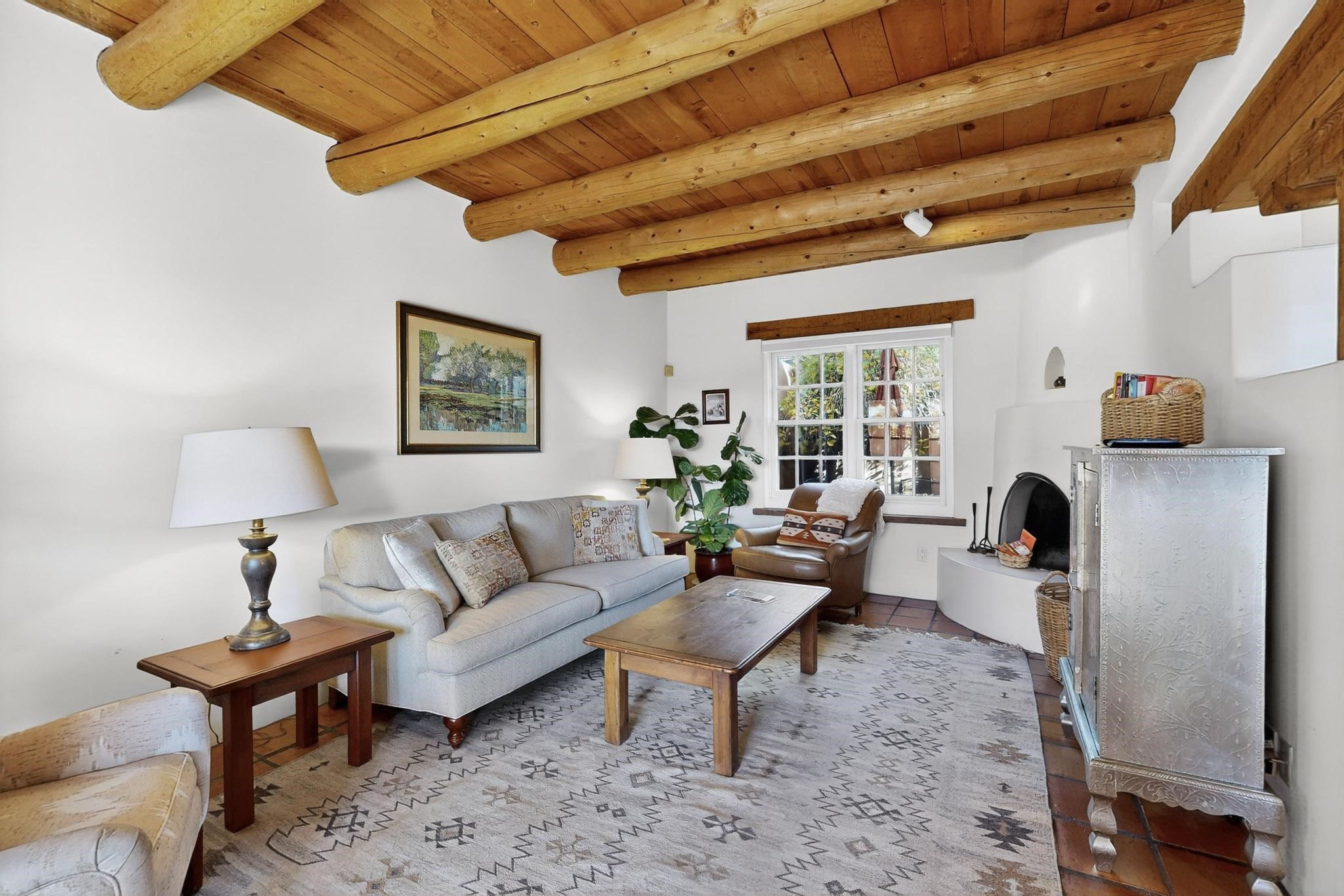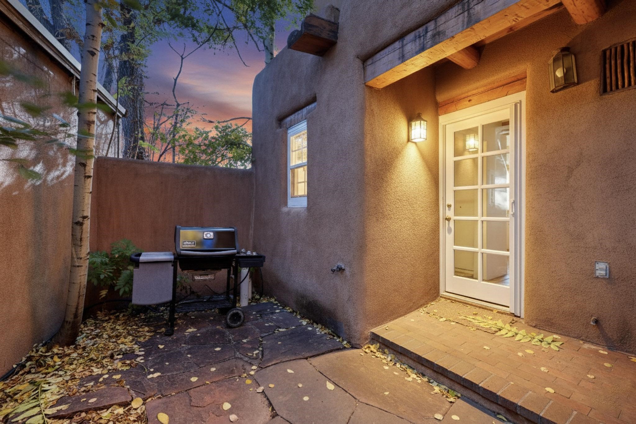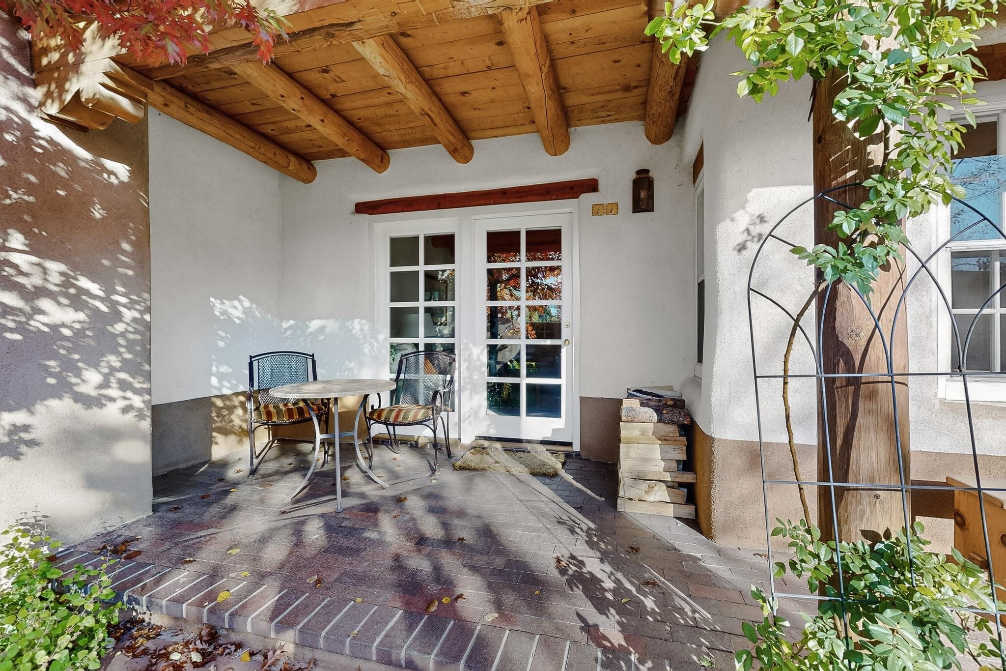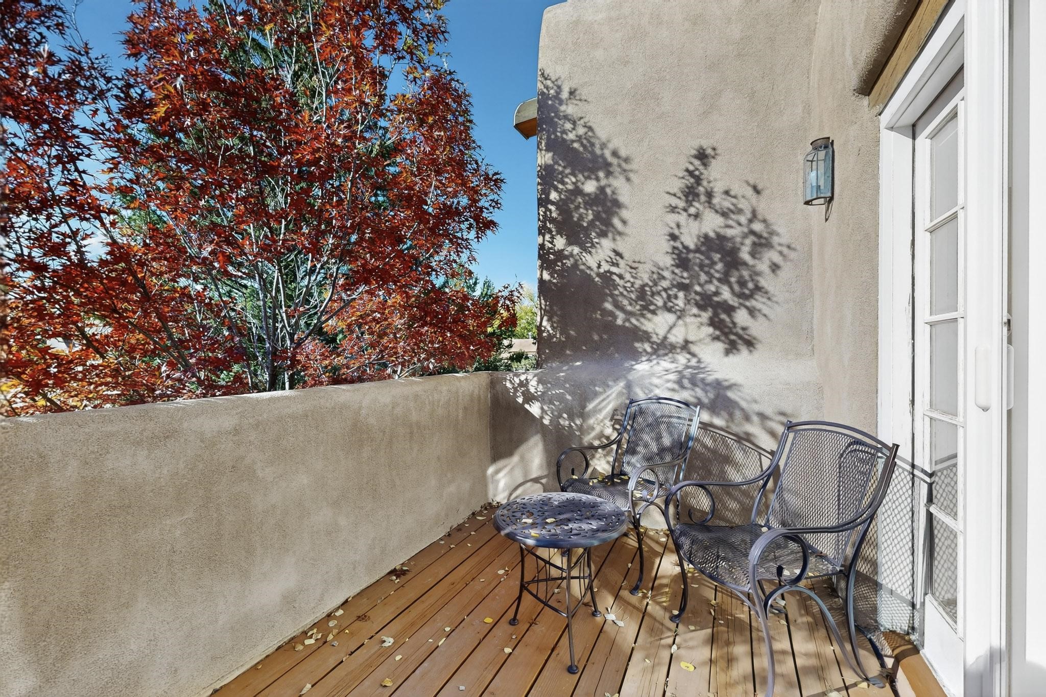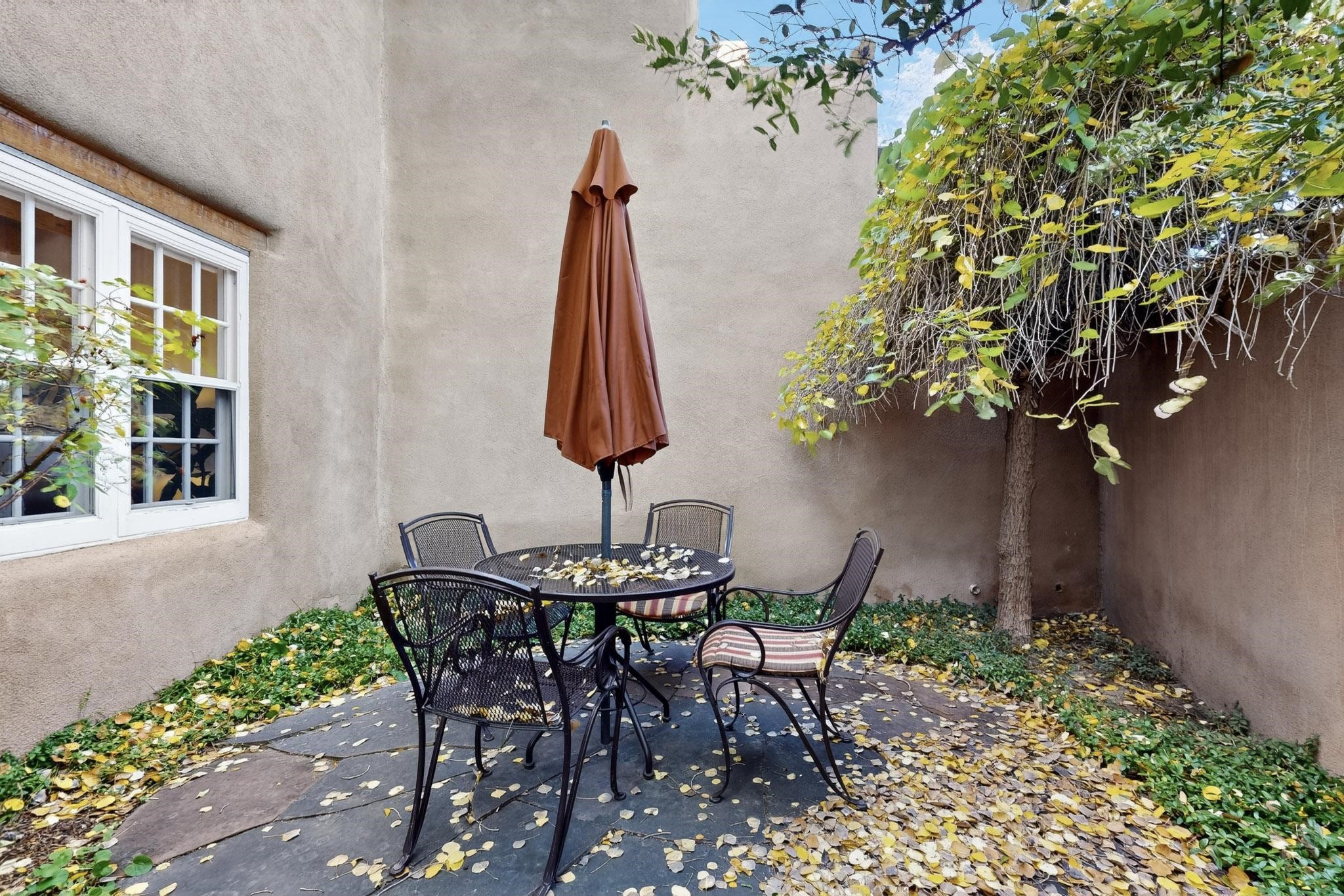 Outstanding opportunity to own a slice of Santa Fe with this quarter-share 2-bedroom, 2.5-bathroom condo in the heart of downtown's Campanilla Compound. Steps from the Plaza, Canyon Road, and Railyard, this two-story condo blends Santa Fe style--vigas, three kiva fireplaces, Saltillo and pine floors, Talavera-tiled kitchen and baths--with modern comfort, convenience and accessibility. Enjoy sunset views from the private upstairs deck or relax and dine al fresco in the landscaped courtyard. Fully furnished and managed by the HOA, including maintenance, cleaning, and a rental program, this sweet Southwest retreat is perfect for a turnkey vacation or investment property offering quarter ownership without the demands of full time ownership. Quiet and peaceful neighborhood with great views, this is a place to savor the best of Santa Fe in any season.