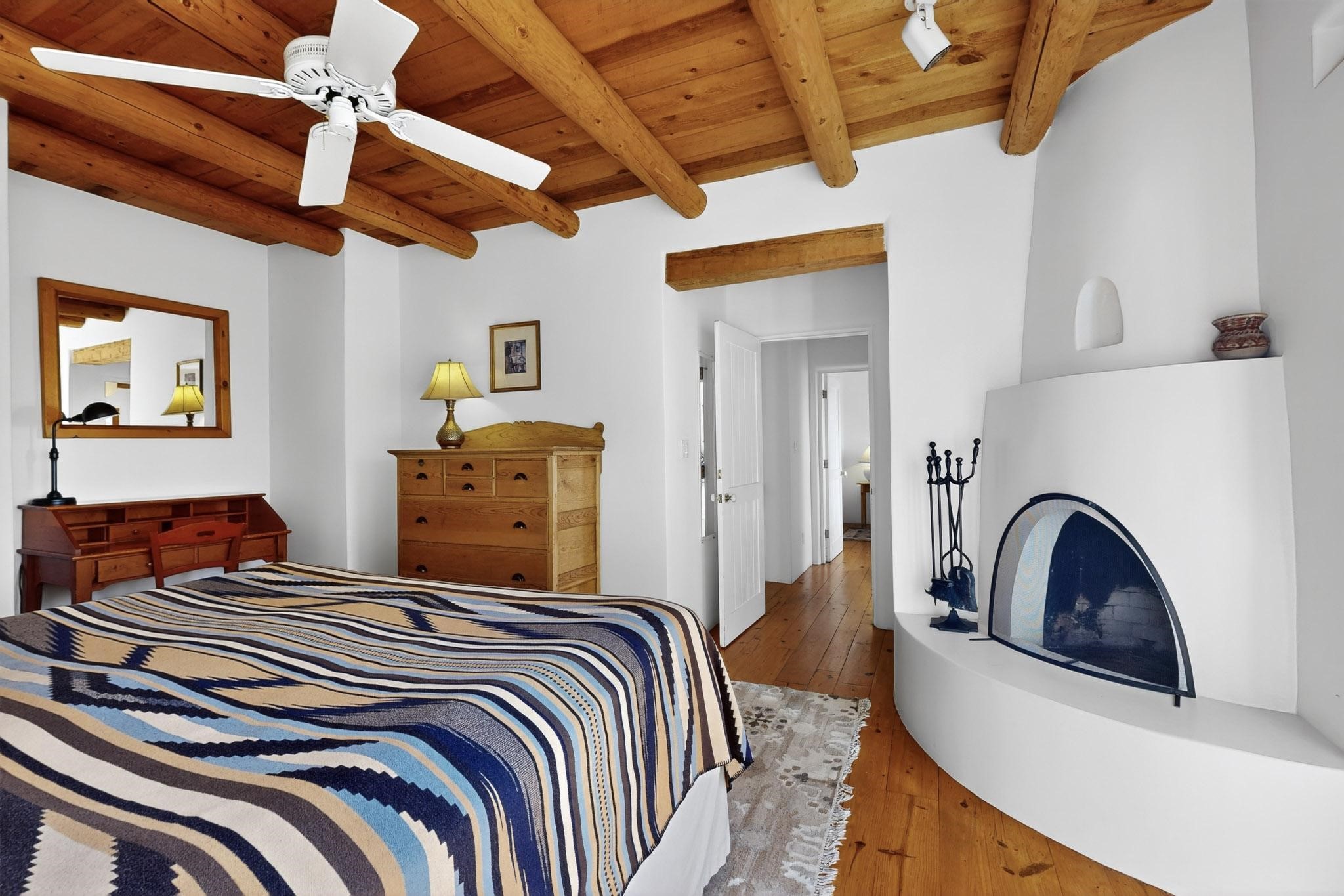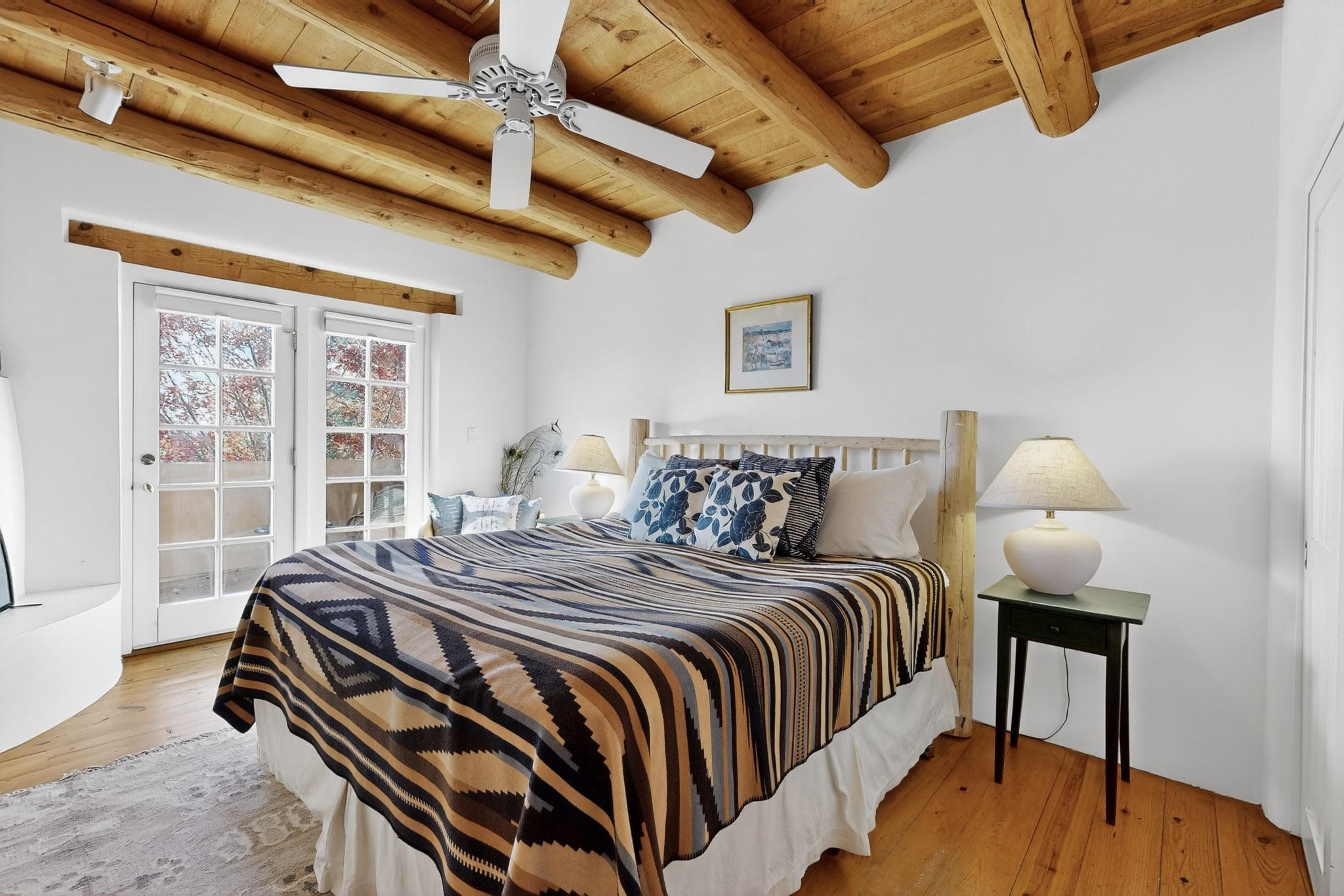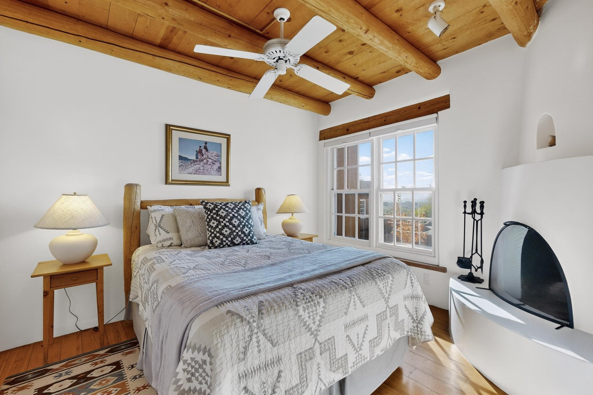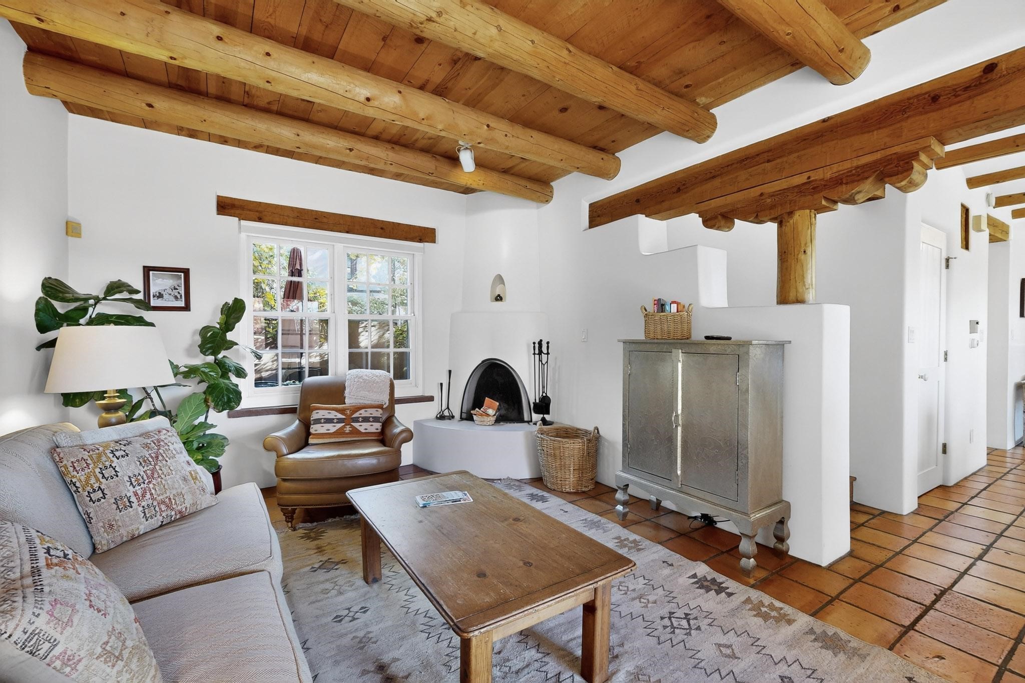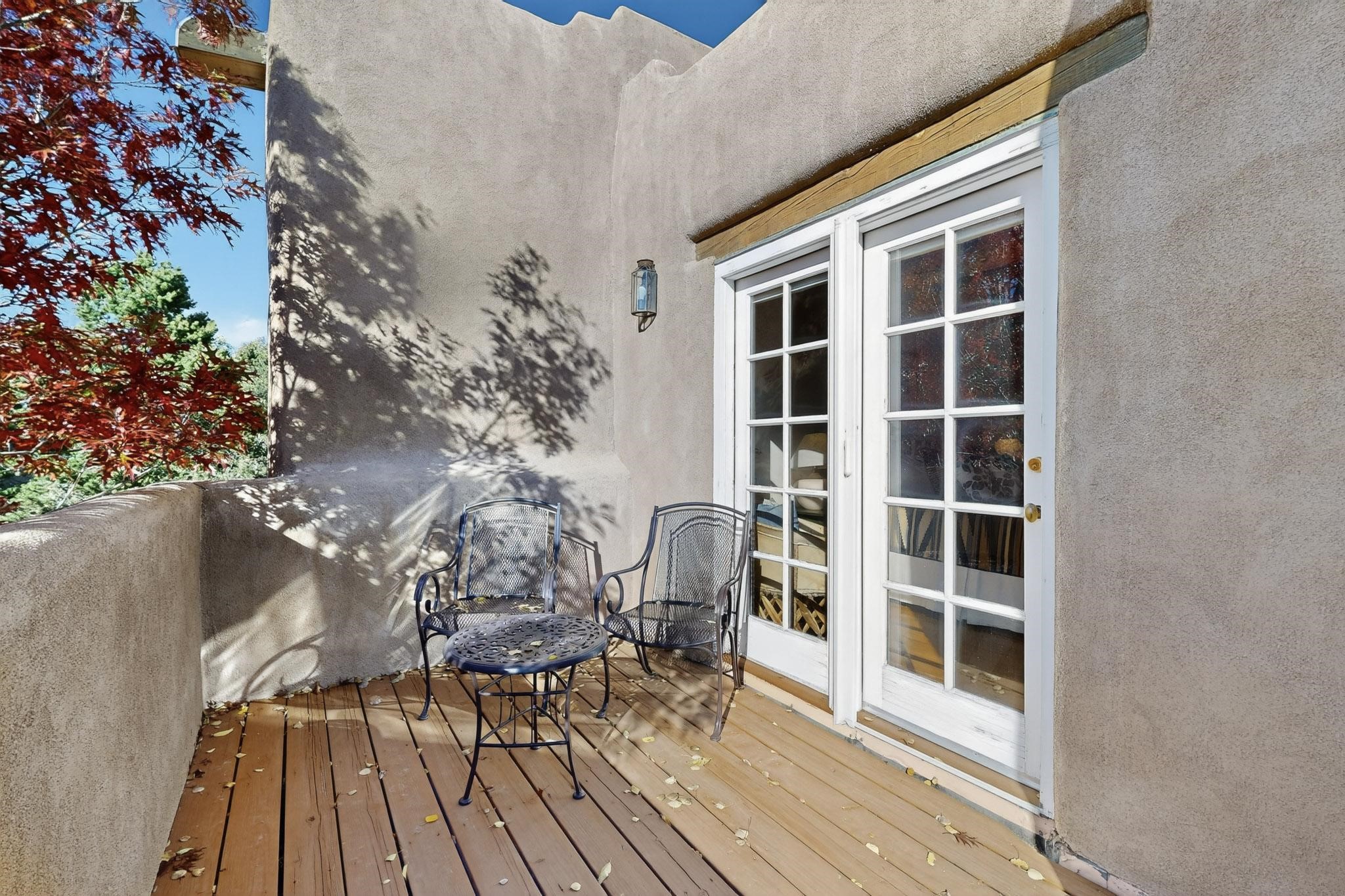 Outstanding opportunity to own a slice of Santa Fe with this quarter-share 2-bedroom, 2.5-bathroom condo in the heart of downtown's Campanilla Compound. Steps from the Plaza, Canyon Road, and Railyard, this two-story condo blends Santa Fe style--vigas, three kiva fireplaces, Saltillo and pine floors, Talavera-tiled kitchen and baths--with modern comfort, convenience and accessibility. Enjoy sunset views from the private upstairs deck or relax and dine al fresco in the landscaped courtyard. Fully furnished and managed by the HOA, including maintenance, cleaning, and a rental program, this sweet Southwest retreat is perfect for a turnkey vacation or investment property offering quarter ownership without the demands of full time ownership. Quiet and peaceful neighborhood with great views, this is a place to savor the best of Santa Fe in any season.