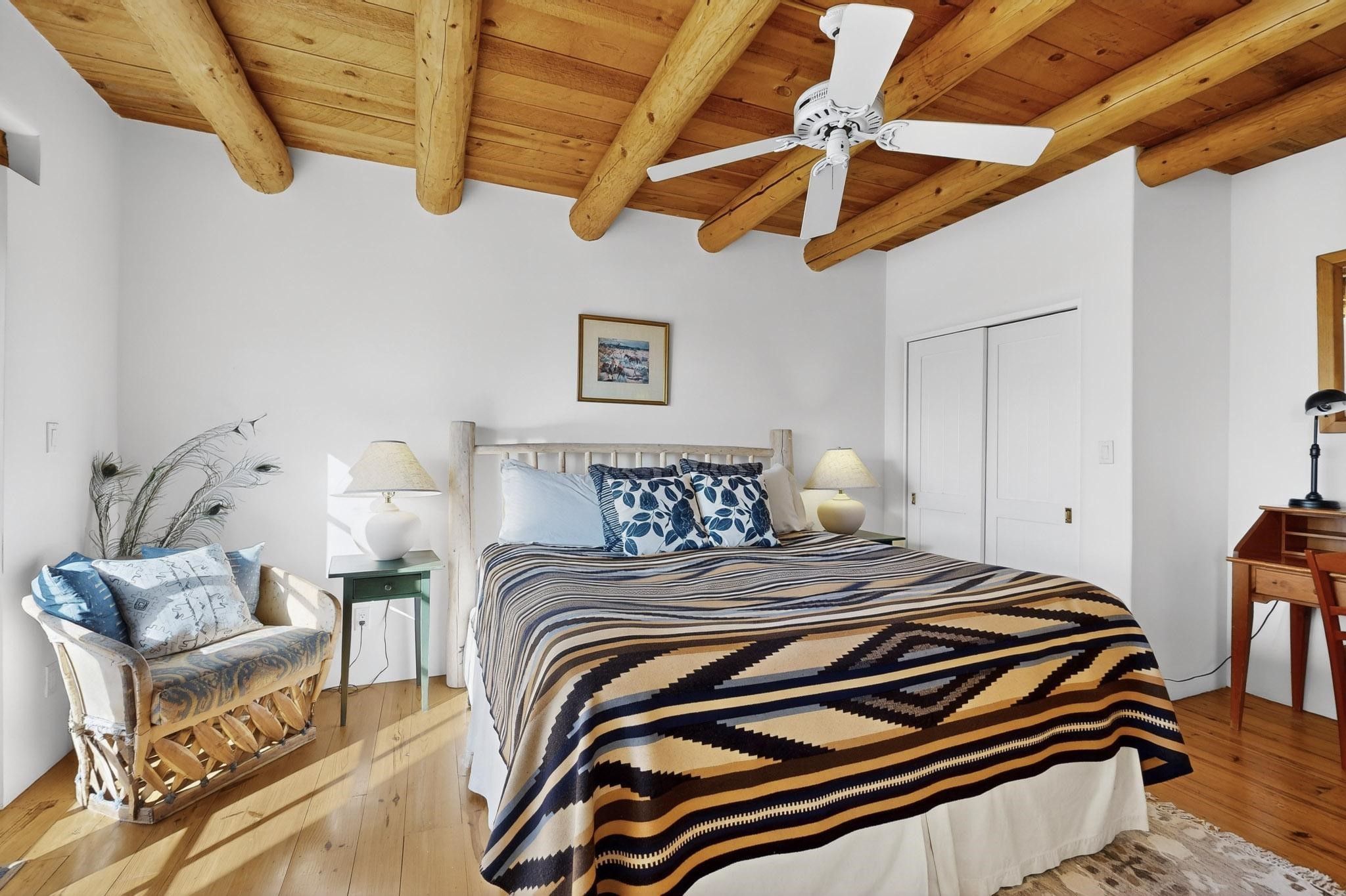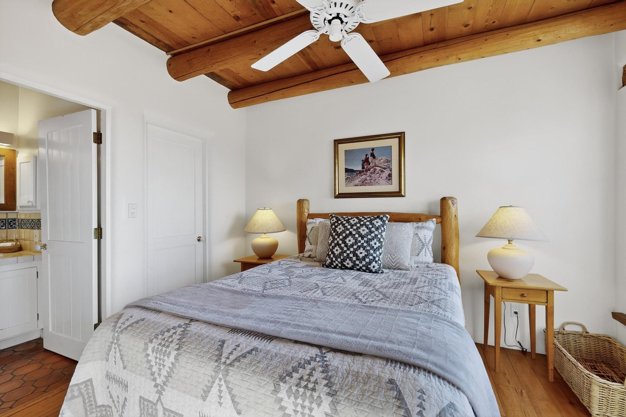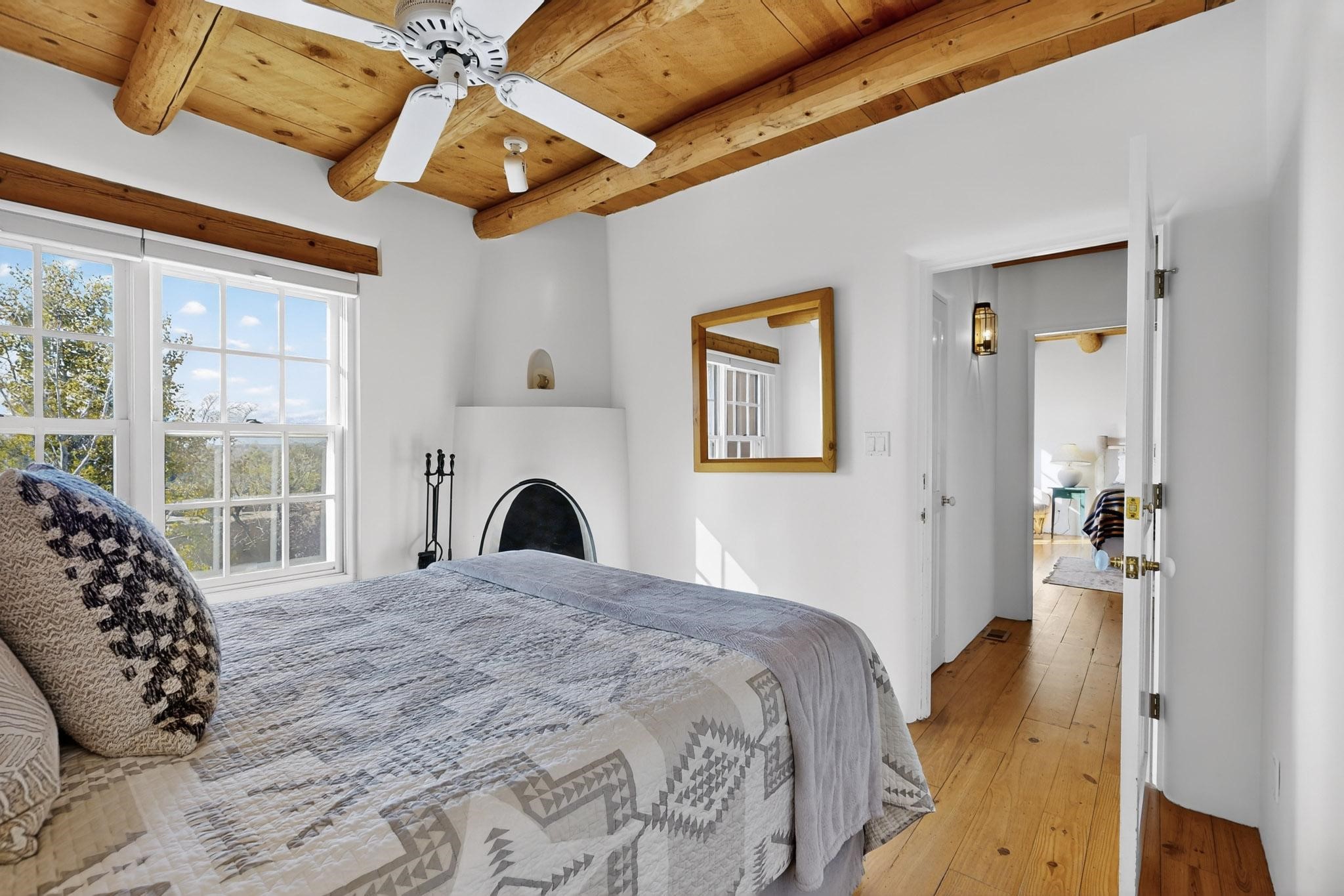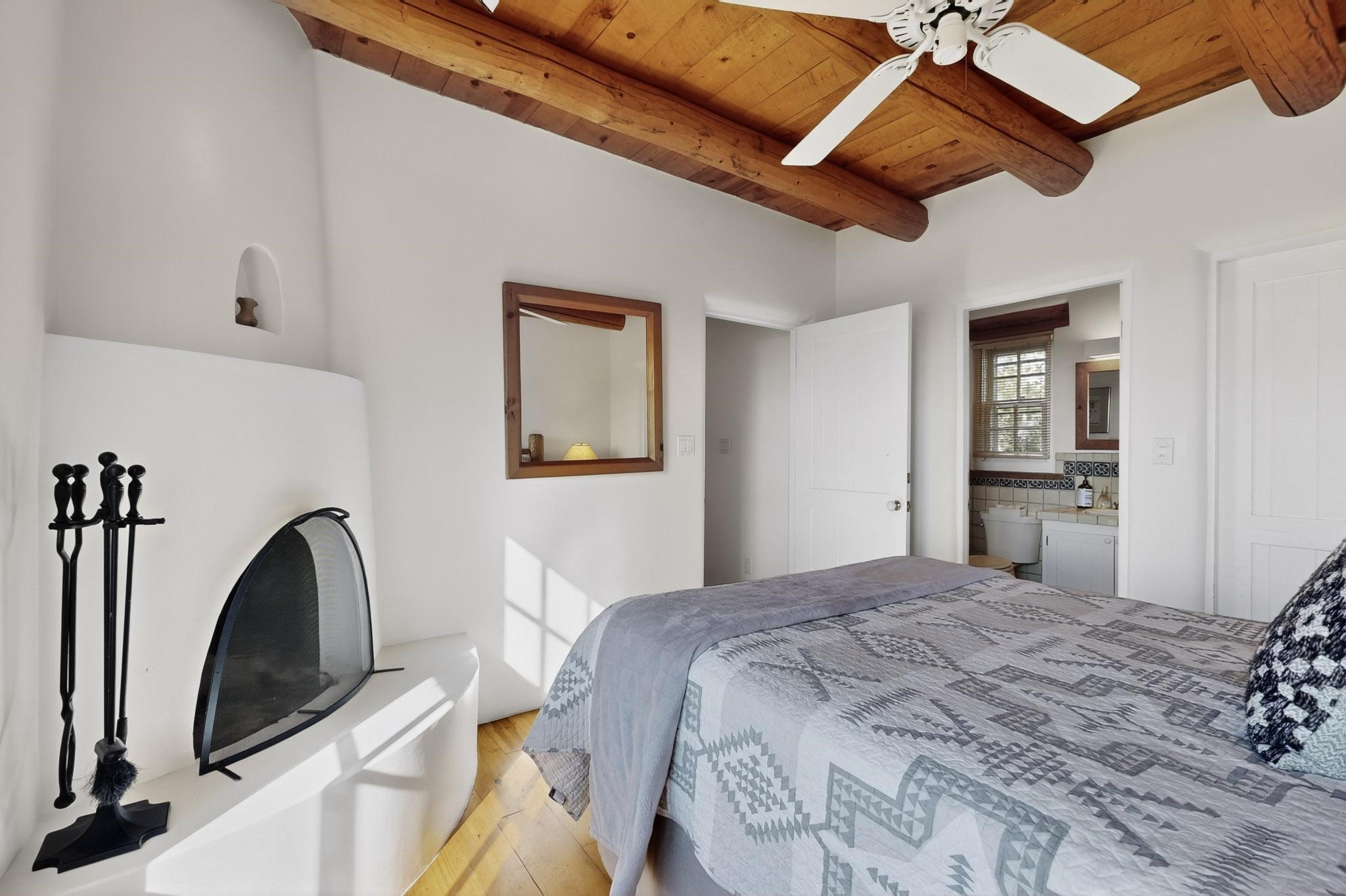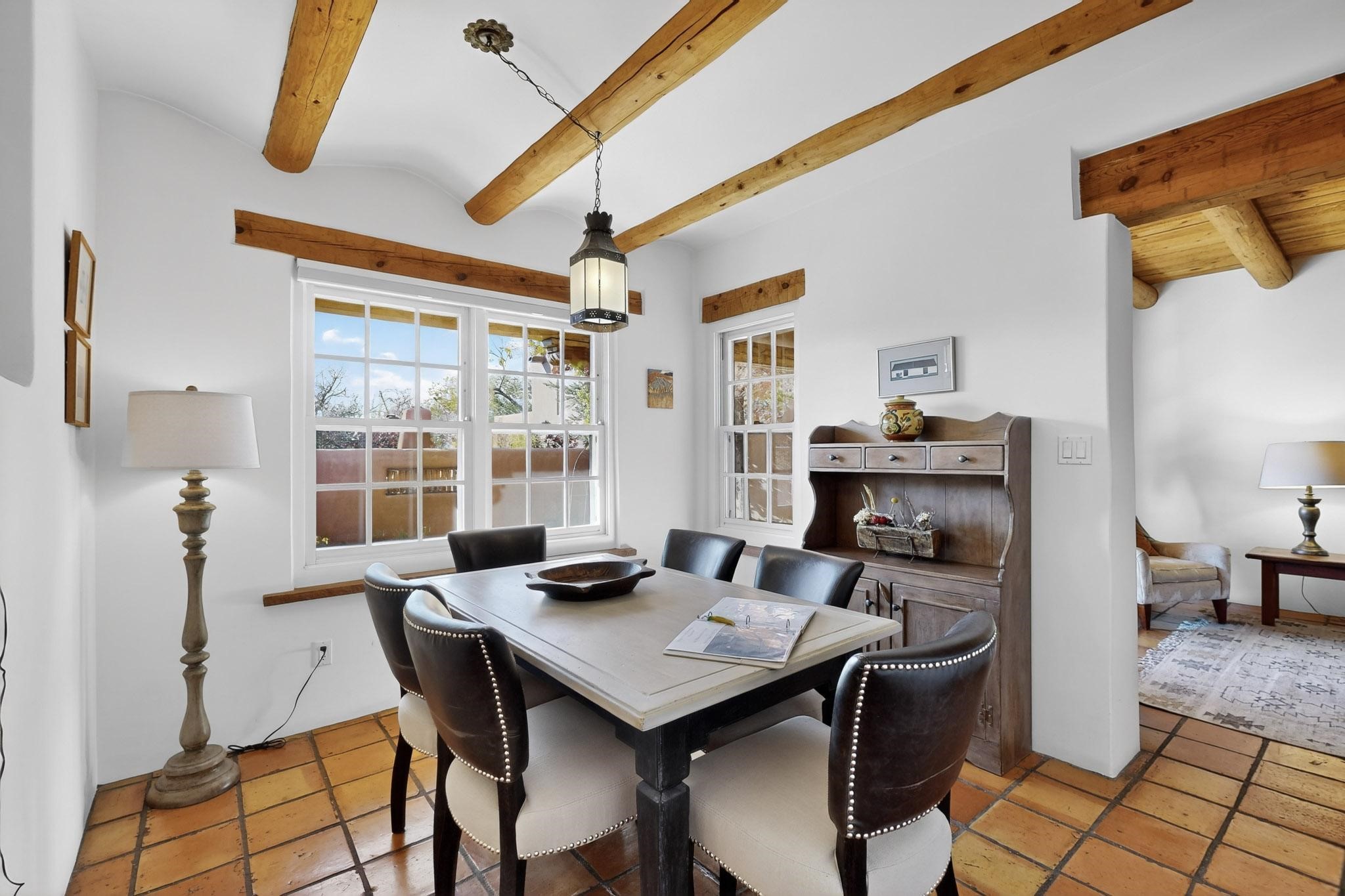 Outstanding opportunity to own a slice of Santa Fe with this quarter-share 2-bedroom, 2.5-bathroom condo in the heart of downtown's Campanilla Compound. Steps from the Plaza, Canyon Road, and Railyard, this two-story condo blends Santa Fe style--vigas, three kiva fireplaces, Saltillo and pine floors, Talavera-tiled kitchen and baths--with modern comfort, convenience and accessibility. Enjoy sunset views from the private upstairs deck or relax and dine al fresco in the landscaped courtyard. Fully furnished and managed by the HOA, including maintenance, cleaning, and a rental program, this sweet Southwest retreat is perfect for a turnkey vacation or investment property offering quarter ownership without the demands of full time ownership. Quiet and peaceful neighborhood with great views, this is a place to savor the best of Santa Fe in any season.