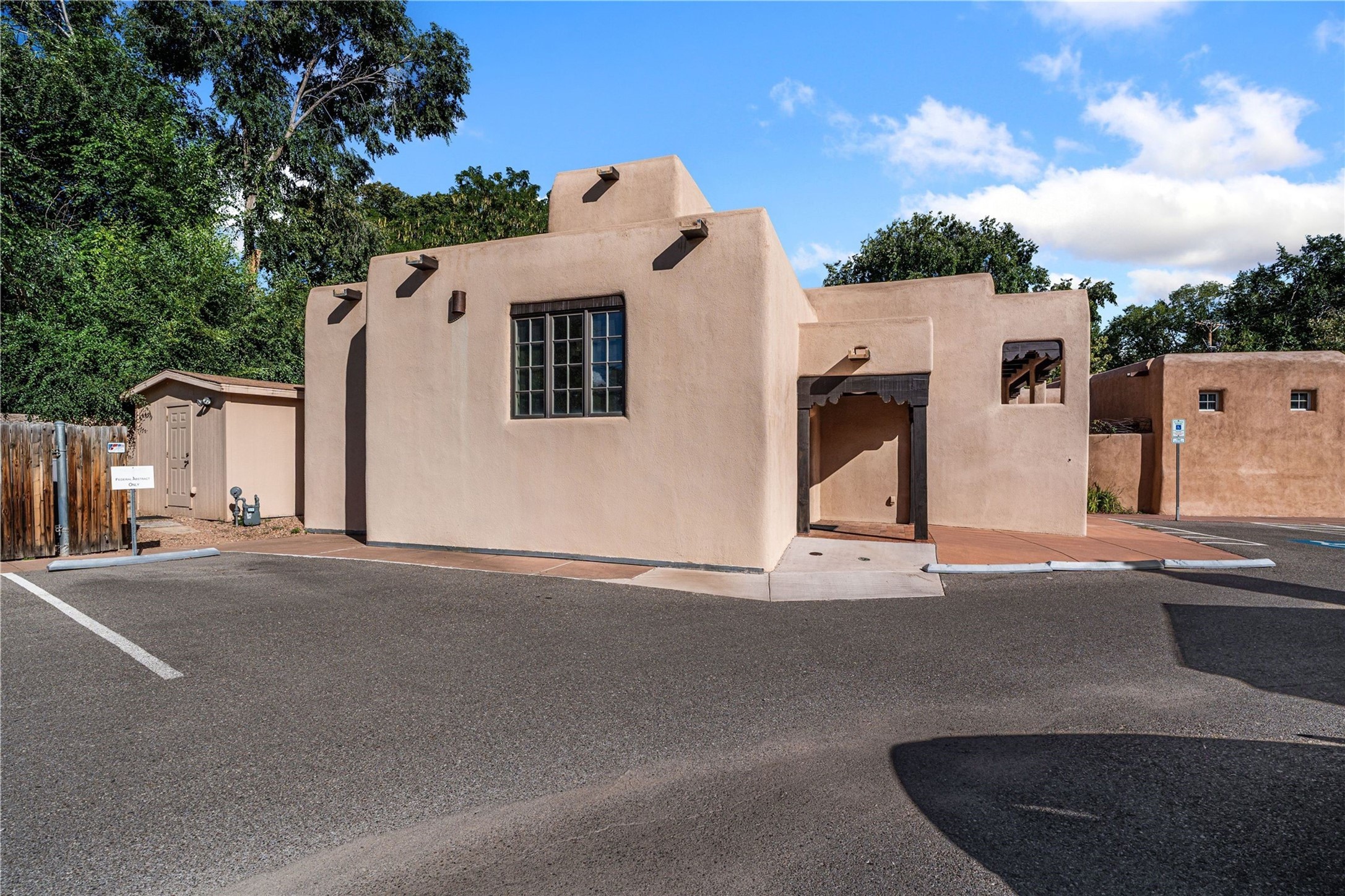 Excellent opportunity to own a mixed-use building on E. Palace Avenue in the heart of the Historic Eastside. Zoned BCD Zone 4 which includes residential and multiple commercial uses. Two-story building with elevator comprised of 3,523 sq. ft. Onsite parking. This is a one-of-a-kind property. Adobe (Primarily) and Frame construction; building is commercially wired and plumbed. Outside security lighting and security/fire alarm. 8 parking spaces and storage unit conveys with sale. Ideally located just minutes from the downtown historic plaza and Canyon Rd.