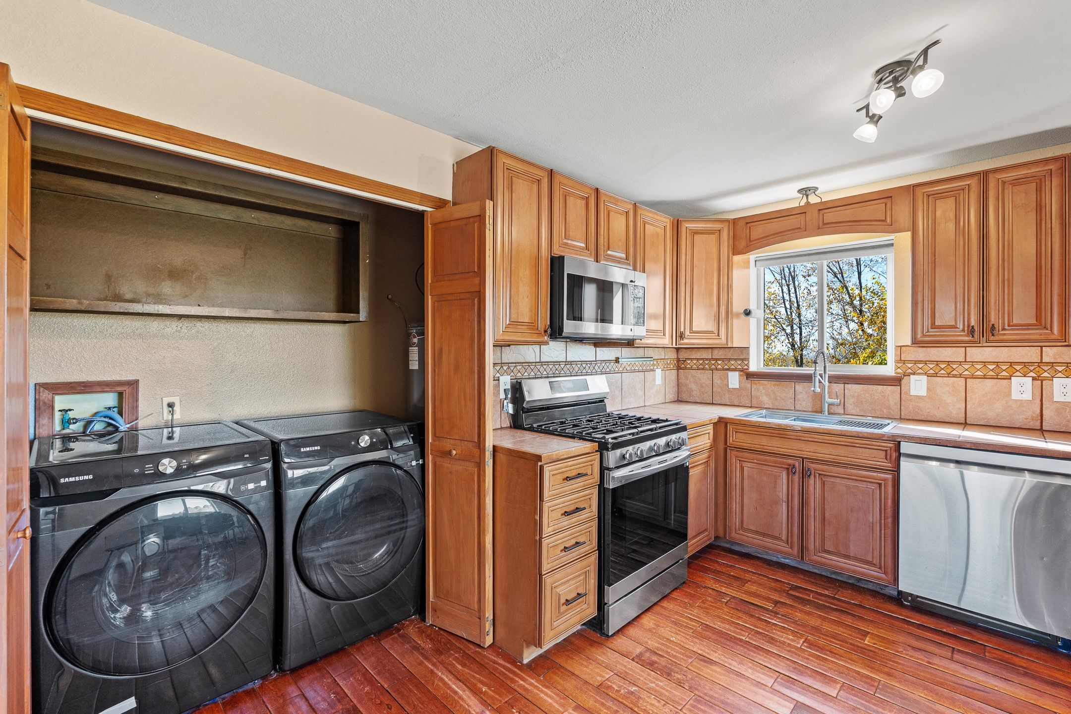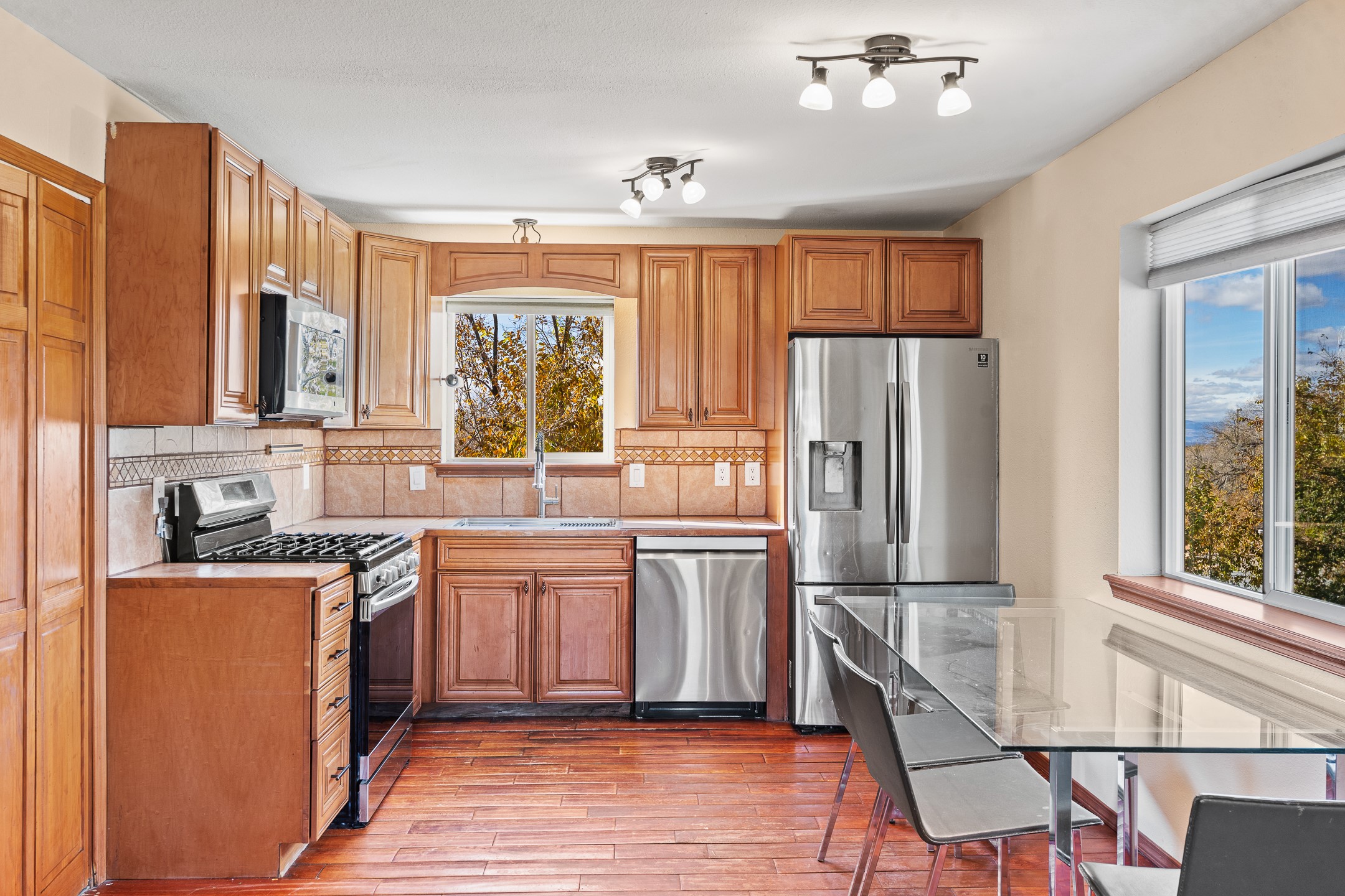 This spacious home offers versatile living across two levels, featuring beautiful and well-maintained outdoor spaces. The main entry level features a bedroom, two bathrooms, a Kitchen, and laundry. New heater as of November 2025! The lower level features three additional bedrooms. From the upper level, enjoy sweeping views, while the landscaped yard provides the perfect setting for relaxation or entertaining.