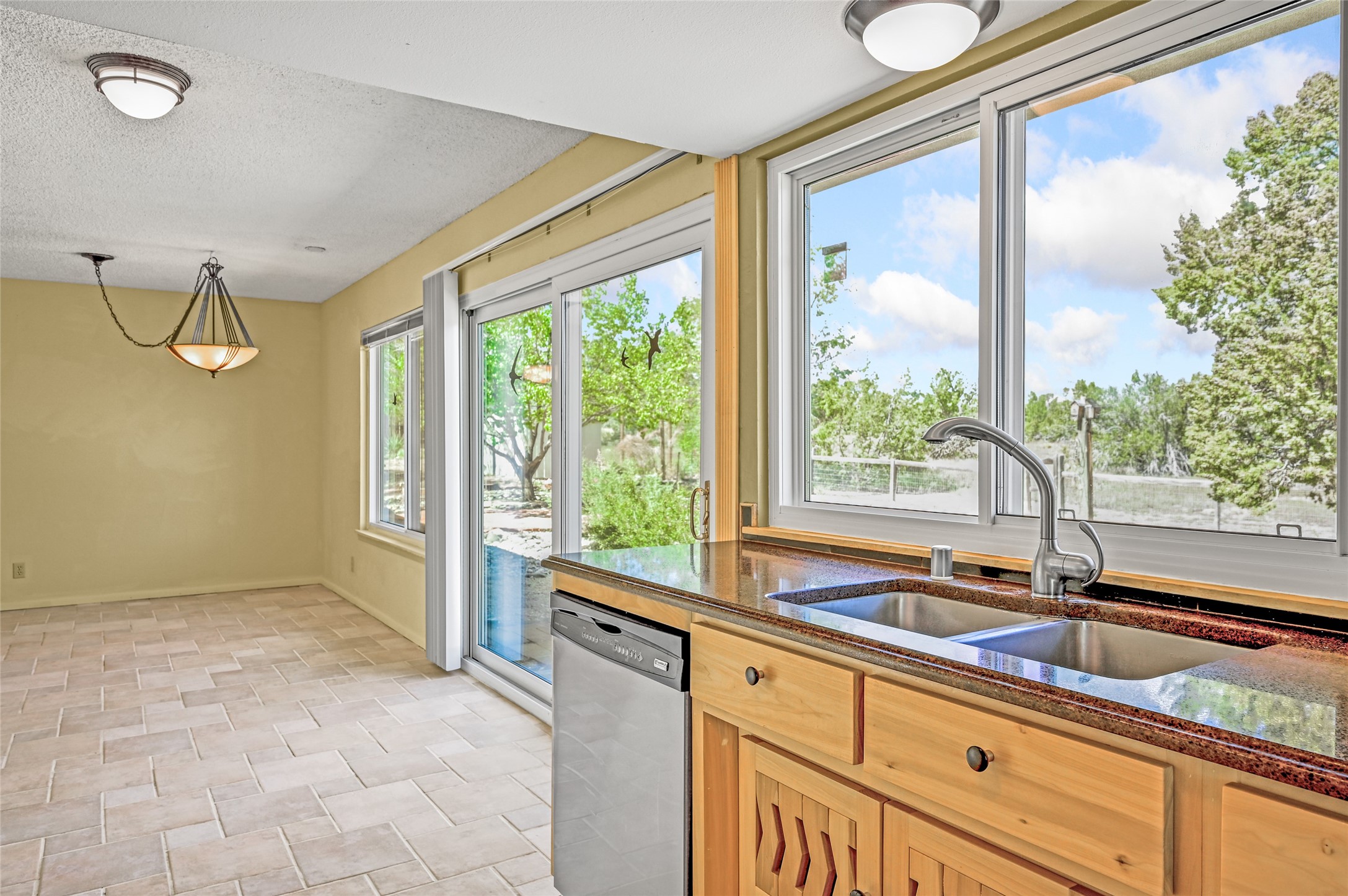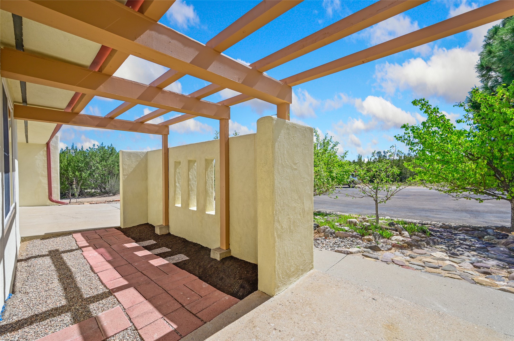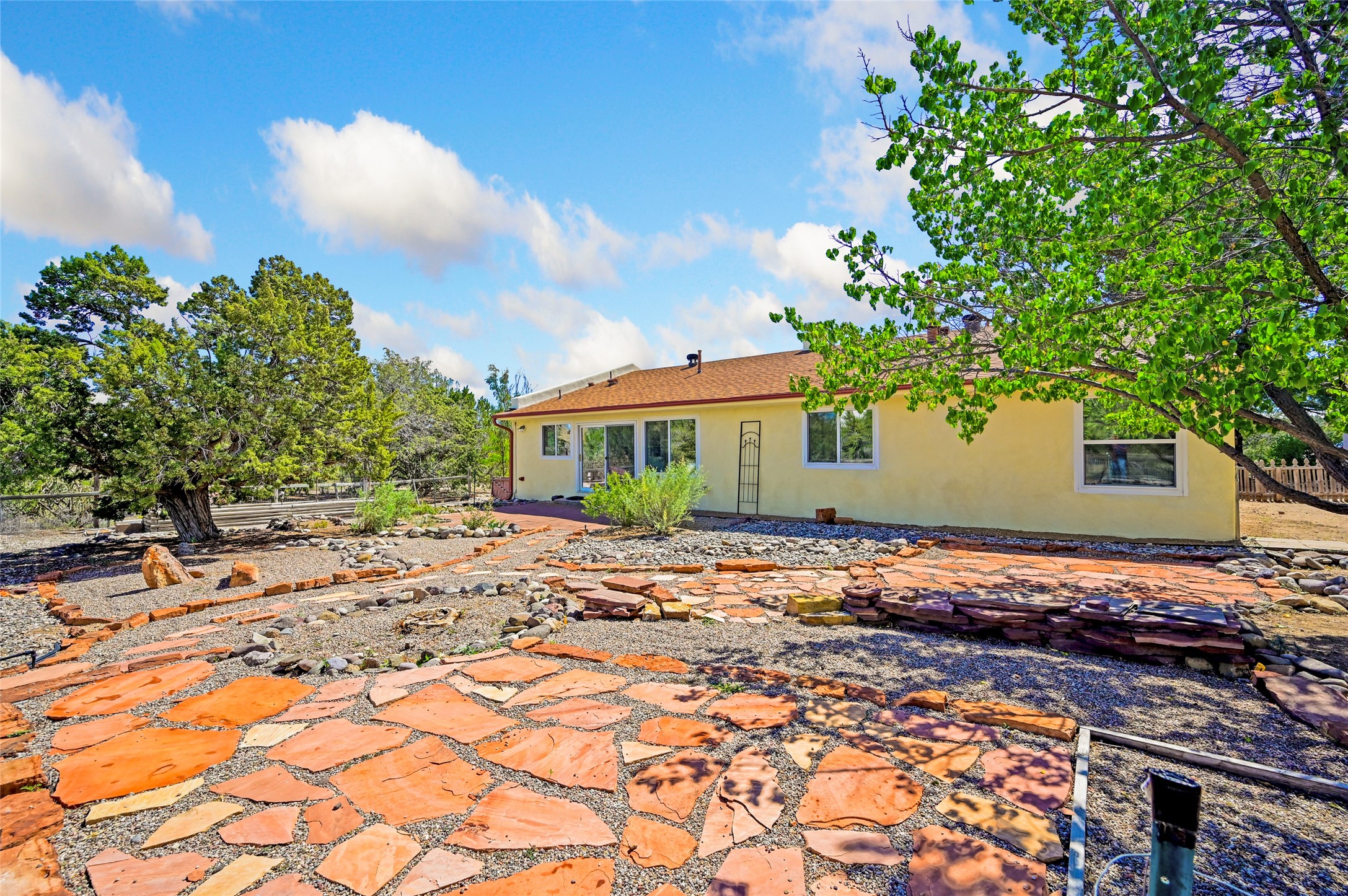 Privately located at the end of a cul de sac, this lovely home boasts tile flooring throughout. Kitchen cabinets, hallway linen closet and second bathroom cabinets are handcrafted and boast a simple and lovely southwest design. The kitchen features a handcrafted backsplash and multi-colored tile flooring that compliments the color palate of the kitchen. Quartz countertops and stainless steel appliance package. Both bathrooms feature new shower and tub surrounds and some new plumbing. The home has central air conditioning to keep things nice and cool in the warmer months. The back yard and patios enjoy views of the mountains to the west/north west. Completely re-stuccoed this past month and exterior woodwork refreshed. Spotless two car garage. Landscaping includes pergola entryway, organic apple and apricot trees and patios in the back yard area. This home was built and maintained as an enviromentally friendly home.