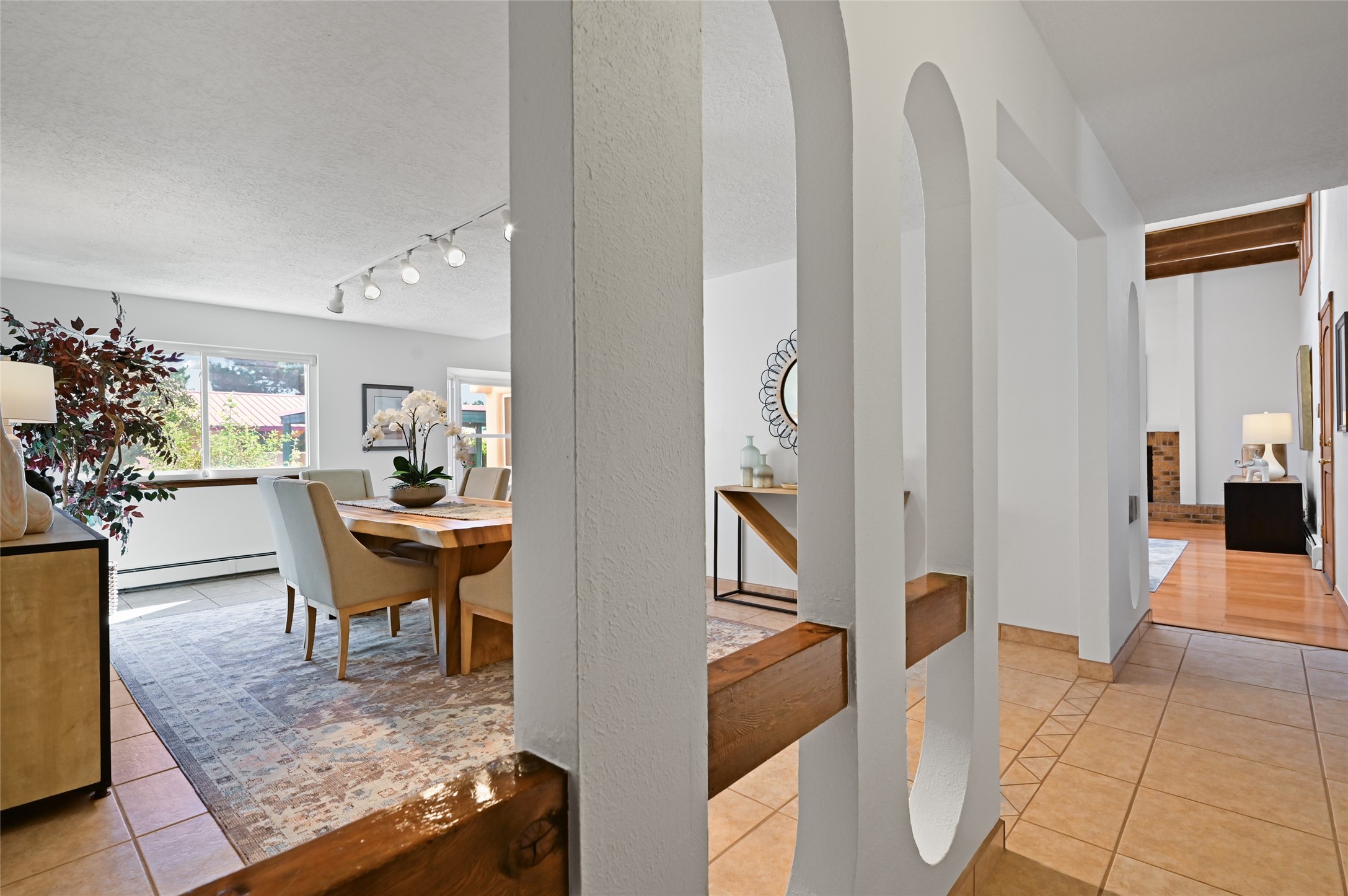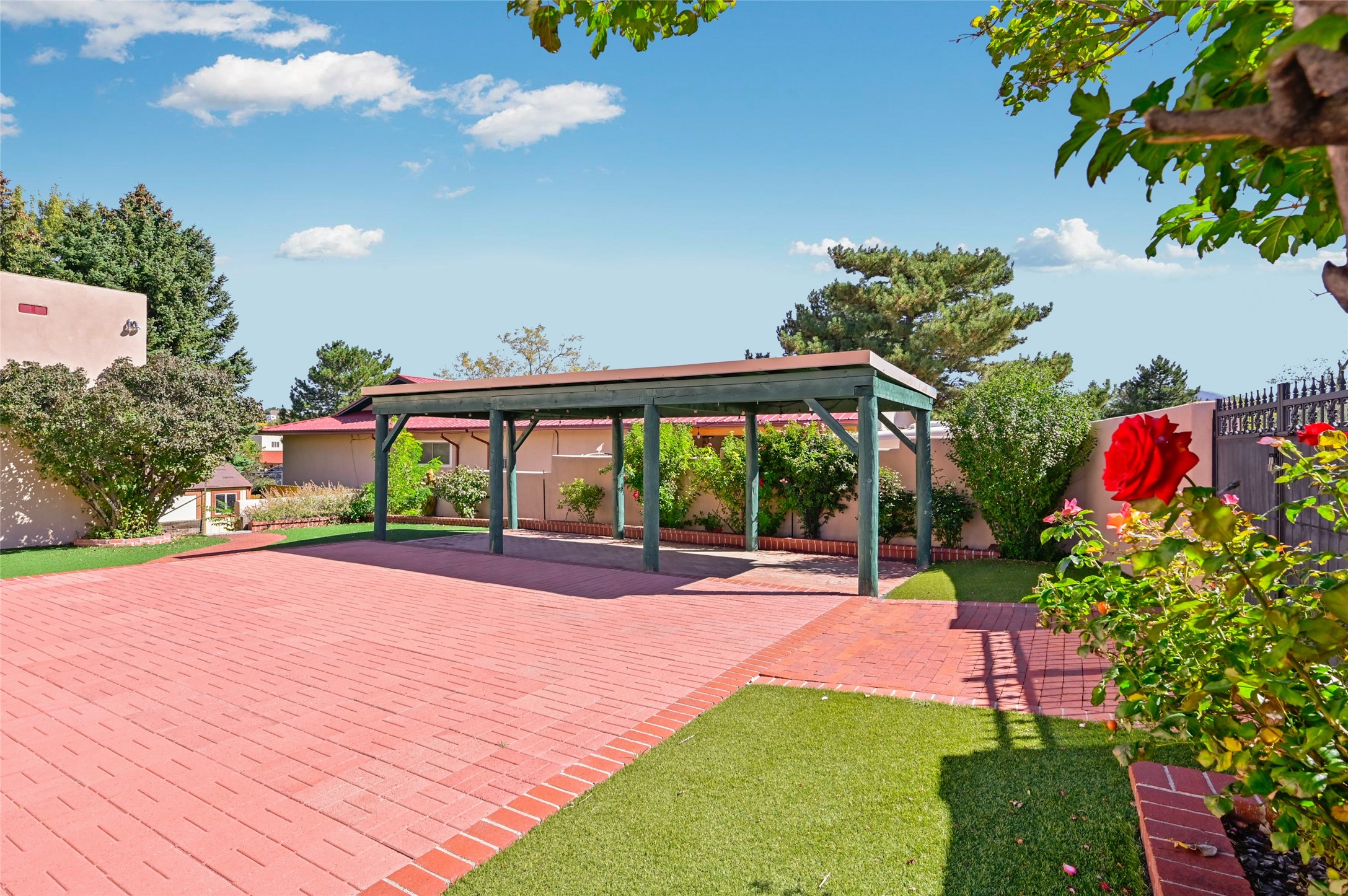 This house feels like a home. It's the real estate equivalent of comfort food! From the mid century modern details in the living/dining area to the updated kitchen to a lovely sunroom opening onto the large, private patio and rose garden, everything about this place is welcoming. The primary suite offers many options with a spacious bedroom, ensuite bath, huge walk-in closet and two adjoining rooms that can be configured to suit many needs -- home office, media room, workout space, nursery, play room, yoga shanti, you name it! Two additional bedrooms and another full bath, all with ample storage, complete the picture. On a corner lot in a true neighborhood where people watch out for one another, you will be minutes from grocery shopping, schools, restaurants, healthcare facilities with easy access to the Railrunner and I-25. Take advantage of the recent price reduction and start your new chapter in this versatile and meticulously maintained home.