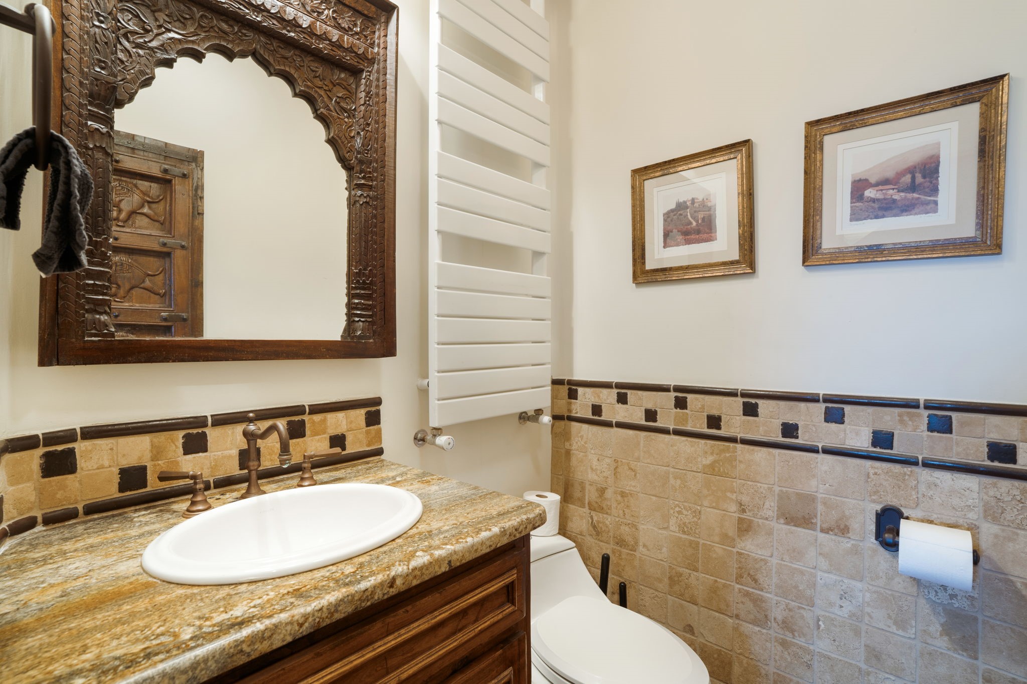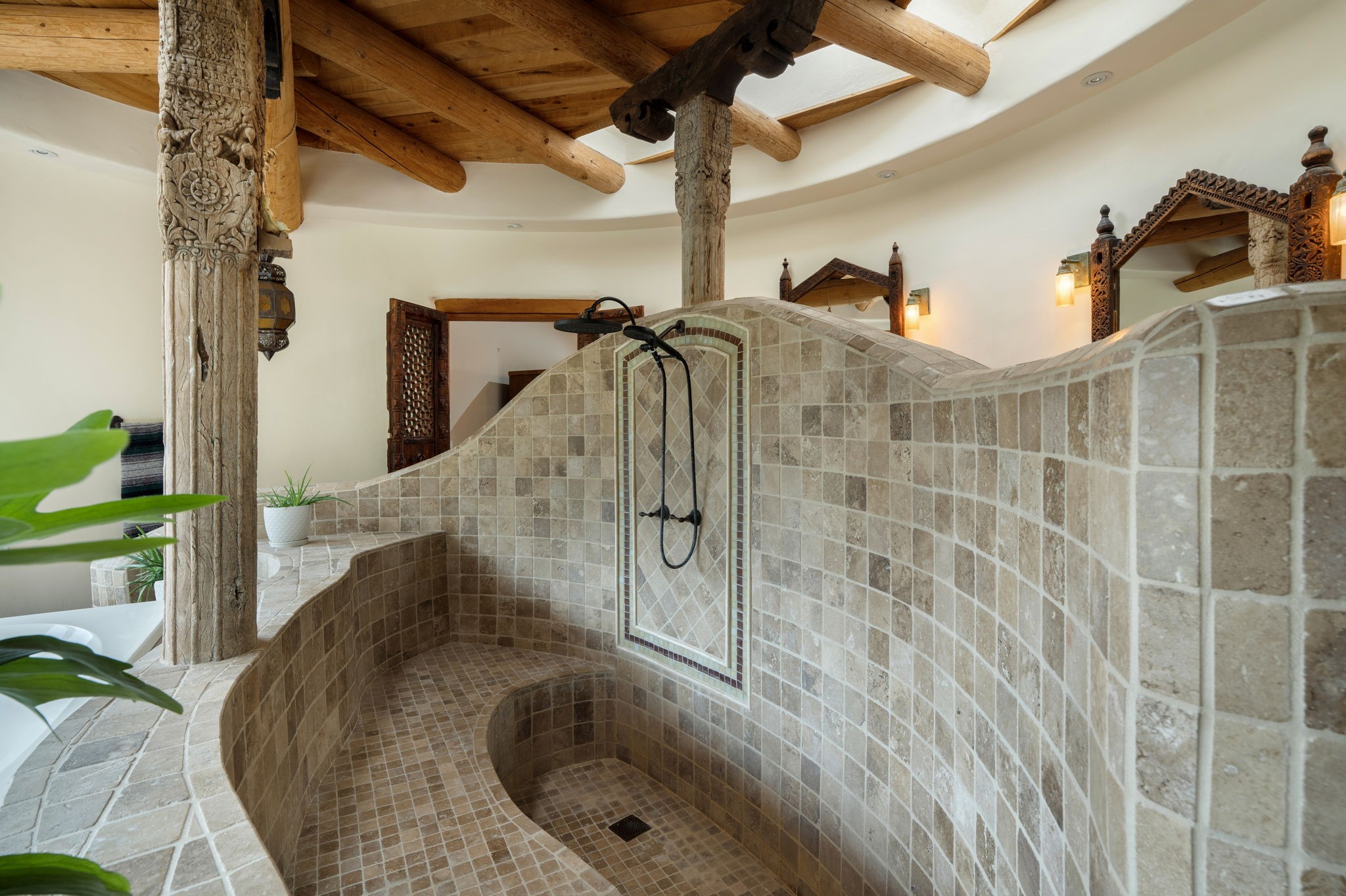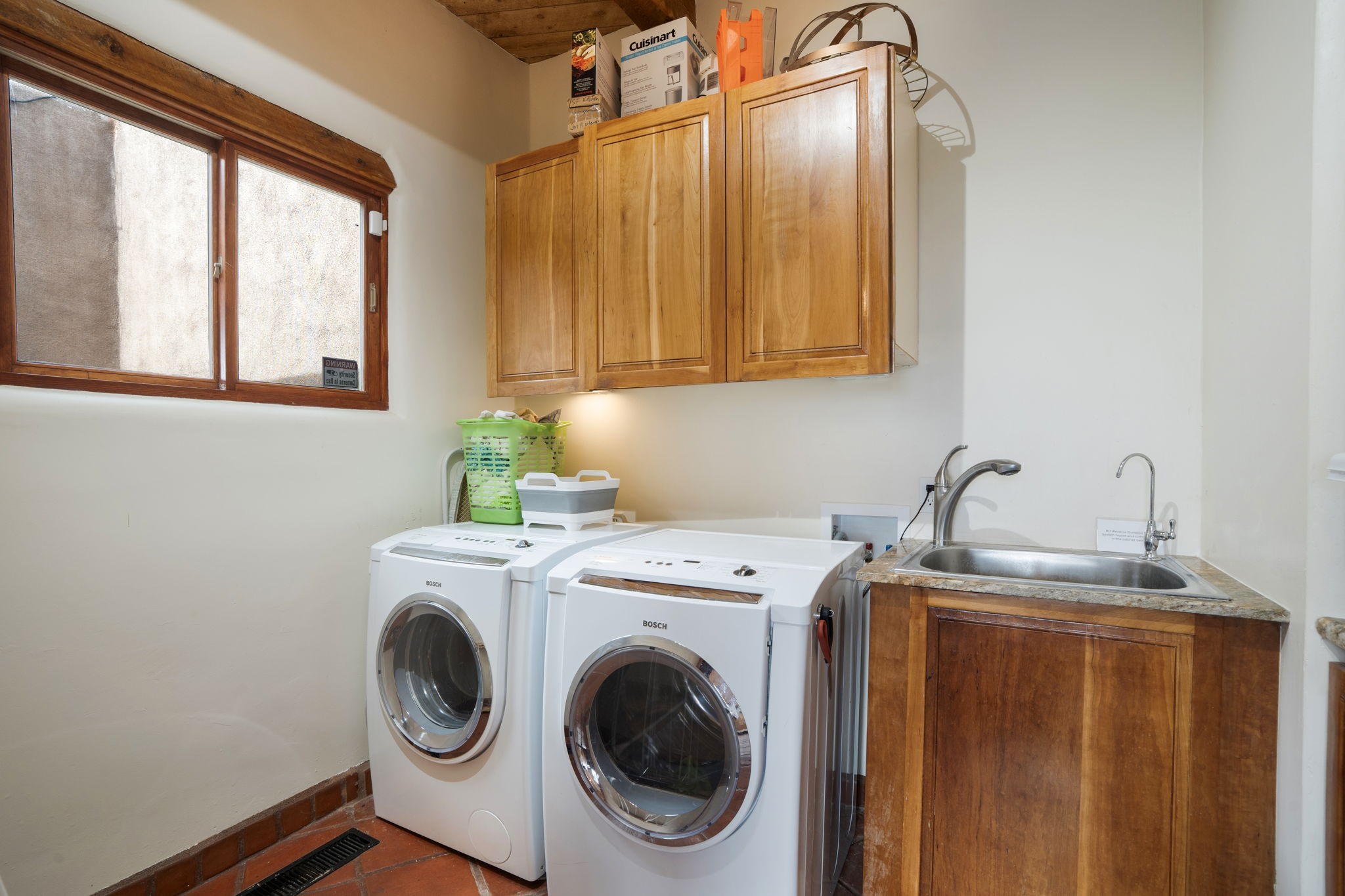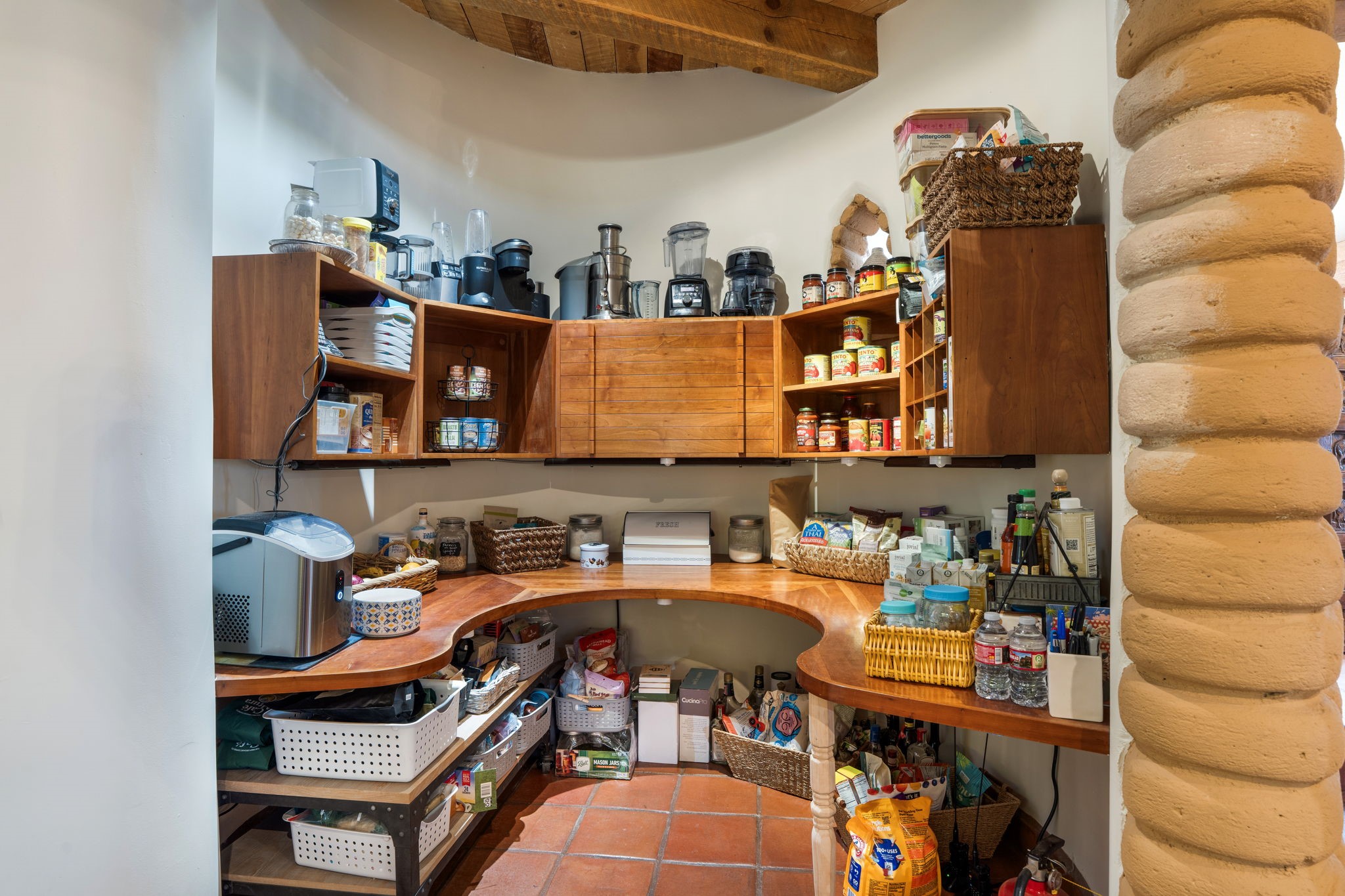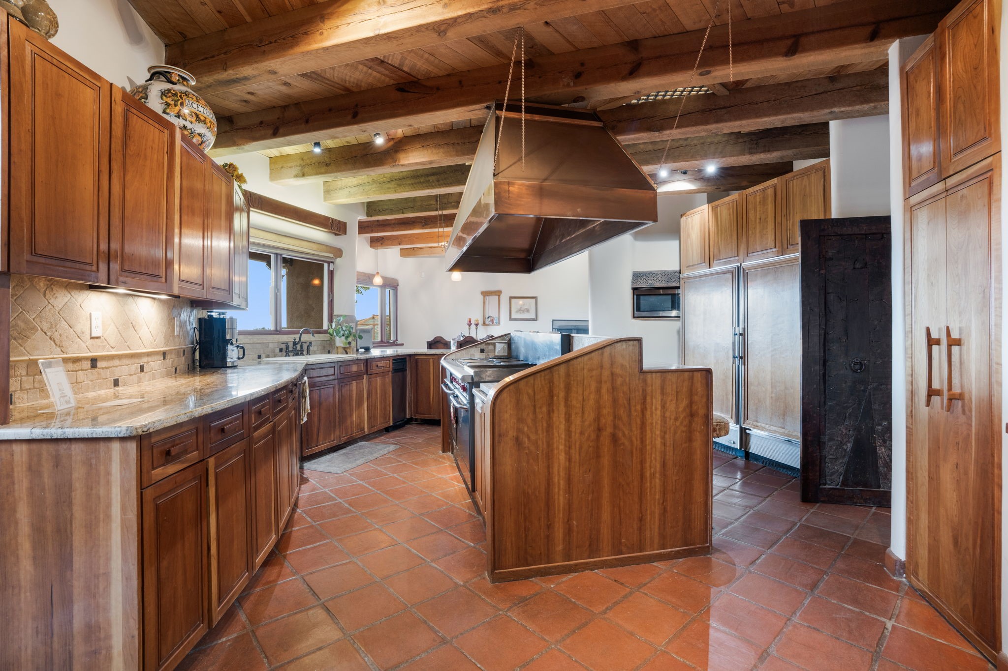 Nestled on 78 pristine acres spread across four deeded lots, this extraordinary estate blends seclusion, artistry, and timeless Southwestern charm--all just 25 minutes from downtown Santa Fe.The 4,400-square-foot adobe home is a masterpiece of craftsmanship and comfort. Solid adobe construction provides natural insulation, keeping interiors warm in winter and cool in summer. Inside, four ensuite bedrooms and 4.5 baths offer comfort and privacy, while 30 hand-carved doors and accents from Seret & Sons lend a one-of-a-kind artistic touch throughout.The great room is the heart of this residence--anchored by a dramatic stone fireplace, high viga ceilings, and a custom antler chandelier that radiates rustic elegance. French doors open to a spacious front portal, framing sweeping Sangre de Cristo Mountain views.A graceful curved staircase leads to the upper level, where two ensuite bedrooms and a balcony overlooking the great room create an inviting sense of openness and connection. The kitchen is both functional and charming, featuring granite counters, abundant cabinetry, and a cozy breakfast nook warmed by its own fireplace. Saltillo tile floors flow throughout the main level, while hardwood floors add warmth upstairs.The primary suite is a private retreat with panoramic views, a luxurious bath with jetted tub, tiled shower, and granite counters--a true spa experience at home.Step outside to a fenced backyard and patio, perfect for savoring dramatic weather shifts, peaceful wildlife, and star-filled nights. Additional features include solar hot water, four fireplaces, a two-car garage, two sheds, and a delightful chicken coop with eight hens providing fresh eggs daily.This property is more than a home--it's a work of art nestled in nature, offering tranquility, authenticity, and soul. Experience the best of Santa Fe living, where art, architecture, and landscape unite in harmony.