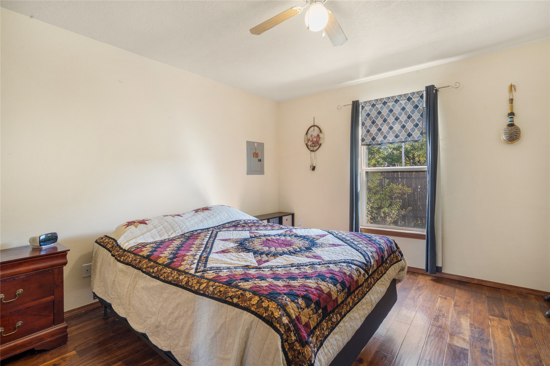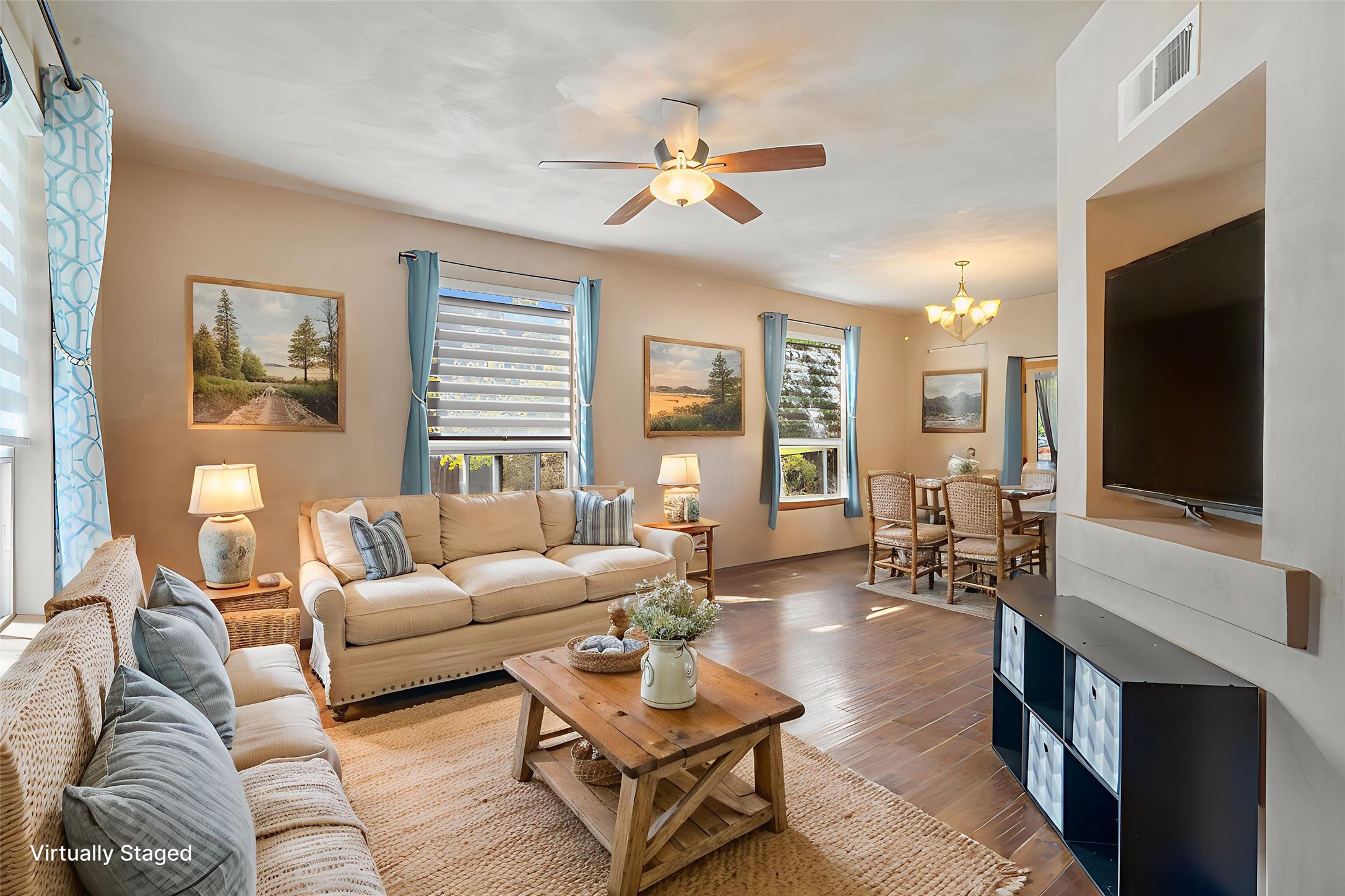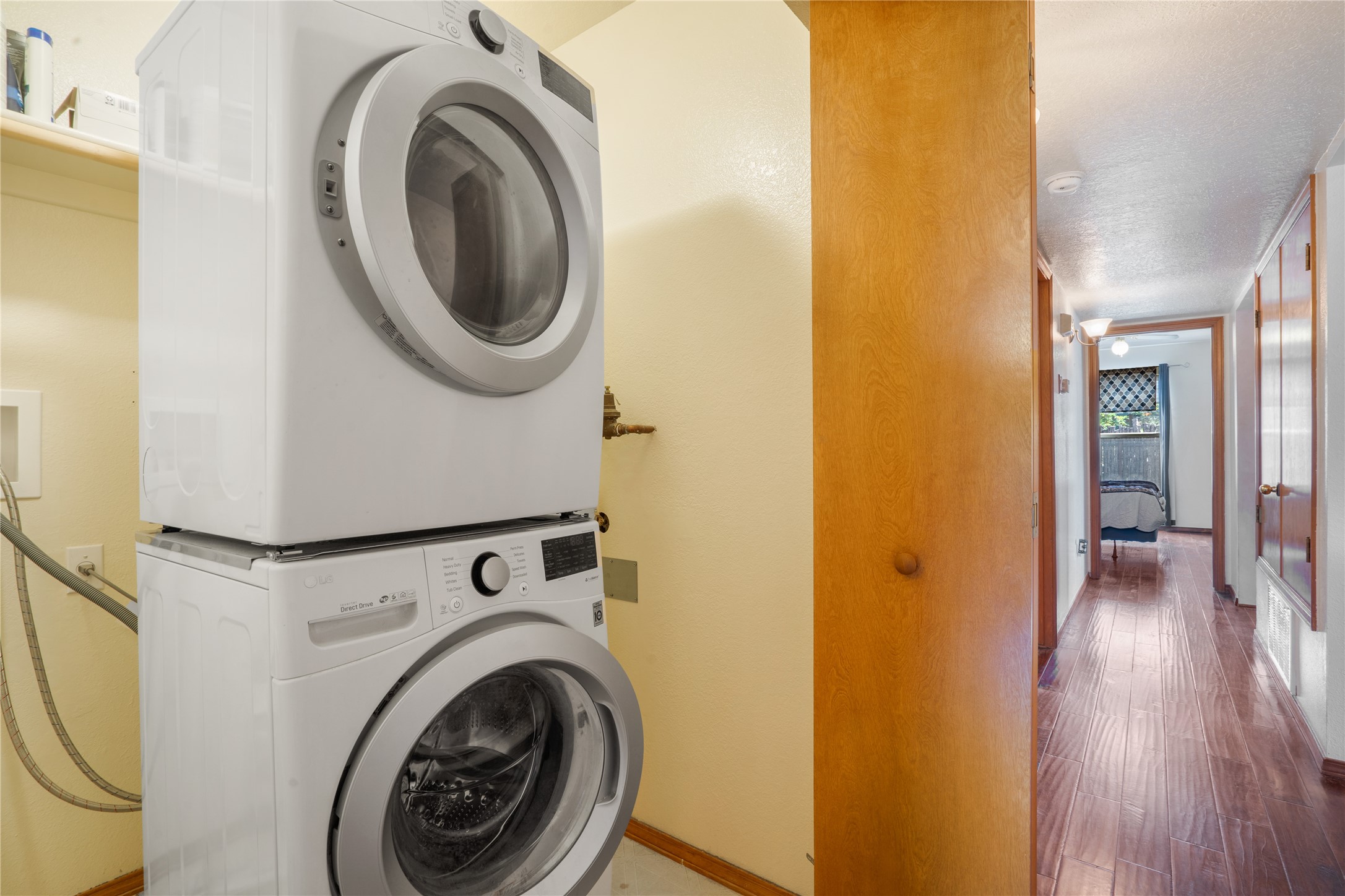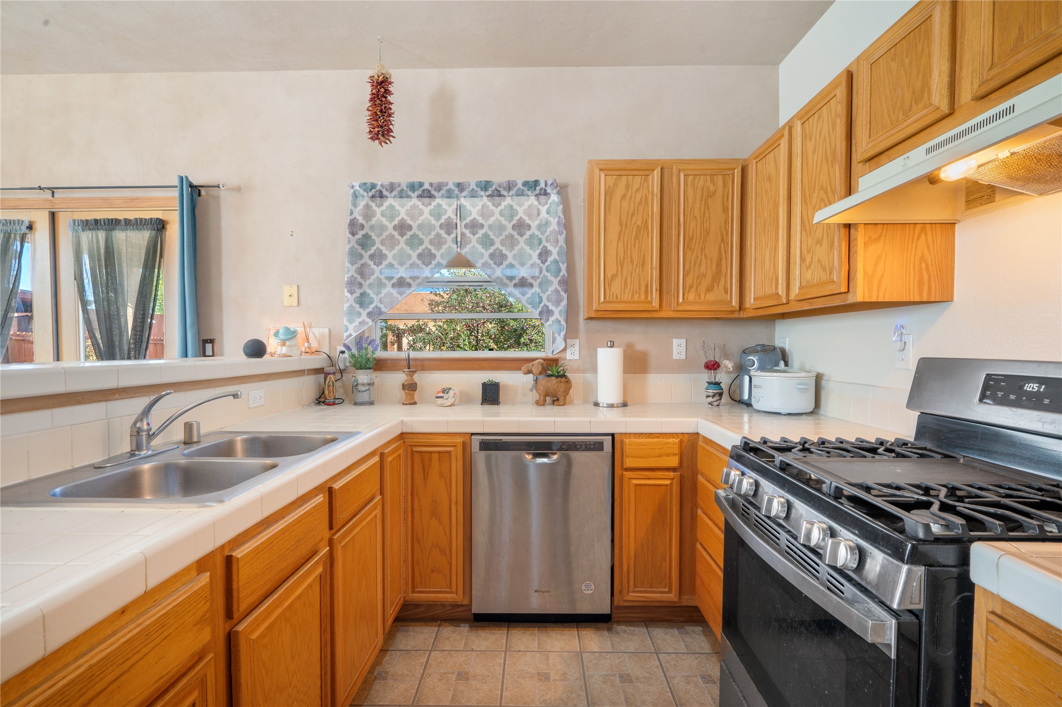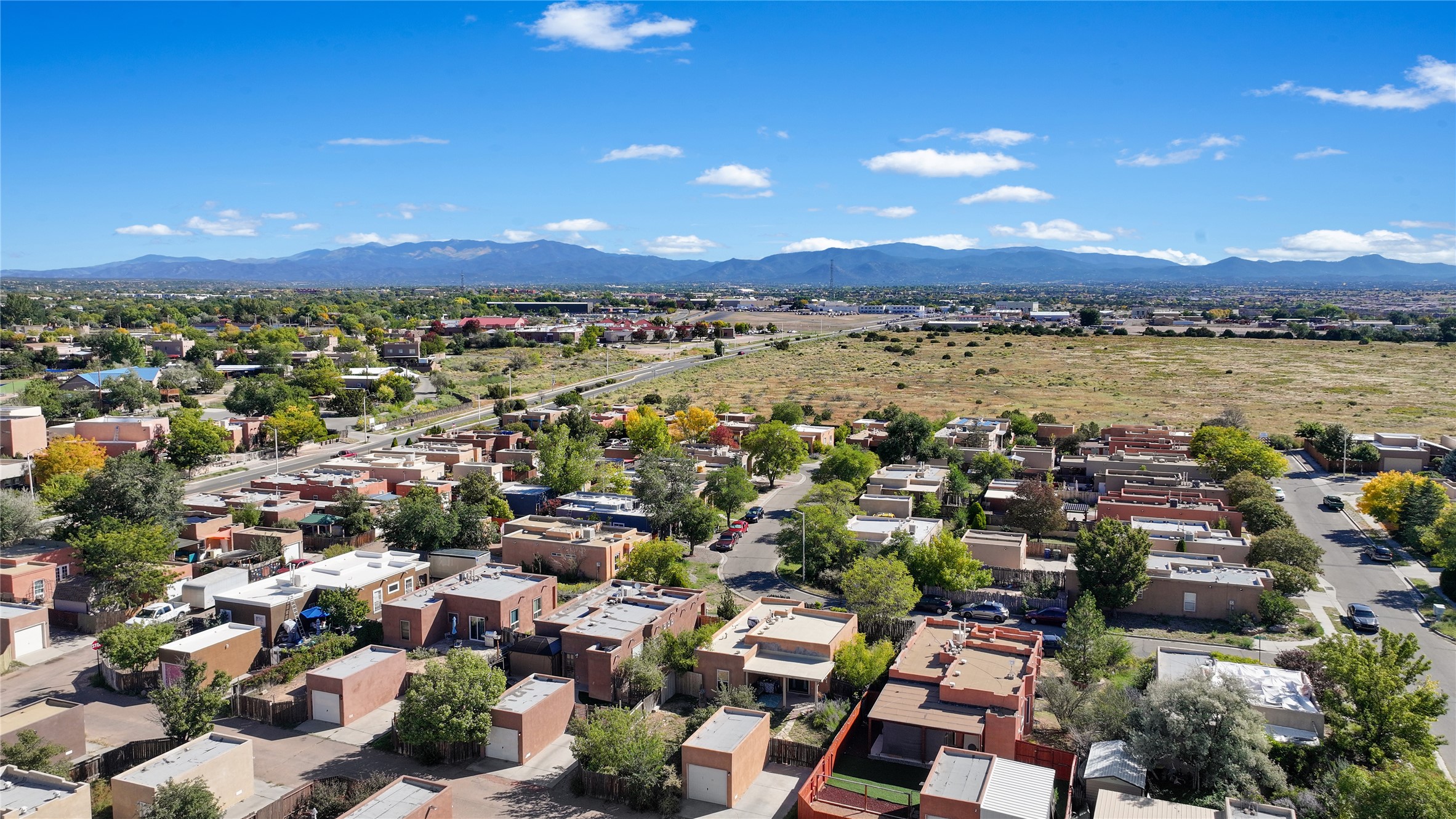 Charming 2-bedroom, 1-bath home with a 1-car garage and off-street parking. Comfortable, move-in ready living with tranquil outdoor spaces. A gated, fenced front yard with established, drip-irrigated plantings provides curb appeal and privacy. Inside, the living and dining areas flow into the kitchen, and an updated bathroom showcases clean, modern finishes. The fully enclosed backyard is a gardener's delight with bountiful apple trees and lush landscaping, plus a detached garage that could also serve as a gym or workshop. Ideally located with easy access to I-25 and NM-599 and near shopping, schools, popular restaurants, and Presbyterian Hospital. Schedule your showing today!