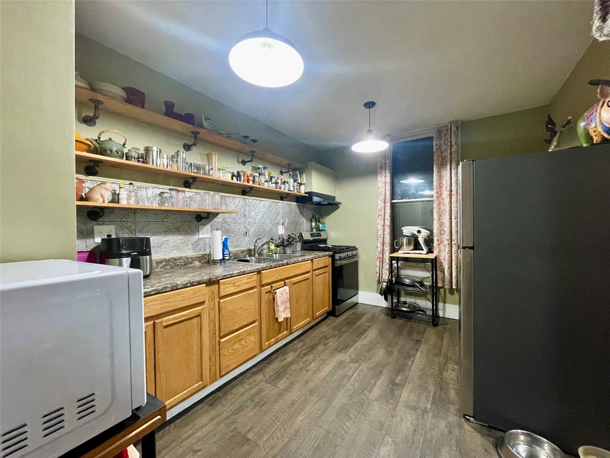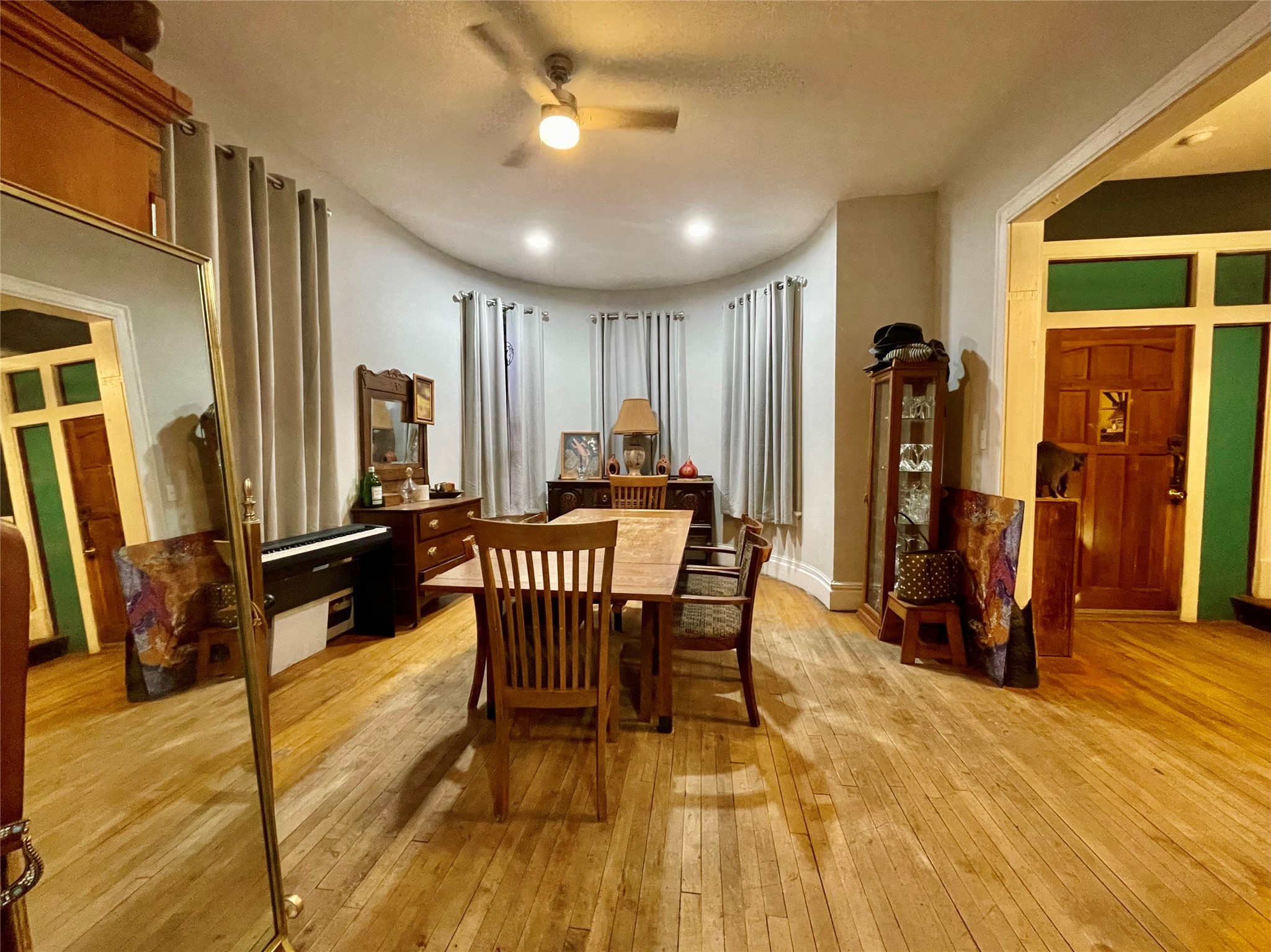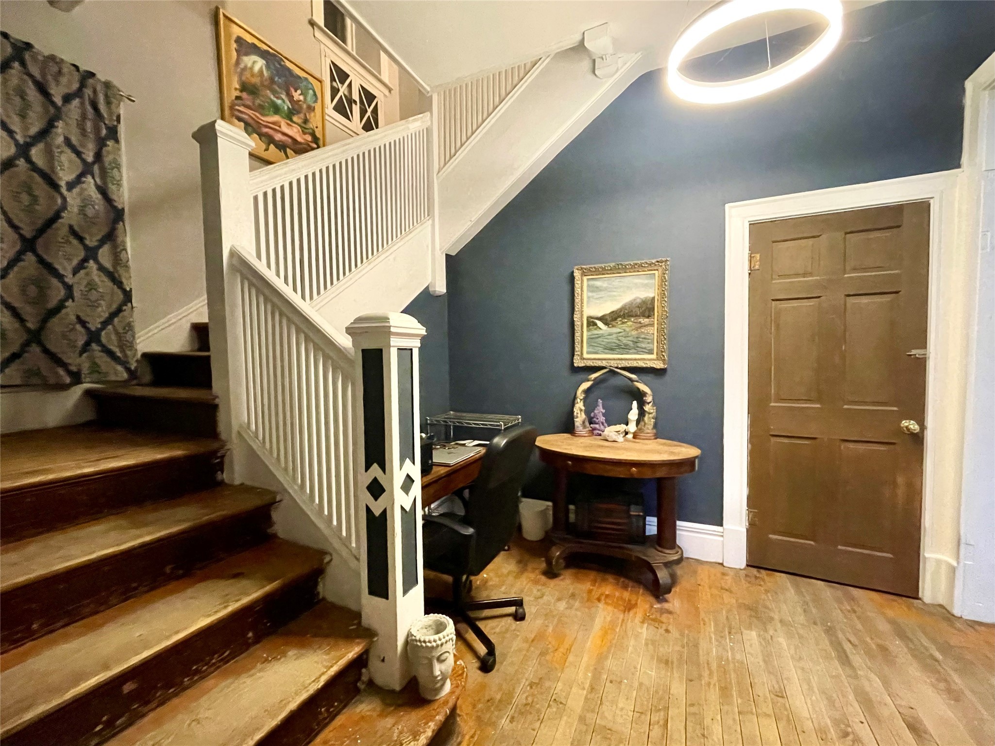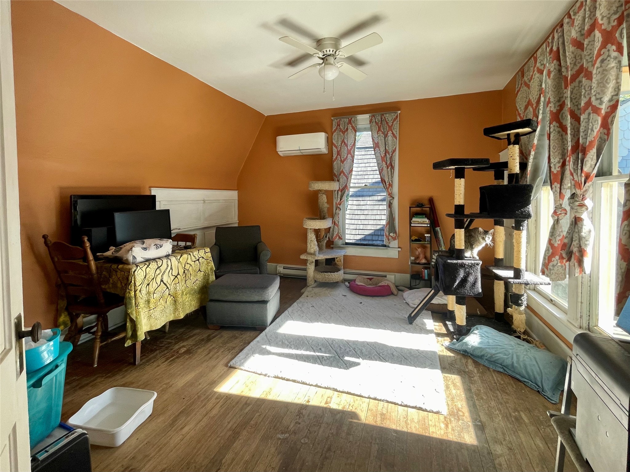 Charming and spacious home, with turret tower, cedar shingle siding, Juliet balcony, large pocket door, and 3 season enclosed porch, along with 2 bedroom rental unit make this the ideal in town home. Main home sits on 4 city lots and has 4 bedrooms, 2 bathrooms, living room, dining room, kitchen, foyer, large laundry/craft room, enclosed front porch, outside front and back porches, and basement. Updates: 2 new furnaces with central air and separate zone control, new dimensional shingle roof, new insulation and drywall, updated bathrooms but one still has original clawfoot tub!, new plumbing, new tile, all new appliances, updated electric with 200 amp service, new carpet in 2 bedrooms, new front porch, new 30 amp RV hookup. The backyard is fenced with raised garden beds, chicken coop, detached garage with alley access, patio areas and porches, grape covered trellis, and many mature trees and perennials including apple and cherry trees. The rental unit has separate meters and it's own laundry room, as well as new covered front porch, and back porch and balcony. All of this and walking distance to New Mexico Highlands University, shops, and grocery store, as well as the historic Las Vegas New Mexico Plaza make this home so livable!
