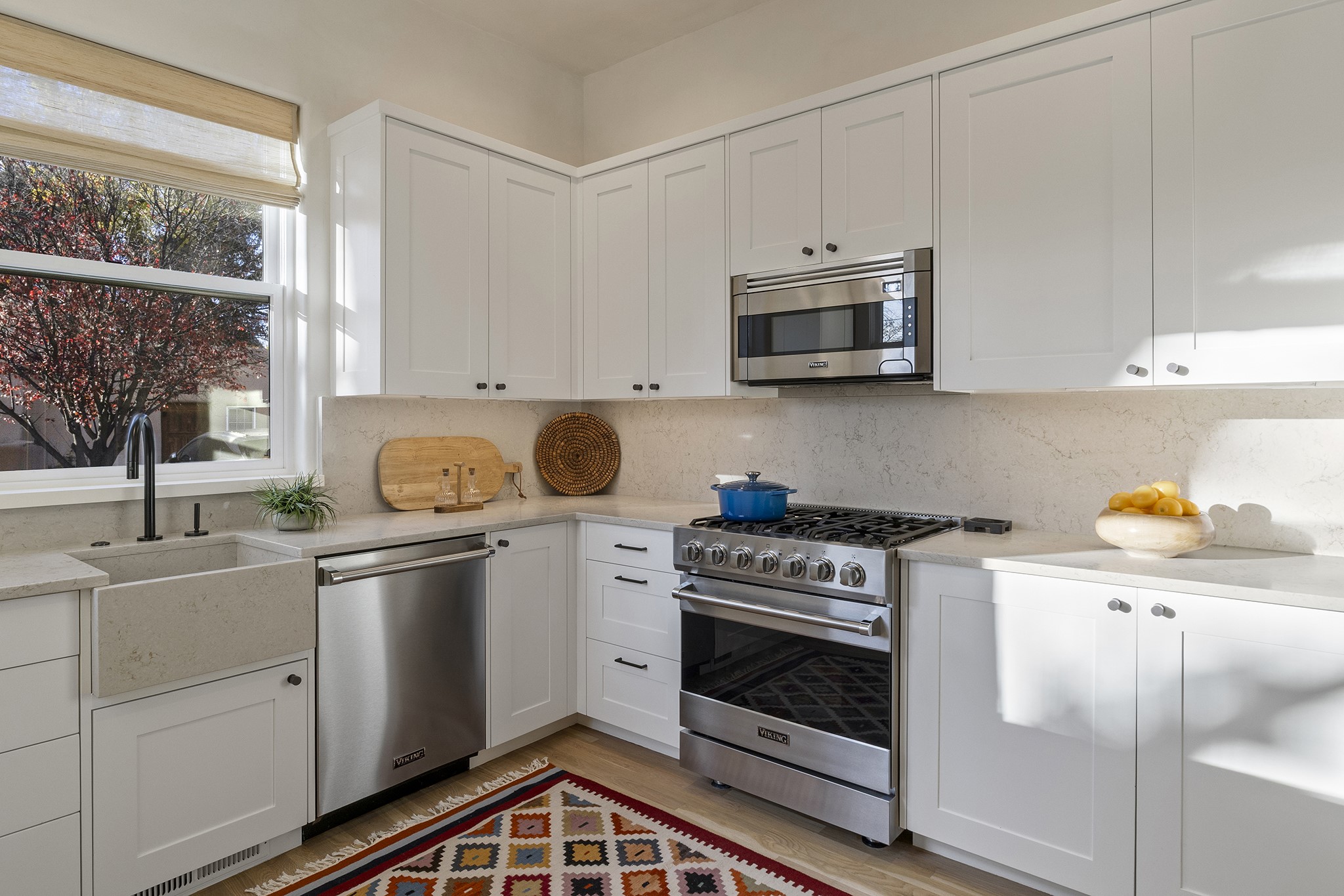 Just moments from Santa Fe's historic Plaza and Canyon Road, this 3 bedroom, 2 bath home embodies refined Southwestern elegance. Masterfully reimagined by Bergman Vass Interiors, it blends contemporary sophistication with the warmth of Santa Fe's timeless style. Every detail reflects exceptional craftsmanship with no surface left untouched! New energy-efficient windows and custom glass doors bathe rich hardwood floors in natural light. Recessed lighting highlights the home's architectural beauty, while landscaped gardens, an upstairs deck and flagstone patios create a serene outdoor retreat. A hand-forged gate, custom fireplace screen, and luxurious closets complete this remarkable residence.