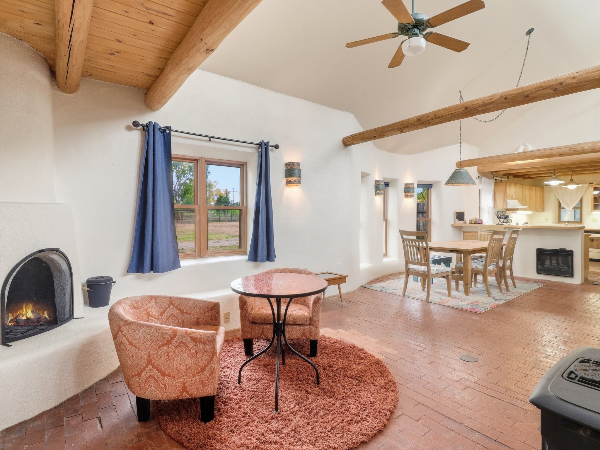 Your Private Northern New Mexico Retreat -- Two Residences, One Unforgettable PropertyNestled in the serene Pojoaque Valley and perfectly positioned between Santa Fe's historic charm and Los Alamos' thriving innovation hub, 40 County Road 84B is a rare find offering two distinct homes on a beautifully landscaped 1.46-acre parcel.The main residence is a warm and inviting 4-bedroom, 2.5-bath adobe-style home that exudes classic New Mexico character. Soaring with natural light, this 2,450 sq ft home boasts both a cozy family room and a separate living room, ideal for multi-generational living or work-from-home flexibility. Rich wood and brick accents, traditional touches, and thoughtful flow create an atmosphere of rustic elegance. Step onto the upstairs deck or into the walled backyard to soak in tranquil views of cottonwoods, distant mesas, and the Ortiz Well Ditch that mirrors the shimmer of a pond just across the way.Complementing the main house is a 927 sq ft two-bedroom casita, currently a successful short-term rental generating over $24,000 in annual income. With its own private yard and entrance, it offers versatility as a guesthouse, in-law suite, or income-producing asset from day one.Additional features include: Classic adobe construction with metal roofing, two fireplaces and baseboard heating, a private well with water rights, landscaped and natural grounds with mature trees, two storage units and ample off-street parking and no HOA restrictions.Located just 20 minutes to Los Alamos National Lab and 25 minutes to downtown Santa Fe, this property is ideal for LANL commuters, artists, remote workers, or anyone seeking the balance of rural tranquility and urban access. Only minutes to groceries, schools, and cultural attractions, this hidden gem is the perfect base for Northern New Mexico living.Whether you're envisioning a multi-generational compound, live-work space, or income-generating retreat, 40 County Road 84B delivers lifestyle and opportunity in one extraordinary package.