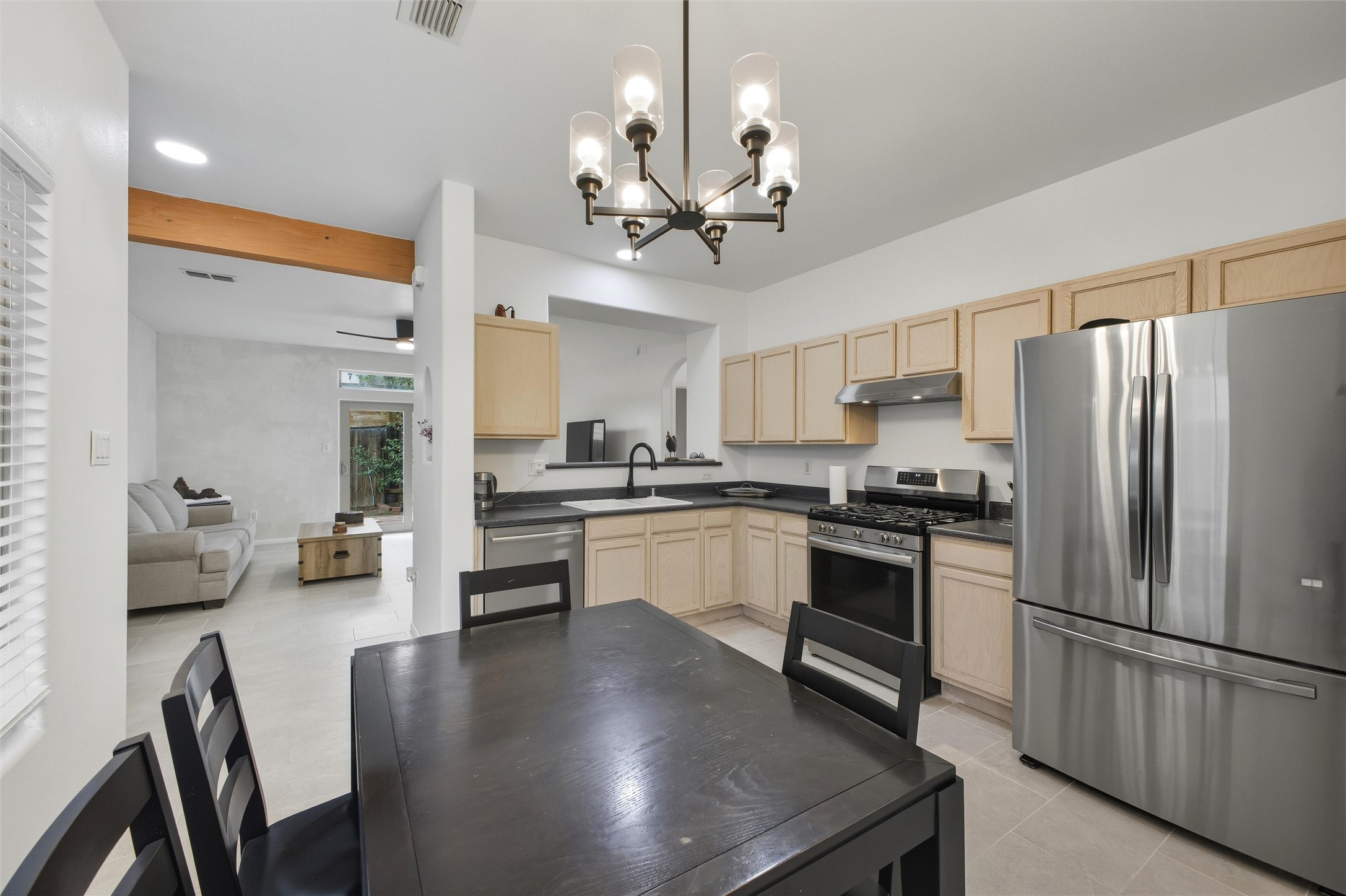 Updated in 2025, 4616 Apache Knoll blends warm Santa Fe style with modern comfort and easy, low-maintenance living. Sunlit interiors and a fresh, neutral palette set the tone as the main living and dining areas flow naturally to a modernized kitchen with refreshed cabinetry and counters, updated fixtures and lighting, and generous prep and storage--ideal for everyday cooking and casual gatherings. Bathrooms read clean and current with contemporary finishes, while comfortable bedrooms and a flexible additional space accommodate work, hobbies, or overnight guests. Throughout the home, coordinated 2025 improvements--interior/exterior paint, lighting upgrades, and selective hardware/trim--create a cohesive, move-in-ready feel. Outdoor living is equally simple and inviting: low-water landscaping and private patio areas offer sunny spots for morning coffee and shaded corners for evening conversation, with room to garden, grill, or just unwind. The setting balances quiet neighborhood living with quick access to parks, shopping, dining, and commuter corridors, placing everyday conveniences within minutes and the best of Santa Fe an easy drive away. Whether you're seeking a full-time residence or a low-maintenance home base, Apache Knoll delivers an updated, turnkey option in a desirable location.