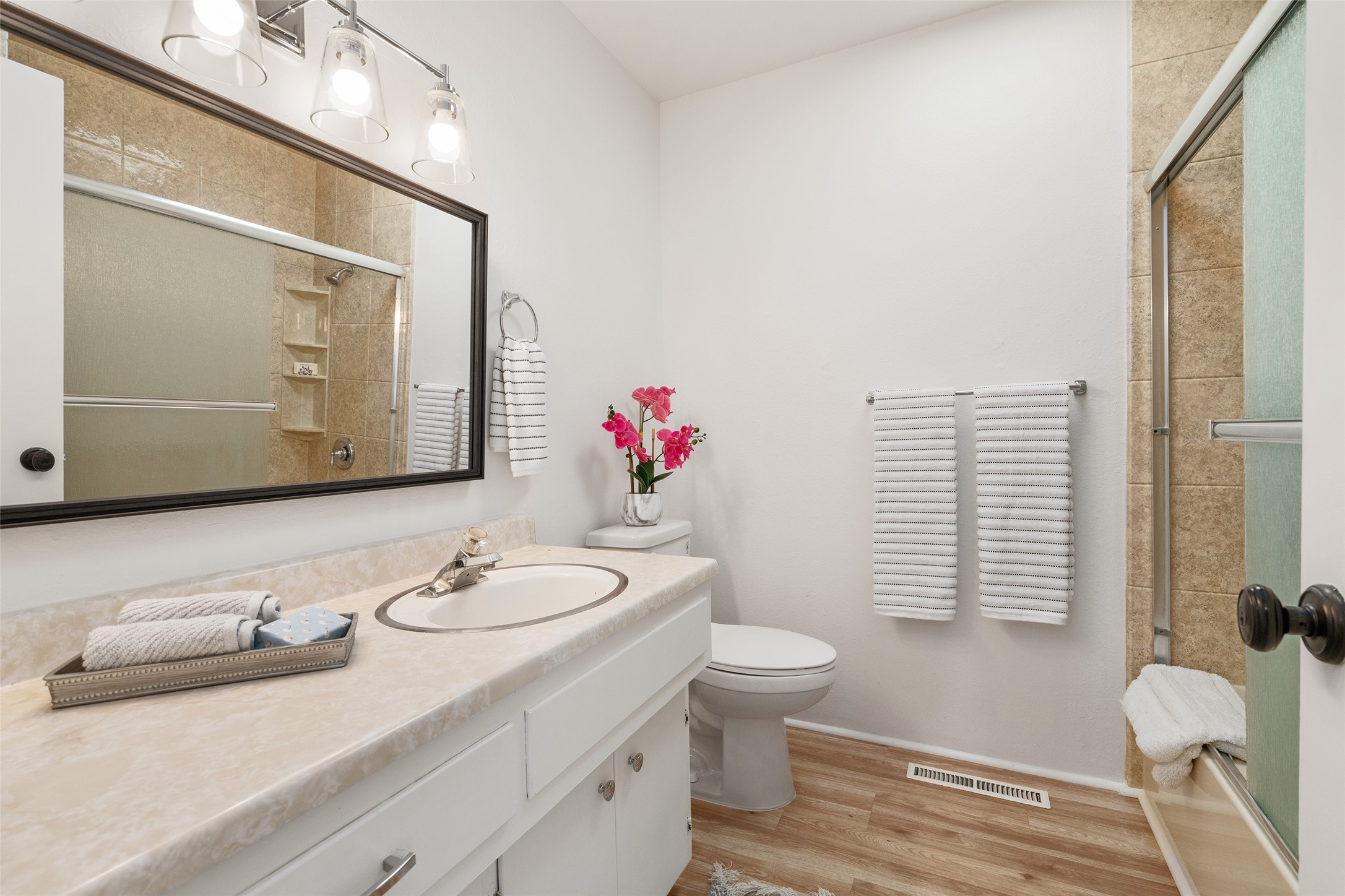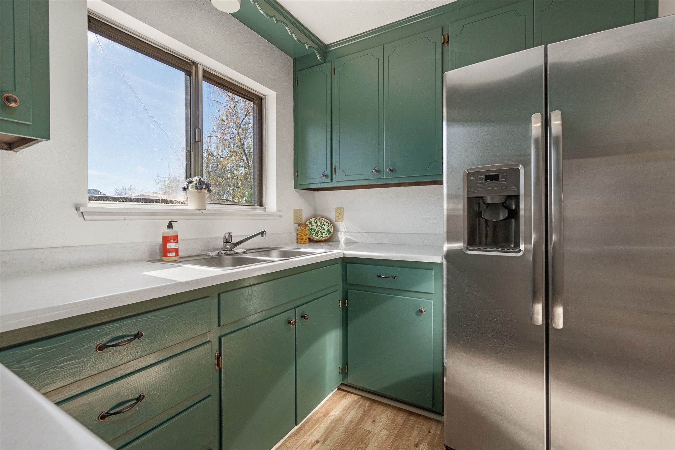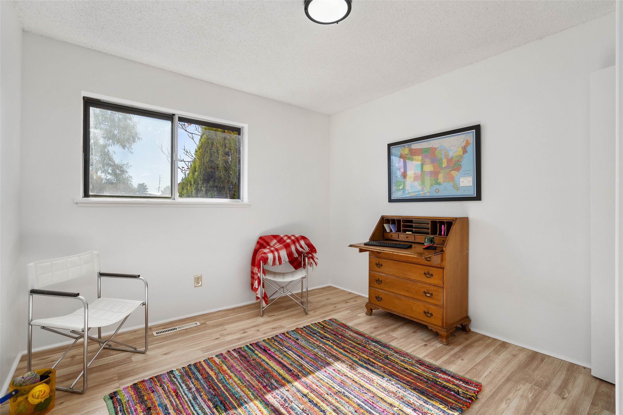 Don't miss this beautifully refreshed home near schools, parks, and shopping! Freshly painted with new flooring throughout, this home features an open floor plan that flows seamlessly from the welcoming living room--with its cozy kiva fireplace--to the dining area. The kitchen offers a newer refrigerator, and will soon include a brand new oven and sink. There's lots of extra storage - two hall closets and a linen closet. Enjoy meals in the eat-in nook, or easily add extra cabinetry for more storage and workspace. The one-car garage provides additional storage, and the spacious backyard is perfect for entertaining or relaxing under the covered patio. Move-in ready and full of charm--this home is the perfect blend of comfort, convenience, and value!