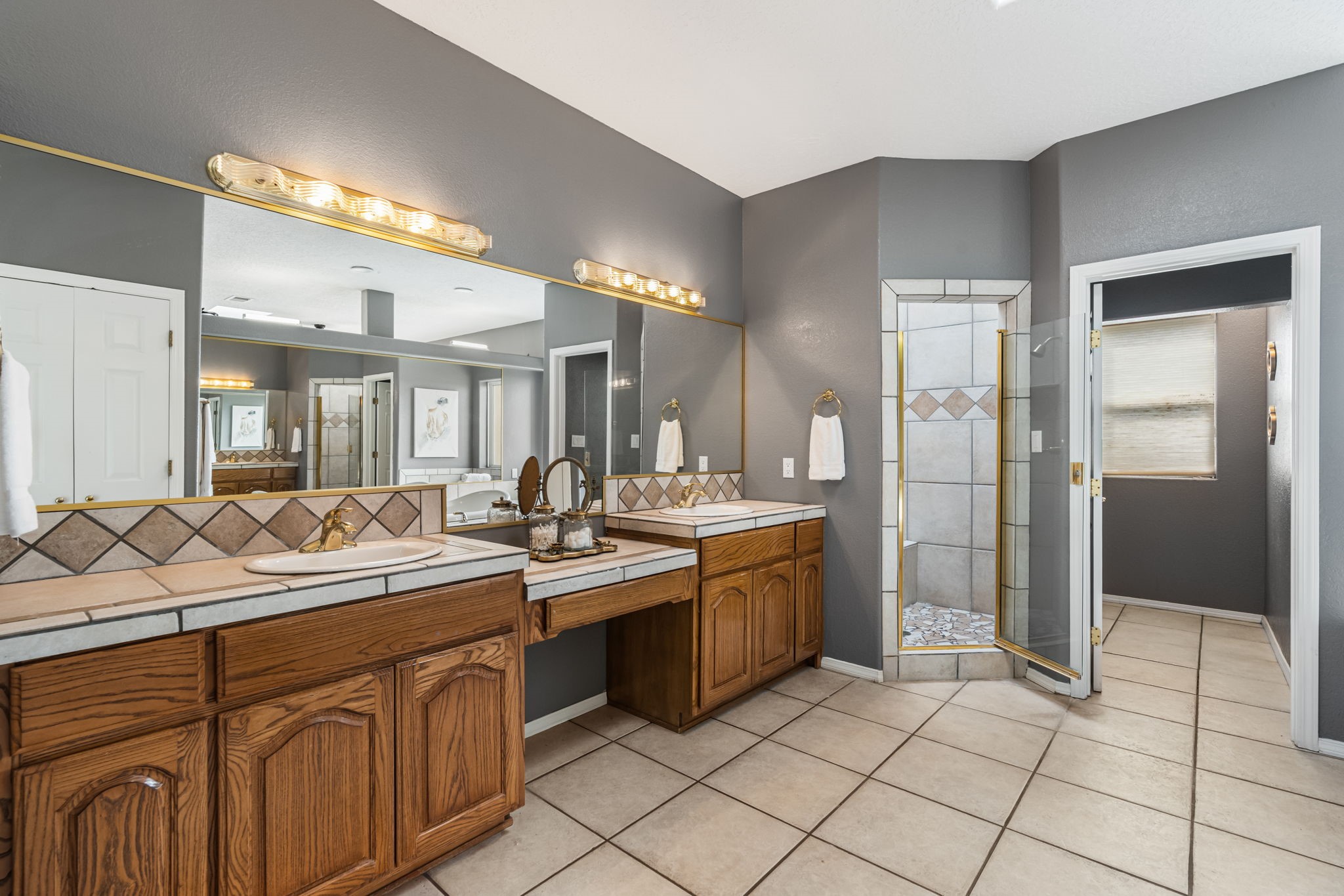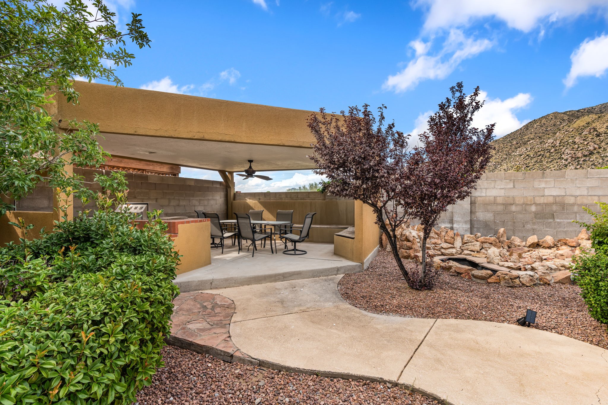 This elegant 1809 Archuleta Dr NE. This expansive 6-bedroom, 4-bath home offers an updated kitchen that blends style and functionality, two primary suites, a spacious upstairs living/game room with a bar, and an inviting atrium. Enjoy a cinematic experience in the private movie theater room, or take advantage of the tandem pull-through garage, which leads to a beautifully landscaped backyard. Nestled next to Embudo Canyon, the property ensures privacy and tranquility. The outdoor space includes an inground pool, outdoor kitchen, fruit trees (peach, cherry, apricot), and grapevines--perfect for both relaxation and entertainment.