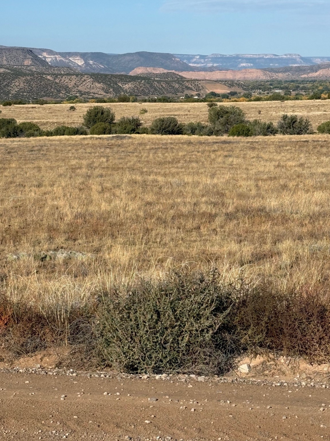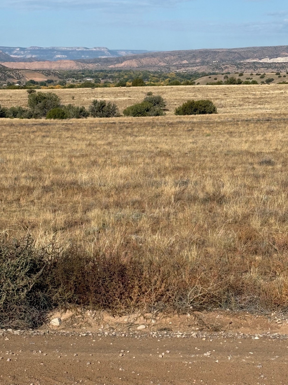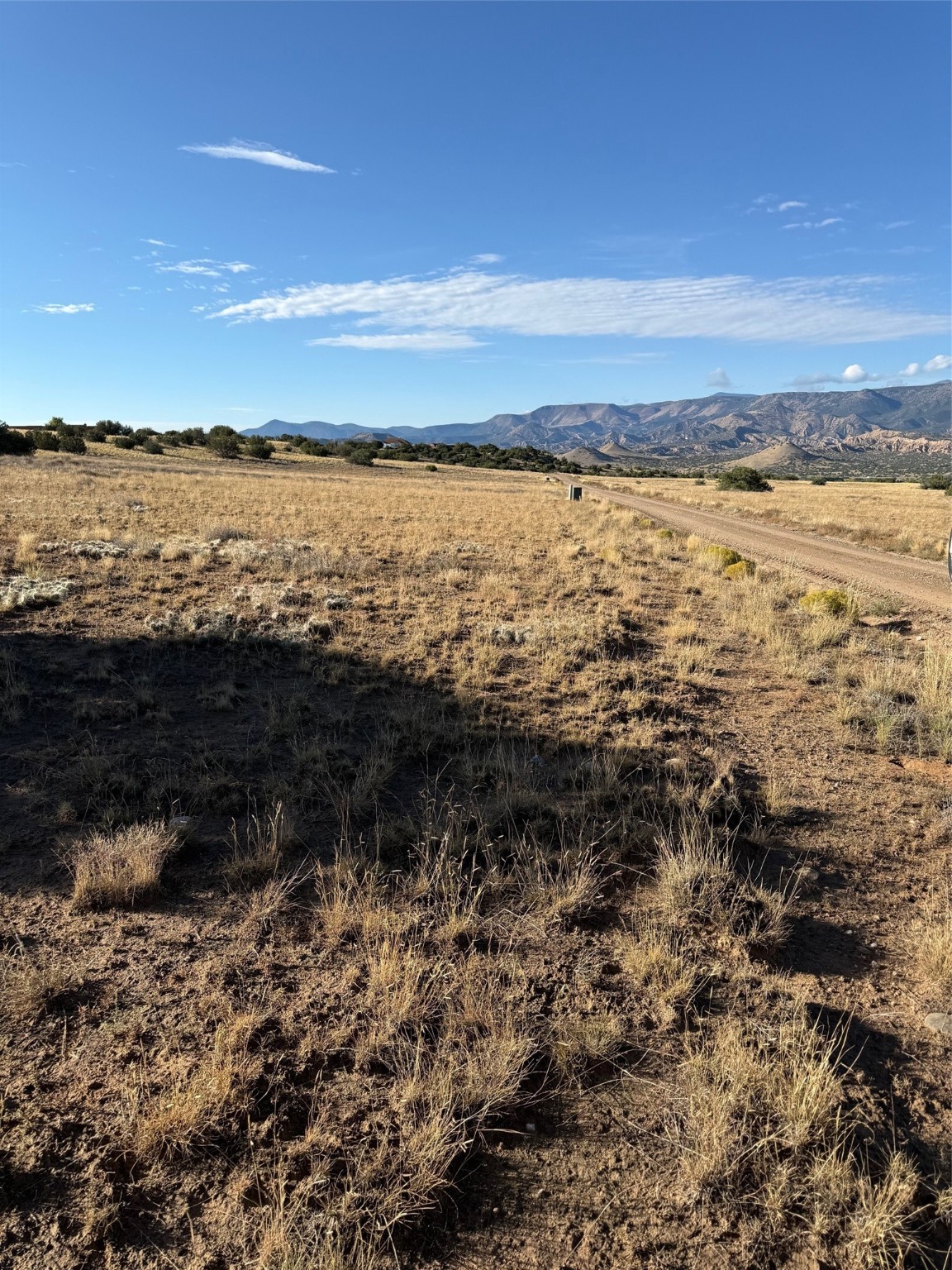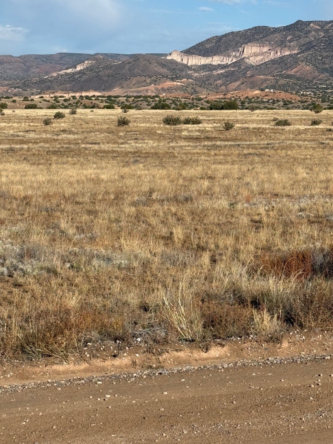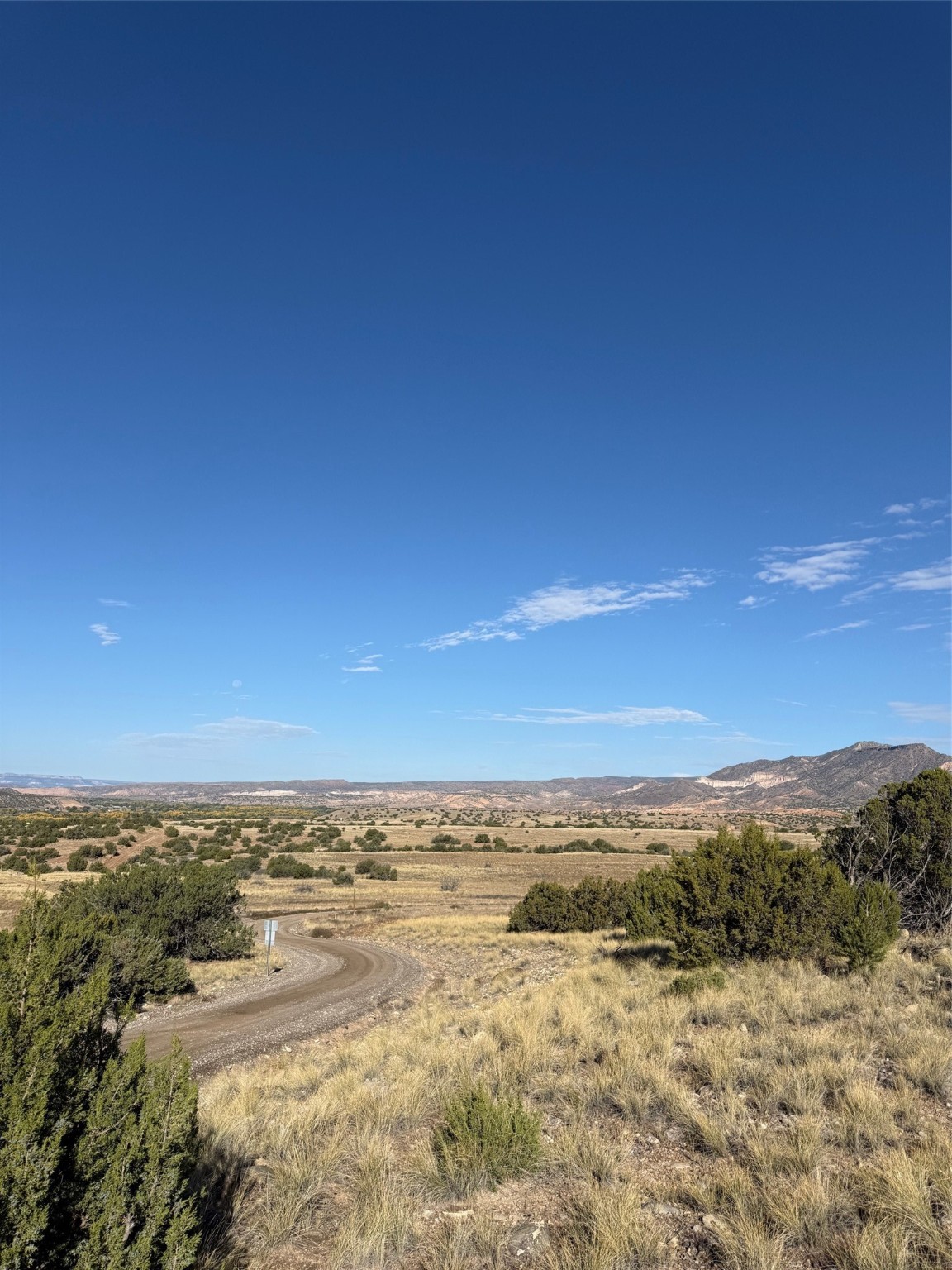 Lot 28 in the Vista de Pedernal subdivision offers a truly exceptional homesite, boasting stunning vistas that captivate throughout the day and year. The night sky is often crystal clear, revealing a vast universe at your fingertips. The panoramic views extend from the Jemez Mountains to the south, with the prominent Pedernal Mountain dominating the southwest. Beyond it, Mesa Alta, Plaza Blanca, and Cooper Mountain are visible to the northwest, almost shadowed by Mesa Negra. To the north lies El Rito, and to the east, the magnificent Sangre de Cristo mountain chain completes this breathtaking landscape. Another excellent view is the Chama River Valley. This 10-acre lot offers multiple building sites, including some on the upper east side with access from Lakewood Lane, and is surrounded by several beautiful custom-built homes. Perched on the mesa, this location offers a scenic drive to Medanales, and onward to Abiquiu, Espaola, Santa Fe, Taos, or Los Alamos.