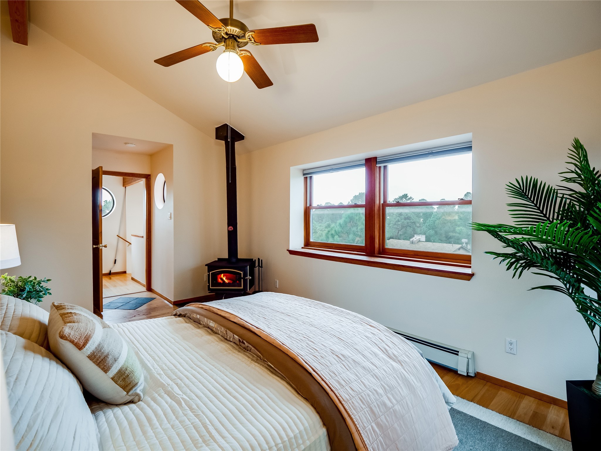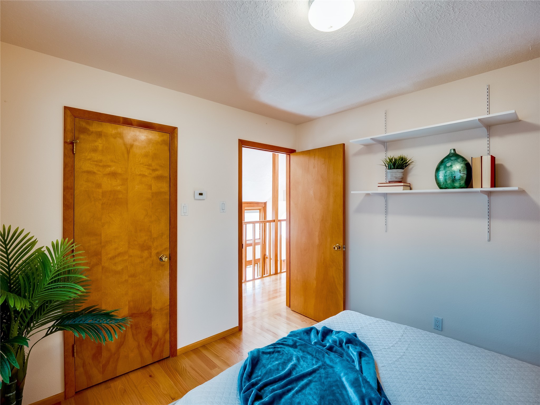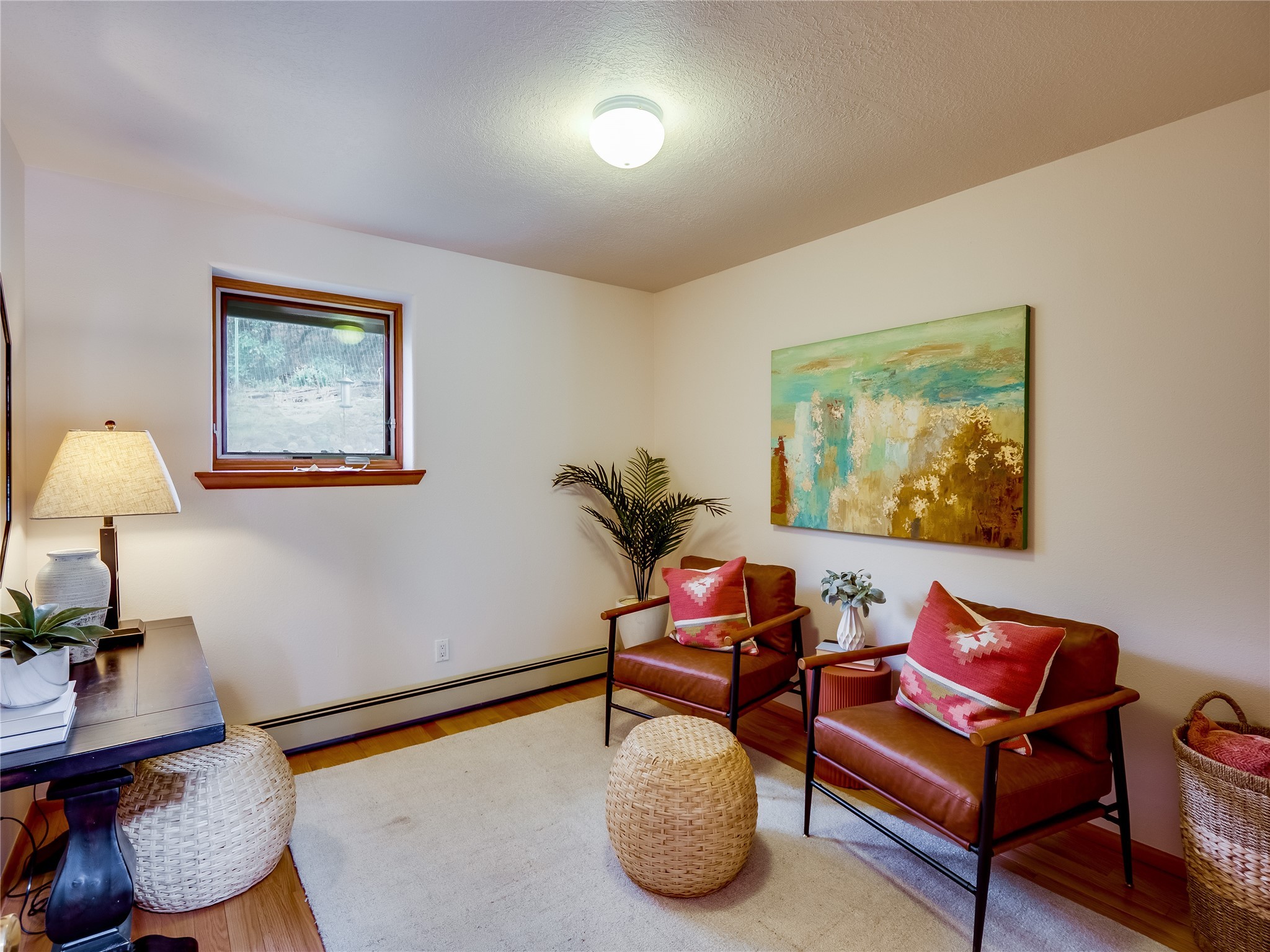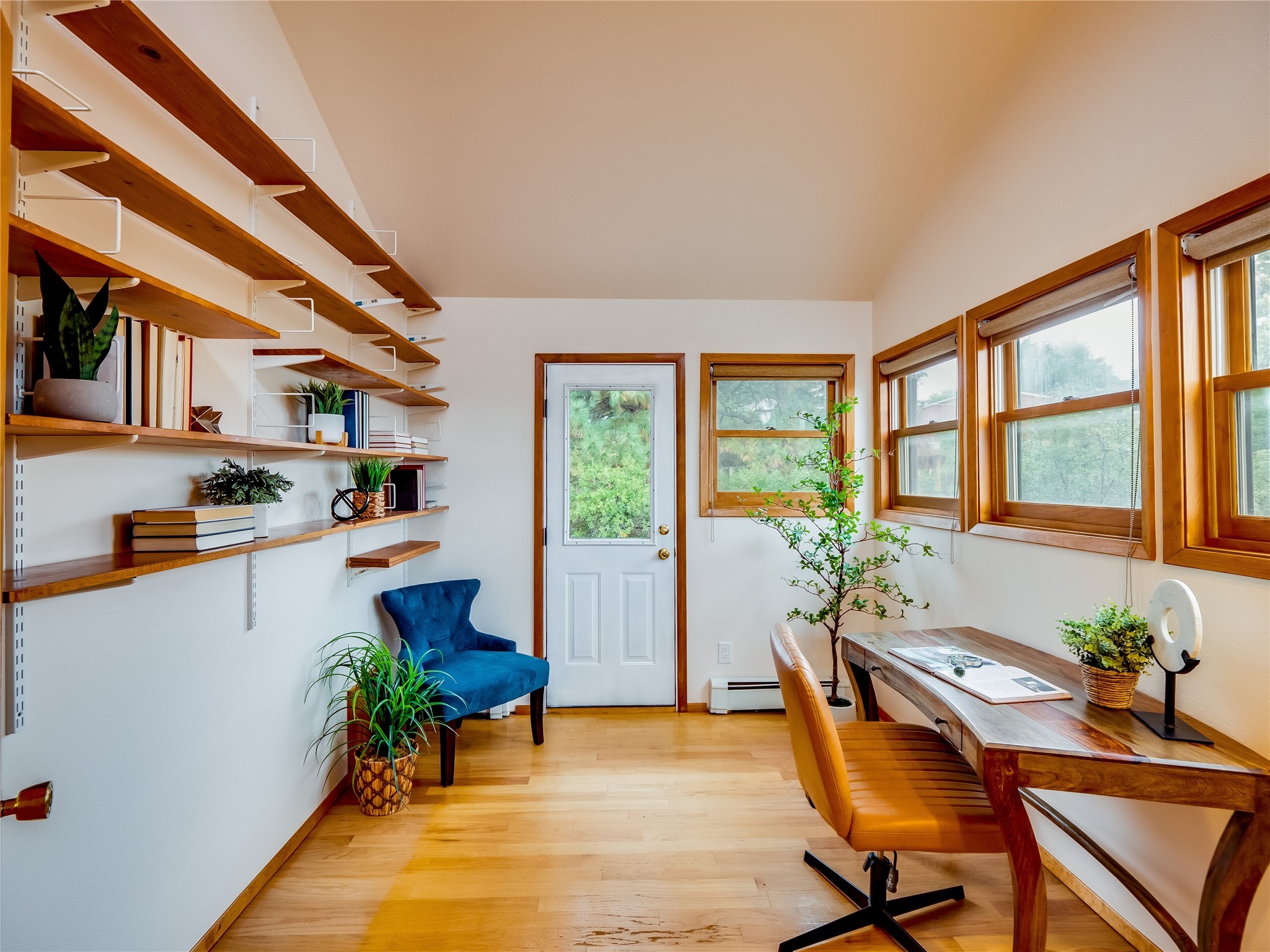 Tucked away in a peaceful North Mesa neighborhood, this one-of-a-kind multi-level home offers a perfect blend of character, functionality, and inviting outdoor living spaces. The large front yard leading to a stone patio--a great spot to work on your green thumb. Enter into the front entrance with tile flooring that leads into the main living area. The bright and open living room features soaring vaulted ceilings and a wall of floor-to-ceiling windows that fill the space with natural light. A cozy wood-burning stove sits perfectly between the living and dining areas, creating a warm and inviting atmosphere. The kitchen is both stylish and practical, featuring a peninsula bar, rich wood cabinetry, stainless steel appliances, and abundant built-in cabinets and pantry storage. Also on this floor is a powder room and access to the two-car garage. Upstairs, the second floor showcases beautiful wood flooring throughout. Two comfortable guest bedrooms share a full bathroom with tile flooring and a tiled shower/tub surround. Also on this level is a spacious guest en-suite with access to the back deck that includes its own bathroom with a walk-in tiled shower with glass doors, a long single sink vanity. A laundry closet is conveniently located inside the suite for added ease. The third floor offers flexible living with an additional guest bedroom that makes a perfect office or studio space and includes direct access to the backyard deck. The spacious primary suite feels like a private retreat, complete with a wood-burning stove, treetop views, and two closets--one being a generous walk-in. The en-suite bathroom features tile throughout, a double sink vanity, and a luxurious walk-in double-headed tiled shower. Entertainers backyard with a multi-tiered composite deck surrounded by mature trees and shrubs for privacy. Enjoy relaxing evenings in the included hot tub or host gatherings under the stars in this serene outdoor setting. Experience this truly unique home for yourself!