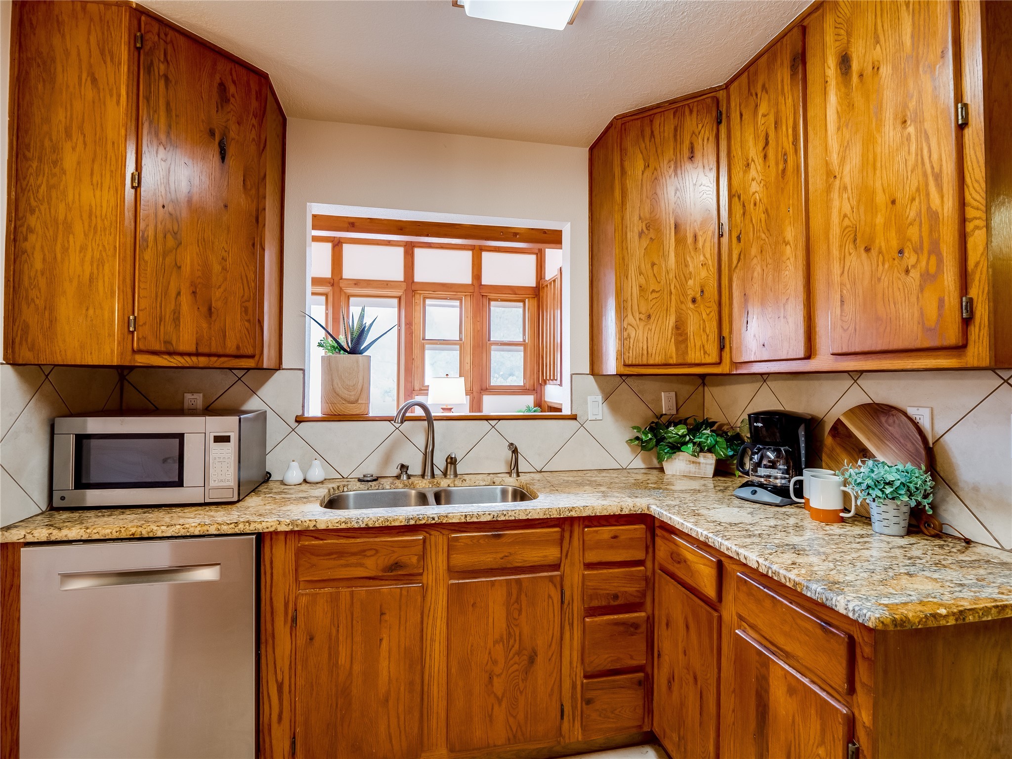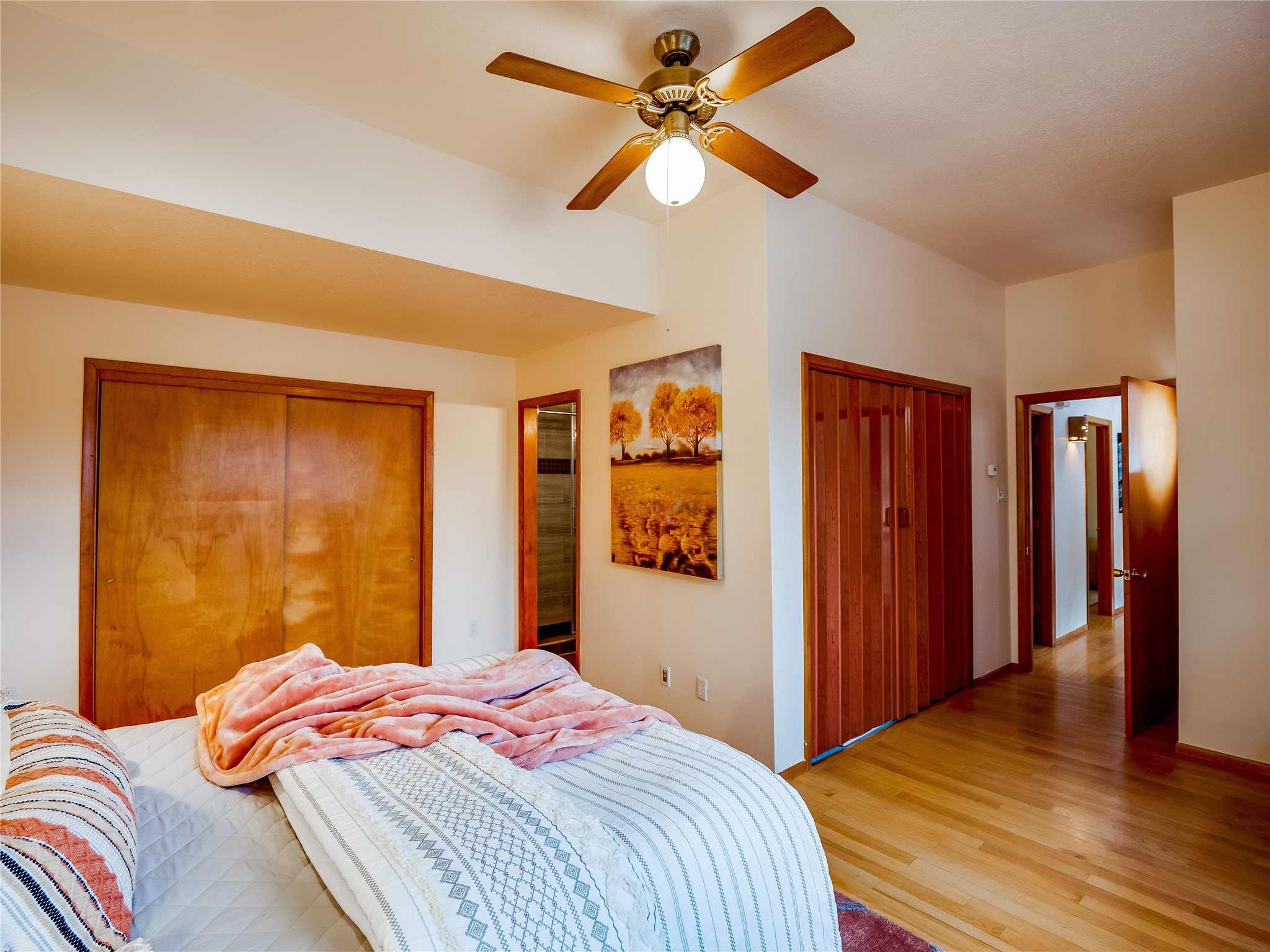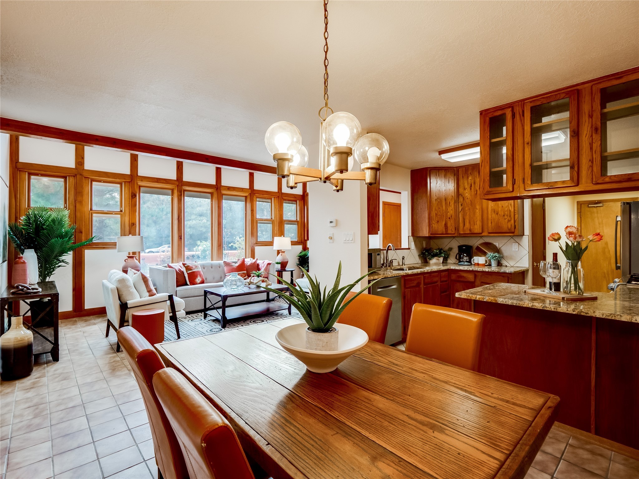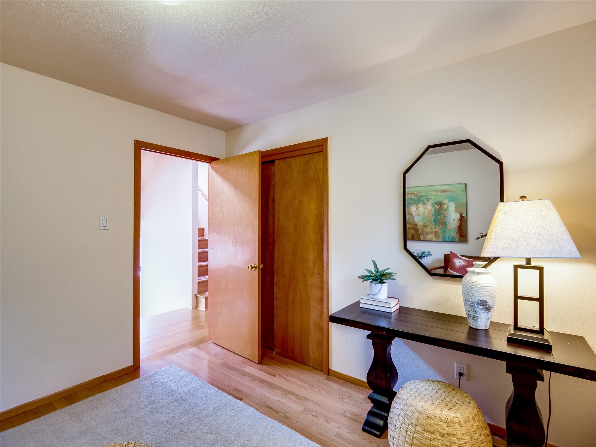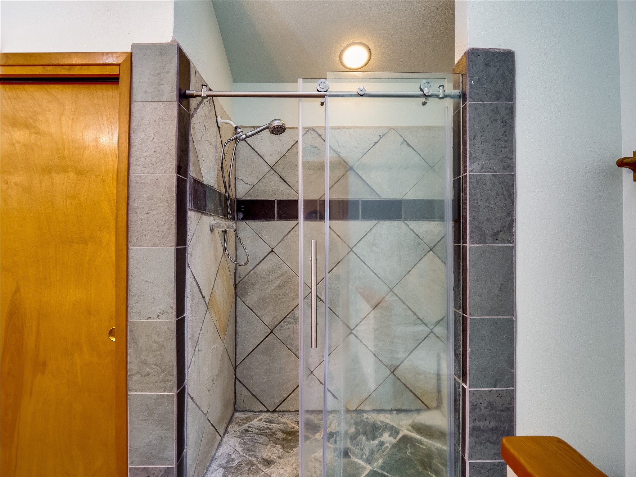 Tucked away in a peaceful North Mesa neighborhood, this one-of-a-kind multi-level home offers a perfect blend of character, functionality, and inviting outdoor living spaces. The large front yard leading to a stone patio--a great spot to work on your green thumb. Enter into the front entrance with tile flooring that leads into the main living area. The bright and open living room features soaring vaulted ceilings and a wall of floor-to-ceiling windows that fill the space with natural light. A cozy wood-burning stove sits perfectly between the living and dining areas, creating a warm and inviting atmosphere. The kitchen is both stylish and practical, featuring a peninsula bar, rich wood cabinetry, stainless steel appliances, and abundant built-in cabinets and pantry storage. Also on this floor is a powder room and access to the two-car garage. Upstairs, the second floor showcases beautiful wood flooring throughout. Two comfortable guest bedrooms share a full bathroom with tile flooring and a tiled shower/tub surround. Also on this level is a spacious guest en-suite with access to the back deck that includes its own bathroom with a walk-in tiled shower with glass doors, a long single sink vanity. A laundry closet is conveniently located inside the suite for added ease. The third floor offers flexible living with an additional guest bedroom that makes a perfect office or studio space and includes direct access to the backyard deck. The spacious primary suite feels like a private retreat, complete with a wood-burning stove, treetop views, and two closets--one being a generous walk-in. The en-suite bathroom features tile throughout, a double sink vanity, and a luxurious walk-in double-headed tiled shower. Entertainers backyard with a multi-tiered composite deck surrounded by mature trees and shrubs for privacy. Enjoy relaxing evenings in the included hot tub or host gatherings under the stars in this serene outdoor setting. Experience this truly unique home for yourself!