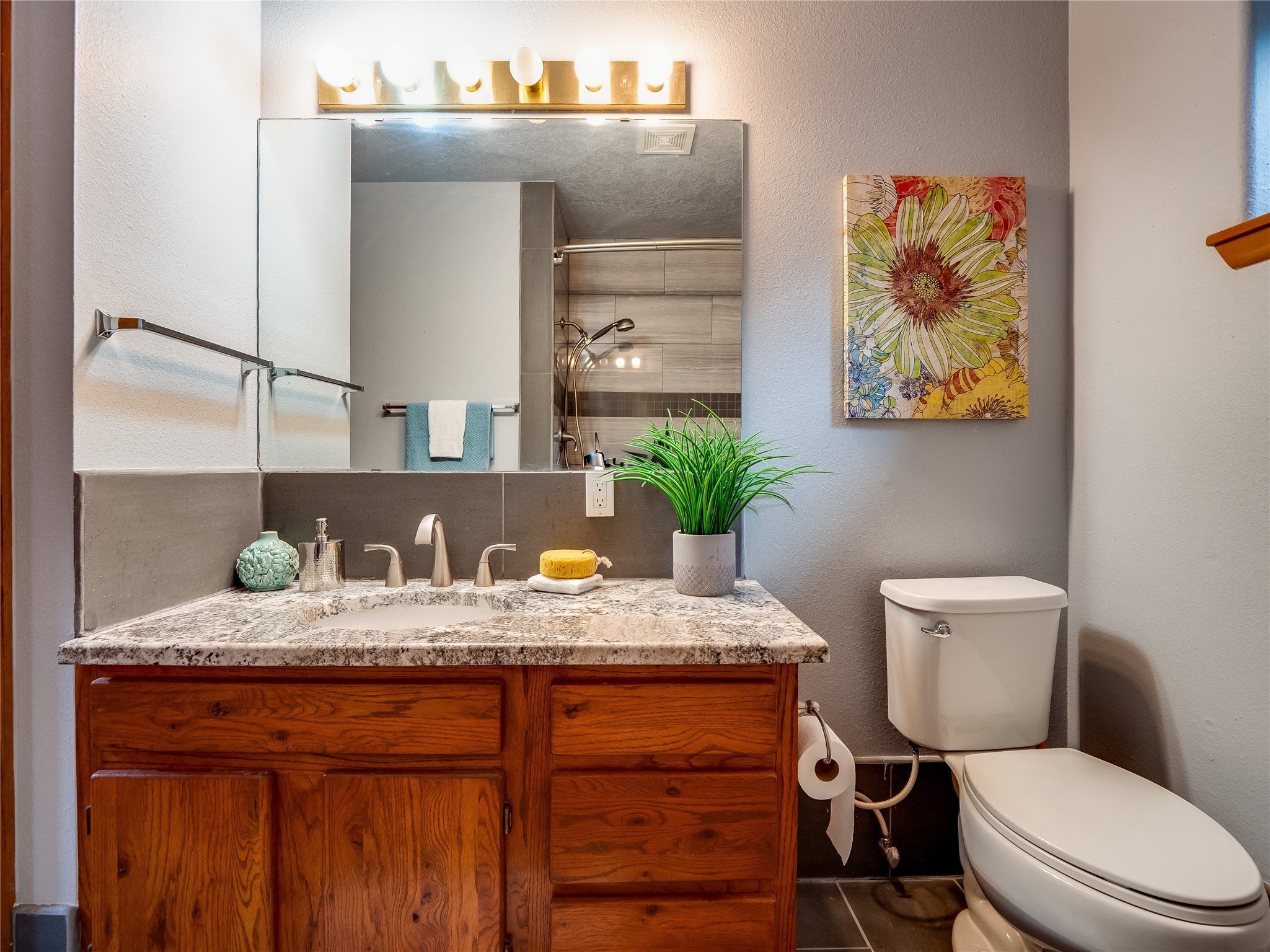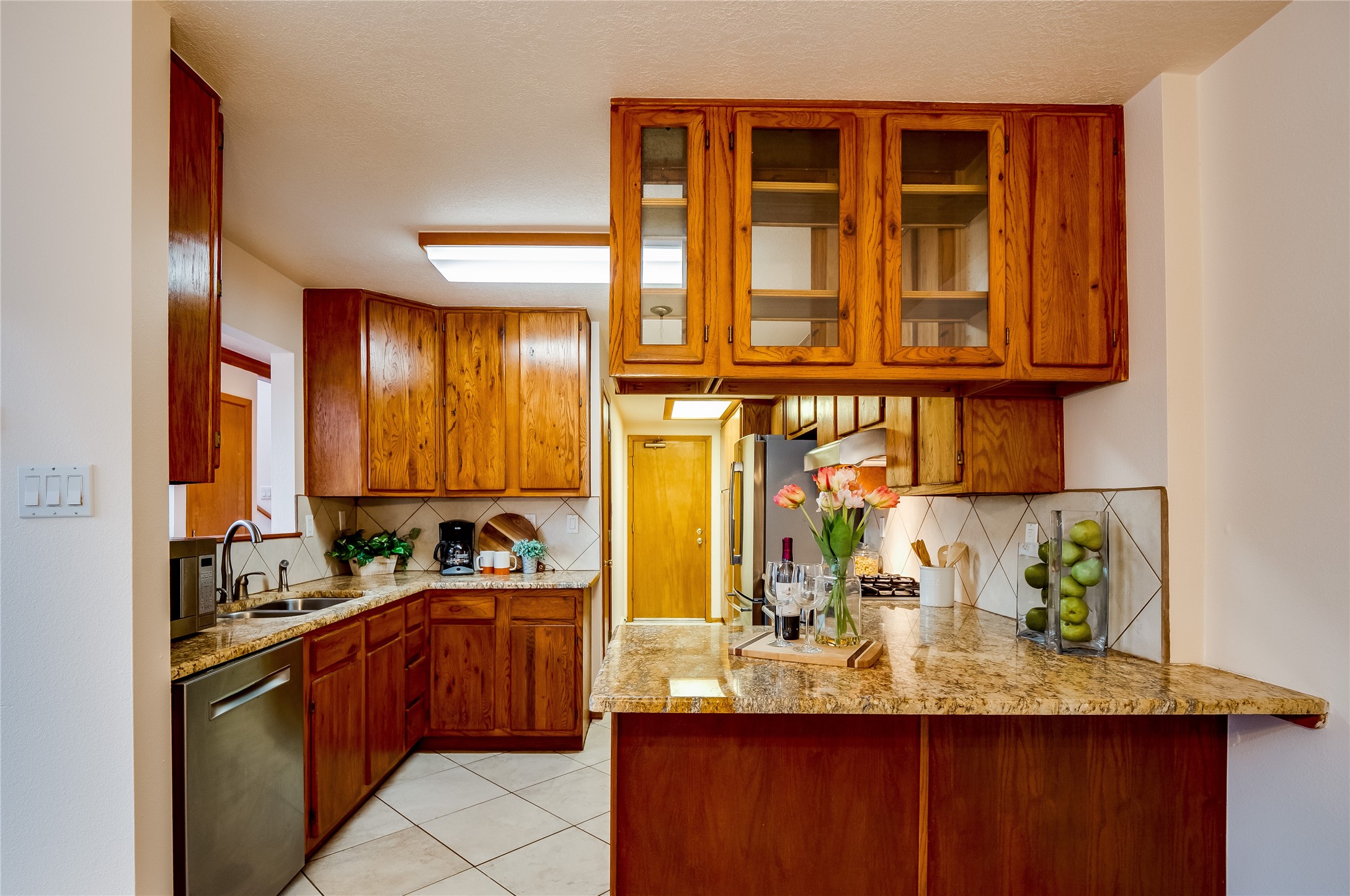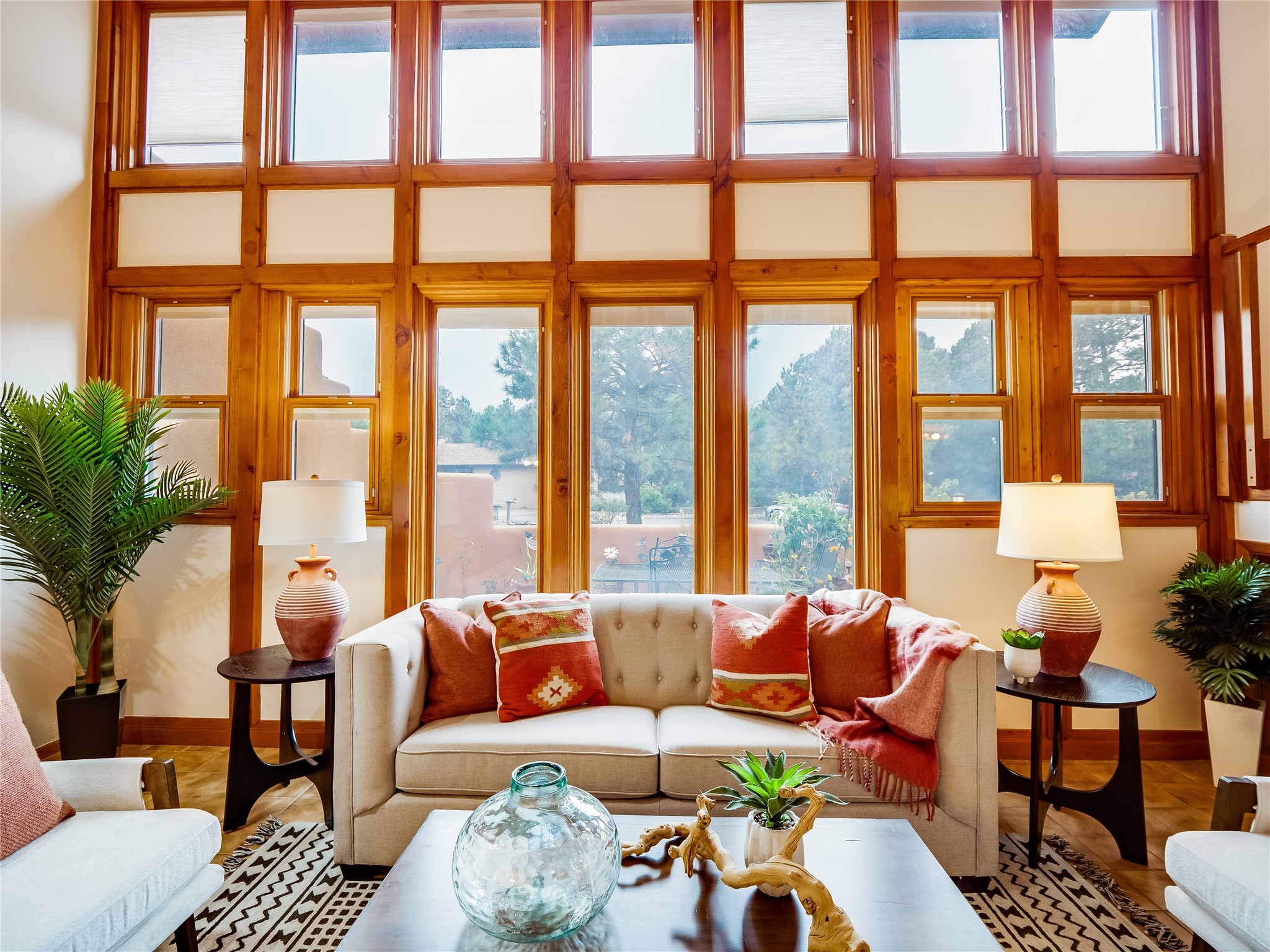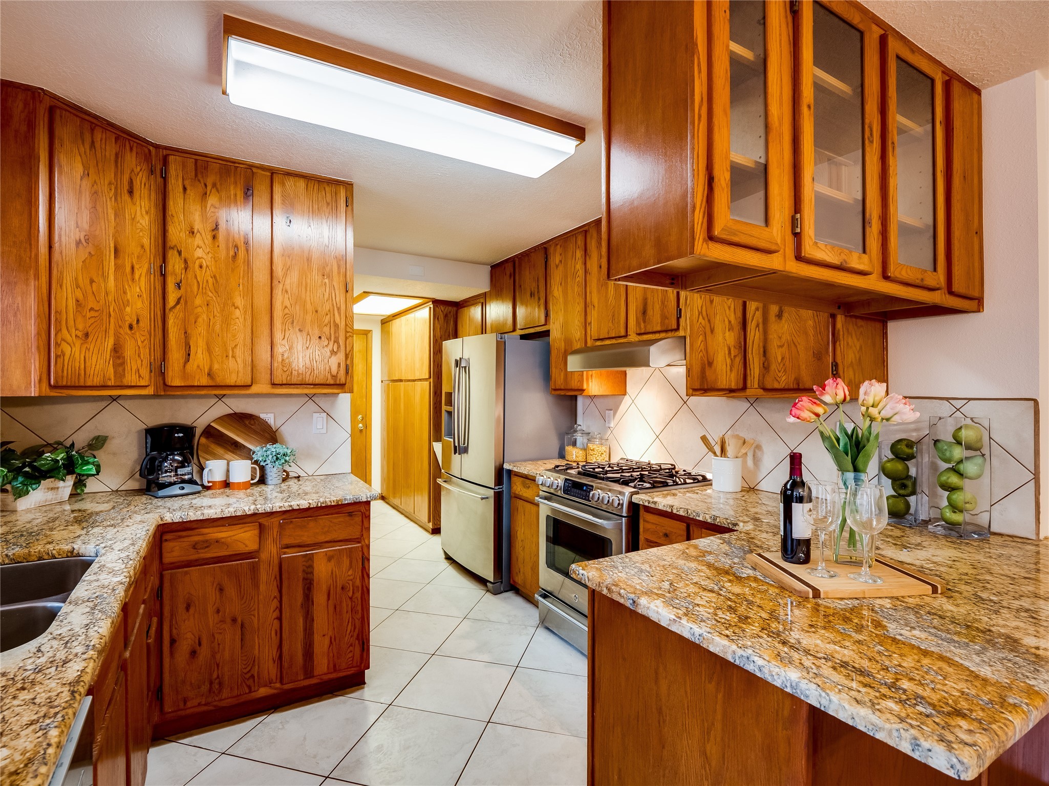 Tucked away in a peaceful North Mesa neighborhood, this one-of-a-kind multi-level home offers a perfect blend of character, functionality, and inviting outdoor living spaces. The large front yard leading to a stone patio--a great spot to work on your green thumb. Enter into the front entrance with tile flooring that leads into the main living area. The bright and open living room features soaring vaulted ceilings and a wall of floor-to-ceiling windows that fill the space with natural light. A cozy wood-burning stove sits perfectly between the living and dining areas, creating a warm and inviting atmosphere. The kitchen is both stylish and practical, featuring a peninsula bar, rich wood cabinetry, stainless steel appliances, and abundant built-in cabinets and pantry storage. Also on this floor is a powder room and access to the two-car garage. Upstairs, the second floor showcases beautiful wood flooring throughout. Two comfortable guest bedrooms share a full bathroom with tile flooring and a tiled shower/tub surround. Also on this level is a spacious guest en-suite with access to the back deck that includes its own bathroom with a walk-in tiled shower with glass doors, a long single sink vanity. A laundry closet is conveniently located inside the suite for added ease. The third floor offers flexible living with an additional guest bedroom that makes a perfect office or studio space and includes direct access to the backyard deck. The spacious primary suite feels like a private retreat, complete with a wood-burning stove, treetop views, and two closets--one being a generous walk-in. The en-suite bathroom features tile throughout, a double sink vanity, and a luxurious walk-in double-headed tiled shower. Entertainers backyard with a multi-tiered composite deck surrounded by mature trees and shrubs for privacy. Enjoy relaxing evenings in the included hot tub or host gatherings under the stars in this serene outdoor setting. Experience this truly unique home for yourself!