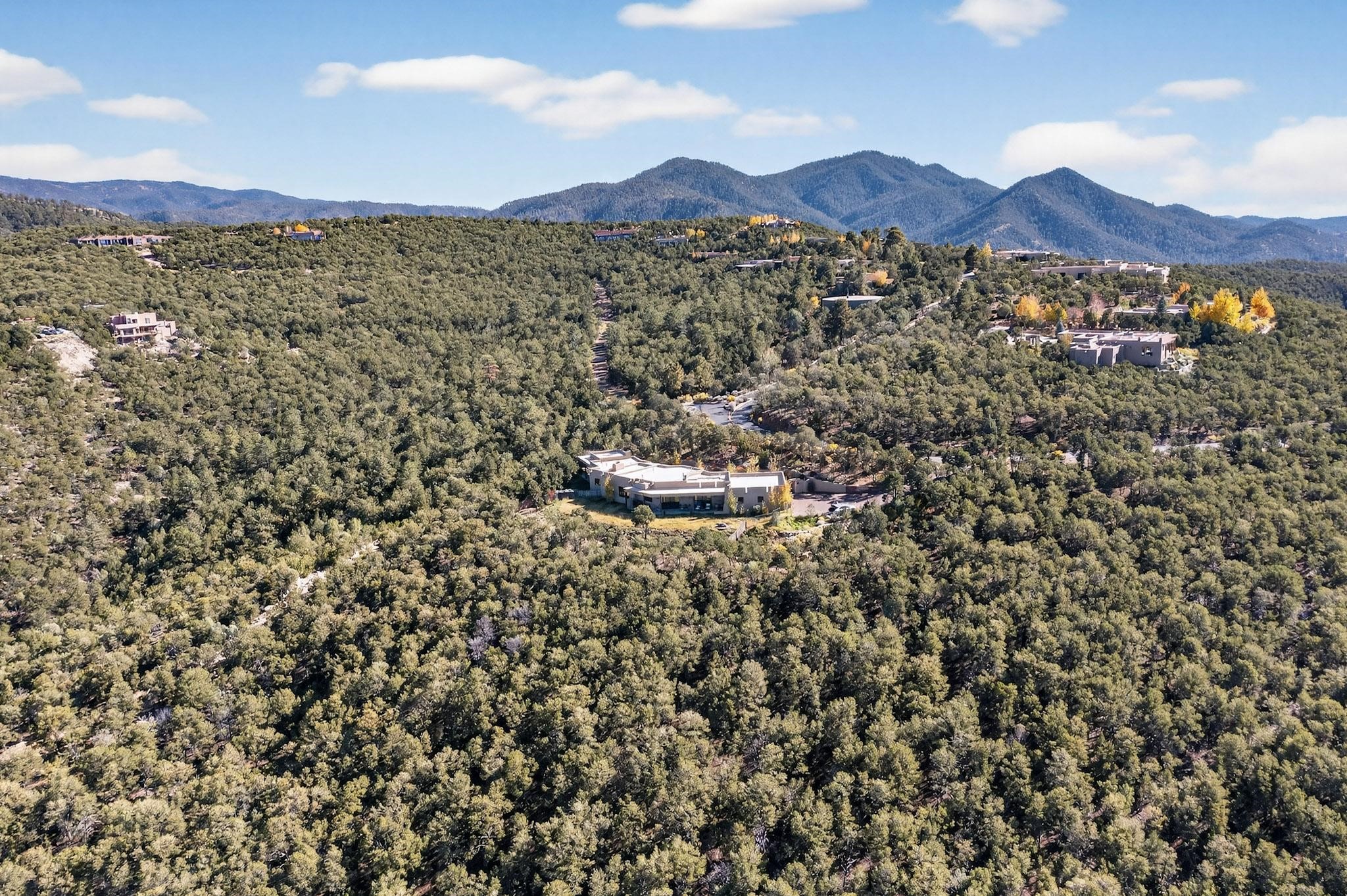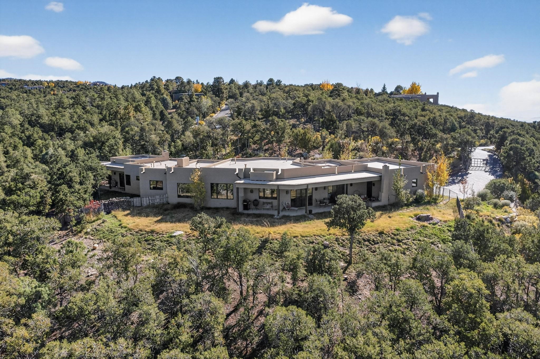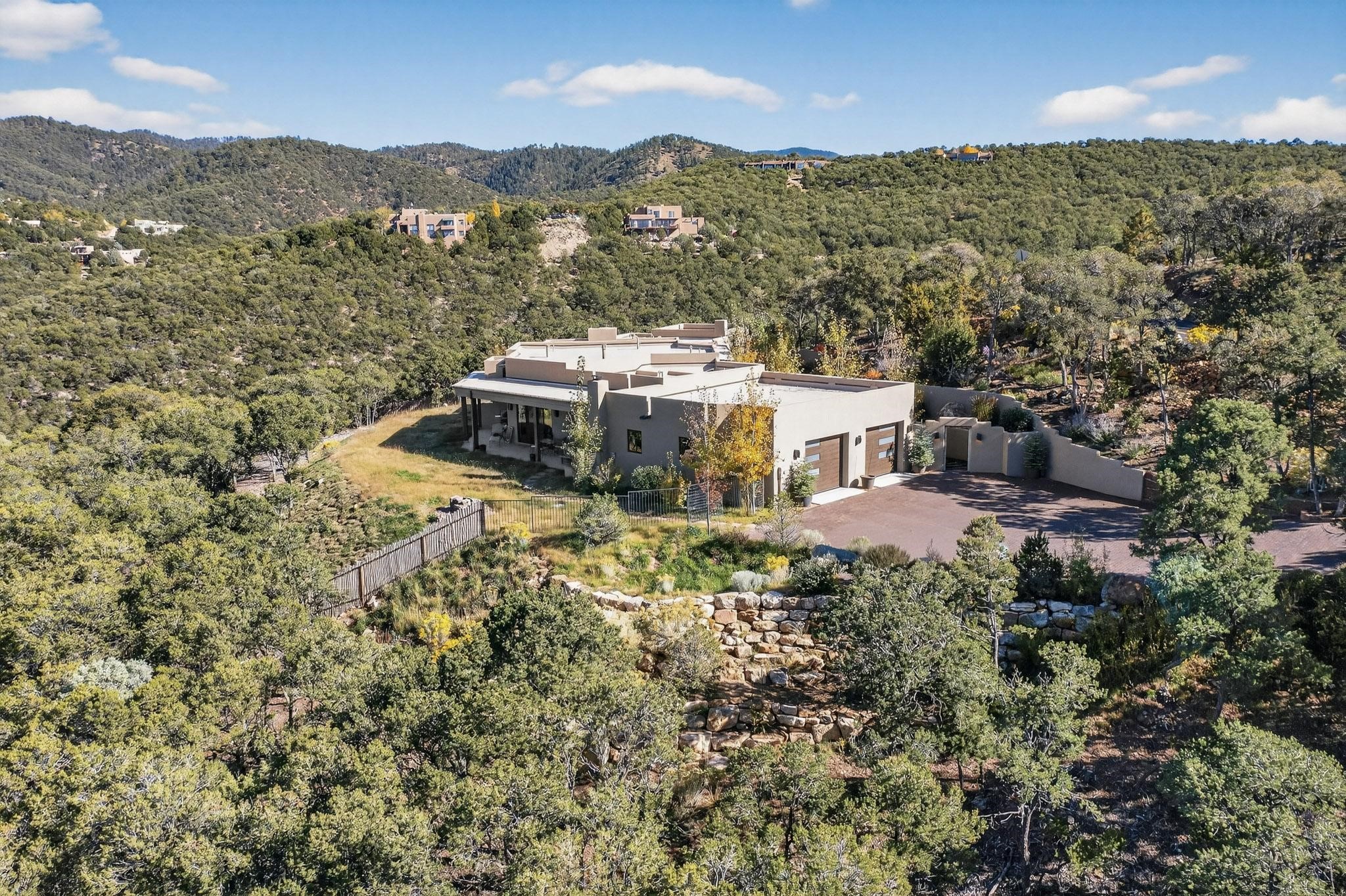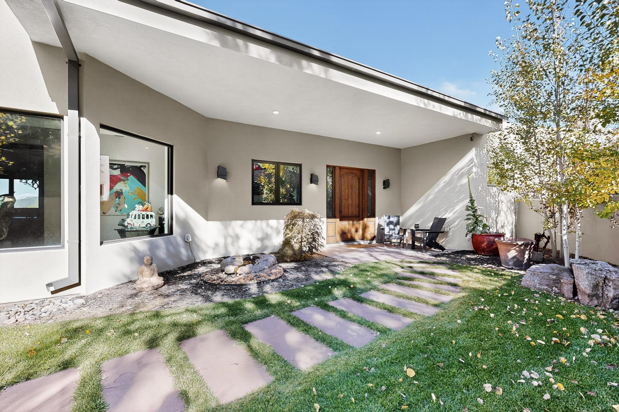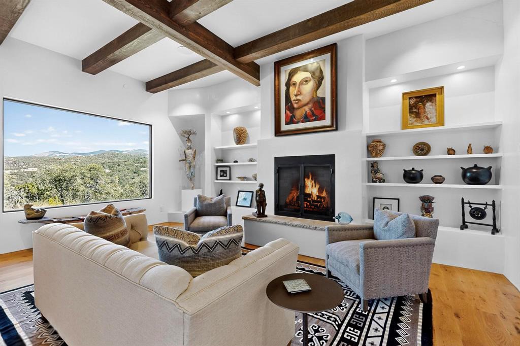 Stunning Santa Fe Contemporary Home in Prestigious High SummitExperience refined Santa Fe living in this recently completed custom home by acclaimed builder John Reeder Construction, located in the highly sought-after gated High Summit community off Hyde Park Road. This residence is approximately 3546 sq ft with 3 bedrooms and blends modern design with timeless southwest elements. The heart of this home is a true chef's kitchen, featuring exquisite custom cabinetry, a spacious center island with built-in service drawers, and seamless access to a climate-controlled wine room that accommodates hundreds of bottles- perfect for entertaining. The open-concept family room boasts a grand fireplace and opens onto a covered portal ideal for al fresco dining while taking in breathtaking sunsets over the Santa Fe skyline. In total, this home includes four fireplaces, creating warmth and ambiance throughout. A stunning gallery-style entry provides the perfect backdrop for art and sets the tone for the rest of the home. Enjoy sweeping views of the Sangre de Cristo and Jemez mountains, as well as sparkling city lights. The professionally landscaped grounds feature two tranquil fountains and is situated on two consolidated lots, ensuring exceptional privacy-- especially for the serene primary suite. Additional features include paved roads to the home which opens onto a gated driveway lined with stone pavers. The garage is oversized (approximately 1000 sq ft). The development has underground utilities and is situated in a prime location approximately 5 minutes from the historic Santa Fe Plaza, renowned galleries and top-tier dining.