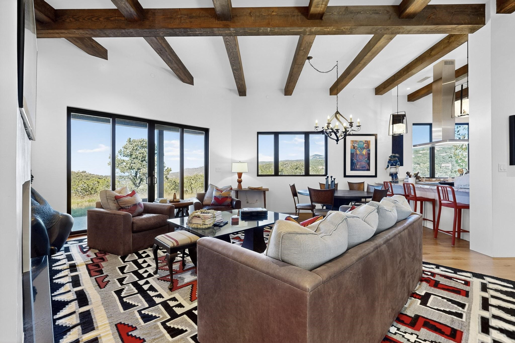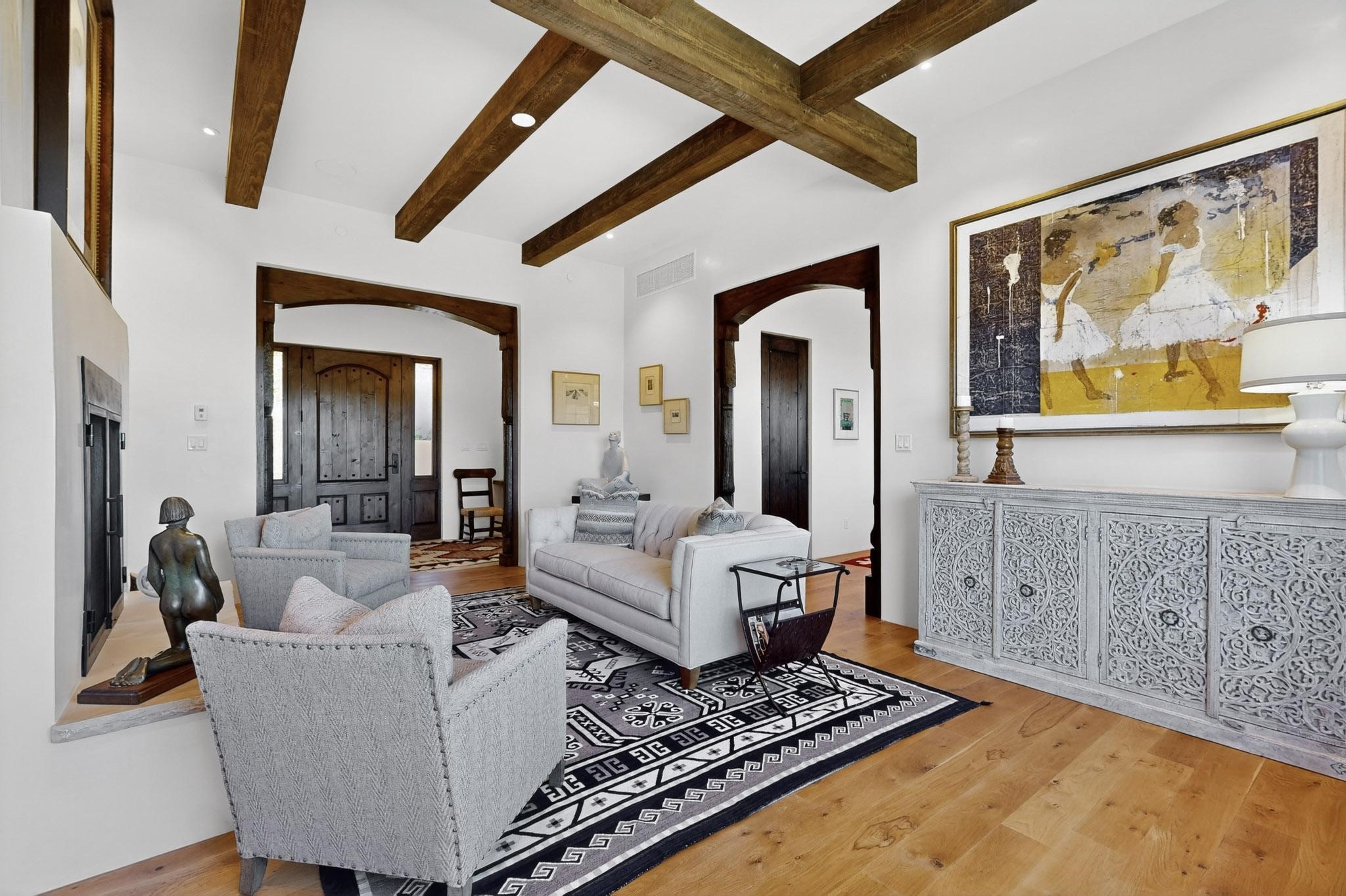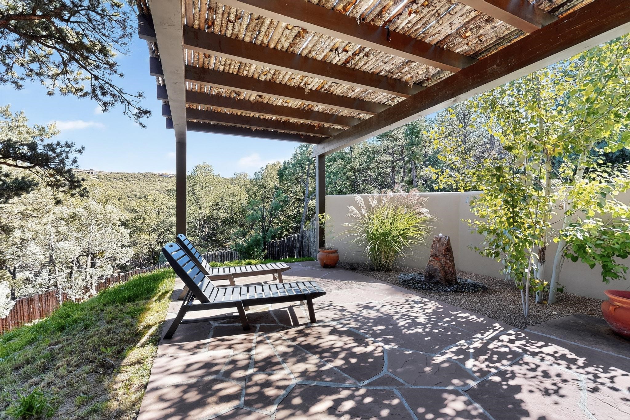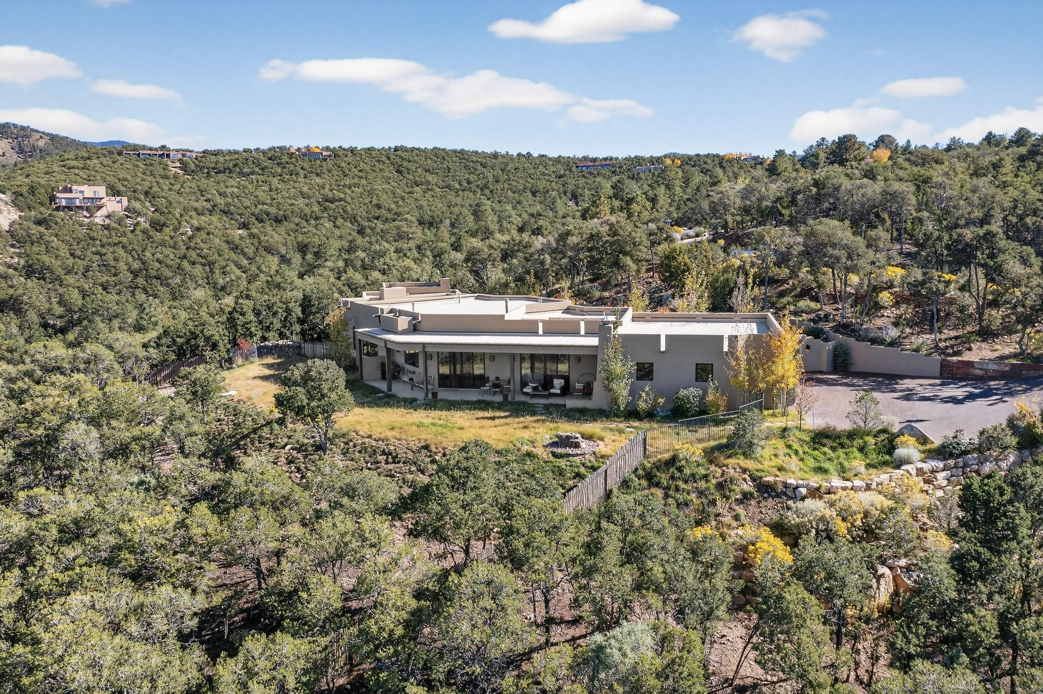 Stunning Santa Fe Contemporary Home in Prestigious High SummitExperience refined Santa Fe living in this recently completed custom home by acclaimed builder John Reeder Construction, located in the highly sought-after gated High Summit community off Hyde Park Road. This residence is approximately 3546 sq ft with 3 bedrooms and blends modern design with timeless southwest elements. The heart of this home is a true chef's kitchen, featuring exquisite custom cabinetry, a spacious center island with built-in service drawers, and seamless access to a climate-controlled wine room that accommodates hundreds of bottles- perfect for entertaining. The open-concept family room boasts a grand fireplace and opens onto a covered portal ideal for al fresco dining while taking in breathtaking sunsets over the Santa Fe skyline. In total, this home includes four fireplaces, creating warmth and ambiance throughout. A stunning gallery-style entry provides the perfect backdrop for art and sets the tone for the rest of the home. Enjoy sweeping views of the Sangre de Cristo and Jemez mountains, as well as sparkling city lights. The professionally landscaped grounds feature two tranquil fountains and is situated on two consolidated lots, ensuring exceptional privacy-- especially for the serene primary suite. Additional features include paved roads to the home which opens onto a gated driveway lined with stone pavers. The garage is oversized (approximately 1000 sq ft). The development has underground utilities and is situated in a prime location approximately 5 minutes from the historic Santa Fe Plaza, renowned galleries and top-tier dining.