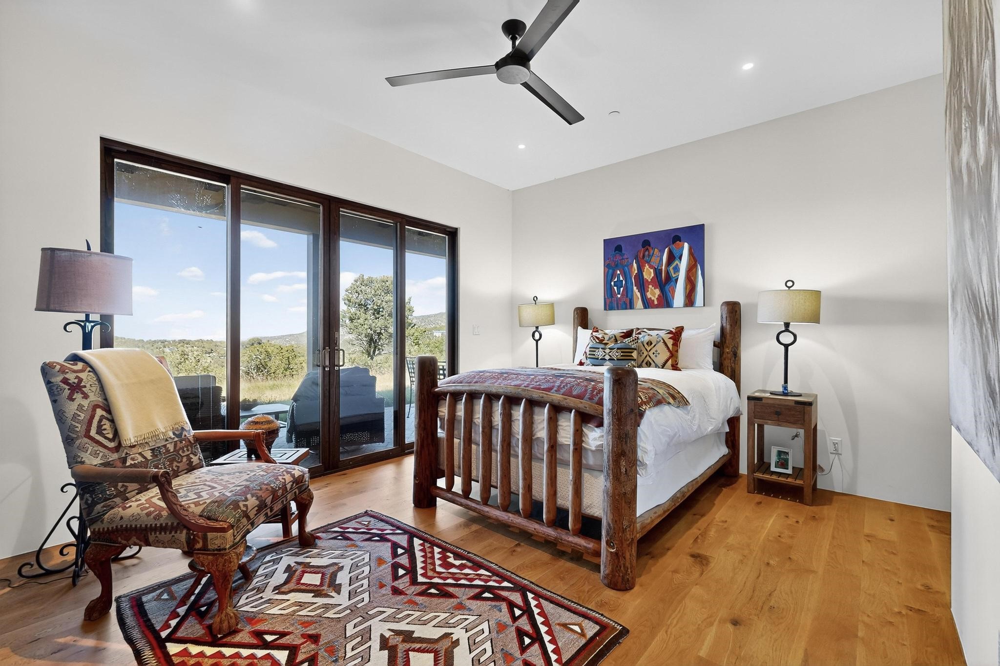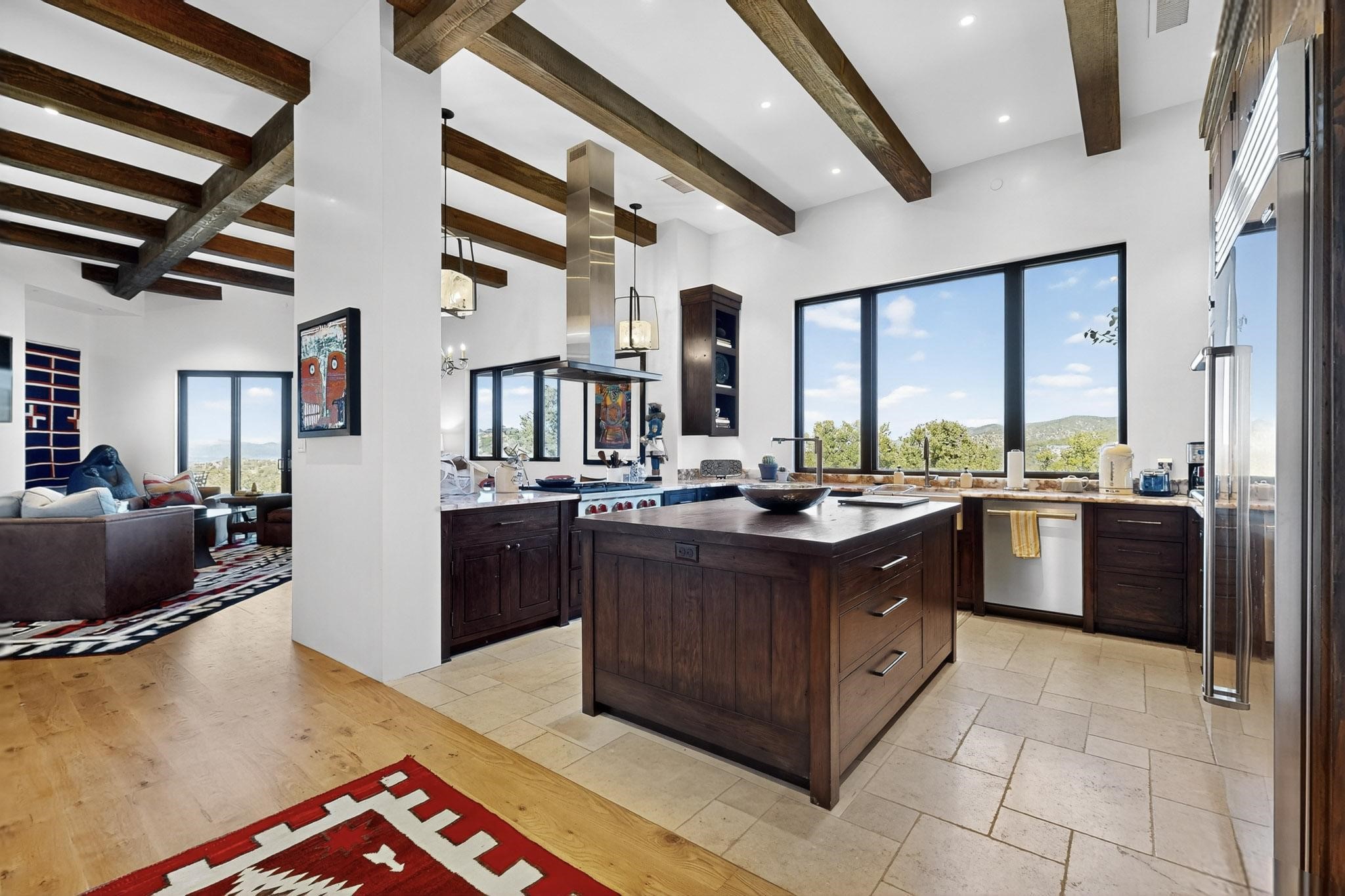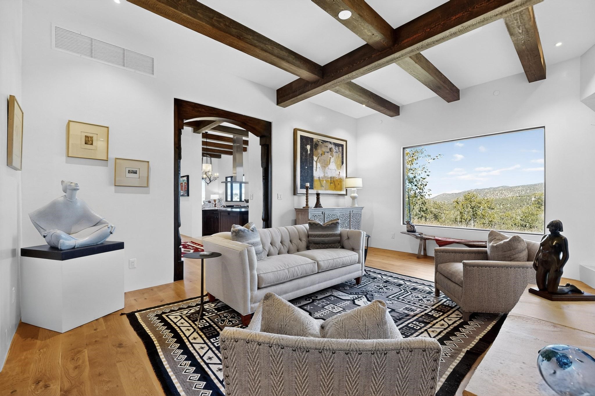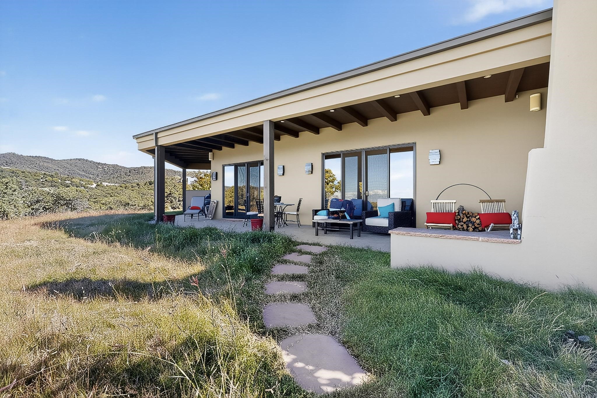 Stunning Santa Fe Contemporary Home in Prestigious High SummitExperience refined Santa Fe living in this recently completed custom home by acclaimed builder John Reeder Construction, located in the highly sought-after gated High Summit community off Hyde Park Road. This residence is approximately 3546 sq ft with 3 bedrooms and blends modern design with timeless southwest elements. The heart of this home is a true chef's kitchen, featuring exquisite custom cabinetry, a spacious center island with built-in service drawers, and seamless access to a climate-controlled wine room that accommodates hundreds of bottles- perfect for entertaining. The open-concept family room boasts a grand fireplace and opens onto a covered portal ideal for al fresco dining while taking in breathtaking sunsets over the Santa Fe skyline. In total, this home includes four fireplaces, creating warmth and ambiance throughout. A stunning gallery-style entry provides the perfect backdrop for art and sets the tone for the rest of the home. Enjoy sweeping views of the Sangre de Cristo and Jemez mountains, as well as sparkling city lights. The professionally landscaped grounds feature two tranquil fountains and is situated on two consolidated lots, ensuring exceptional privacy-- especially for the serene primary suite. Additional features include paved roads to the home which opens onto a gated driveway lined with stone pavers. The garage is oversized (approximately 1000 sq ft). The development has underground utilities and is situated in a prime location approximately 5 minutes from the historic Santa Fe Plaza, renowned galleries and top-tier dining.
