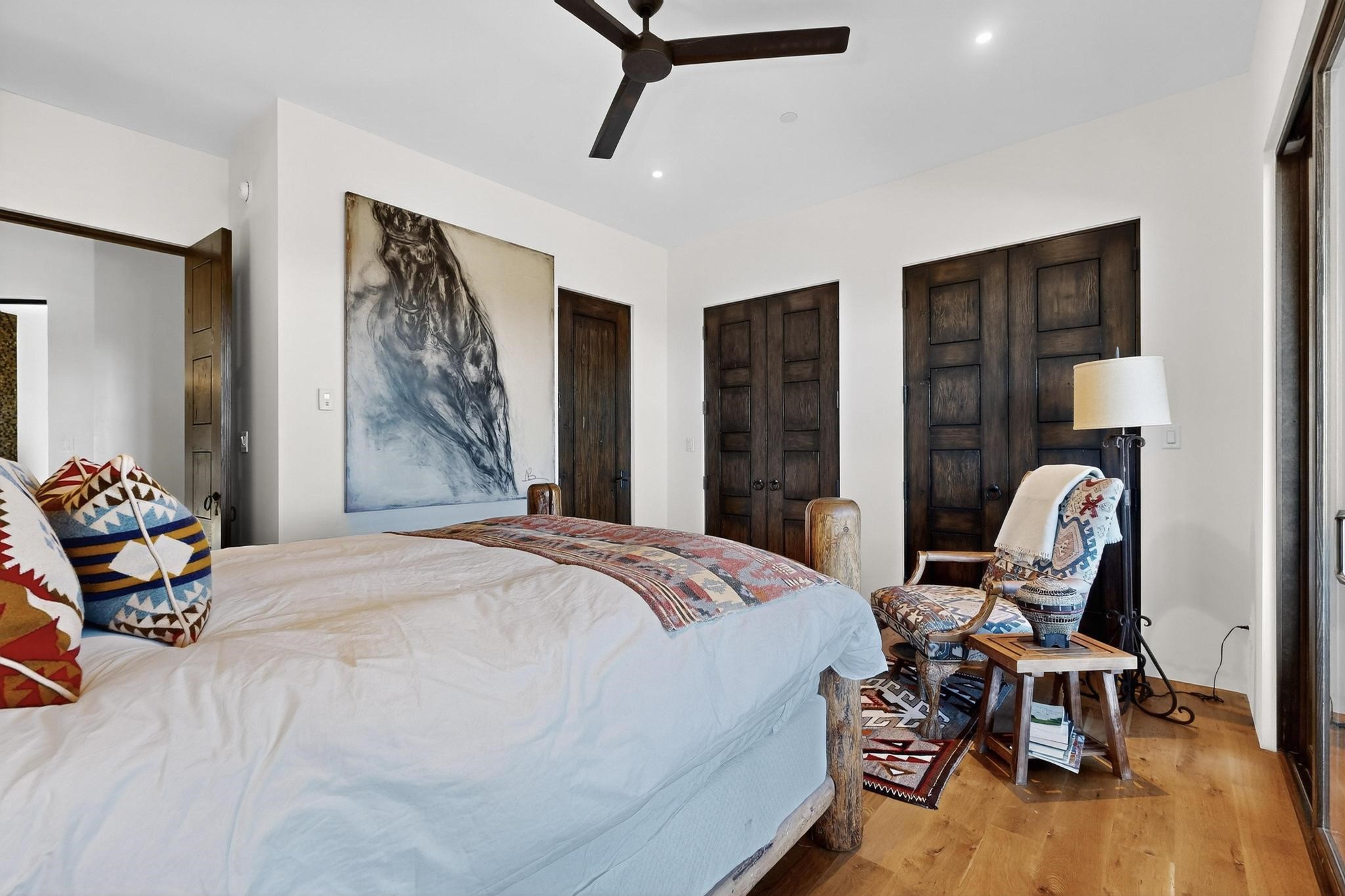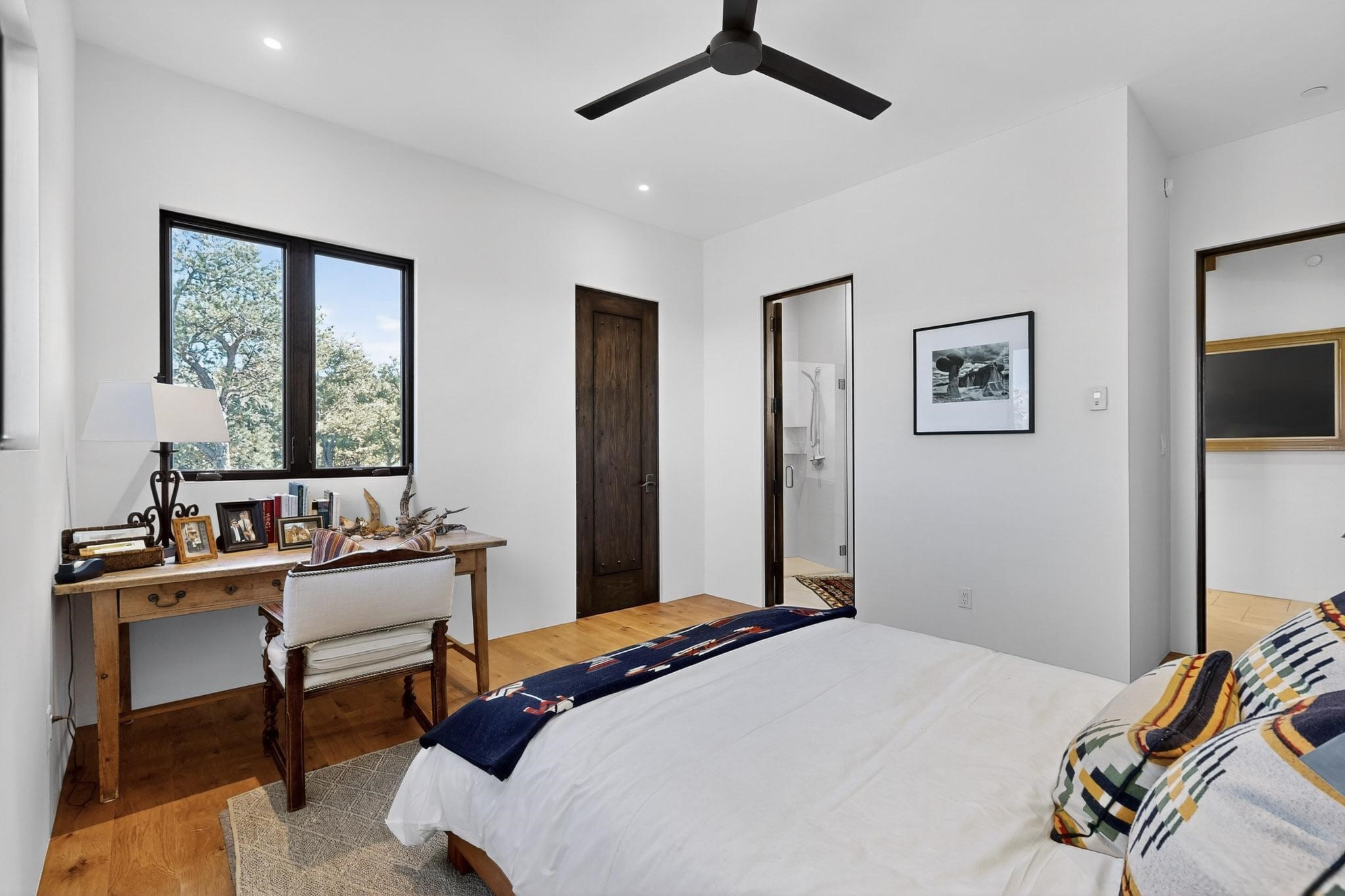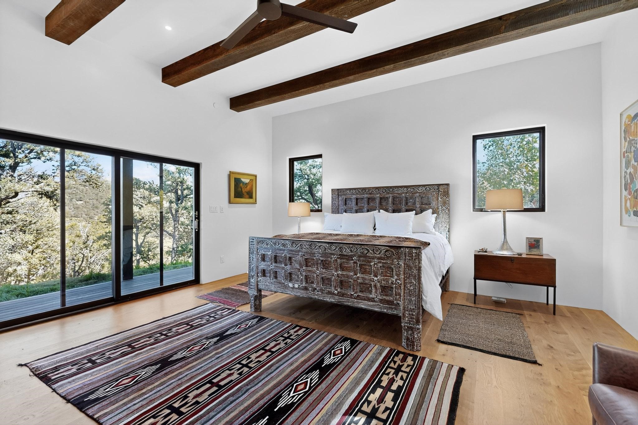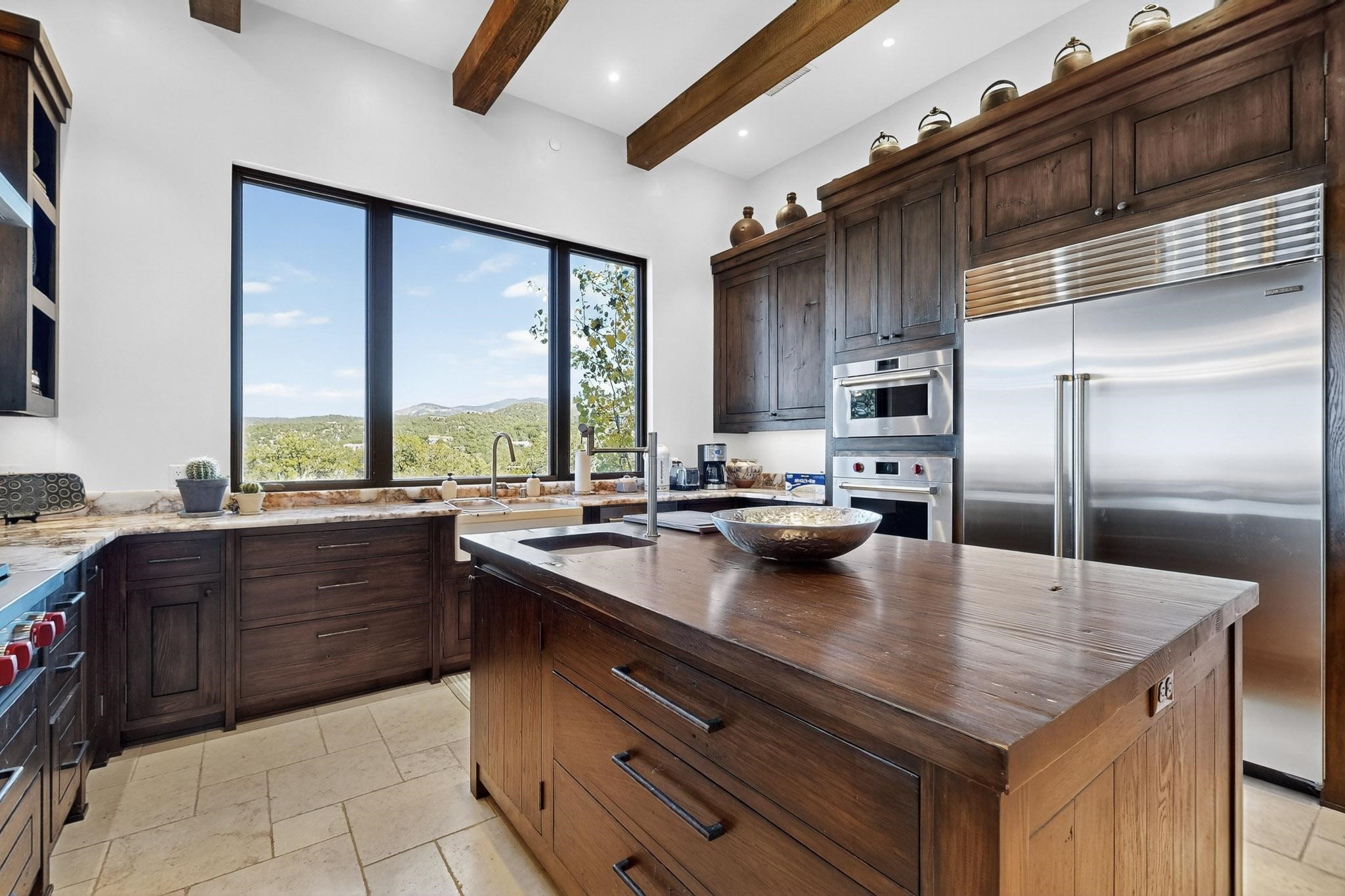 Stunning Santa Fe Contemporary Home in Prestigious High SummitExperience refined Santa Fe living in this recently completed custom home by acclaimed builder John Reeder Construction, located in the highly sought-after gated High Summit community off Hyde Park Road. This residence is approximately 3546 sq ft with 3 bedrooms and blends modern design with timeless southwest elements. The heart of this home is a true chef's kitchen, featuring exquisite custom cabinetry, a spacious center island with built-in service drawers, and seamless access to a climate-controlled wine room that accommodates hundreds of bottles- perfect for entertaining. The open-concept family room boasts a grand fireplace and opens onto a covered portal ideal for al fresco dining while taking in breathtaking sunsets over the Santa Fe skyline. In total, this home includes four fireplaces, creating warmth and ambiance throughout. A stunning gallery-style entry provides the perfect backdrop for art and sets the tone for the rest of the home. Enjoy sweeping views of the Sangre de Cristo and Jemez mountains, as well as sparkling city lights. The professionally landscaped grounds feature two tranquil fountains and is situated on two consolidated lots, ensuring exceptional privacy-- especially for the serene primary suite. Additional features include paved roads to the home which opens onto a gated driveway lined with stone pavers. The garage is oversized (approximately 1000 sq ft). The development has underground utilities and is situated in a prime location approximately 5 minutes from the historic Santa Fe Plaza, renowned galleries and top-tier dining.