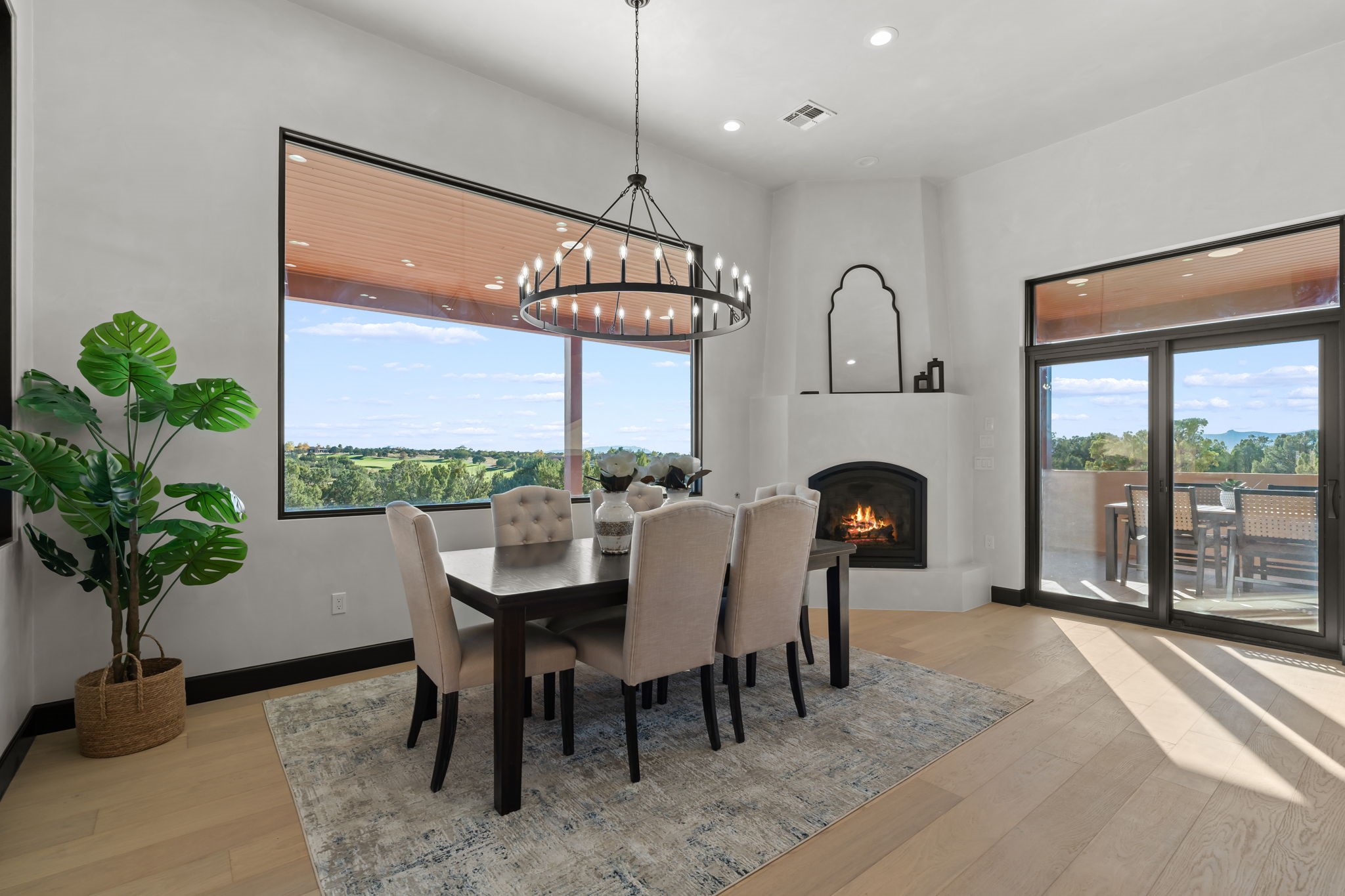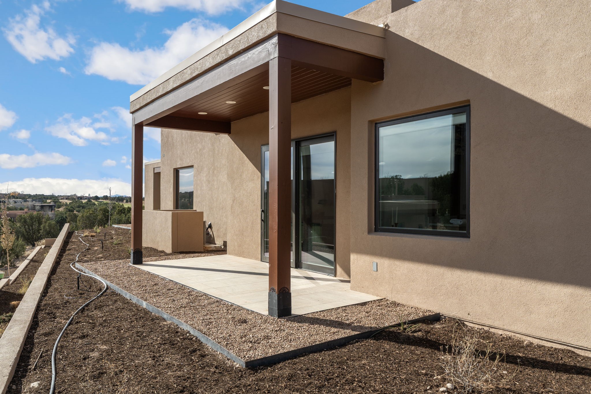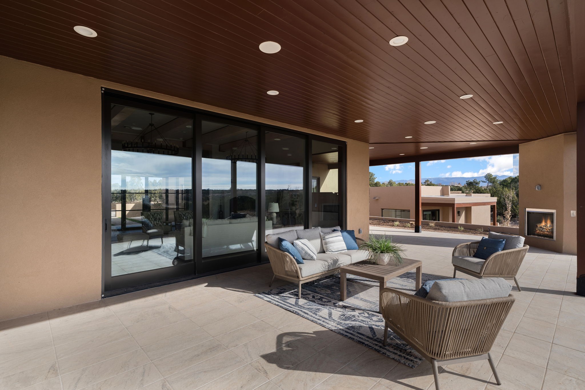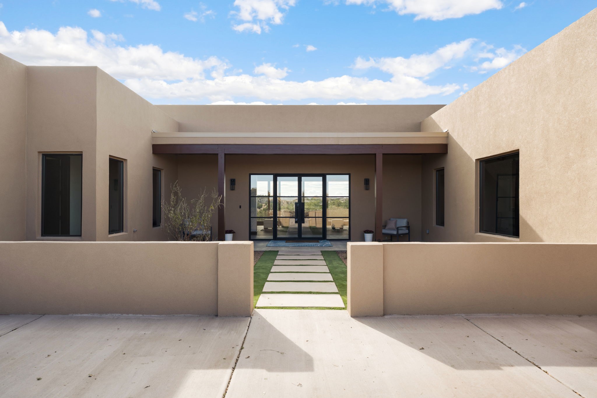 Nestled in the prestigious Las Campanas community of Santa Fe, this newly built custom estate blends modern architecture with timeless New Mexican charm. Situated on a 1.64-acre homesite overlooking two picturesque golf holes, the home captures breathtaking views of both the fairways and surrounding mountains.Built by Candelaria Homes, one of New Mexico's most respected luxury builders, this residence reflects exceptional craftsmanship and attention to detail in every corner--from its open floor plan to its refined finishes.Designed for comfort and sophistication, the single-story layout features heated floors throughout the main living and family areas, creating warmth and luxury in every season. A beautifully designed detached one-bedroom Casita offers the perfect retreat for guests, extended family, or a private studio.The gourmet kitchen impresses with bold dark finishes, high-end Sub-Zero appliances, a spacious center island, and a large butler's pantry, seamlessly combining style and function.A versatile bonus living area provides flexibility as a children's playroom, home library, or secondary living space. Expansive picture windows fill the home with natural light, framing Santa Fe's stunning landscape and creating a seamless indoor-outdoor connection.With its open-concept great room, spacious patios, and sweeping golf course and mountain views, this Las Campanas masterpiece defines elevated desert living. Golf course views are of holes 14 and 15.