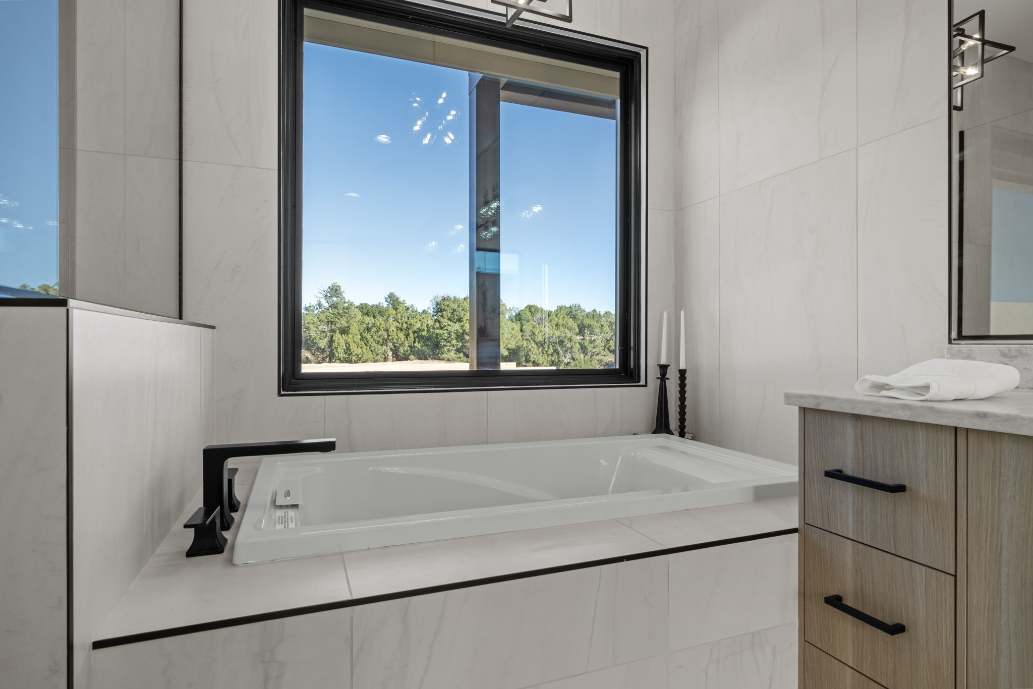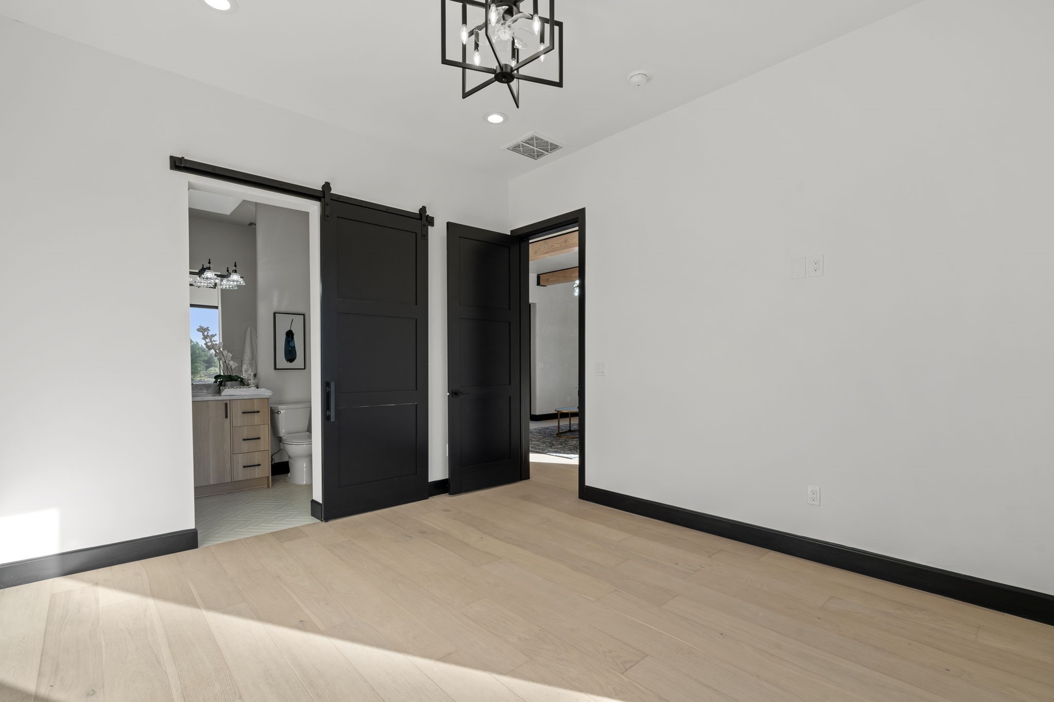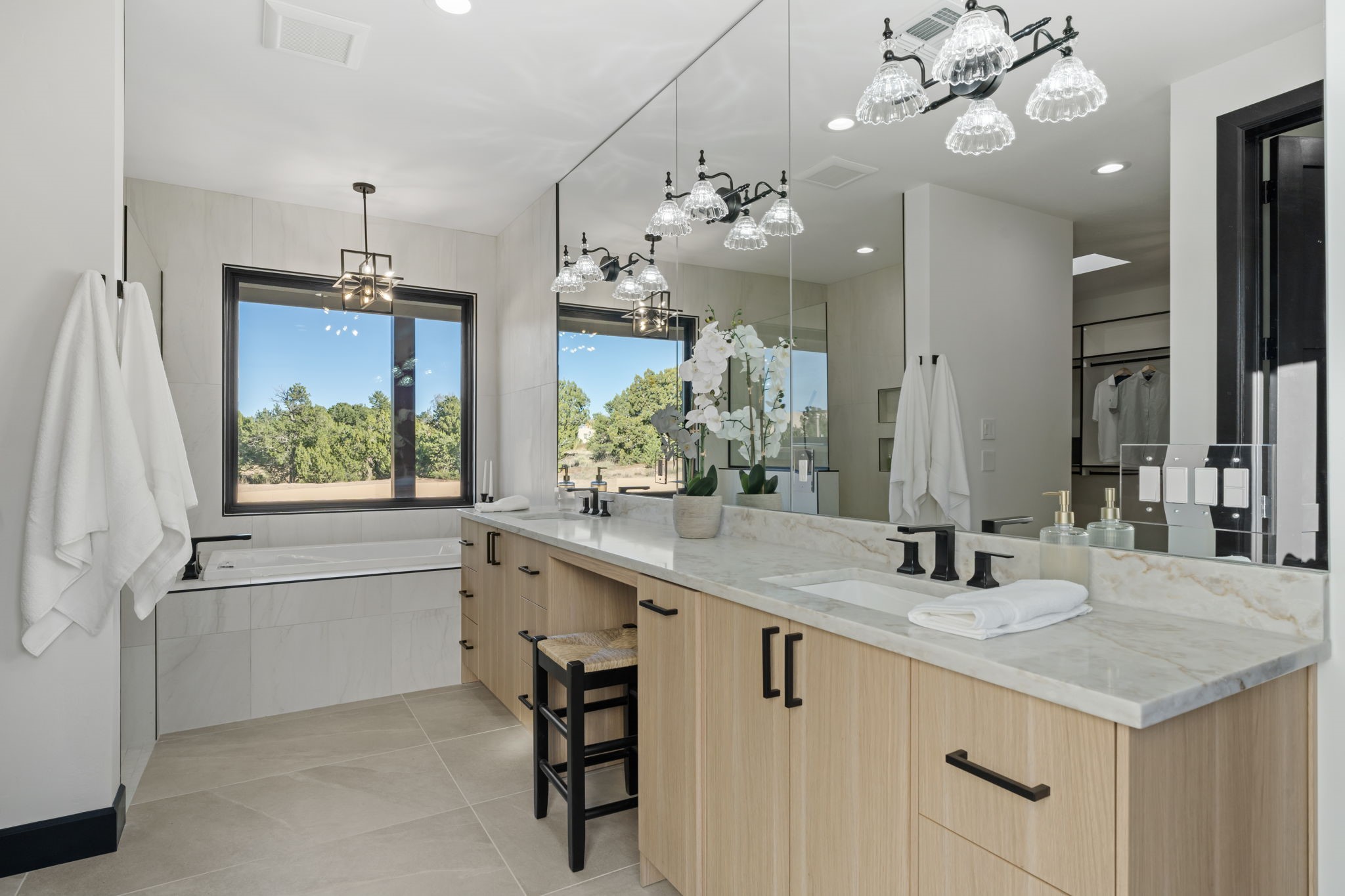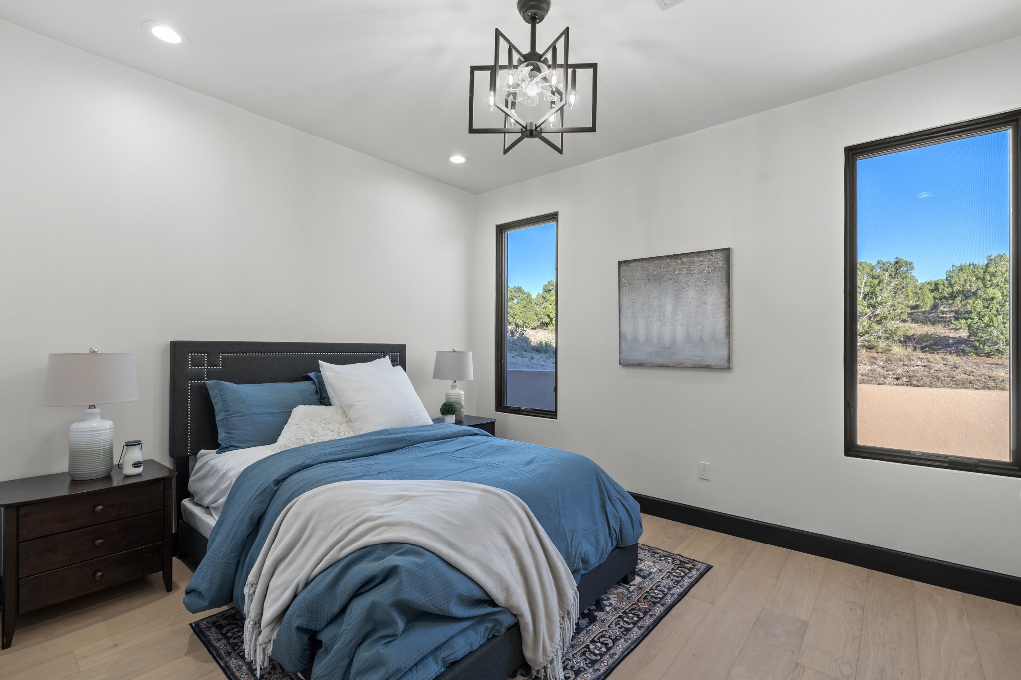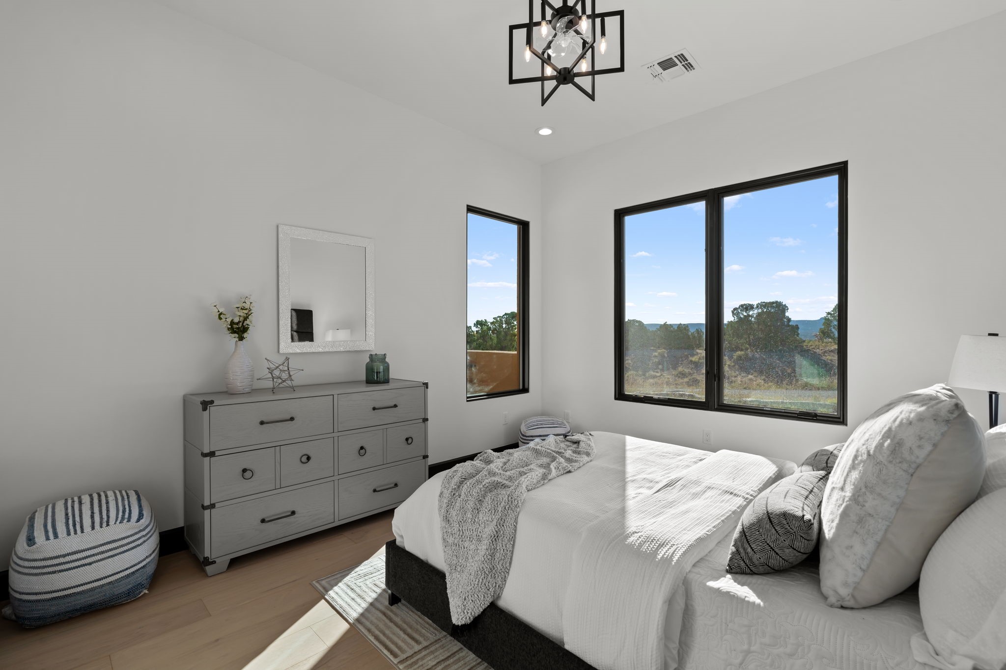 Nestled in the prestigious Las Campanas community of Santa Fe, this newly built custom estate blends modern architecture with timeless New Mexican charm. Situated on a 1.64-acre homesite overlooking two picturesque golf holes, the home captures breathtaking views of both the fairways and surrounding mountains.Built by Candelaria Homes, one of New Mexico's most respected luxury builders, this residence reflects exceptional craftsmanship and attention to detail in every corner--from its open floor plan to its refined finishes.Designed for comfort and sophistication, the single-story layout features heated floors throughout the main living and family areas, creating warmth and luxury in every season. A beautifully designed detached one-bedroom Casita offers the perfect retreat for guests, extended family, or a private studio.The gourmet kitchen impresses with bold dark finishes, high-end Sub-Zero appliances, a spacious center island, and a large butler's pantry, seamlessly combining style and function.A versatile bonus living area provides flexibility as a children's playroom, home library, or secondary living space. Expansive picture windows fill the home with natural light, framing Santa Fe's stunning landscape and creating a seamless indoor-outdoor connection.With its open-concept great room, spacious patios, and sweeping golf course and mountain views, this Las Campanas masterpiece defines elevated desert living. Golf course views are of holes 14 and 15.