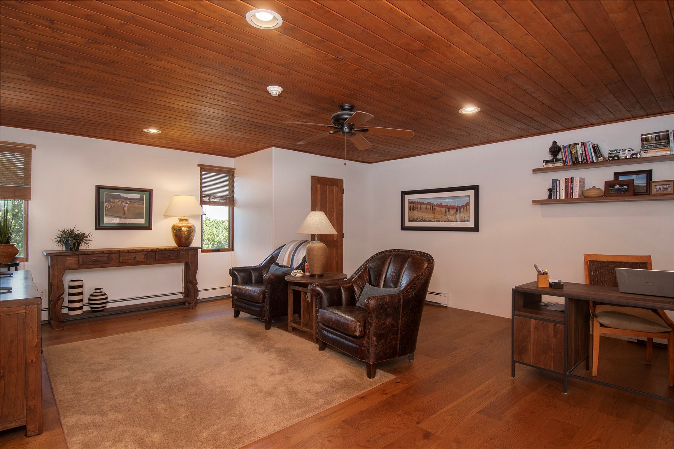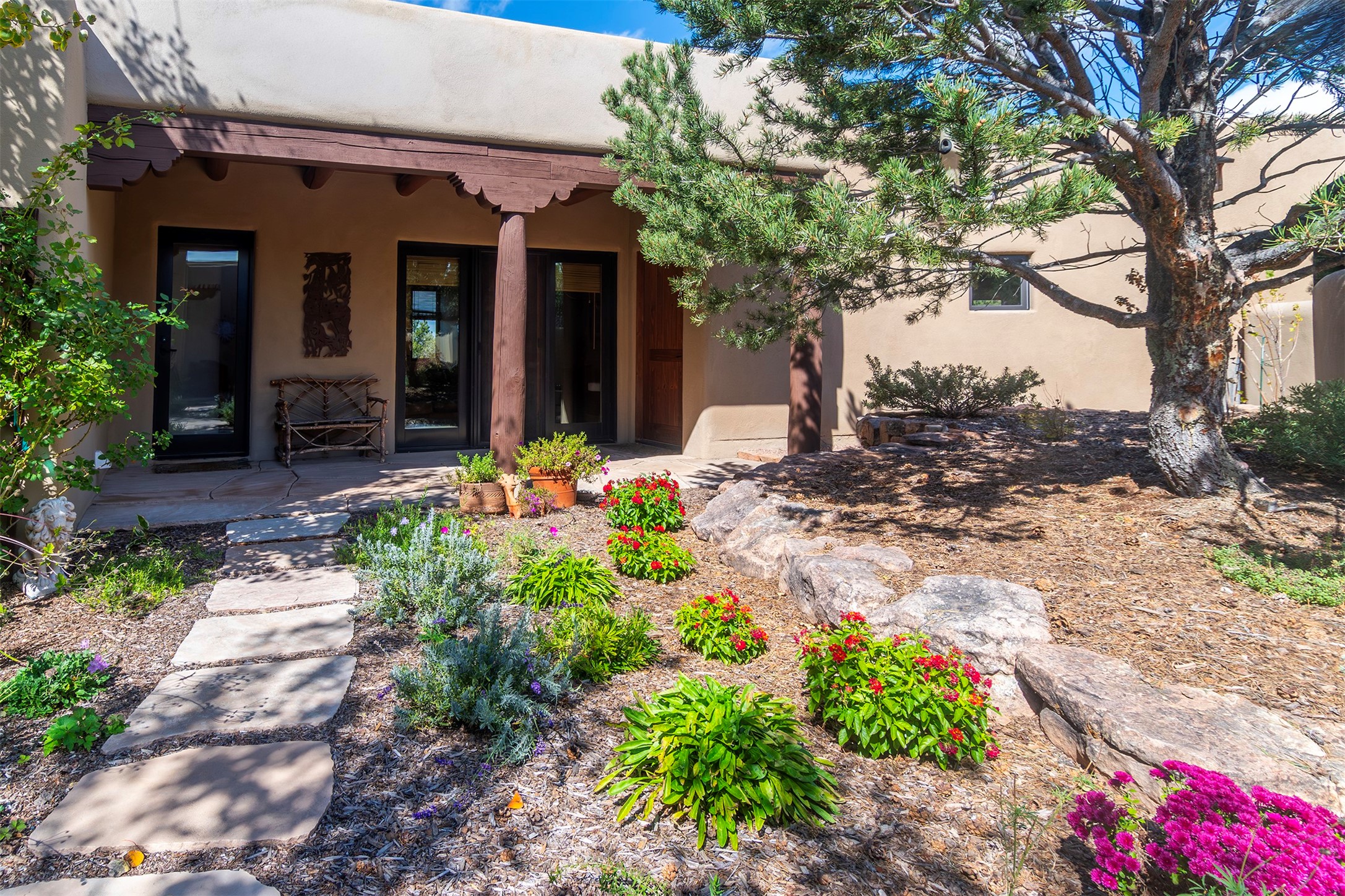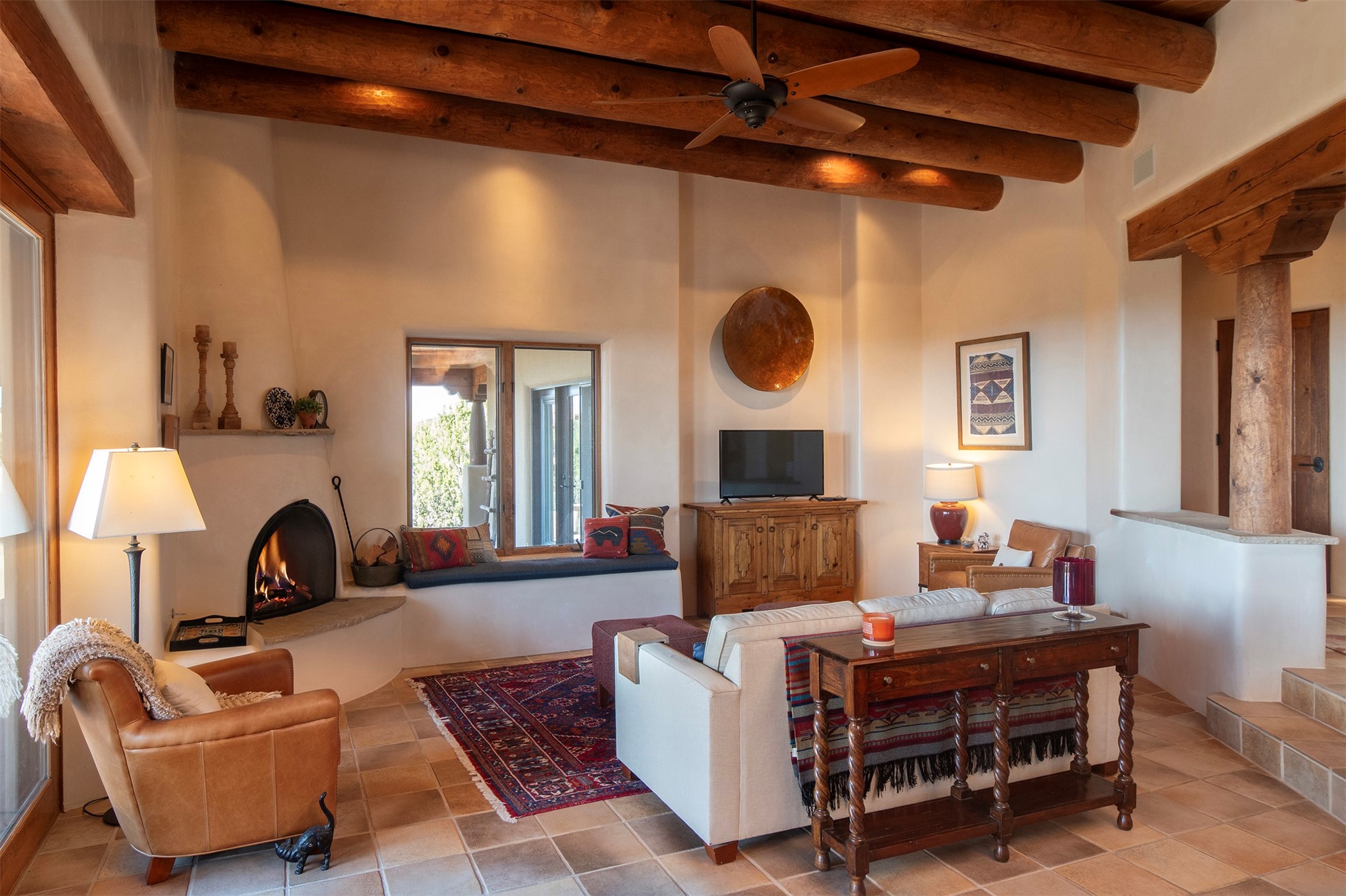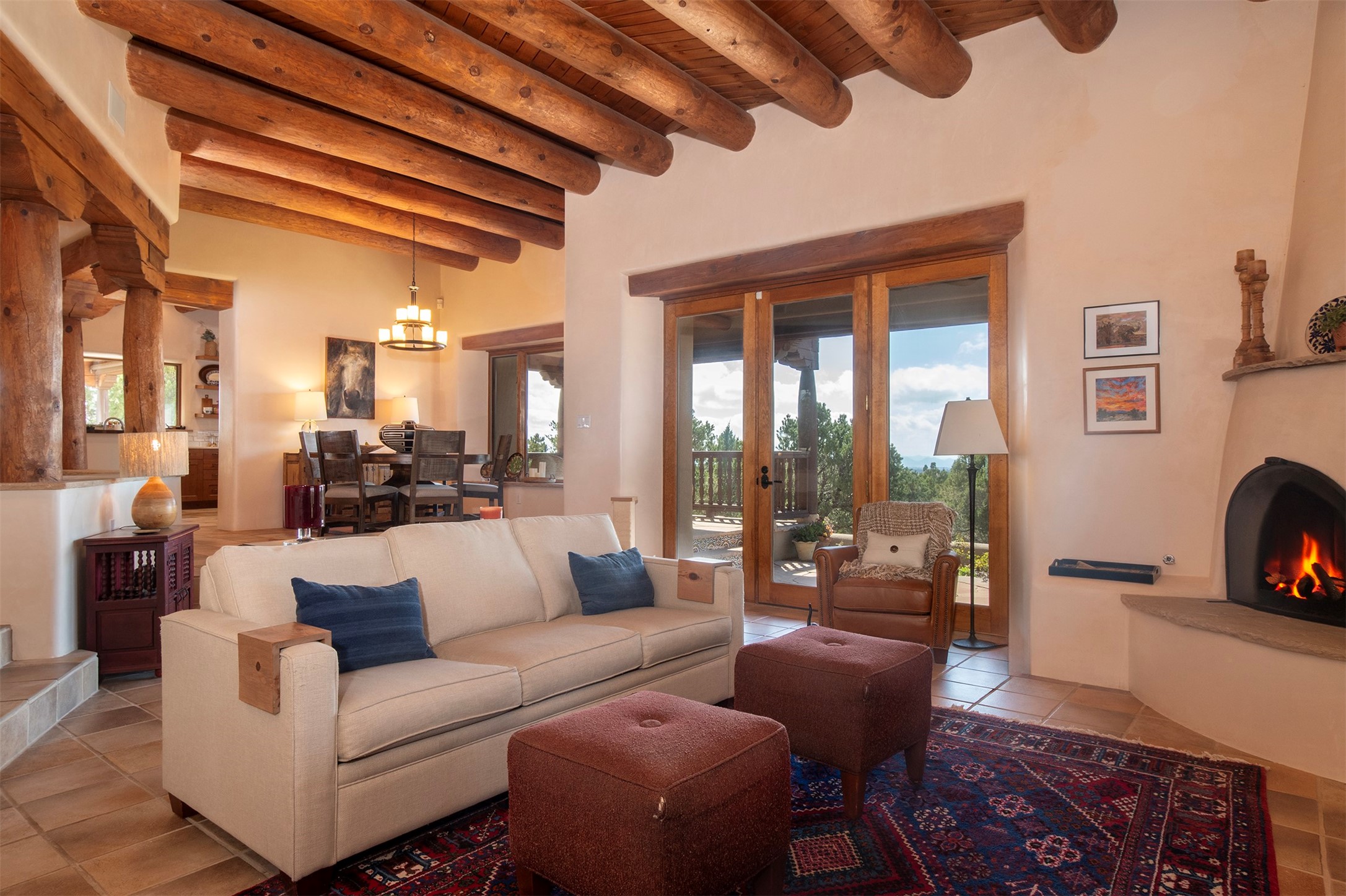 Set within the prestigious Las Campanas community, this exceptional 4-bedroom, 4-bathroom Santa Fe home showcases timeless Southwestern architecture blended with modern sophistication. Thoughtfully updated, the residence features numerous recent improvements. Expansive living spaces with soaring ceilings and large windows capture breathtaking mountain and sunset views. The gourmet kitchen, elegant dining area, and inviting outdoor patios create a seamless flow for entertaining or peaceful retreat. Offering access to world-class amenities, golf, and fine dining, 18 Arriba Circle represents the best of luxury living in Las Campanas--a perfect harmony of comfort, style, and Santa Fe charm.