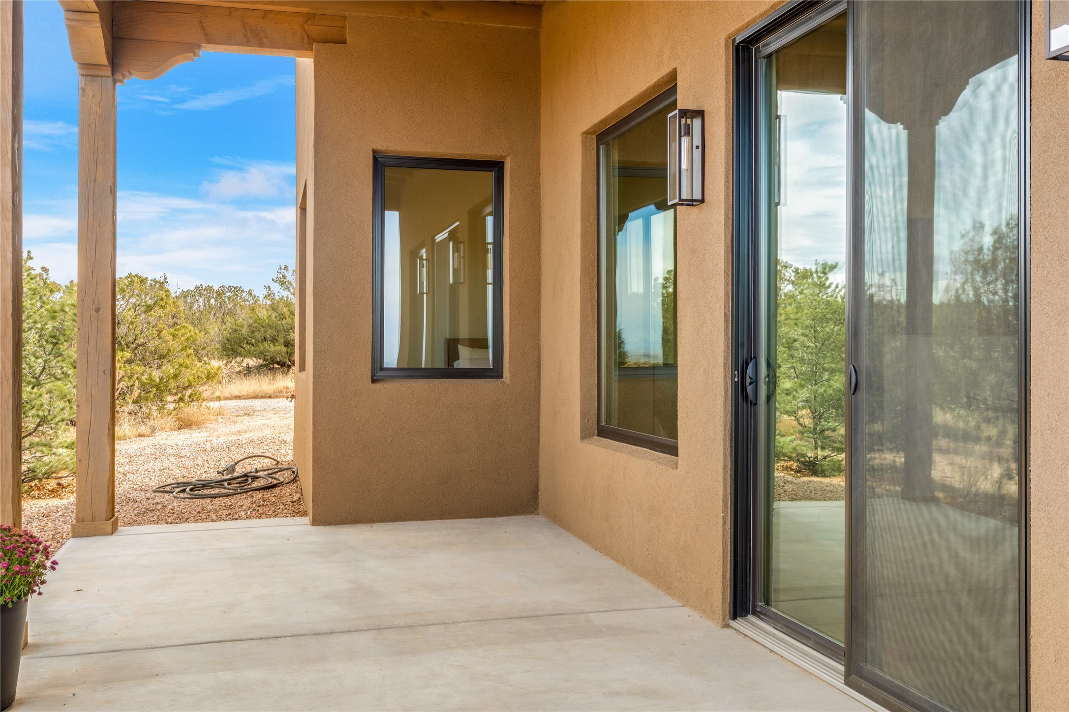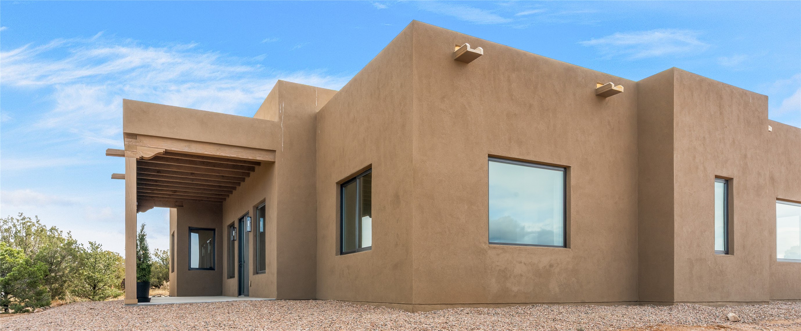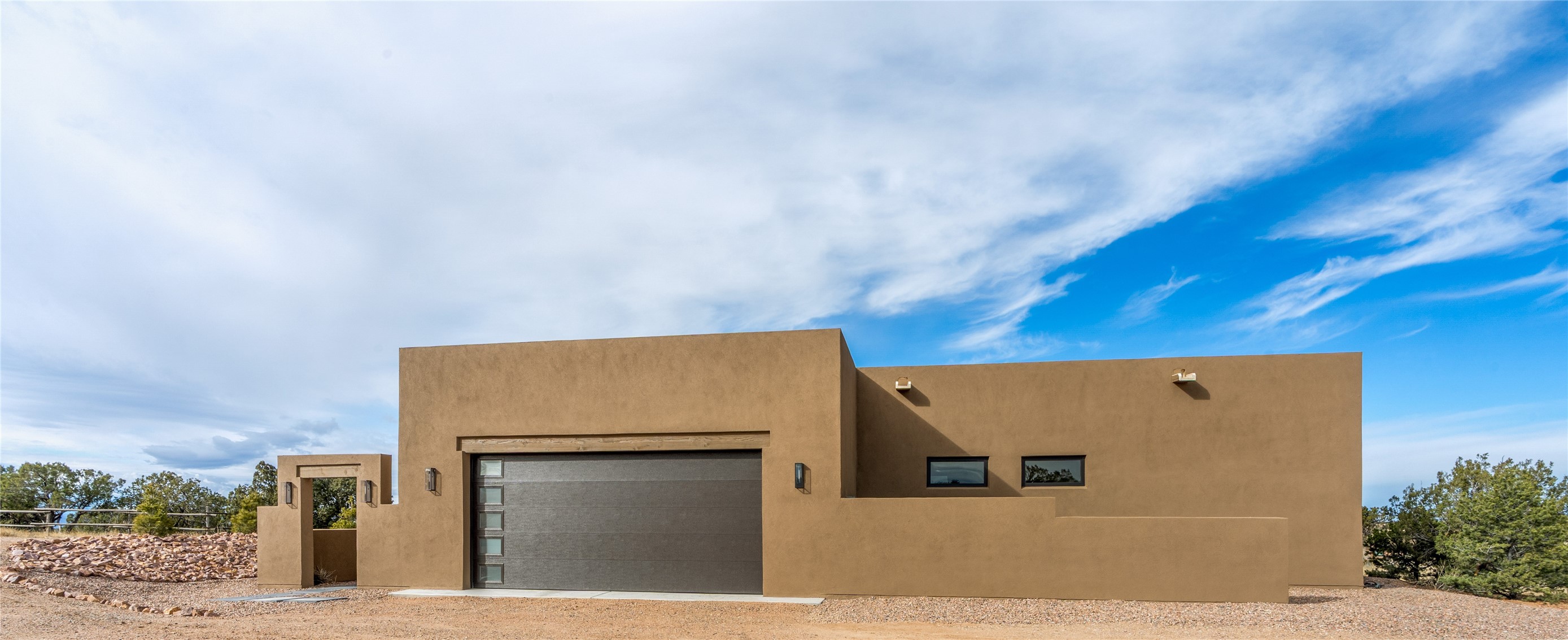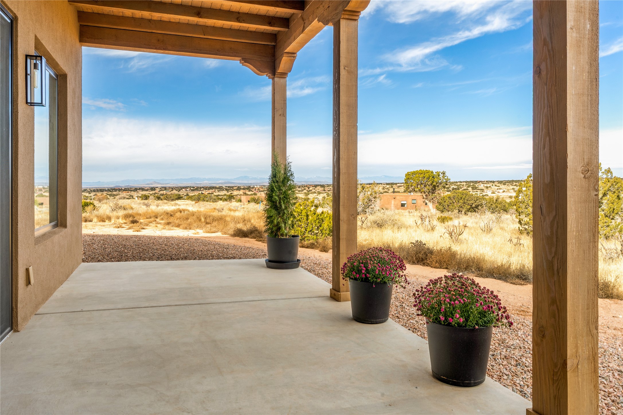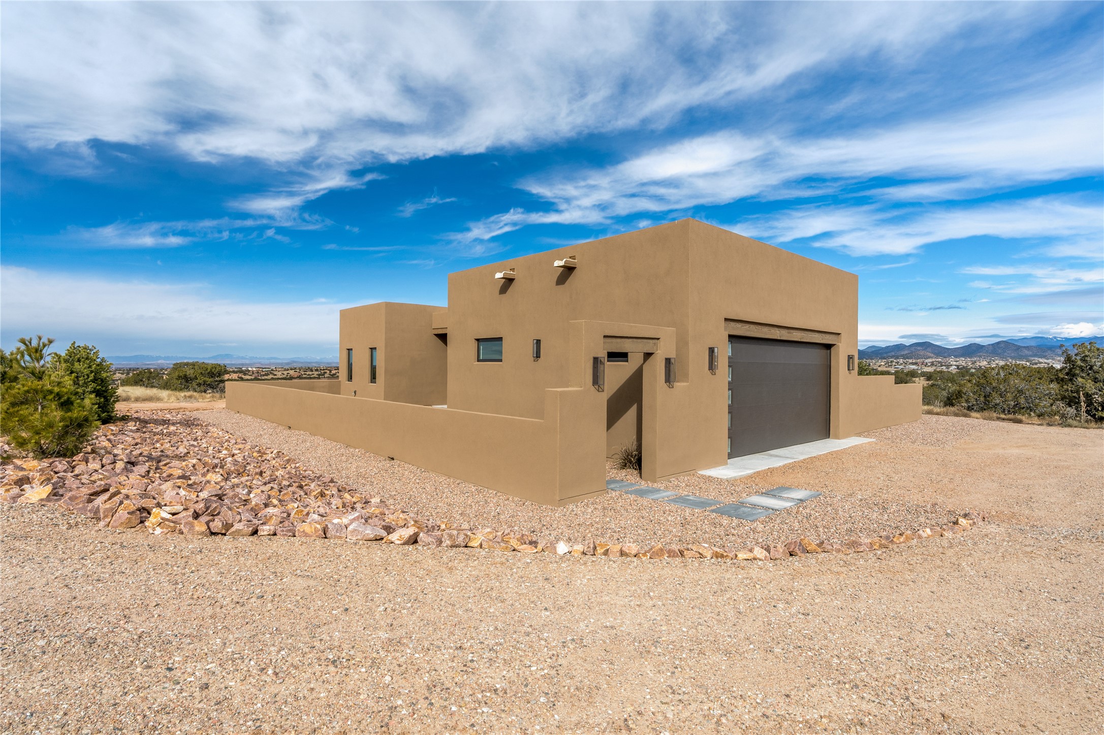 What an incredible place! The views are outstanding! Here you have 6.19+/- acres on a hilltop with views that reach far to the north and far to the west. At this property you can have an art studio or a business right at your home. There is plumbing and septic, and electric all set up to build another building on this lot. You can build an additional casita or guest house! This home is complete and ready to move into. It has the landscaping done with irrigation. The windows were placed to maximize light as well as mountain views. This modern home has gorgeous elements that also tie in the traditional styles of Santa Fe. There are viga beams in the main open concept living/dining/kitchen area. Both the front and back porches have Fir posts and beams with plenty of space to entertain or just relax and take in the beauty of this place. Watch the weather with a cup of coffee or tea on the back porch. There is a Douglas Fir custom-built modern vanity in the guest bathroom as well. The floors are a gorgeous, real wood engineered white oak. The doors are all a beautiful alder wood. Here you have a certified Green design home with Energy Star appliances, a HERS rating certification, and a very well-insulated house with highly insulated windows. This home comes with A/C and forced air heating, which is great when you want the temperature to adjust right away. Every detail was thought out and selected with a discriminating eye.You must come check this beautiful home out to feel what it will be like to live here.