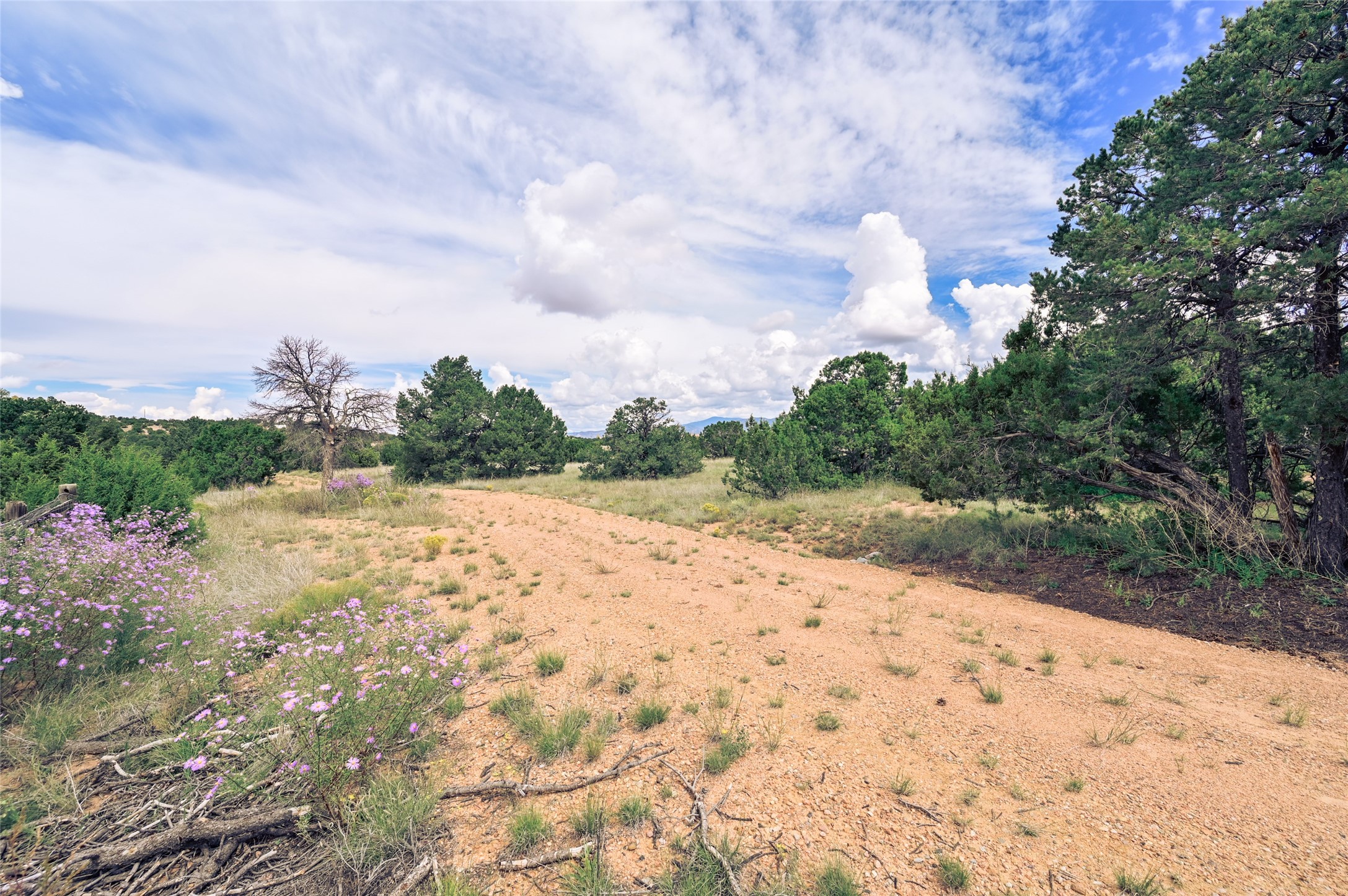 This wonderful, gated property has big views of Sangres de Cristo Mountains and sunset views over the Jemez Mountains. This is a no hassle site, with flat terrain for easy building, a shared well not subject to Aamodt and simple covenants only 15 minutes from the plaza. This gorgeous property is ready for your beautiful new home.