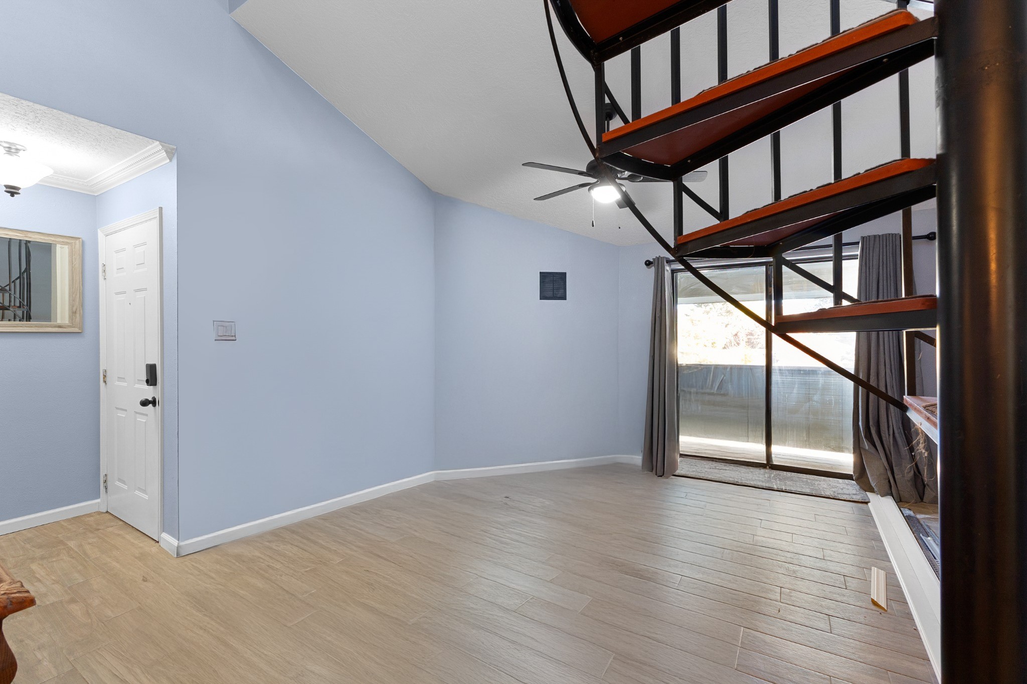 Stylish & Convenient Condo Living in Ridge Park!Welcome to this beautifully maintained 2-bedroom, 2-bath upper-level condo in the highly sought-after Ridge Park community. This bright, inviting home features an open living area with a cozy wood-burning fireplace, vaulted ceilings, and access to a covered balcony showcasing stunning views of the Jemez Mountains. The dining area flows seamlessly into a well-appointed galley kitchen, complete with sleek Samsung stainless steel appliances and a convenient pass-through window.The main-level bedroom offers its own private balcony and easy access to a full bath, while the upper-level loft bedroom serves as a peaceful retreat with an en suite bathroom, generous vanity space, and a spacious shower. Thoughtful updates include modern lighting, stylish ceiling fans, and abundant closet space, including an exterior storage closet.Additional highlights include a dedicated covered parking space directly across from the unit, plus on-site amenities such as an outdoor pool, fitness room, and clubhouse. Pet-friendly Ridge Park also features a nearby dog walking park. Centrally located in Los Alamos, you'll enjoy easy access to Ashley Pond, the public library, restaurants, shops, and LANL--everything you need for convenient and comfortable living!