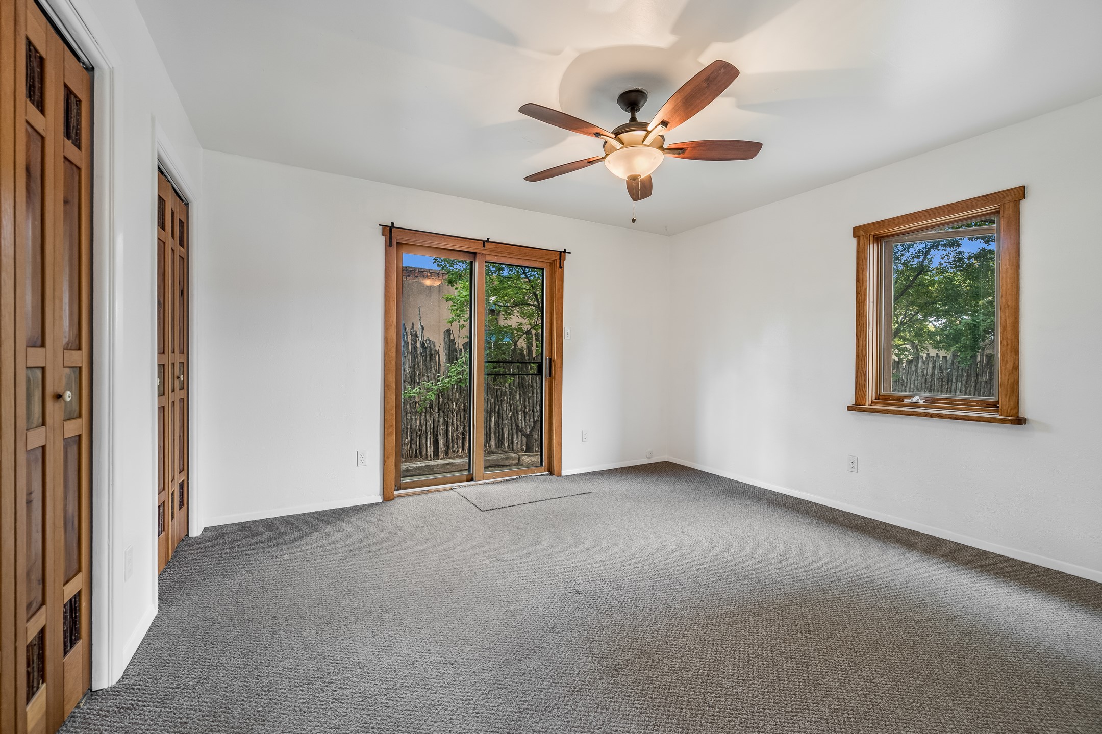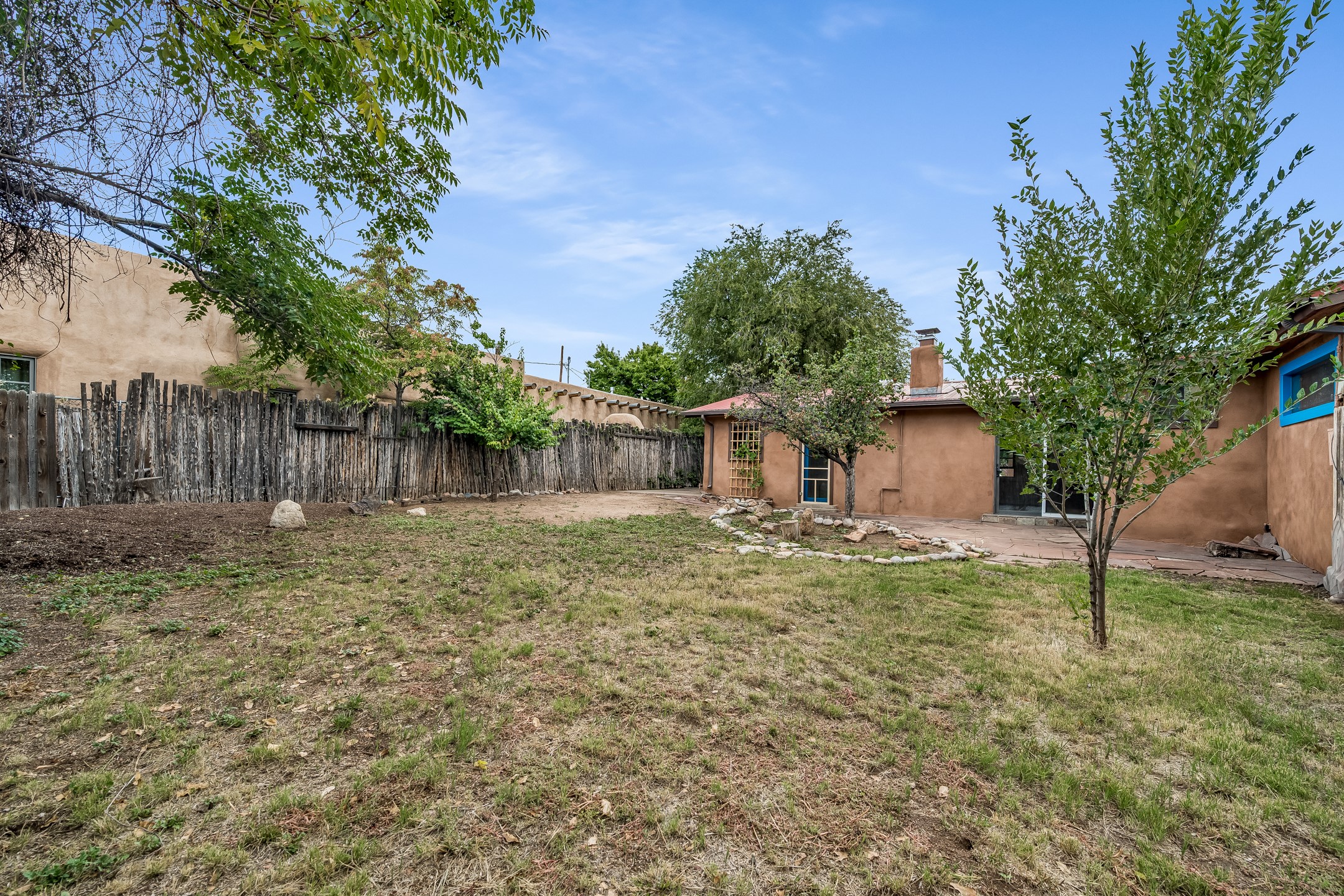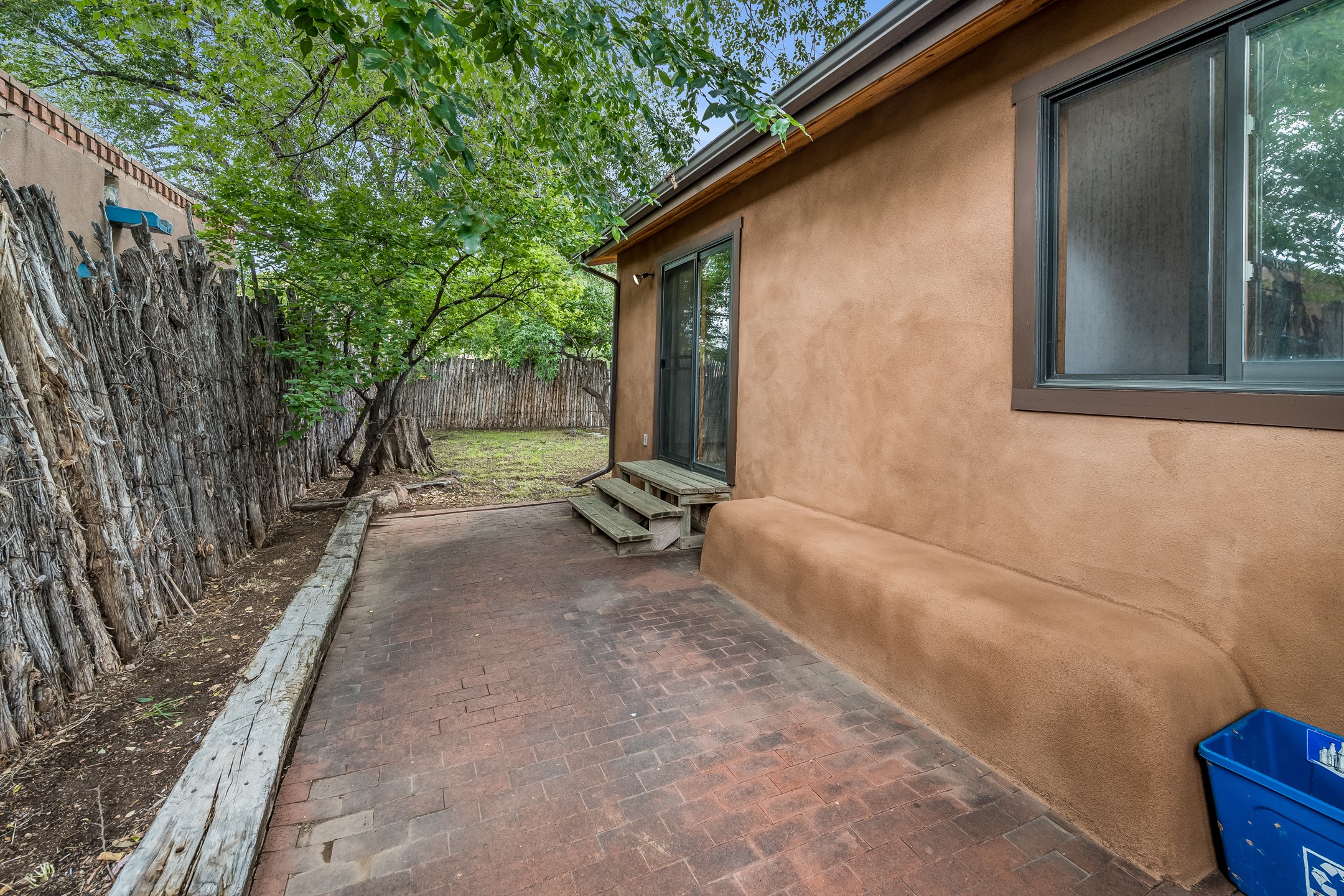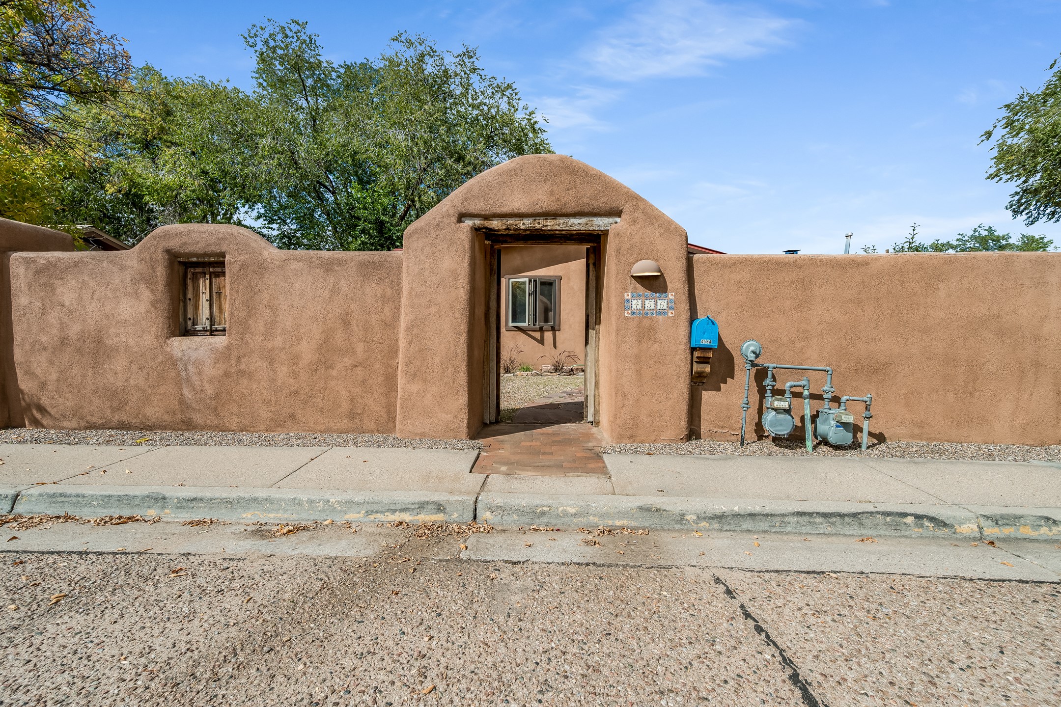 This quintessential Santa Fe style property offering Kiva fireplace, willow doors, Talavera and Saltillo tile, nichos, a walled courtyard, and off-street parking is tucked away in the much sought after Railyard Arts District. The setting is peaceful and quiet yet only a quick 5 minute jaunt to The Violet Crown, Farmer's Market, park, outdoor concerts, coffee shop, pubs, restaurants, and the vibrant vibe offered along Guadalupe Street! About a 15 minute walk to The Santa Fe Plaza where you will find work shopping, class dining, and galleries along with stellar museums. Walking and cycling trails are minutes away making this the perfect urban home. One can even hop on the train for a ride to Albuquerque! Opportunities Abound for this property which features a home with attached guest house. You can live in one unit and rent the other or rent them both! There is even room to add a casita! Easy access to St. Francis Drive is a plus for those who commute to Los Alamos! Both units offer office space for those who work from home. A Must See!
