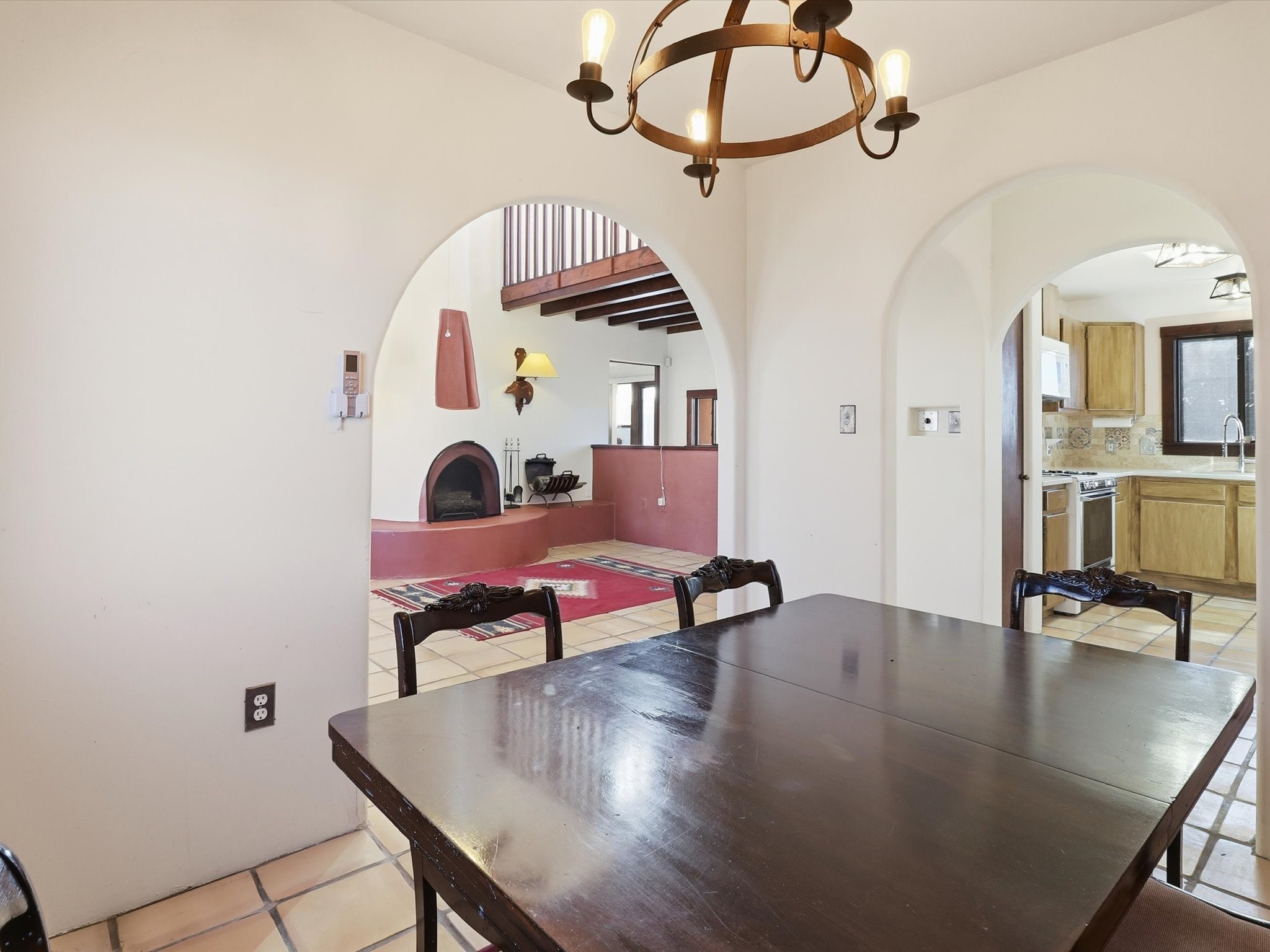 A serene Santa Fe retreat in the coveted Eldorado community. This beautifully designed 3-bed, 2-bath residence sits on 1.64 acres with sweeping mountain views and the peaceful rhythm of desert living. Light-filled interiors feature high ceilings, tile floors, and a Kiva fireplace that adds warmth and timeless Santa Fe charm. The kitchen and living spaces open to a private patio perfect for entertaining or quiet starlit evenings. Experience tranquil country living just minutes from Santa Fe's Plaza, galleries, and fine dining. The spacious lot offers room to garden, relax, or expand. A perfect blend of comfort, elegance, and Southwest beauty, schedule your private tour today and see it for yourself.