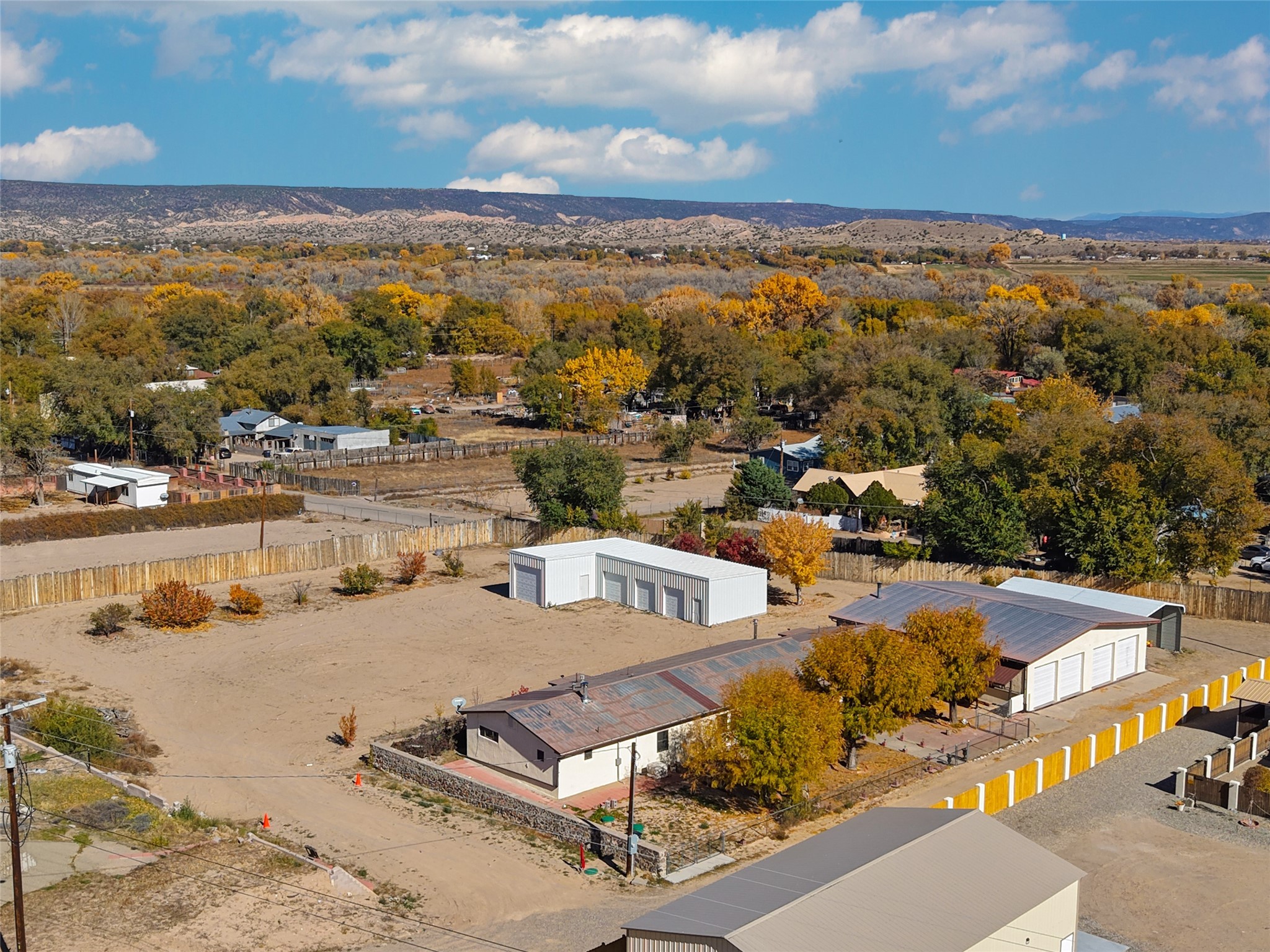 Discover a spacious and well-maintained 3-bedroom, 3-bath home with a 5-car garage, workshop, and RV parking--perfectly situated just north of Espaola. This 2,727 SF single-family home on a -acre lot offers exceptional space, versatility, and convenience in a peaceful Northern New Mexico setting. Inside, you'll find three bedrooms and three full bathrooms with a thoughtfully designed layout that provides comfortable, separate living areas. There is a wood-burning stove in the primary bedroom. The great room features updated flooring, recently replaced bay windows with Anderson windows, a wood-burning stove, mudroom, and wet bar. The laundry room includes a washer and dryer for added convenience. Perfect for car enthusiasts or hobbyists, the property includes a spacious 5-car garage with a dedicated workshop area and additional storage. There's also covered RV parking under a large carport next to the garage, along with ample extra parking for guests or equipment.The property is gated for privacy and security, and the yard is fenced. The entire -acre lot is fully enclosed together with the adjacent commercial property, which is also available for purchase (see MLS #202504908). Enjoy the best of both worlds--peaceful country living with easy access to Espaola's shops and amenities, plus short commutes to Los Alamos and Santa Fe. This home offers space, function, and opportunity--ideal for those seeking a flexible Northern New Mexico property with room to grow. New septic system installed September 2025.