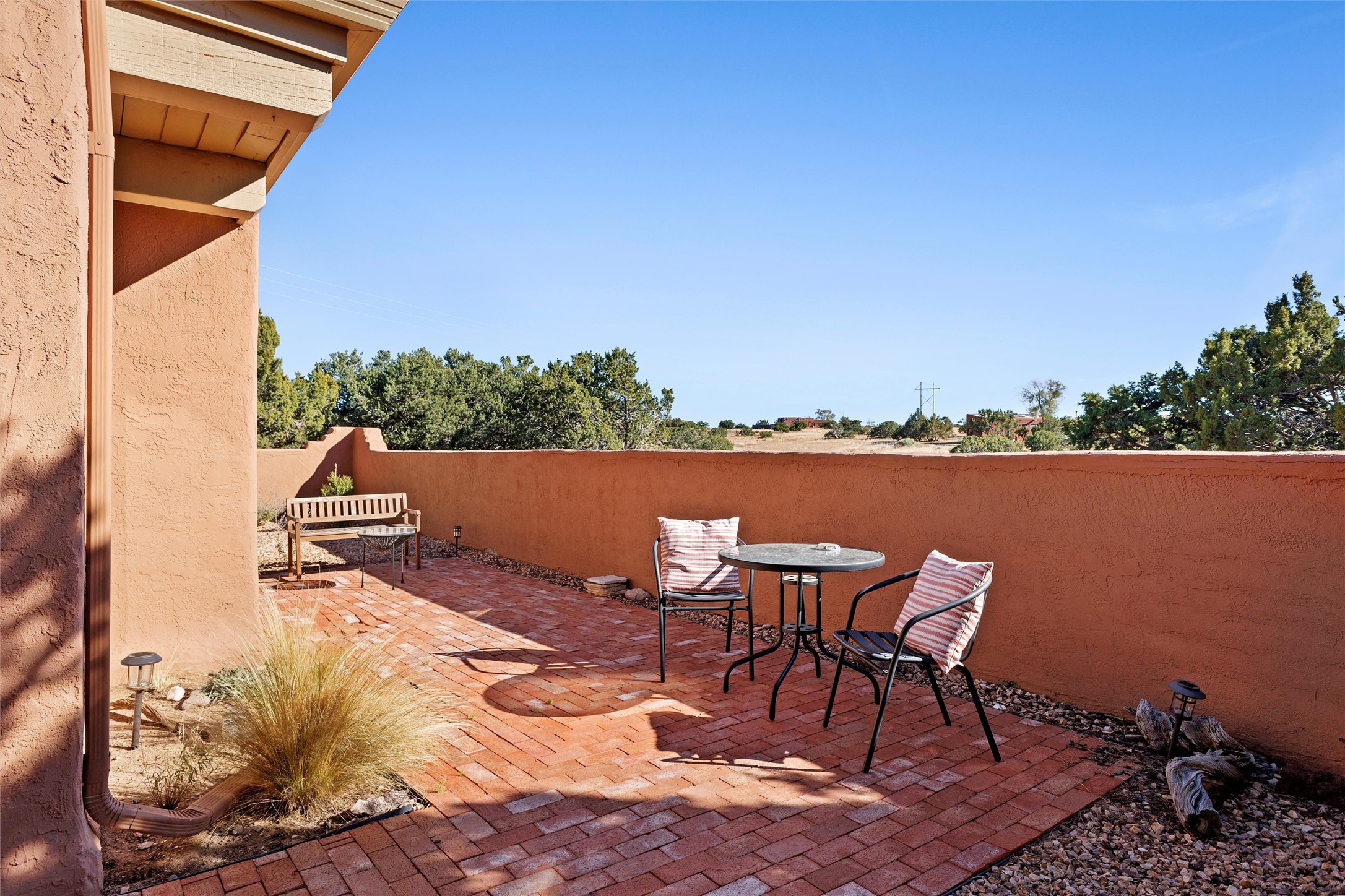 Possibilities abound in this inviting and well cared for, passive solar home, in the sought after Eldorado at Santa Fe community, with outstanding amenities for all who live within its tranquil setting.*Currently operating as a successful short term to mid-term rental, this income producing property allows you to dream.Whether you're looking for a turn key investment, a way to offset the expense of your own home away from home in Santa Fe or a comfortable place to call home full time, this idyllic retreat is not to be missed.Offering 2-primary suites, with excellent separation, the open floor plan features striking wood beams, abundant natural light, and expansive views, plus a dedicated office space, separate laundry room, 2 car garage and separate generator. Enjoy the beautiful views and sunsets that Eldorado is known for from one of the fully fenced outdoor patios.Fully stocked and tastefully appointed, this serene and stylish retreat blends southwestern charm with relaxed sophistication, checking all the boxes for you and your guests. Schedule your showing today and see how easy it can be to make your Santa Fe dreams come true!*Community amenities include walking and biking trails, greenbelts, hiking trails, basketball courts, tennis courts, pickle ball, seasonal swimming pool, and more. HOA fees are annual, at $620 per household.